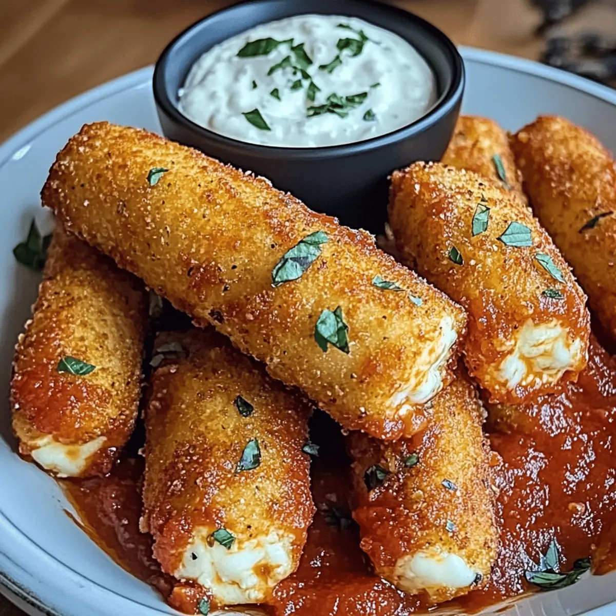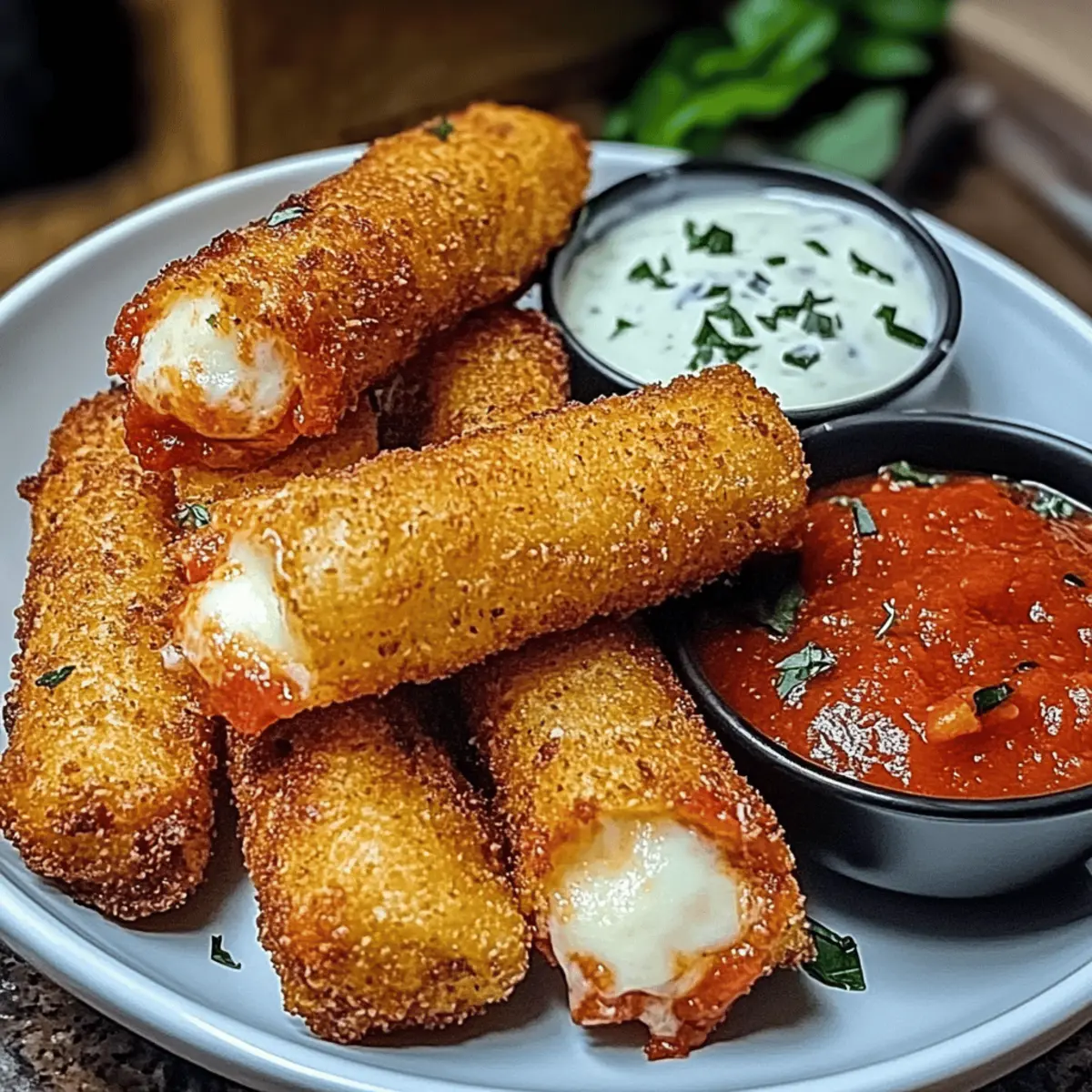 Manchmal sehnt man sich nach dem perfekten Snack, der einfach glücklich macht – und diese knusprigen Mozzarella-Sticks sind genau das! Sie sind nicht nur wahre Geschmacksexplosionen, sondern auch im Handumdrehen zubereitet. Nach einem langen Tag sehne ich mich oft nach diesen goldbraun frittierten Köstlichkeiten, die mit ihrem schmelzenden Innenleben und dem knusprigen Äußeren jeden Hunger stillen. Perfekt für Appetitanreger, beim nächsten Spielabend oder wenn die Lust auf etwas Heimeliges kommt. Diese einfache Vielzahl von Zutaten verwandelt sich in ein Restaurant-Feeling, das für Jung und Alt ein Gewinn ist. Und das Beste daran? Sie sind wunderbar vorzubereiten und sorgen immer für strahlende Gesichter. Bist du bereit, deine Gäste im Sturm zu erobern? Lass uns zusammen in die Welt der köstlichen Mozzarella-Sticks eintauchen! Warum sind diese Mozzarella-Sticks unwiderstehlich? Köstliche Aromen: Diese krossen Mozzarella-Sticks sind das ideale Fingerfood mit einem vollen, herzhaften Geschmack, der glücklich macht. Einfachheit: Das Rezept erfordert nur grundlegende Kochfähigkeiten und ist schnell umzusetzen. Vielseitigkeit: Serviere sie mit verschiedenen Dips wie einem cremigen Ranch oder der klassischen Marinara, je nach Geschmack. Schneidige Texturen: Die Kombination aus einem knackigen äußeren Mantel und geschmolzenem Innenleben bietet ein genussvolles Erlebnis. Und wenn du schon dabei bist, probiere doch auch die Kaese Gefuellte Brotsticks für eine weitere leckere Abwechslung! Zutaten für Krosse Mozzarella-Sticks • Entdecke die perfekten Zutaten für deine knusprigen Mozzarella-Sticks! Für die Mozzarella-Sticks Mozzarella-Käse-Sticks – Ideal für den herzhaften Käsegeschmack; ersetze sie durch fettarmen String Cheese. Weißmehl – Dient dazu, dass das Ei am Käse haftet und eine knusprige Kruste entsteht. Eier – Diese binden die Panade und sorgen für eine gute Haftung. Breadcrumbs (oder Panko) – Für die ultimative Knusprigkeit sorgt Panko für das besondere Extra; beide Varianten sind köstlich. Italienische Gewürze – Fügen dem Rezept herzhafte Aromen hinzu, wie Oregano und Basilikum. Salz und schwarzer Pfeffer – Verstärken den Geschmack und verleihen Tiefe. Öl zum Frittieren – Verwende Pflanzen- oder Rapsöl, das einen hohen Rauchpunkt hat und perfekt für die Zubereitung ist. Marinara-Sauce – Dieser würzige Begleiter bringt die perfekte frische Säure in den Genuss der Käse-Sticks. Cremiger Dip – Probier Ranch oder Knoblauch-Aioli für einen erfrischenden Kontrast. Frische Petersilie (optional) – Für eine schöne Garnitur, die frische Farben ins Spiel bringt. Lass dich von diesen Zutaten inspirieren und zaubere die besten krossen Mozzarella-Sticks, die dir ein glückliches Gefühl von Zuhause geben! Schritt-für-Schritt-Anleitung für Krosse Mozzarella-Sticks mit Dip Step 1: Mozzarella-Sticks vorbereiten Nimm die Mozzarella-Sticks aus der Verpackung oder schneide den Blockmozzarella in gleichmäßige Stäbchen. Um eine perfekte Bestrichung zu gewährleisten, tupfe die Käse-Sticks mit einem Küchentuch trocken, um überschüssige Feuchtigkeit zu entfernen. Dies ist wichtig für die Knusprigkeit der Krosse Mozzarella-Sticks. Step 2: Panierstation einrichten Richte drei flache Schalen auf der Arbeitsfläche an: In der ersten Schale kommt das Mehl, in der zweiten die geschlagenen Eier, und in der dritten die Semmelbrösel, vermischt mit italienischen Gewürzen, Salz und Pfeffer. So hast du alles bereit, um die Käse-Sticks gleichmäßig zu panieren für das ultimative Geschmackserlebnis. Step 3: Mozzarella-Sticks panieren Nimm einen Käse-Stick und wälze ihn zuerst im Mehl, bis er gleichmäßig bedeckt ist. Danach tauchst du ihn in die Eier und anschließend in die Semmelbrösel-Mischung. Für einen extra knusprigen Überzug wiederhole diesen Vorgang, indem du jeden Käse-Stick erneut in das Ei und die Semmelbrösel tauchst. So werden deine Krosse Mozzarella-Sticks besonders lecker. Step 4: Mozzarella-Sticks einfrieren Lege die panierten Käse-Sticks auf ein mit Backpapier ausgelegtes Blech und stelle sicher, dass sie sich nicht berühren. Lasse sie mindestens 30 Minuten im Gefrierschrank, damit sie fest werden. Dies ist unerlässlich, um die Form während des Frittierens zu erhalten und die perfekte Textur zu erreichen. Step 5: Öl erhitzen Erhitze in einer tiefen Pfanne genügend Öl, sodass die Mozzarella-Sticks später schwimmen können. Bringe das Öl auf 350°F (175°C). Verwende ein Küchenthermometer, um die Temperatur zu überwachen. Achte darauf, dass das Öl heiß genug ist, damit die Krosse Mozzarella-Sticks beim Frittieren schön goldbraun werden. Step 6: Mozzarella-Sticks frittieren Frittiere die gefrorenen Mozzarella-Sticks in Chargen für etwa 2–3 Minuten, bis sie goldbraun und knusprig sind. Achte darauf, dass du sie nicht überfüllst, damit sie gleichmäßig garen. Verwende eine Schaumkelle, um die Käse-Sticks herauszunehmen, und lasse sie auf einem Küchentuch abtropfen, um überschüssiges Öl zu entfernen. Step 7: Dips vorbereiten Während die Krosse Mozzarella-Sticks abkühlen, erwärmst du die Marinara-Sauce in einem kleinen Topf oder einer Mikrowelle bis sie warm ist. Bereite auch deinen cremigen Dip, wie Ranch oder Knoblauch-Aioli, vor. Diese Dips ergänzen den reichhaltigen Geschmack der Käse-Sticks perfekt. Step 8: Servieren Serviere die knusprigen Mozzarella-Sticks sofort, solange sie heiß sind. Garniere sie nach Belieben mit frisch gehackter Petersilie für eine schöne Farbnote und serviere sie zusammen mit der warmen Marinara-Sauce und dem cremigen Dip. Bereite dich auf strahlende Gesichter vor, während du deine Gäste mit diesem köstlichen Snack erfreust! Expert Tips für Krosse Mozzarella-Sticks Vorbereitung ist alles: Stelle sicher, dass du die Mozzarella-Sticks vor dem Panieren gut trocken tupfst, um die gewünschte Knusprigkeit zu erreichen. Doppelt hält besser: Für einen extra crunchigen 
