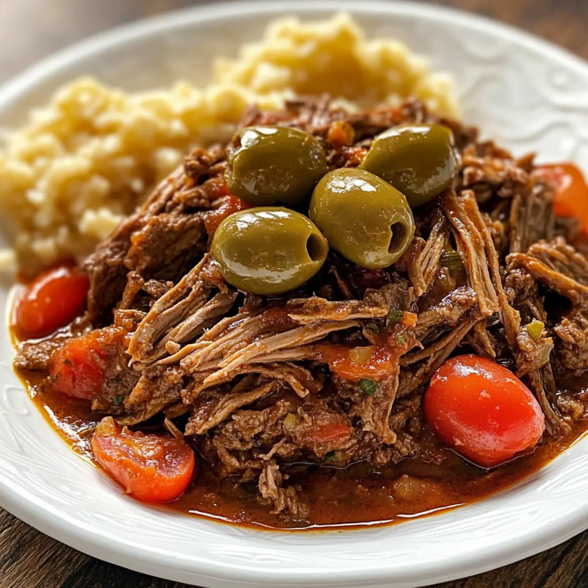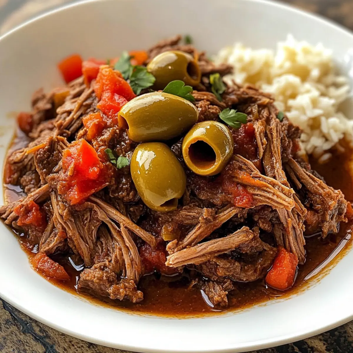 Als ich das erste Mal den verführerischen Duft von kubanischem Ropa Vieja in der Luft wahrnahm, wusste ich, dass ich eine geschmackliche Reise antreten würde. Dieses köstliche Geschmorrte aus zartem, zerrissenem Rindfleisch kombiniert mit bunten Paprika, Zwiebeln und einem Hauch von Oliven, ist nicht nur eine echte Gaumenfreude, sondern auch ein ideales Komfortessen für jede Gelegenheit. Die Zubereitung ist überraschend flexibel – ob im Kochtopf, Slow Cooker oder Instant Pot – diese Methode garantiert, dass das Fleisch butterzart und aromatisch wird. Und das Beste? Mit nur wenigen Zutaten kannst du dieses Abenteuermahl mühelos zubereiten und es wird garantiert zum Hit am Familientisch. Bist du bereit, deine Lieben mit einem Stück kubanischer Tradition zu begeistern? Warum wirst du Ropa Vieja lieben? Genussvolle Aromen: Die Kombination aus zartem Rindfleisch, frischen Paprika und aromatischen Gewürzen sorgt für eine Geschmacksexplosion, die deine Sinne verführt. Einfachheit: Mit nur wenigen Zutaten und unkomplizierten Schritten ist dieses Rezept für jeden geeignet, egal ob Küchenprofi oder Hobbykoch. Vielseitigkeit: Du kannst es auf verschiedene Arten zubereiten – im Kochtopf, Slow Cooker oder Instant Pot – perfekt für deinen Zeitplan! Tradition und Kultur: Dieses Gericht bringt nicht nur Wärme in dein Zuhause, sondern auch ein Stück kubanische Geschichte auf den Tisch. Familienliebling: Ropa Vieja ist ein garantierter Hit bei jedem Familienessen und sorgt für zufriedene Gesichter. Probiere auch dazu unsere leckeren Thai Sloppy Joe für noch mehr Abwechslung! Resteverwertung: Perfekt für Meal Prep – die Reste lassen sich leicht aufbewahren und schmecken am nächsten Tag sogar noch besser! Kubanisches Ropa Vieja Zutaten Für das Fleisch: • Flank Steak – Hauptprotein, das einen reichhaltigen Rindfleischgeschmack liefert. Substitution: Du kannst auch Chuck Roast oder Brisket verwenden; die Kochzeit anpassen. • Salz und schwarzer Pfeffer – Verstärken den Gesamtgeschmack. Hinweis: Nach Geschmack anpassen. • Olivenöl – Zum Anbraten des Fleisches und Sautieren von Gemüse; verleiht Reichhaltigkeit. Substitution: Avocado- oder Pflanzenöl sind ebenfalls geeignet. Für das Gemüse: • Zwiebel – Sorgt für Süße und Tiefe. Zubereitung: Dünn schneiden. • Paprika – Fügt Süße und Farbe hinzu; varied (rot, grün, gelb für ästhetische Appeal). Zubereitung: Entkernen und dünn schneiden. • Knoblauch – Liefert das aromatische Aroma, das das Geschmacksprofil verstärkt. Zubereitung: Fein hacken. • Karotte und Sellerie – Sorgt für zusätzliche Süße und Reichtum im Schmorfleck, während sie mehrere Geschmacksnoten hinzufügen. Für die Sauce: • Tomatenmark – Fügt Säure und Tiefe des Geschmacks hinzu. • Getrockneter Oregano – Herbale Note, die das Rindfleisch ergänzt. • Gemahlener Kreuzkümmel – Erdiger Krautgeschmack, wichtiger Geschmacksbestandteil. • Süßer Paprika – Verleiht subtile Süße und Farbe. • Piment – Bringt Wärme und Komplexität. • Gemahlene Nelken – Fügt eine süße Note und Tiefe hinzu. • Weißwein – Hilft beim Abglänzen und fügt Säure hinzu; verstärkt die Sauce. • Hühnerbrühe – Für Feuchtigkeit und Geschmack; steigert die Reichhaltigkeit der Sauce. Substitution: Rinderbrühe für intensiveren Geschmack verwenden. • Zerkleinerte Tomaten – Basis für die Sauce; sorgt für Feuchtigkeit und Süße. • Lorbeerblätter – Entfalten Geschmack während des Kochens. • Pimiento gefüllte Oliven – Schlüsselzutat, die den salzigen Kontrast hinzufügt. • Geschnittene Pimentos – Fügt Farbe und milden Geschmack hinzu. • Kapern – Optional; trägt zu einem würzigen Geschmacksprofil bei. • Hühnerbouillon – Optional; fügt Tiefe des Geschmacks hinzu. Hinweis: Diese Zutaten verwandeln dein Gericht in ein authentisches Kubanisches Ropa Vieja und bringen die Aromen der Karibik direkt auf deinen Tisch! Schritt-für-Schritt-Anleitungen für Kubanisches Ropa Vieja Step 1: Zutaten vorbereiten Schneide das Flank Steak in Stücke, falls nötig, und würze es großzügig mit Salz und Pfeffer. Bereite das Gemüse vor, indem du die Zwiebel in dünne Scheiben, die Paprika in feine Streifen und den Knoblauch fein hackst. Dies sorgt für einen gleichmäßigen Geschmack im Kubanischen Ropa Vieja und vereinfacht den weiteren Kochprozess. Step 2: Rindfleisch anbraten Erhitze in einem großen Topf 2-3 Esslöffel Olivenöl bei mittlerer bis hoher Temperatur. Brate das Flank Steak für 3-4 Minuten pro Seite, bis es goldbraun ist. Achte darauf, das Fleisch nicht zu überfüllen, um eine gleichmäßige Bräunung zu gewährleisten. Nach dem Anbraten das Fleisch aus dem Topf nehmen und beiseite stellen. Step 3: Gemüse sautieren Gib die geschnittene Zwiebel und die Paprika in den gleichen Topf und brate sie bei mittlerer Hitze für etwa 5-7 Minuten, bis sie weich und leicht gebräunt sind. Füge dann den Knoblauch hinzu und koche ihn für eine weitere Minute, bis er aromatisch ist. Dies verleiht dem Kubanischen Ropa Vieja eine wunderbare Geschmacksbasis. Step 4: Sauce aufbauen Rühre das Tomatenmark, getrockneten Oregano, Kreuzkümmel, Paprika, Piment und gemahlene Nelken in das Gemüse ein. Deglaziere den Topf mit einem Schuss Weißwein und koche die Mischung für 1-2 Minuten, damit sich die Aromen verbinden und die Flüssigkeit reduziert wird. Der Topf sollte nun intensiv duften und die Gemüsemischung reichhaltig aussehen. Step 5: Zutaten kombinieren Gib die Hühnerbrühe und zerkleinerte Tomaten hinzu und rühre alles gut um. Lege das zuvor angebratene Rindfleisch wieder in den Topf und füge die Karotten, den Sellerie und die Lorbeerblätter hinzu. Bringe die Mischung zum Kochen, dann decke den Topf ab und lasse das Kubanische Ropa Vieja bei 175 °C für etwa 1,5 Stunden im Ofen schmoren. Step 6: Rindfleisch zerkleinern Nach der Garzeit das Rindfleisch und das Gemüse aus dem Topf nehmen und di