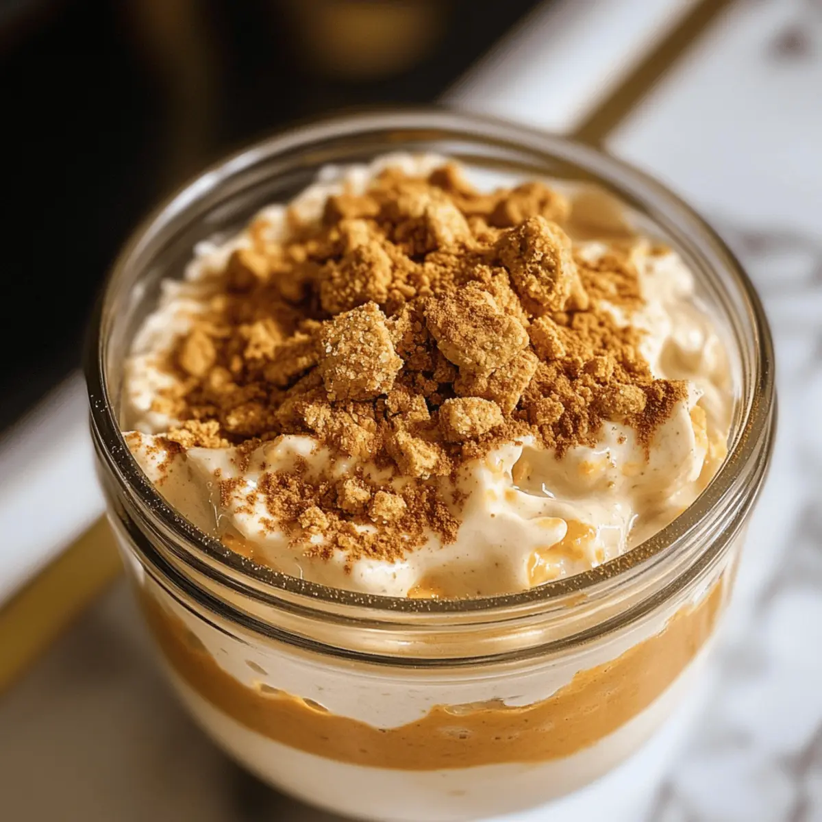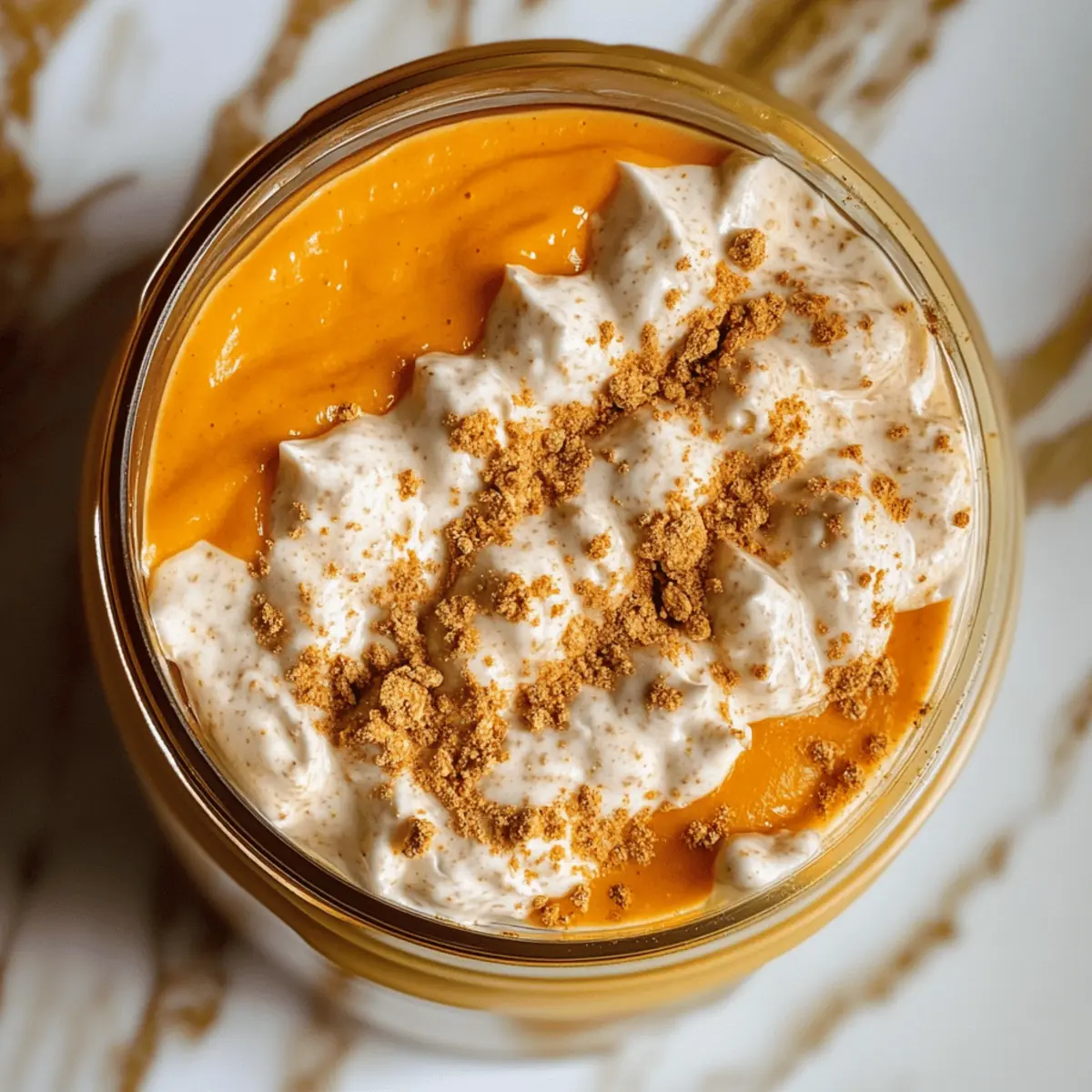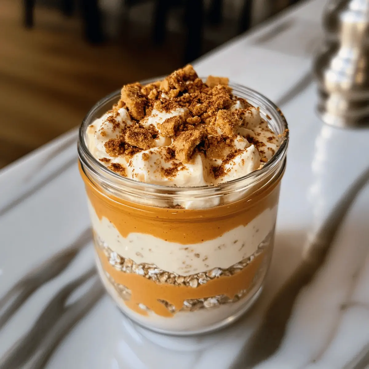Eines Morgens, als die ersten Blätter in leuchtenden Farben erstrahlten, hatte ich plötzlich eine Idee für das perfekte Frühstück: die cremigen Pumpkin Cheesecake Overnight Oats. Diese unkomplizierte Rezeptur vereint die köstlichen Aromen von Kürbisgewürzen und der unwiderstehlichen Frische von Cheesecake, und sie erfordert kein einziges Mal Backen! Mit einem schnellen Mix der Zutaten, einer Übernachtung im Kühlschrank und fertig ist ein gesundes und zugleich luxuriöses Frühstück, das dich mit Energie für den Tag versorgt. Ganz gleich, ob du auf der Suche nach einem schnellen Morgenessen bist oder einfach die herbstliche Atmosphäre genießen möchtest, diese Haferflocken sind genau das Richtige für dich! Hast du schon einmal etwas so Leckeres zum Frühstück probiert? Warum wirst du dieses Rezept lieben? Kreativität am Morgen: Diese Kürbis-Cheesecake-Haferflocken sind ein einzigartiger Start in den Tag, der aufregende Aromen vereint, ohne zu backen. Gesund und nährend: Die Kombination aus Haferflocken, Kürbispüree und Chia-Samen sorgt für ein kraftvolles Frühstück, das dich lange satt hält. Einfache Zubereitung: Einfach die Zutaten vermischen und über Nacht kühlen – perfekt für Unterwegs-Morgen oder als Teil deiner Meal-Prep-Routine. Vielseitigkeit pur: Möchtest du das Rezept anpassen? Tausche das Kürbispüree gegen pürierte Banane oder süße Kartoffeln aus! Saisonale Genüsse: Lass den herbstlichen Zauber in deine Küche einziehen, während du die Aromen von Kürbis und Gewürzen genießt. Entdecke auch andere leckere Frühstücksoptionen in unserem Blog wie die Cremiges Bananen-Haferflocken Rezept. Kürbis-Cheesecake-Haferflocken Zutaten • Entdecke die unverwechselbaren Aromen in jeder Schicht! Für die Haferbasis Haferflocken – sorgen für Struktur und Sättigung; du kannst auch schnelle Haferflocken verwenden, aber der Biss wird anders sein. Milch (pflanzlich oder tierisch) – hydratisiert die Haferflocken; für eine milchfreie Variante verwende Mandel-, Hafer- oder Kokosmilch. Kürbispüree aus der Dose – fügt Geschmack und Nährstoffe hinzu; ersetze es durch pürierte Süßkartoffel oder Banane, falls nicht verfügbar. Chia-Samen – verdicken die Mischung und liefern Ballaststoffe; Flachs-Samen sind eine gute Alternative, reduziere die Milch leicht, wenn du sie weglässt. Vanilleextrakt – verbessert das Geschmacksprofil; es gibt keinen direkten Ersatz, jedoch kann Imitatvanille in der Not verwendet werden. Kürbiskuchengewürz – verleiht den warmen, saisonalen Geschmack; du kannst es selbst mischen aus Zimt, Muskatnuss und Nelken. Ahornsirup oder Honig – sorgt für Süße; passe die Menge nach deinem Geschmack an, auch Agavensirup eignet sich gut. Für die Cheesecake-Schicht Griechischer Joghurt oder Frischkäse – sorgt für eine cremige, cheesecakeähnliche Schicht; verwende pflanzlichen Joghurt als gute andere Option. Zusätzliche Milch für die Cheesecake-Schicht – um die Konsistenz nach Bedarf anzupassen. Für das Topping (optional) Zerkleinerte Graham Cracker – bieten eine knusprige Textur, die an den Käsekuchenboden erinnert; für glutenfreie Versionen weglassen oder durch gehackte Nüsse ersetzen. Ein Hauch Zimt (optional) – verstärkt die Würze und Aromen. Lass dir diese Kürbis-Cheesecake-Haferflocken schmecken, die nicht nur köstlich sind, sondern auch perfekt geeignet für einen gesunden Start in den Morgen! Step-by-Step Instructions für Kürbis-Cheesecake-Haferflocken Step 1: Haferbasis mischen In ein Einmachglas gibst du die Haferflocken, Milch, das Kürbispüree, die Chia-Samen, den Vanilleextrakt, das Kürbiskuchengewürz und den Ahornsirup. Rühre alles gut um, bis die Mischung gleichmäßig ist und alle Zutaten gut integriert sind. Achte darauf, dass keine Klumpen entstehen, und die Haferbasis eine cremige Konsistenz erreicht. Step 2: Cheesecake-Schicht vorbereiten In einer separaten Schüssel vermischt du den griechischen Joghurt oder Frischkäse mit etwas zusätzlicher Milch und einem weiteren Schuss Ahornsirup. Rühre die Mischung kräftig, bis sie schön glatt und cremig ist. Diese Cheesecake-Schicht wird deinen Kürbis-Cheesecake-Haferflocken eine luxuriöse Textur verleihen. Step 3: Schichten Spoon die Hälfte der Haferbasis gleichmäßig in das Einmachglas. Darauf kommt eine Schicht der vorbereiteten Cheesecake-Mischung. Anschließend gibst du die restlichen Haferflocken darauf und achtest darauf, dass die Schichten gleichmäßig verteilt sind. Dies sorgt für ein schönes Farbergebnis und eine köstliche Kombination aus Texturen. Step 4: Kühlen Verschließe das Einmachglas gut und stelle es für mindestens 4 Stunden in den Kühlschrank, vorzugsweise über Nacht. Dies erlaubt den Haferflocken, die Flüssigkeit gut aufzunehmen und sorgt dafür, dass die Aromen sich vollständig entfalten können. Am Morgen wirst du eine perfekt cremige Konsistenz vorfinden. Step 5: Servieren Am nächsten Morgen nimmst du das Einmachglas aus dem Kühlschrank. Rühre die Haferflocken gut um und füge bei Bedarf noch etwas Milch hinzu, um die gewünschte Cremigkeit zu erreichen. Optional kannst du die Kürbis-Cheesecake-Haferflocken mit zerkleinerten Graham Crackern und einem zusätzlichen Schuss Ahornsirup garnieren, um den perfekten süßen Abschluss zu genießen. Variationen & Substitutionen Gib deiner Frühstückszeit einen persönlichen Touch mit diesen köstlichen Varianten! Vegan: Ersetze den griechischen Joghurt durch einen pflanzlichen Joghurt und verwende Ahornsirup, um den Honig zu ersetzen. Glutenfrei: Verwende glutenfreie Haferflocken und lasse die Graham Crackers weg oder tausche sie gegen zerkleinerte Nüsse aus. Fruchtig: Füge frische Früchte wie Blaubeeren oder Äpfel in die Schichten hinzu, um einen erfrischenden Kontrast zu schaffen. Sie machen das Gericht noch fruchtiger und gefälliger. Zimt Liebhaber: Erhöhe den Zimtgehalt, indem du einen zusätzlichen Teelöffel Zimt in die Haferbasis oder di