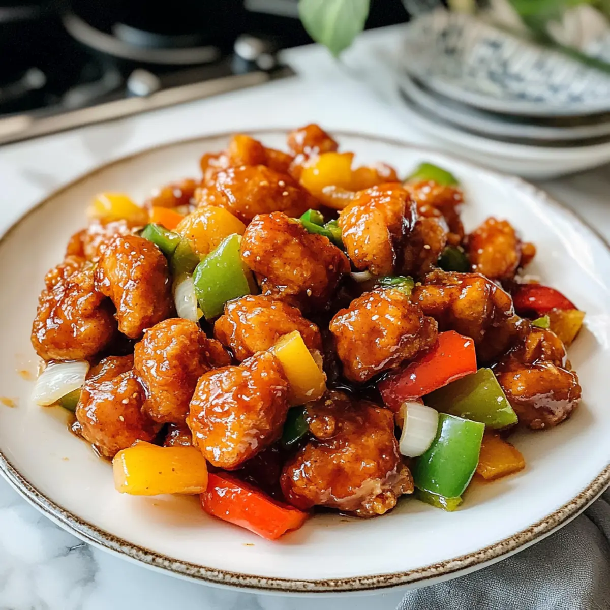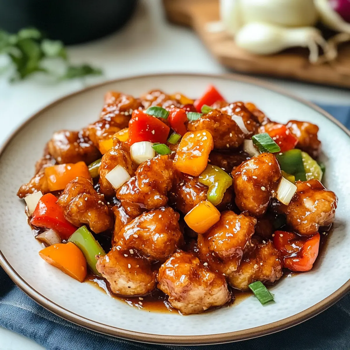 Stell dir vor, es ist ein gemütlicher Abend und der Duft von frisch zubereitetem Luftfritteusen-Süßsauer-Hühnchen durchzieht deine Küche. Dieses Rezept ist nicht nur ein einfacher Weg, ein Lieblingsgericht nach Hause zu holen, sondern es kommt auch mit einem gesunden Twist. Mit saftigen, knusprigen Hähnchenstücken und bunten, knackigen Gemüse ist dies die perfekte Lösung für alle, die schnell und lecker essen möchten, ohne auf den Geschmack zu verzichten. Und das Beste daran? Es benötigt nur einen Hauch von Öl, was es zu einer großartigen glutenfreien und kalorienbewussten Option macht. Also, bereit für eine geschmackvolle Abwechslung zu deinem gewohnten Takeout? Lass uns das Geheimnis dieses köstlichen Gerichts erkunden! Warum wirst du dieses Rezept lieben? Einfachheit trifft auf Genuss: Die Zubereitung ist unkompliziert und erfordert nur grundlegende Kochfähigkeiten, sodass du spielend leicht dein eigenes Luftfritteusen-Süßsauer-Hühnchen zaubern kannst. Knusprig und saftig: Die Kombination aus luftgebackenem Hähnchen und frischem Gemüse sorgt für einen unwiderstehlichen Biss, ganz ohne die Frittiererei. Gesunde Variante: Mit weniger Öl und anpassbaren Zutaten ist dieses Rezept nicht nur köstlich, sondern auch glutenfrei und kalorienbewusst. Familienfreundlicher Favorit: Perfekt, um die ganze Familie zu begeistern. Du kannst sie ganz nach deinen Vorlieben abwandeln, zum Beispiel mit Tofu oder mehr Gemüse.Die besten Tipps zu glutenfreien Option helfen dabei, spezielle Anforderungen zu berücksichtigen. Schnell und einfach: In weniger als 30 Minuten hast du ein fantastisches Gericht, das sich ideal für ein schnelles Abendessen oder beim Empfang von Gästen eignet. Luftfritteusen-Süßsauer-Hühnchen Zutaten • Für alle, die auf der Suche nach einem schnellen und köstlichen Rezept sind! Für das Hühnchen • Hähnchenschenkel ohne Knochen und Haut – Hauptprotein, das für Saftigkeit und Geschmack sorgt. Du kannst auch Hähnchenbrust verwenden, wenn du eine magerere Option bevorzugst. • Gemüsesorte Öl – Hilft beim Marinieren und sorgt dafür, dass die Speisestärke am Hähnchen haftet. Probiere Avocadoöl für einen anderen Geschmack! • Salz – Verbessert den Geschmack; achte darauf, es ausreichend zu würzen. • Speisestärke – sorgt für eine knusprige Panade; kann durch Pfeilwurzstärke ersetzt werden, um eine glutenfreie Option zu erhalten. Für die Sauce • Ketchup – Liefert Süße und Würze; du kannst auch zuckerfreie Versionen für eine gesündere Sauce verwenden. • Shaoxing Wein (oder trockener Sherry) – Fügt der Sauce Tiefe hinzu; benutze Tamari für eine glutenfreie Variante. • Reisessig – Balanciert die Aromen mit Säure; du kannst auch Apfelessig verwenden, wenn nötig. • Helle Sojasauce (oder Sojasauce) – Für den Umami-Geschmack; Tamari passt wunderbar für glutenfreies Kochen. • Brauner Zucker – Verleiht eine süße Note; kann mit Kokosblütenzucker ersetzt werden, um es gesünder zu machen. • Wasser – Wird verwendet, um die Konsistenz der Sauce anzupassen. Für das Gemüse • Erdnussöl (oder Pflanzenöl) – Zum Sautieren; auch Avocadoöl eignet sich gut als Alternative. • Knoblauch – Steigert den Geschmack; frisch gehackter Knoblauch wird empfohlen. • Frischer Ingwer – Fügt Wärme und Würze hinzu; frischer Ingwer ist am besten. • Weiße Zwiebel – Gibt Süße und Textur; grüne Zwiebeln können für einen milderen Geschmack verwendet werden. • Paprika – Sorgt für Farbe und Knackigkeit; eine Mischung aus verschiedenen Farben macht das Gericht noch ansprechender! Mit diesen Zutaten bist du gut ausgerüstet, um ein unwiderstehliches Luftfritteusen-Süßsauer-Hühnchen zuzubereiten, das deine Familie und Freunde begeistern wird! Schritt-für-Schritt-Anleitung für Luftfritteusen-Süßsauer-Hühnchen Schritt 1: Hähnchen marinieren Mariniere die Hähnchenschenkel ohne Knochen und Haut in einer Schüssel mit etwas Gemüsesorte Öl und Salz für 10 Minuten. Dies sorgt dafür, dass das Hähnchen saftig bleibt und die Aromen gut durchdringen. Bereite währenddessen die nächsten Schritte vor, um den Kochprozess zu beschleunigen. Schritt 2: Hähnchen panieren Wende die marinierten Hähnchenteile in Speisestärke, bis sie gleichmäßig bedeckt sind. Achte darauf, dass sie bei der Panierung leicht trocken bleiben, um die perfekte Knusprigkeit zu erzielen. Dies ist ein wichtiger Schritt für das Luftfritteusen-Süßsauer-Hühnchen, um die ideale Textur zu erreichen. Schritt 3: Hähnchen frittieren Lege die panierten Hähnchenteile im Luftfritteusen-Korb aus, achte darauf, dass sie sich nicht überlappen. Besprühe sie leicht mit Kochspray, um die Knusprigkeit während des Kochens zu unterstützen. Stelle die Luftfritteuse auf 230°C (450°F) ein und lasse das Hähnchen für 8 Minuten garen. Schritt 4: Hähnchen wenden Nach den ersten 8 Minuten, wenn das Hähnchen leicht goldbraun ist, öffne den Korb vorsichtig und wende die Stücke. Setze das Garen für weitere 5-6 Minuten fort, bis das Hähnchen knusprig und durchgegart ist. Diese Technik sorgt dafür, dass das Luftfritteusen-Süßsauer-Hühnchen außen perfekt knusprig wird. Schritt 5: Sauce zubereiten Während das Hähnchen brät, erhitze etwas Erdnussöl in einer Pfanne auf mittlerer Hitze. Füge den frisch gehackten Knoblauch und Ingwer hinzu und dünste sie für 30 Sekunden, bis sie aromatisch sind. Dies bildet die geschmackliche Basis für die süß-saure Sauce. Schritt 6: Gemüse anbraten Gib die gewürfelte weiße Zwiebel und die bunte Paprika in die Pfanne. Sautiere das Gemüse für etwa 1-2 Minuten, bis es leicht weich ist, aber immer noch knackig bleibt. Diese frischen Aromen bringen Farbe und Frische zu deinem Luftfritteusen-Süßsauer-Hühnchen. Schritt 7: Sauce hinzufügen Vermische nun die Ketchup, Shaoxing Wein, Reisessig, helle Sojasauce, braunen Zucker und etwas Wasser in einer kleinen Schüssel. Gieße die Soßenmischung in die