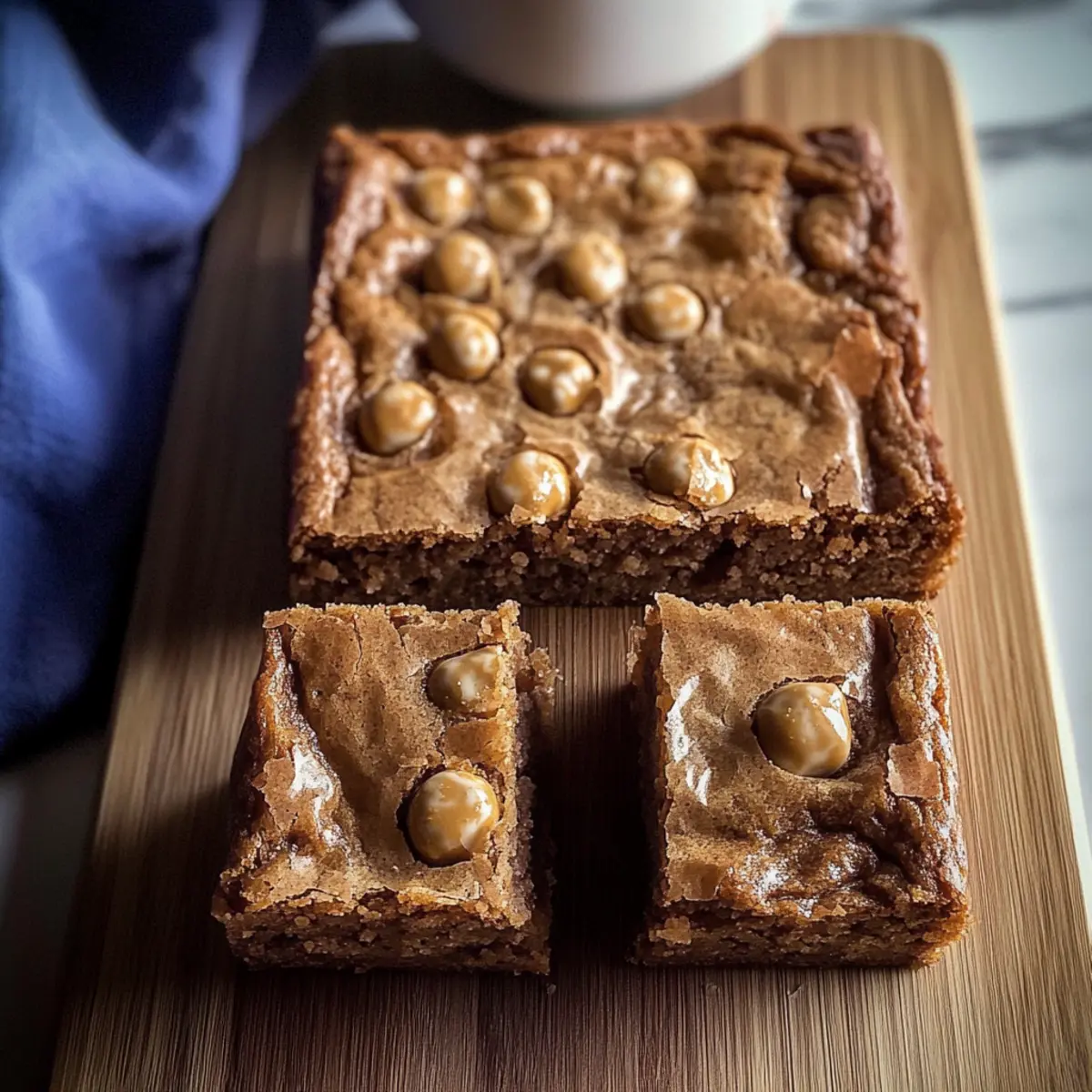• Backzeit im Auge behalten: Achte darauf, die Blondies nur bis die Ränder goldbraun sind zu backen. Eine leicht unterbackene Mitte sorgt für die perfekte, chewy Konsistenz.