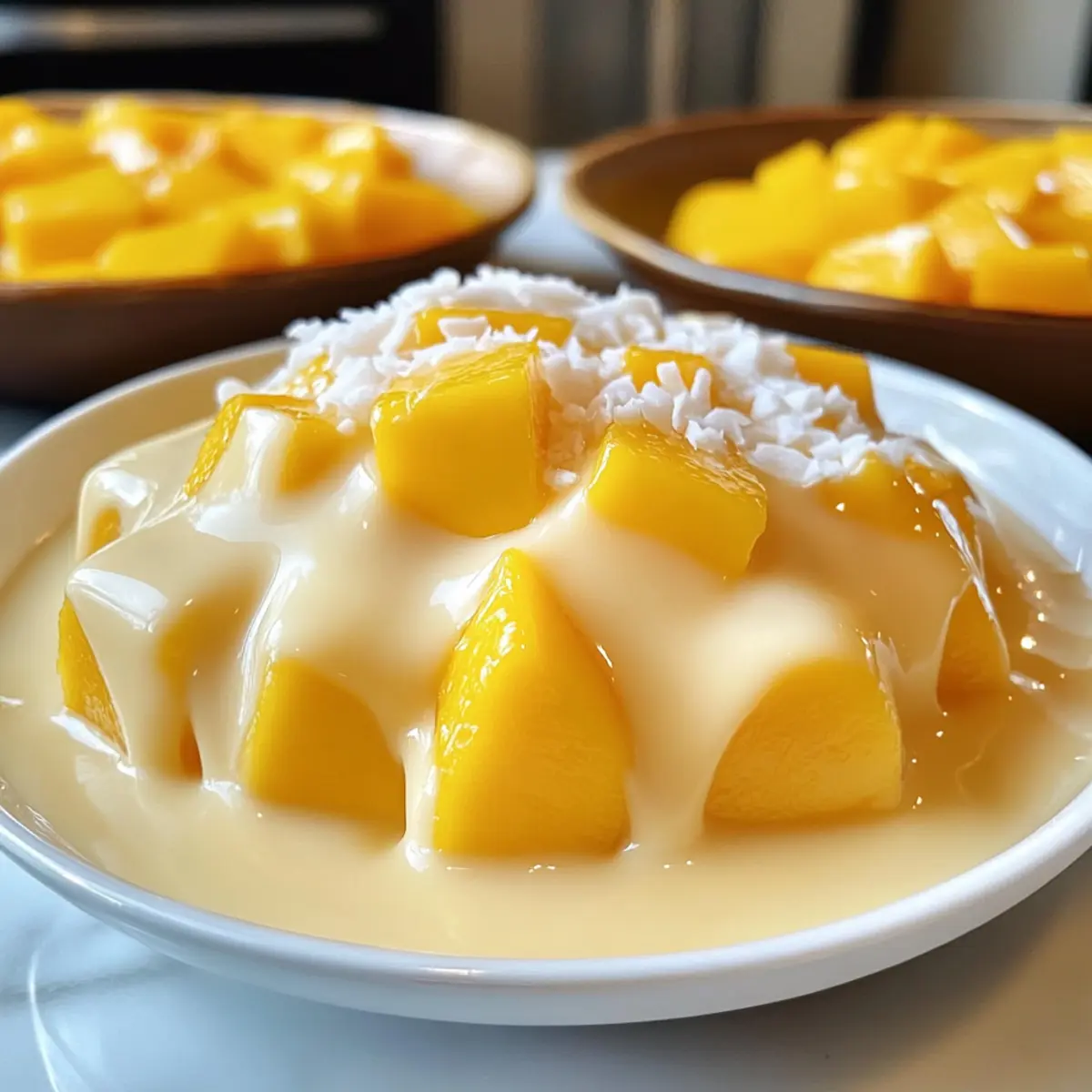 Es ist ein warmer Sommerabend, und ich kann schon das süße, fruchtige Aroma von reifen Mangos riechen, das durch die Küche zieht. Das Beste an einem perfekten Mango Pudding? Es ist nicht nur ein himmlisches Dessert, sondern auch unglaublich einfach zuzubereiten! In meinem Rezept für den Easy Simple Mango Pudding erfährst du, wie du in kurzer Zeit einen cremigen und erfrischenden Höhepunkt kreierst – ohne Kochen! Egal, ob du deine Familie an einem ganz normalen Wochentag verwöhnst oder Gäste bei einem sommerlichen Abendessen beeindruckst, diese köstliche Nachspeise wird garantiert für strahlende Gesichter sorgen. Und das Beste: Sie ist vegan und kann ohne großen Aufwand vorbereitet werden. Bist du bereit, dich in die Welt des Mango Puddings entführen zu lassen? Warum wirst du diesen Mango Pudding lieben? Einfachheit, dieses Rezept benötigt keine komplizierten Techniken – perfekt für jedes Erfahrungsniveau! Frischer Geschmack, die Süße reifer Mangos sorgt für ein einzigartiges Geschmackserlebnis. Vielseitig, ob als leichtes Dessert oder schickes Highlight auf deiner nächsten Dinnerparty, dieser Pudding passt immer. Vegan-freundlich, durch die Verwendung von Agar Agar kannst du allen diätetischen Bedürfnissen gerecht werden. Zeitersparnis, zubereitet in kurzer Zeit und perfekt zum Vorbereiten – einfach über Nacht kühlen und genießen! Du wirst erstaunt sein, wie schnell dieses cremige Dessert zur Lieblingsnachspeise deiner Freunde und Familie wird. Mango Pudding Zutaten • Für ein leckeres Geschmackserlebnis ganz ohne Kochen! Reife Mangos – die Basis für diesen Mango Pudding; verwende Kent, Ataulfo oder Alphonso für den besten Geschmack. Gelatine oder Agar Agar Pulver – sorgt für die gewünschte Konsistenz; wähle Agar Agar für eine vegane Option. Kokosmilch – bringt Cremigkeit und einen Hauch von Süße; vollfette Kokosmilch sorgt für eine reichhaltige Textur. Zucker – verleiht deinem Pudding die nötige Süße; die Menge kann je nach Süße der Mangos angepasst werden. Kaltes Wasser – aktiviert die Gelatine oder Agar Agar und ist entscheidend für das perfekte Setzen. Schritt-für-Schritt-Anleitung für Mango Pudding Step 1: Mangos pürieren Schäle, entkerne und würfle die reifen Mangos. Gib die Stücke in einen Mixer und püriere sie für etwa 60 Sekunden, bis eine glatte Masse entsteht. Achte darauf, dass keine Stückchen zurückbleiben, denn ein feiner Püree ist die Grundlage für deinen Mango Pudding. Step 2: Gelatine oder Agar Agar vorbereiten Gib die Gelatine oder das Agar Agar Pulver in eine Schüssel mit kaltem Wasser. Rühre gründlich um und lasse die Mischung für 5–10 Minuten quellen, bis sie leicht dicklich wird. Dieser Schritt ist entscheidend, um eine schöne Konsistenz im Mango Pudding zu erreichen. Step 3: Zutaten kombinieren In einer Rührschüssel vermenge den Mango-Püree mit der Kokosmilch und dem Zucker. Rühre die Mischung gut um, damit der Zucker vollständig schmilzt. Sobald die Gelatine oder das Agar Agar gequollen ist, füge es hinzu und schlage alles kräftig, bis die Mischung schön gleichmäßig und cremig wird. Step 4: Erwärmen der Mischung Erhitze die gesamte Mischung vorsichtig in einem Topf bei niedriger bis mittlerer Hitze für etwa 4–5 Minuten. Rühre ständig, bis die Gelatine oder das Agar Agar vollständig aufgelöst ist. Achte darauf, dass die Mischung nicht kocht, da dies die feine Textur des Mango Puddings beeinträchtigen kann. Step 5: Pudding einfüllen Sobald die Mischung gleichmäßig und warm ist, gieße sie vorsichtig in Dessertschalen oder Förmchen. Achte darauf, Luftblasen zu vermeiden, indem du die Mischung leicht hin und her schwenkst. Die Puddingmasse sollte gleichmäßig verteilt sein, um ein attraktives Endprodukt zu gewährleisten. Step 6: Kühlen bis zum Setzen Decke die Schalen mit Frischhaltefolie ab und stelle sie in den Kühlschrank. Lasse den Mango Pudding mindestens 6 Stunden oder über Nacht kühlen, damit er fest wird und die perfekte Gelassenheit erreicht. Der Pudding sollte am Ende leicht wackeln und eine glatte Oberfläche haben. Mango Pudding Variationen Lass deiner Kreativität freien Lauf und passe dieses Rezept nach deinem Geschmack an! Veganer Genuss: Ersetze Gelatine durch Agar Agar für ein vollständig pflanzliches Dessert. Zitrusfrucht-Akzent: Füge etwas Limettensaft und -zesten hinzu, um die fruchtigen Aromen aufzupeppen. Tropische Note: Mixe pürierten Ananas oder Kokosnuss in die Mango-Püree für einen zusätzlichen tropischen Twist. Nussiger Crunch: Garniere den Pudding mit gerösteten Mandelsplittern oder Kokosraspeln für einen knusprigen Biss. Süßes Erlebnis: Verwende Honig oder Agavendicksaft statt Zucker, wenn du eine alternative Süßungsquelle ausprobieren möchtest. Kaffee-Liebhaber: Mische einen Schuss kalten Kaffee in die Mischung für eine unerwartete, köstliche Variante. Eisige Erfrischung: Trage den Pudding als Frozen Mango Dessert auf, indem du ihn nach dem Kühlen einfrierst und dann vor dem Servieren pürierst. Schokoladige Versuchung: Füge etwas ungesüßtes Kakaopulver hinzu, um eine interessante Schokoladennote zu kreieren. Egal, ob du dir eine fruchtige Komponente wünschst oder einen crunchy Biss hinzufügst, mit diesen Variationen wird jeder Löffel deines Mango Puddings zu einem neuen Genuss! Lagerungstipps für Mango Pudding Zimmertemperatur: Der Mango Pudding sollte nicht bei Zimmertemperatur gelagert werden, da dies die Textur beeinträchtigen kann. Kühlschrank: Bewahre Reste in einem luftdichten Behälter im Kühlschrank auf, damit der Pudding bis zu 3 Tage frisch bleibt und seinen köstlichen Geschmack behält. Einfrieren: Vermeide das Einfrieren, um die cremige Textur des Mango Puddings zu erhalten. Falls das Einfrieren unbedingt nötig ist, tau ihn über Nacht im Kühlschrank auf. Wiedererwärmen: Der Mango Pudding sollte nicht wiedererwärmt werden; serviere ihn immer kühl für das beste Geschmackserlebnis. Vorbereitu