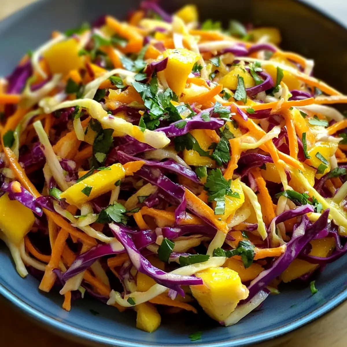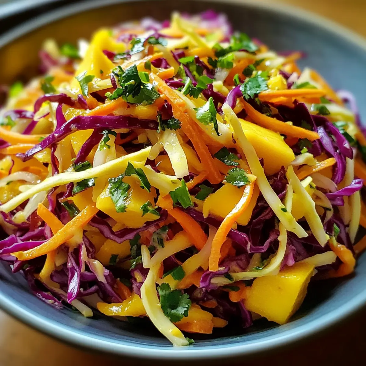Es war ein heißer Sommertag, als mir der Duft von frisch geschnittenem Obst und knackigem Gemüse in die Nase stieg. Diese Aromen ließen mich sofort an einen erfrischenden Mango-Slaw denken – eine Kombination aus süßen Mangos, crunchy Kohl und knackigen Karotten, die einfach perfekt für jedes Grillfest ist. Mein Rezept für Mango-Slaw ist nicht nur vegan und kalorienarm, sondern lässt sich auch im Handumdrehen zubereiten, sodass du mehr Zeit mit deinen Liebsten verbringen kannst. Und wenn du auf der Suche nach einer neuen Beilage für deine nächste BBQ-Session oder zum perfekten Topping für Tacos bist, dann könnte dieser salzige-süße Genuss genau das sein, was du brauchst! Möchtest du wissen, wie sich die Aromen zu einem wundervollen Geschmackserlebnis vereinen? Lass uns gemeinsam in die Welt des Mango-Slaw eintauchen! Warum wirst du diesen Mango-Slaw lieben? Frische, kreative Mischung: Diese Mango-Slaw bringt einen Hauch von tropischem Flair auf deinen Tisch. Die Kombination aus süßen Mangos und knackigem Gemüse sorgt für ein Geschmacksfeuerwerk! Einfache Zubereitung: Mit nur wenigen Zutaten und einfacher Zubereitung ist dieses Rezept perfekt für schnelle, gesunde Mahlzeiten. Du kannst den Slaw sogar einen Tag im Voraus vorbereiten! Vielseitige Beilage: Egal, ob zu gegrilltem Fleisch oder als Taco-Topping – dieser Slaw passt zu jedem Anlass und rundet dein Gericht ab. Nährstoffreich und leicht: Als kalorienarme, vegane Option ist dieses Gericht ein Genuss, der die Gesundheit nicht vernachlässigt. Ideal für alle, die frische, gesunde Kost suchen. Ein Blickfang auf dem Tisch: Die bunten Farben und knackigen Texturen werden deine Gäste begeistern und für Gesprächsthemen sorgen. Probiere auch meine anderen köstlichen Salate wie Kohlrabi-Salat mit Apfel. Mango-Slaw Zutaten • Frische und köstliche Zutaten für einen perfekten Mango-Slaw. Für den Slaw Mango – sorgt für Süße und Saftigkeit; Substitution: Kann durch Papaya oder Ananas ersetzt werden für eine ähnliche Süße. Kohl – fügt Crunch und Textur hinzu; Prep-Tipp: Fein schneiden für das beste Mundgefühl. Karotten – bringen Knackigkeit und natürliche Süße; Substitution: Zusätzliche knackige Gemüse wie Paprika können verwendet werden. Für das Dressing Limettensaft – sorgt für Frische und Säure; Substitution: Zitronensaft kann für einen ähnlichen Effekt verwendet werden. Honig – liefert Süße und Glanz; Substitution: Agavensirup oder Ahornsirup sind vegane Alternativen. Olivenöl – verleiht Reichhaltigkeit und hilft, die Aromen zu verbinden; Substitution: Jedes leichte Öl kann verwendet werden. Salz – hebt die Aromen hervor; Hinweis: Nach persönlichem Geschmack anpassen. Schritt-für-Schritt-Anleitung für Mango-Slaw Step 1: Zutaten vorbereiten Schneide den Kohl und die Karotten in feine Streifen und würfle die Mango in mundgerechte Stücke. Nutze dafür ein scharfes Messer und ein Schneidebrett für eine effiziente Zubereitung. Achte darauf, die Karotten fest zuzuschneiden, um eine knusprige Textur im Mango-Slaw zu gewährleisten, die perfekt zu den saftigen Mangos passt. Step 2: Dressing zubereiten In einer kleinen Schüssel, verrühre den Limettensaft, den Honig und das Olivenöl mit einem Schneebesen. Mische die Zutaten, bis sie gut emulgiert sind und eine glatte Konsistenz entsteht. Das Dressing sollte glänzend und gleichmäßig sein, um den Mango-Slaw harmonisch abzurunden. Step 3: Zutaten kombinieren Gib den geschnittenen Kohl, die Karotten und die Mango in eine große Rührschüssel. Verwende eine große Schaufel oder einen Holzlöffel, um die Zutaten vorsichtig zu vermengen. Achte darauf, dass die Mango gleichmäßig verteilt ist, um das frische Aroma im gesamten Slaw zu fördern. Step 4: Slaw anrichten Gieße das Dressing über die Mischung in der Rührschüssel und werfe alles vorsichtig zusammen. Stelle sicher, dass jeder Bissen des Mango-Slaw gleichmäßig mit dem Dressing bedeckt ist, was die Aromen intensiviert. Lass den Slaw für 5 Minuten ruhen, um die Geschmäcker zu verbinden. Step 5: Servieren Serviere den Mango-Slaw sofort oder stelle ihn in den Kühlschrank, um ihn etwas abzukühlen. Ein kalter Slaw bringt die Frische der Zutaten optimal zur Geltung. Garnieren kannst du den Slaw optional mit frischen Kräutern oder weiteren Gemüsestücken für den letzten Schliff. Was passt gut zu Mango-Slaw? Genieße eine harmonische kulinarische Erfahrung, indem du die frische, bunte Welt von Mango-Slaw mit passenden Beilagen und Getränken kombinierst. Grilliertes Hähnchen: Zartes, saftiges Hähnchen bringt eine herzhafte Komponente ins Spiel und ergänzt die Süße des Slaws. Fisch-Tacos: Die frischen Aromen des Slaws sind die perfekte Begleitung zu knusprigen Fisch-Tacos, die einen tollen Kontrast bieten. Quinoa-Salat: Ein leichter Quinoa-Salat mit frischen Kräutern harmoniert hervorragend mit der Textur des Mango-Slaw. Cremiger Avocado-Dip: Der reichhaltige Geschmack von Avocado bietet eine großartige Balance zur knackigen Frische des Slaws. Zitrus-Wasser: Ein erfrischendes Zitrus-Wasser mit Limette und Minze bringt die Aromen zusammen und erfrischt optimal an heißen Tagen. Kokosmilch-Sorbet: Zum Dessert passt ein leichtes Kokosmilch-Sorbet gut zu dem tropischen Flair des Slaws – eine süße Abkühlung. Lagerungstipps für Mango-Slaw Zimmertemperatur: Halte den Mango-Slaw nicht länger als 2 Stunden bei Zimmertemperatur, um die Frische der Zutaten zu garantieren. Kühlschrank: Bewahre den Mango-Slaw in einem luftdichten Behälter im Kühlschrank auf. Dort hält er sich bis zu 2 Tage, jedoch am besten genossen am ersten Tag. Gefrierer: Mango-Slaw sollte nicht eingefroren werden, da die Textur der frischen Zutaten beim Auftauen leidet. Wiedererwärmen: Wenn du Reste hast, verwende sie am besten kalt, um die knackige Frische des Slaws zu erhalten. Mango-Slaw für die schnelle Vorbereitung Diese Mango-Slaw ist ideal für die Wochenplanung! Du kannst die Zuta
