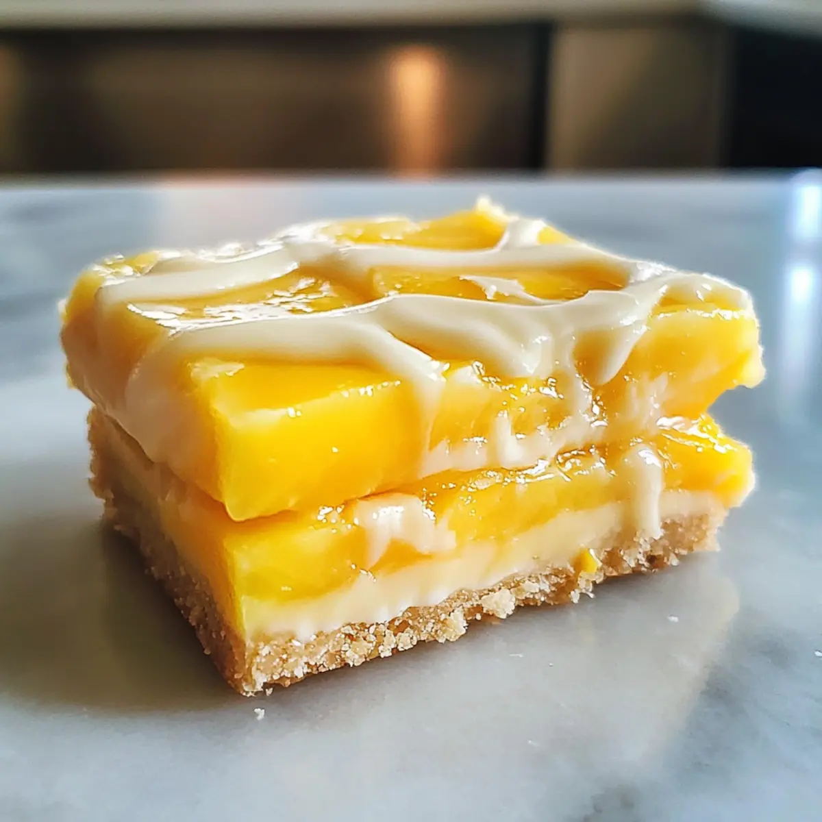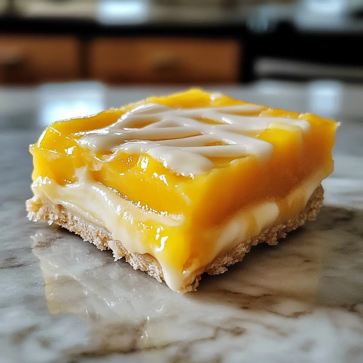 Weißt du, was mir immer ein Lächeln ins Gesicht zaubert? Der Duft von frisch gebackenem Gebäck, das die Wärme des Sommers versprüht. Diese Mango Traum Riegel sind genau das – ein Hauch tropischer Frische auf deinem Teller! Mit einem buttrigen, keksartigen Boden und einer cremigen Mango-Füllung, die einfach himmlisch schmeckt, sind sie die perfekten Begleiter für Sommerpartys oder einfach für einen süßen Nachmittagssnack. Die Zubereitung ist kinderleicht und das Ergebnis ein echter Hingucker, der alle begeistert. Bereit, deine Küche in ein Tropenparadies zu verwandeln? Lass uns gemeinsam in die Welt der Mango Traum Riegel eintauchen! Warum wirst du diese Mango Traum Riegel lieben? Einfachheit, die begeistert: Die Zubereitung dieser Riegel ist kinderleicht und benötigt keinerlei spezielle Backfähigkeiten. Fruchtige Frische, die verführt: Jeder Biss der cremigen Mango-Füllung explodiert mit intensiven tropischen Aromen, die den Sommer auf deinen Teller bringen. Vielseitigkeit, die inspiriert: Ob als Dessert für eine Gartenparty oder als süße Erfrischung am Nachmittag – diese Riegel passen immer. Zeitersparnis, die dir Freiheit gibt: Schnelle Zubereitung und Kühlzeit machen diese Riegel zu einem perfekten Snack für spontane Einladungen. Crowd-Pleaser, der begeistert: Die Kombination aus köstlichem Geschmack und ansprechender Optik sorgt dafür, dass diese Riegel bei deinen Gästen bestens ankommen. Lass uns zusammen die tropische Geschmacksexplosion dieser Mango Traum Riegel erschaffen! Mango Traum Riegel Zutaten • Schaffe den perfekten Ausgangspunkt für deine tropische Verführung! Für den Boden Allzweckmehl – gibt der Kruste die nötige Struktur; kann für eine glutenfreie Variante durch glutenfreies Mehl ersetzt werden. Ungesalzene Butter – sorgt für die reichhaltige und buttrige Note; kann durch Margarine für eine milchfreie Option ersetzt werden. Kristallzucker – süßt sowohl die Kruste als auch die Füllung; brauner Zucker bringt einen intensiveren Geschmack. Vanilleextrakt – verstärkt das Aroma; eine großartige Note, die man nicht weglassen sollte. Salz – balanciert die Süße und hebt den Geschmack hervor; entscheidend für das Aroma. Für die Füllung Mango-Püree – essenzieller Bestandteil, der den tropischen Geschmack liefert; frische oder gefrorene Mangos können verwendet werden. Große Eier – helfen, die Füllung zu setzen; für eine eifrei Variante kann man mit Flax-Eiern experimentieren (1 EL Leinsamenmehl + 2,5 EL Wasser pro Ei). Maisstärke – sorgt für die richtige Konsistenz der Füllung; kann durch Pfeilwurzmehl ersetzt werden. Zitronensaft – bringt eine erfrischende Säure, die die Süße der Mango verstärkt; Limettensaft eignet sich auch gut. Optional: Geraspelter Kokos – verleiht zusätzlichen Geschmack und Textur; kann weggelassen werden, wenn gewünscht. Viel Freude beim Kreieren dieser köstlichen Mango Traum Riegel! Schritt-für-Schritt-Anleitung für Mango Traum Riegel Step 1: Ofen vorheizen Heize deinen Ofen auf 175°C (350°F) vor. Bereite eine 20×20 cm große Backform vor, indem du sie mit Backpapier auslegst oder leicht einfettest. Diese Vorbereitungen sind wichtig, damit die Mango Traum Riegel später gleichmäßig gebacken werden und sich leicht aus der Form lösen lassen. Step 2: Den Boden zubereiten Vermische in einer Schüssel das Allzweckmehl, den Kristallzucker und das Salz. Integriere dann die weiche ungesalzene Butter sowie den Vanilleextrakt, bis ein krümeliger Teig entsteht. Du solltest eine konsistente Mischung erhalten, die sich leicht drücken lässt, um eine ideale Grundlage für deine Mango Traum Riegel zu schaffen. Step 3: Boden drücken und backen Drücke den Teig gleichmäßig in den Boden der vorbereiteten Backform. Achte darauf, dass er gut verteilt ist, und backe ihn für etwa 12-15 Minuten, bis er leicht goldbraun ist. Lass den Boden nach dem Backen etwas abkühlen, während du die Füllung vorbereitest. Step 4: Mango-Füllung zubereiten In einem Topf kombinierst du das Mango-Püree, den Zucker, die Maisstärke, den Zitronensaft und das Salz. Erhitze die Mischung bei mittlerer Hitze und rühre ständig, bis die Füllung dick wird (in etwa 5-7 Minuten). Achte darauf, dass die Mischung gleichmäßig kocht, und nimm sie dann vom Herd. Step 5: Eier und Vanille hinzugeben Lass die Mango-Mischung leicht abkühlen, bevor du die Eier und den Vanilleextrakt hinzufügst. Rühre die Mischung gut durch, bis sie eine glatte Konsistenz erreicht. Diese Schritte sind entscheidend, um eine cremige und leckere Füllung für die Mango Traum Riegel zu erhalten. Step 6: Füllung kombinieren Gieße die Mango-Füllung gleichmäßig über den bereits gebackenen Boden in der Backform. Verteile die Füllung sorgfältig, sodass sie gleichmäßig auf der gesamten Oberfläche sitzt. Dies sorgt dafür, dass jede Ecke deiner Mango Traum Riegel die köstliche Füllung hat. Step 7: Riegel backen Setze die Backform wieder in den Ofen und backe die Riegel für weitere 20-25 Minuten, bis die Füllung fest und leicht goldbraun ist. Beobachte die Farbe der Füllung, um sicherzustellen, dass sie nicht zu dunkel wird und perfekt gegart ist. Step 8: Abkühlen und kühlen Lasse die Mango Traum Riegel bei Raumtemperatur abkühlen, bevor du sie für 1-2 Stunden in den Kühlschrank stellst. Diese Kühlzeit ist wichtig, damit die Riegel fest werden und sich leichter schneiden lassen. Step 9: Schneiden und servieren Nachdem die Riegel gut gekühlt sind, schneide sie in gleichmäßige Quadrate. Serviere die Mango Traum Riegel gut gekühlt und garniere sie nach Belieben mit geraspeltem Kokos oder einer Glasur. Diese letzten Schritte verleihen deinen Riegeln das besondere Etwas! Aufbewahrungstipps für Mango Traum Riegel Zimmertemperatur: Lagere die Mango Traum Riegel nicht länger als 2 Stunden bei Raumtemperatur, um ihre Frische und Textur zu bewahren. Kühlschrank: Bewahre die Riegel in einem luftdichten Behälter im Kühlschr
