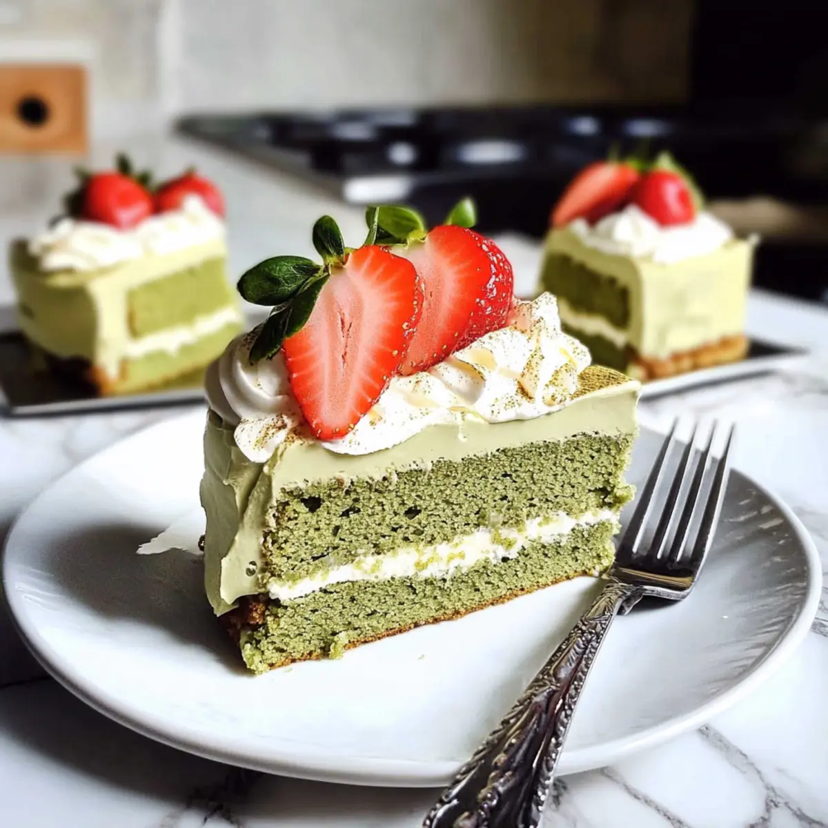 Hast du schon einmal von einer süßen Verführung gehört, die gleichzeitig leicht und unbeschwert ist? Dieser Light and Luscious Matcha Tres Leches Kuchen begeistert durch seine himmlisch luftige Textur und die subtile Kombination aus süßem und umami-reichem Matcha. In diesem Rezept wirst du lernen, wie man den einzigartigen, matcha-infusierten Schwammkuchen zubereitet, der in einer verführerischen Mischung aus drei Milchsorten badet. Ob für ein Gartenfest, die nächste Familienfeier oder einfach als köstlicher Abschluss eines Wochenendgerichts – dieser Kuchen ist nicht nur eine Freude für die Geschmacksnerven, sondern auch ein perfektes Rezept zum Vorbereiten. Fragst du dich, wie du die frische Note des Matcha noch weiter steigern kannst? Lass uns gemeinsam die Geheimnisse dieser japanisch-lateinamerikanischen Fusion entdecken! Warum ist dieser Kuchen so besonders? Leichte Textur: Der Matcha Tres Leches Kuchen verbindet die fluffige Konsistenz eines Schaums mit der Cremigkeit dreier Milchsorten, was ihn einzigartig macht. Vielseitigkeit pur: Ideal für Gartenfeste oder einfach als Nachspeise am Wochenende, kommt er bei jeder Gelegenheit gut an. Gesunde Süße: Mit weniger Zucker, aber all dem Geschmack, ist dieser Kuchen eine ausgeglichene Wahl für Dessertliebhaber. Einfache Zubereitung: Die Schritte sind unkompliziert, sodass auch Kochanfänger erfolgreich sein können – ohne viel Zeitaufwand! Schmackhafte Fusion: Die Kombination von japanischem Matcha und dem klassischen Tres Leches ergibt ein Geschmackserlebnis, das du so schnell nicht vergessen wirst. Wenn du mehr über verschiedene Variationen erfahren möchtest, schau dir auch unser Rezept für Zucchini Kuchen an! Matcha Tres Leches Kuchen Zutaten • Für den perfekten Geschmack und die himmlische Textur. Für den Kuchen Eier – sorgen für Struktur und Feuchtigkeit; verwende zimmerwarme Eier für bessere Belüftung. Castor Zucker – verleiht Süße und hilft, eine leichte Textur zu kreieren; ersetze ihn bei Bedarf durch feinen Haushaltszucker. Milch – sorgt für Flüssigkeit und Feuchtigkeit; kann durch pflanzliche Milch für eine vegane Variante ersetzt werden. Vanilleextrakt – verbessert das Geschmackserlebnis; verwende reinen Extrakt für die besten Ergebnisse. Kuchenmehl – sorgt für einen zarten Teig; kann durch Allzweckmehl ersetzt werden, was möglicherweise eine dichtere Konsistenz ergibt. Matcha-Pulver – verleiht Geschmack und Farbe; setze hochwertiges kulinarisches Matcha für die besten Ergebnisse ein. Backpulver & Salz – wirken als Treibmittel und Geschmacksverstärker. Weinsteinsäure – stabilisiert das Eiweiß; kann durch Zitronensaft oder Essig ersetzt werden. Für den Milchüberzug Gezuckerter Kondensmilch – sorgt für Reichhaltigkeit und Süße; kann durch Kokoscreme für eine milchfreie Option ersetzt werden. Verdampfte Milch & normale Milch – tragen zur Milchmischung bei; die Verhältnisse können für die gewünschte Cremigkeit angepasst werden. Für das Topping Schlagsahne – sorgt für Reichhaltigkeit; kann durch Kokoscreme für eine leichtere Option ersetzt werden. Puderzucker – süßt die Schlagsahne; kann durch fein gemahlenen Kristallzucker verwendet werden. Erdbeeren – dienen zur Garnierung; bringen visuelle Anziehungskraft und frischen Geschmack. Durch die Verwendung dieser Zutaten erhältst du einen köstlichen Matcha Tres Leches Kuchen, der nicht nur die Augen, sondern auch die Gaumen der Gäste verzaubert! Schritt-für-Schritt-Anleitung für den Matcha Tres Leches Kuchen Step 1: Ofen vorheizen und Backform vorbereiten Heize deinen Ofen auf 160 °C (320 °F) vor. Bereite eine 20 cm (8 Zoll) große quadratische Backform vor, indem du den Boden mit Backpapier auslegst und die Ränder leicht einfettest. So bleibt der Kuchen beim Herausnehmen unversehrt und lässt sich einfacher schneiden. Step 2: Eigelb schlagen und Mischung herstellen Schlage die Eigelbe mit 60 g Castor-Zucker in einer Rührschüssel, bis die Masse hell und dick ist, etwa 5 Minuten. Füge dann 120 ml Milch und 1 Teelöffel Vanilleextrakt hinzu und verrühre alles gut. Diese cremige Mischung wird die Basis für deinen Matcha Tres Leches Kuchen bilden. Step 3: Trockene Zutaten hinzufügen Siebe 120 g Kuchenmehl, 2 Teelöffel Matcha-Pulver, 1 Teelöffel Backpulver und eine Prise Salz in die Eigelbmischung. Rühre vorsichtig, bis alles gut vermischt ist, aber achte darauf, nicht zu lange zu rühren. Die Kombination der trockenen Zutaten mit der feuchten Mischung sorgt für eine leicht luftige Textur. Step 4: Eiweiß schlagen In einer separaten Schüssel schlage die Eiweiße mit 1/2 Teelöffel Weinsteinsäure, bis sie schaumig sind. Füge nach und nach die verbleibenden 60 g Zucker hinzu und schlage weiter, bis steife Spitzen entstehen. Dies gibt dem Kuchen seine Luftigkeit und stellt sicher, dass er schön aufgeht. Step 5: Eiweiß unterheben Falte die schaumige Eiweißmasse in drei Portionen vorsichtig in die Eigelb-Masse ein. Verwende dazu einen großen Spatel und achte darauf, nicht zu kräftig zu rühren, damit die Luftigkeit erhalten bleibt. So gelingt der Matcha Tres Leches Kuchen mit der perfekten, leichten Textur. Step 6: Teig backen Gieße den fertigen Teig vorsichtig in die vorbereitete Backform und glätte die Oberfläche mit einem Spatel. Backe den Kuchen für 20-25 Minuten im vorgeheizten Ofen, bis er leicht goldbraun ist und ein Zahnstocher sauber herauskommt. Lass den Kuchen anschließend auf einem Gitterrost auskühlen. Step 7: Milchüberzug vorbereiten Während der Kuchen auskühlt, bereite die Milchmischung vor, indem du 300 ml gezuckerte Kondensmilch, 120 ml verdampfte Milch und 120 ml normale Milch in einer Schüssel gut vermischst. Füge 2 Teelöffel Matcha-Pulver hinzu und rühre, bis eine gleichmäßige, cremige Konsistenz entsteht. Dieser Mix wird dem Kuchen die feuchte, süße Note verleihen. Step 8: Kuchen einweichen Wenn der Kuchen vollständig abgekühlt ist, steche mit einem 