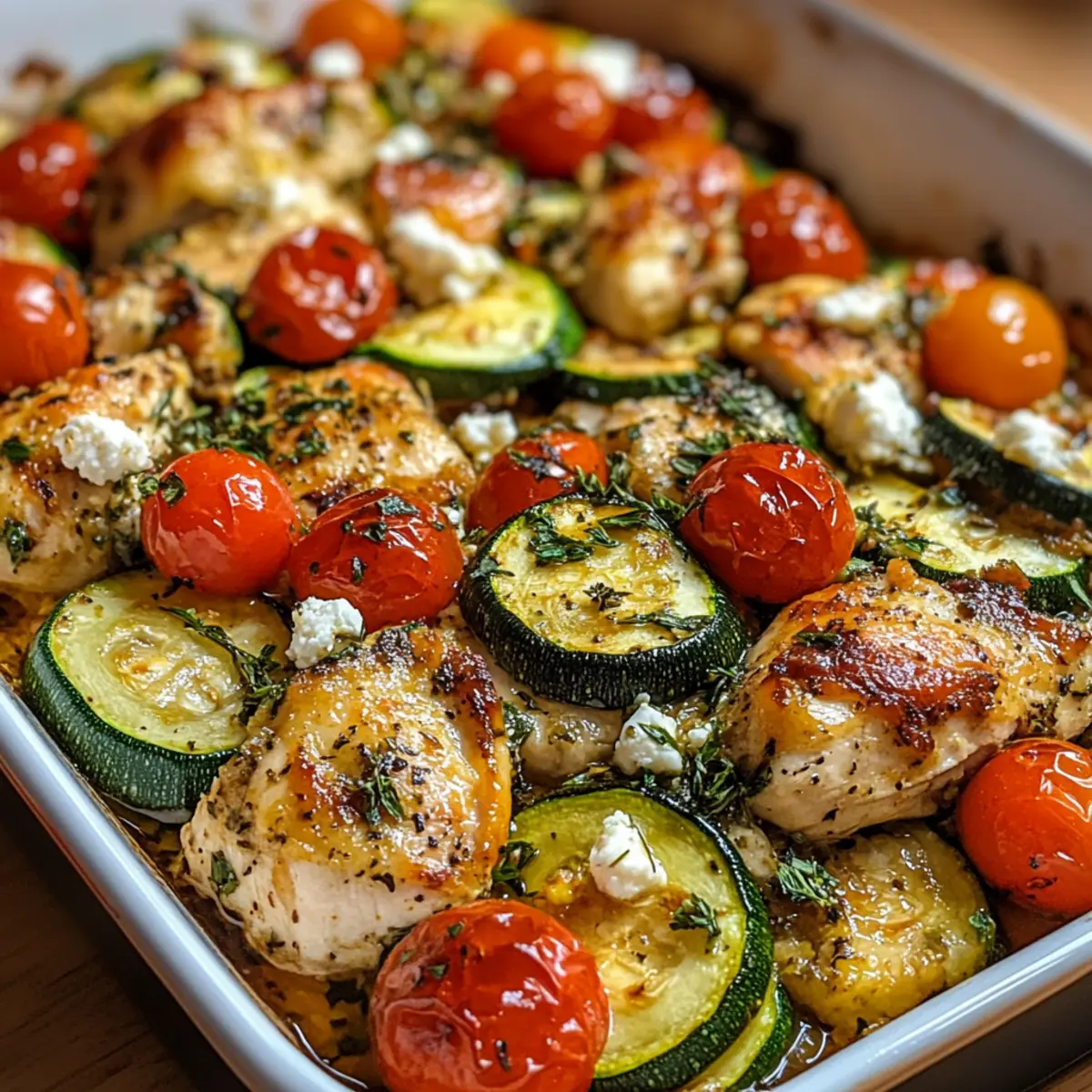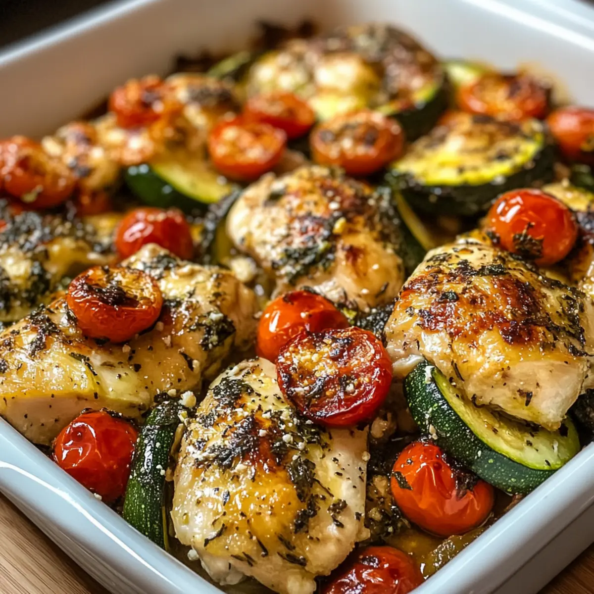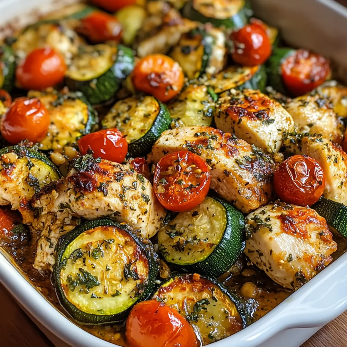 Beim Überfliegen meiner Rezepte stieß ich auf einen echten Schatz: den Mediterranen Hähnchen-Zucchini-Auflauf. Diese einfache, gesunde und glutenfreie Köstlichkeit ist perfekt für stressige Wochentage, wenn man nur schnell etwas Leckeres zaubern möchte. In diesem Gericht vereinen sich saftiges Hähnchen, frische Zucchini und aromatische Kräuter zu einem harmonischen Geschmackserlebnis, das nicht nur den Gaumen erfreut, sondern auch das Gemüt hebt. Und die beste Nachricht? Es handelt sich um ein echtes One-Pan-Wunder, das die Küche nach dem Essen nicht in ein Chaos verwandelt. Wer könnte da widerstehen? Neugierig, wie dieses üppige Gericht in nur wenigen Schritten zubereitet wird? Warum werden Sie dieses Rezept lieben? Einfachheit: Der Mediterrane Hähnchen-Zucchini-Auflauf ist ein echtes One-Pan-Gericht, das weniger Aufwand erfordert und dennoch beeindruckend aussieht. Gesunde Zutaten: Vitalisierende und frische Zutaten machen dieses Gericht zu einer nahrhaften Wahl, ideal für bewusste Esser. Köstlicher Geschmack: Die Kombination von zartem Hähnchen, saftiger Zucchini und würzigem Feta sorgt für ein Geschmackserlebnis, das begeistert und zufriedenstellt. Vielseitigkeit: Variieren Sie die Gemüsesorten oder ersetzen Sie das Hähnchen durch pflanzliche Proteinquellen, um das Rezept nach Ihrem Geschmack anzupassen. Perfektes Meal Prep: Ideal für die Vorbereitung von Mahlzeiten: Der Auflauf ist nicht nur schnell zubereitet, sondern kann auch problemlos aufbewahrt werden. Sie können die Reste ganz einfach genießen, zum Beispiel mit frischem Quinoa oder einem leichten Salat. Mediterraner Hähnchen-Zucchini-Auflauf Zutaten Für das Hähnchen • Hähnchenbrustfilets – Hauptproteinquelle; verwenden Sie Hähnchenschenkel für mehr Saftigkeit. Für das Gemüse • Zucchini – Fügt Feuchtigkeit und Textur hinzu; kann durch Auberginen oder Paprika ersetzt werden. • Cherrytomaten – Bringt Süße und Säure; ersetzen Sie sie durch herkömmliche Tomaten, falls erforderlich. • Rote Zwiebel – Bietet Süße und Geschmacksvertiefung; gelbe Zwiebel kann verwendet werden. • Knoblauch – Verleiht Aroma und Geschmack; frischer Knoblauch ist bevorzugt, aber Knoblauchpulver ist eine schnelle Alternative. Für die Würze • Olivenöl – Zum Anbraten und für zusätzlichen Reichtum; extra natives Olivenöl sorgt für den besten Geschmack. • Feta-Käse – Fügt Cremigkeit und Würze hinzu; Alternativen sind Ziegenkäse oder Mozzarella für einen anderen Geschmack. • Salz & Pfeffer – Essenziell für die Würze; nach Geschmack anpassen. • Paprika – Fügt Wärme und Farbe hinzu; ist optional, steigert jedoch den Geschmack. • Frische Kräuter (Petersilie, Basilikum, Oregano) – Fügt Frische und aromatische Ausstrahlung hinzu; kann je nach Verfügbarkeit angepasst werden. Insgesamt sorgt der Mediterraner Hähnchen-Zucchini-Auflauf für ein gesundes und befriedigendes Essen, das all Ihre Sinne ansprechen wird! Schritt-für-Schritt-Anleitung für den Mediterranen Hähnchen-Zucchini-Auflauf Step 1: Ofen vorheizen Heizen Sie den Ofen auf 200°C vor. Dies sorgt dafür, dass Ihr Mediterraner Hähnchen-Zucchini-Auflauf gleichmäßig gegart wird. Während der Ofen vorheizt, können Sie bereits mit der Vorbereitung der Zutaten beginnen, um Zeit zu sparen. Step 2: Gemüse vorbereiten Schneiden Sie die Zucchini in dünne Scheiben und halbieren Sie die Cherrytomaten. Würfeln Sie die rote Zwiebel und hacken Sie den Knoblauch fein. Achten Sie darauf, alle Zutaten in gleichmäßige Stücke zu schneiden, damit sie gleichmäßig garen und gut miteinander harmonieren. Step 3: Hähnchen vorbereiten Schneiden Sie die Hähnchenbrustfilets in mundgerechte Stücke. Diese gleichmäßigen Stücke sorgen dafür, dass das Hähnchen während des Kochens gleichmäßig gart und saftig bleibt. Eine scharfe Klinge hilft Ihnen, präzise Schnitte zu machen. Step 4: Zwiebel und Knoblauch anbraten Erhitzen Sie in einer großen Pfanne 2 Esslöffel Olivenöl bei mittlerer Hitze. Fügen Sie die gewürfelte Zwiebel und den gehackten Knoblauch hinzu und braten Sie beides an, bis es duftet und die Zwiebeln glasig sind, etwa 3-4 Minuten. Rühren Sie regelmäßig um, damit nichts anbrennt. Step 5: Hähnchen hinzufügen Geben Sie die Hähnchenstücke in die Pfanne und braten Sie sie an, bis sie leicht braun sind, aber noch nicht durchgegart, ungefähr 5-6 Minuten. Dies gibt dem Hähnchen einen köstlichen Geschmack und sorgt dafür, dass es zart bleibt im Mediterranen Hähnchen-Zucchini-Auflauf. Step 6: Zusammenstellen des Auflaufs Übertragen Sie die Hähnchenmischung in eine große Auflaufform. Schichten Sie die Zucchini und Cherrytomaten darauf. Achten Sie darauf, eine gleichmäßige Schicht zu bilden, damit alle Zutaten gut garen und sich die Aromen verbinden. Step 7: Würzen und Öl hinzufügen Würzen Sie die Mischung mit Salz, Pfeffer, Paprika und frischen Kräutern. Beträufeln Sie alles mit 2 Esslöffeln Olivenöl und streuen Sie zerbröckelten Feta-Käse darüber. Die Gewürze und der Feta verleihen dem Auflauf seinen aromatischen Geschmack. Step 8: Backen Backen Sie den Auflauf für 20-25 Minuten im vorgeheizten Ofen, bis das Hähnchen durchgegart und die Zucchini zart ist. Die Oberseite sollte leicht goldbraun und der Feta schön geschmolzen sein. Überprüfen Sie gelegentlich, um sicherzustellen, dass nichts übergart. Step 9: Servieren und garnieren Lassen Sie den Mediterranen Hähnchen-Zucchini-Auflauf einige Minuten ruhen, bevor Sie ihn servieren. Garnieren Sie ihn nach Belieben mit frischen Kräutern und genießen Sie ihn warm. Diese Extra-Ruhezeit sorgt dafür, dass sich die Aromen setzen und das Gericht köstlich bleibt. Was passt zum Mediterranen Hähnchen-Zucchini-Auflauf? Genießen Sie den vollen Genuss eines kompletten Menüs, das die Aromen der Mittelmeer-Küche unterstreicht und Ihre Gäste begeistern wird. Griechischer Salat: Erfrischend und knackig, dieser Salat harmoniert perfekt mit d