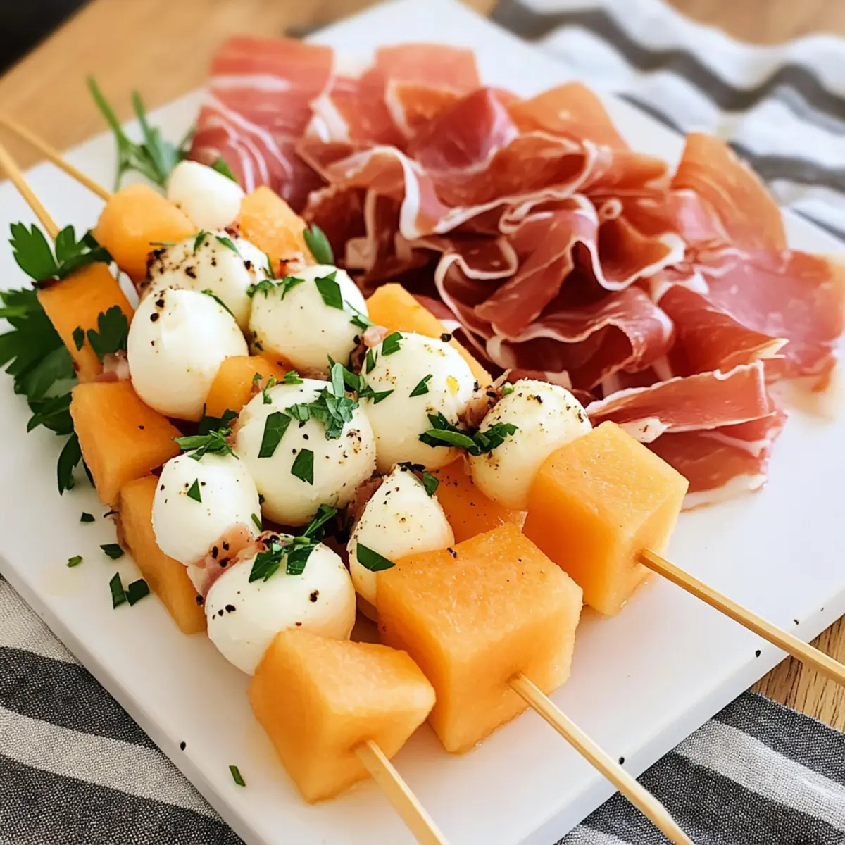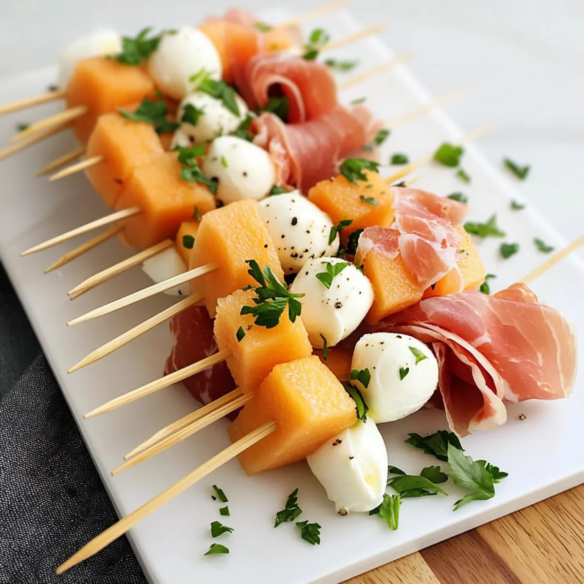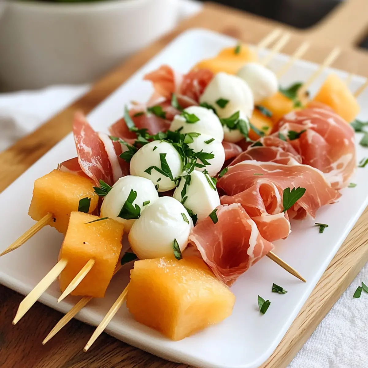 Der Duft von reifen Melonen und salzigem Prosciutto ist für mich der Inbegriff des Sommers. Diese Melonen-, Prosciutto- und Mozzarella-Spieße sind nicht nur ein farbenfrohes Highlight auf jedem Grillfest, sie sind auch unglaublich einfach zuzubereiten. Mit nur wenigen Zutaten bringst du eine harmonische Kombination aus süß, salzig und cremig auf den Teller, die jeden begeistern wird. Ein köstlicher Balsamico-Belag rundet das Ganze ab und gibt den Spießen den letzten Schliff. Perfekt als leichte Vorspeise oder Sommer-Snack, sind sie ein Publikumsliebling, der garantiert Gespräche anregt. Wer könnte da widerstehen? Lass uns gemeinsam herausfinden, wie einfach es ist, diese fantastischen Häppchen zu kreieren! Warum sind diese Spieße so beliebt? Einfachheit, die alles verändern kann: Diese Melonen-, Prosciutto- und Mozzarella-Spieße sind in kürzester Zeit zubereitet und benötigen keine komplizierten Kochkünste. Frische Aromen vereinen sich in jedem Bissen, sodass du die saftige Süße der Melone, den salzigen Prosciutto und die cremige Mozzarella perfekt genießen kannst. Vielseitigkeit wird hier großgeschrieben – du kannst die Zutaten nach Lust und Laune variieren, beispielsweise mit Honigmelone oder Basilikum. Optische Freude: Die bunten Farben der Spieße machen sie zum Blickfang auf jedem Tisch. Diese Spieße sind nicht nur schnell gemacht, sondern auch ein großartiger Gesprächsstarter bei deinen Sommerfesten. Perfekt geeignet, um deine Grillparty aufzupeppen . Melonen-, Prosciutto- und Mozzarella-Spieße Zutaten • Diese köstlichen Spieße sind einfach zuzubereiten und benötigen nur wenige Zutaten, die tolle Aromen miteinander verbinden. Für die Spieße Cantaloupe – sorgt für Süße und Feuchtigkeit; schneide sie in 1-Zoll-Würfel für eine gleichmäßige Zusammenstellung. Prosciutto – bringt einen salzigen, herzhaften Geschmack und eine reiche Textur; dünn geschnittenen Schinken ist eine budgetfreundliche Alternative. Mozzarella-Bällchen (Ciliegine) – sorgt für Cremigkeit und einen milden Geschmack; frischer Mozzarella wird für die beste Textur empfohlen. Für die Garnitur Frische Petersilie, gehackt – verleiht eine schöne Frische und Farbe; optional für die Präsentation. Balsamico-Reduktion – verstärkt den Geschmack mit einem süßen und saftigen Profil; vor dem Servieren leicht darüberträufeln für den besten Geschmack. Schritt-für-Schritt-Anleitung für Melonen-, Prosciutto- und Mozzarella-Spieße Step 1: Zutaten vorbereiten Schneide die Cantaloupe in 1-Zoll-Würfel und lege sie beiseite. Nimm die frischen Mozzarella-Bällchen und lasse sie abtropfen, damit sie nicht zu feucht sind. Diese Vorbereitung dauert etwa 10 Minuten. Achte darauf, dass die Zutaten frisch und von guter Qualität sind, um das beste Aroma in deinen Melonen-, Prosciutto- und Mozzarella-Spießen zu gewährleisten. Step 2: Spieße zusammenstellen Nimm einen Schaschlikspieß und beginne mit einem Stück Cantaloupe, gefolgt von einer Mozzarella-Ball und dann einem Streifen Prosciutto. Wiederhole diesen Vorgang, bis der Spieß gut gefüllt ist, idealerweise mit zwei oder drei Sets von Zutaten. Diese Schritte sollten in etwa 15 Minuten abgeschlossen sein, sodass du eine schöne Kombination der Aromen in jeder Bissen bekommst. Step 3: Garnieren Wenn alle Spieße fertig sind, streue die gehackte Petersilie gleichmäßig über die zusammengestellten Spieße. Dies verleiht deinem Gericht nicht nur mehr Farbe, sondern auch eine frische Note. Die Garnierung ist ein schneller Schritt, der dir etwa 5 Minuten in Anspruch nehmen sollte und die Melonen-, Prosciutto- und Mozzarella-Spieße optisch aufwertet. Step 4: Servieren Vor dem Servieren die Balsamico-Reduktion gleichmäßig über die Spieße träufeln, um den süß-salzigen Geschmack zu intensivieren. Dies kann kurz bevor die Gäste eintreffen geschehen und benötigt weniger als 5 Minuten. Platziere die Spieße auf einer großen Platte, um eine ansprechende Präsentation zu erzielen, und sorge für einen schönen Start in die Feierlichkeit! Lagerungstipps für Melonen-, Prosciutto- und Mozzarella-Spieße Zimmertemperatur:: Diese Spieße sollten idealerweise frisch serviert werden. Bei Zimmertemperatur sind sie bis zu 2 Stunden haltbar, ohne an Qualität zu verlieren. Kühlschrank:: Wenn du sie vorbereiten möchtest, lagere die Spieße in einem luftdichten Behälter im Kühlschrank für bis zu 4 Stunden. So bleiben die Zutaten frisch und knackig. Einfrieren:: Das Einfrieren wird nicht empfohlen, da sie an Textur und Geschmack verlieren würden. Es ist am besten, die Melonen-, Prosciutto- und Mozzarella-Spieße frisch zuzubereiten. Wiederaufwärmen:: Diese Spieße sollten nicht erneut erhitzt werden. Genießen Sie sie kalt oder bei Zimmertemperatur, um das volle Geschmackserlebnis zu bewahren. Vorbereitung der Melonen-, Prosciutto- und Mozzarella-Spieße für stressfreies Genießen Diese Melonen-, Prosciutto- und Mozzarella-Spieße sind ideal für die Vorbereitung im Voraus, um dir an einem geschäftigen Tag Zeit zu sparen! Du kannst die Cantaloupe bis zu 24 Stunden im Voraus in 1-Zoll-Würfel schneiden und die Mozzarella-Bällchen abtropfen lassen, um überschüssige Feuchtigkeit zu vermeiden. Die fertigen Spieße können sogar bis zu 3 Tage im Kühlschrank aufbewahrt werden, solange du die Balsamico-Reduktion erst kurz vor dem Servieren hinzufügst, um die Frische zu bewahren. Achte darauf, die Spieße in einem luftdichten Behälter aufzubewahren, damit sie ihre Qualität behalten. Wenn es Zeit zum Servieren ist, einfach die vorbereiteten Spieße anrichten und mit der Balsamico-Reduktion toppen – so hast du im Handumdrehen ein köstliches Snack-Highlight! Expertentipps für Melonen-, Prosciutto- und Mozzarella-Spieße Zutatenqualität: Achte darauf, hochqualitativen Prosciutto und frische Mozzarella zu verwenden, um den besten Geschmack sicherzustellen. Skewer-Auswahl: Wähle Spieße, die lang genug sind, um mehrere Zutaten z
