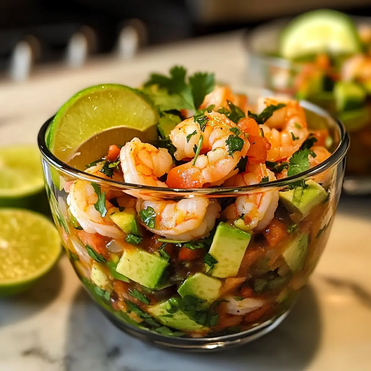 Während ich gestern in meiner Küche stand und die Sonne durch das Fenster schien, entdeckte ich eine Inspiration für einen mexikanischen Garnelen-Cocktail, der perfekt für die warmen Sommertage ist. Diese lebendige Mischung aus frischen Garnelen, cremigen Avocados und knackigen Gurken bringt nicht nur Farbe auf den Tisch, sondern ist auch schnell zubereitet – ideal für das nächste Grillfest oder ein entspanntes Familienabendessen. Darüber hinaus lässt sich dieses köstliche Gericht ganz einfach anpassen: Ob du nun Garnelen meiden möchtest oder einfach Lust auf eine fleischlose Variante hast, die Möglichkeit, Hähnchen oder Tofu zu verwenden, macht es zu einem echten Alleskönner. Ich kann es kaum erwarten, mit dir zu teilen, wie du diesen erfrischenden mexikanischen Garnelen-Cocktail zubereitest – bereit für einen geschmacklichen Ausbruch? Warum ist dieser Garnelen-Cocktail besonders? Frische Aromen: Der mexikanische Garnelen-Cocktail vereint frische Zutaten und lebendige Aromen, die jeden Biss zum Erlebnis machen. Vielfältig anpassbar: Egal, ob du Garnelen bevorzugst oder eine fleischlose Version mit Hähnchen oder Tofu ausprobieren möchtest, diese Rezeptur passt sich deinen Wünschen an. Schnell zubereitet: In nur wenigen Schritten erhältst du ein köstliches Gericht, das sich perfekt für spontane Grillpartys oder entspannte Abendessen eignet. Gesund und sättigend: Mit gesunden Fetten aus Avocados und schlankem Protein aus Garnelen bietet jedes Glas nicht nur Geschmack, sondern auch Nährstoffe. Optisch ansprechend: Die bunten Zutaten machen den Cocktail nicht nur lecker, sondern auch ein echter Hingucker auf deinem Tisch! Mexikanischer Garnelen-Cocktail Zutaten • Für jeden, der eine erfrischende Vorspeise sucht, sind die Zutaten entscheidend, um einen köstlichen mexikanischen Garnelen-Cocktail zu kreieren. Für die Basis Garnelen – Cooks quickly and serves as the primary protein for the cocktail. Substitution: Replace with grilled chicken or tofu for allergies. Tomatensaft – Forms the base of the cocktail sauce providing tanginess. Use fresh for superior taste. Limettensaft – Adds acidity and brightness to the dish. Freshly squeezed lime juice is recommended for the best flavor. Hot Sauce – Enhances heat levels according to spice tolerance. Adjust or omit based on preference. Salz und Pfeffer – Essential for seasoning the cocktail to taste. Adjust according to personal preference. Für die Frische Avocados – Adds creaminess and healthy fats. Choose ripe avocados for best flavor. Gurke – Provides a crisp texture and refreshing taste. Diced for even mixing with other ingredients. Rote Zwiebel – Contributes flavor and a slightly sweet crunch when finely chopped. Can replace with green onion for a milder taste. Tomate – Adds juiciness and is essential for the cocktail base. Ripe tomatoes enhance flavor; diced for integration. Jalapeño – Introduces spice; optional depending on heat preference. Omit for a milder flavor or reduce quantity; use fresh for better taste. Koriander – Offers a fresh, herbaceous flavor. Fresh cilantro is essential; can substitute with parsley for non-cilantro lovers. Für die Garnitur Limettenspalten – Adds a pop of color and a citrusy touch. Fresh garnishes enhance presentation and flavor. Korianderzweige – Complements the cocktail and adds visual appeal. Fresh garnishes boost the overall look of the dish. Schritt-für-Schritt-Anleitungen für den mexikanischen Garnelen-Cocktail Step 1: Zutaten vorbereiten Schäle und entdarm die Garnelen und stelle sicher, dass sie vollständig sauber sind. Währenddessen würfel die Avocados, die Gurken und die Tomaten klein. Hacke die rote Zwiebel, den Koriander und die Jalapeño fein. Achte darauf, frische Zutaten zu verwenden, um die Aromen deines mexikanischen Garnelen-Cocktails zu intensivieren. Step 2: Basis für den Cocktail mischen In einer großen Schüssel vermenge den Tomatensaft, den frisch gepressten Limettensaft und je nach Geschmack die Hot Sauce. Mit Salz und Pfeffer würzen und alles gut umrühren, bis eine homogene Mischung entsteht. Diese würzige Basis wird später für den mexikanischen Garnelen-Cocktail verwendet und gibt ihm die richtige Säure. Step 3: Zutaten kombinieren Gib die vorbereiteten Garnelen, Avocados, Gurken, rote Zwiebel, Tomaten, Jalapeño und Koriander in eine große Schüssel. Mische vorsichtig alle Zutaten, damit die Avocados nicht zerdrückt werden und eine ansprechende Textur bleibt. Diese Harmonie der Zutaten lässt deinen mexikanischen Garnelen-Cocktail lebendig wirken. Step 4: Mischung kühlen Gieße die vorbereitete Cocktailbasis über die Garnelenmischung und vermenge alles sanft, sodass die Sauce gleichmäßig verteilt wird. Decke die Schüssel mit Frischhaltefolie ab und stelle sie für etwa 30 Minuten in den Kühlschrank. Das Kühlen ermöglicht es den Aromen, sich optimal zu entfalten und einen erfrischenden Geschmack zu kreieren. Step 5: Servieren Nach der Kühlzeit kannst du den mexikanischen Garnelen-Cocktail in individuelle Gläser oder Schalen schöpfen. Garniere jedes Glas mit Limettenspalten und frischen Korianderzweigen. Der helle, einladende Look wird nicht nur deine Gäste beeindrucken, sondern auch den Geschmack verstärken – genieße diesen erfrischenden Cocktail gekühlt! Lagerungstipps für mexikanischen Garnelen-Cocktail Raumtemperatur:: Am besten frisch genießen! Bei Zimmertemperatur kann der Cocktail jedoch ca. 1 Stunde stehen bleiben, bevor er nicht mehr optimal schmeckt. Kühlschrank:: Reste in einem luftdichten Behälter bis zu 24 Stunden im Kühlschrank aufbewahren, um die Frische der Zutaten zu erhalten. Gefrierfach:: Nicht empfehlenswert, da die Textur der Garnelen und Avocados beim Auftauen beeinträchtigt wird. Wiedererwärmen:: Dieser Cocktail sollte kalt serviert werden; daher einfach direkt aus dem Kühlschrank genießen! Was passt gut zu mexikanischem Garnelen-Cocktail? Ein perfektes Zusammenspie