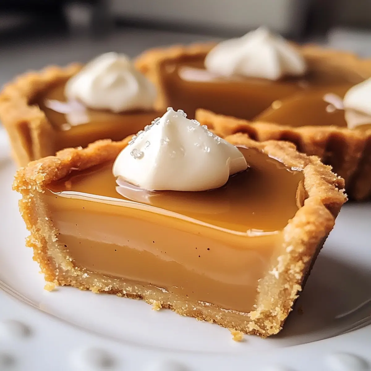 Ich kann das Aroma frisch gebackener Mini Butterscotch Tarts in der Luft spüren, während ich mich an die Momente erinnere, in denen ich sie zum ersten Mal zubereitet habe. Diese kleinen Leckerbissen vereinen einen zarten, buttrigen Boden mit einer reichhaltigen, samtigen Butterscotch-Füllung und sind die perfekte Mischung aus Komfort und Eleganz. Egal, ob zu einem besonderen Anlass oder einfach als süßer Genuss für den Alltag – diese Mini Tarts sind ein echtes Highlight, das eure Gäste begeistern wird. Mit ihrer einfachen Zubereitung sind sie außerdem ideal für jeden, der vom Fast Food weg möchte und stattdessen Freude am eigenen Kochen findet. Seid ihr bereit, euch in die Welt der süßen Köstlichkeiten zu stürzen? Warum sind Mini Butterscotch Tarts unwiderstehlich? Einzigartiger Genuss: Diese Mini Butterscotch Tarts bieten eine harmonische Kombination aus einem knusprigen, buttrigen Boden und einer luxuriösen Butterscotch-Füllung. Sie sind perfekt für besondere Anlässe und werden eure Gäste mit Sicherheit beeindrucken. Einfache Zubereitung: Mit nur wenigen Zutaten und klaren Anweisungen ist das Backen dieser Tarts spielend einfach und macht viel Spaß! Vielfältige Variationen: Wenn ihr experimentierfreudig seid, könnt ihr verschiedene Füllungen oder Toppings ausprobieren, wie z.B. Nüsse oder Schokoladenstückchen, um euren eigenen Twist zu verleihen. Zeitloser Klassiker: Diese kleinen Leckereien sind nicht nur ein Gaumenschmaus, sondern passen auch zu jedem Anlass. Ob für eine Feier oder einfach als persönliche Belohnung, sie sind immer eine gute Wahl. Vorbereitung im Voraus: Ihr könnt die Tarts problemlos im Voraus zubereiten und im Kühlschrank aufbewahren, was sie zu einer praktischen Auswahl für eure nächsten Zusammenkünfte macht! Mini Butterscotch Tarts Zutaten • Für den Mürbeteig: Allzweckmehl – bildet die Basis des Teigs; für eine glutenfreie Version kann glutenfreies Mehl verwendet werden. Puderzucker – verleiht dem Teig eine leichte Süße; kann durch powdered erythritol für eine zuckerfreie Option ersetzt werden. Salz – hebt die Aromen im Teig und der Füllung hervor. Ungesalzene Butter – sorgt für einen buttrigen, blättrigen Teig, wenn sie kalt und gewürfelt ist; Margarine kann ebenfalls verwendet werden. Ei – bindet den Teig; kein Substitute wird empfohlen, da es wichtig für die Bindung ist. • Für die Butterscotch-Füllung: Brauner Zucker – verleiht der Füllung einen reichen, karamelligen Geschmack; hellbrauner Zucker kann für einen milderen Geschmack verwendet werden. Schlagsahne – sorgt für eine seidige Konsistenz in der Füllung; halb und halb kann für eine leichtere Version gebraucht werden, aber die Textur wird sich ändern. Vanilleextrakt / Vanillepaste – verstärkt den Gesamtgeschmack der Füllung; Mandel-Extrakt kann für eine besondere Note verwendet werden. Meersalz – balanciert die Süße der Füllung aus; normales Salz kann als Ersatz verwendet werden. Für die perfekten Mini Butterscotch Tarts braucht es diese Zutaten, um ein unwiderstehliches Dessert zu kreieren, das nicht nur köstlich ist, sondern auch eine wunderbare Ergänzung zu jeder Zusammenkunft darstellt! Schritt-für-Schritt-Anleitung für Mini Butterscotch Tarts Step 1: Mürbeteig zubereiten Vermenge in einer Küchenmaschine das Allzweckmehl, den Puderzucker und das Salz. Füge die kalte, gewürfelte Butter hinzu und püriere die Mischung, bis sie grobkörnig aussieht. Gib das Ei hinzu und knete den Teig, bis er glatt ist. Forme eine Kugel, wickele sie in Frischhaltefolie und lasse sie 1 Stunde im Kühlschrank ruhen. Step 2: Teig ausrollen Rolle den gekühlten Teig zwischen zwei Backpapieren aus, bis er etwa 0,5 cm dick ist. Steche mit einem Ausstecher Kreise aus und lege sie vorsichtig in die Vertiefungen eines Muffinblechs. Achte darauf, dass der Teig gleichmäßig verteilt ist. Stelle das Muffinblech für weitere 1 Stunde in den Kühlschrank, damit der Teig fest wird. Step 3: Tarteböden vorbacken Heize den Ofen auf 180 °C vor. Stich mit einer Gabel die Unterseite jedes Teigbodens ein und belege die Böden mit Backpapier und Gewichten. Backe sie 15 Minuten lang, entferne das Gewicht und das Papier und backe sie für weitere 12-15 Minuten, bis sie trocken und goldbraun sind. Lass die Böden abkühlen. Step 4: Butterscotch-Füllung zubereiten Schmelze in einem Topf bei mittlerer Hitze den braunen Zucker und die ungesalzene Butter zusammen. Rühre langsam die warme Sahne ein, gefolgt von dem Meersalz und dem Vanilleextrakt. Lass die Mischung einige Minuten köcheln, bis sie eindickt und eine seidige Konsistenz erreicht. Step 5: Tarts füllen Gieße die warme Butterscotch-Füllung vorsichtig in die abgekühlten Tarteböden. Klopfe die Tarts leicht auf die Arbeitsfläche, um Luftblasen zu entfernen. Achte darauf, dass die Füllung gleichmäßig verteilt ist und die Böden gefüllt sind. Step 6: Tarts kühlen Decke das Muffinblech mit Frischhaltefolie ab und stelle es mindestens 2 Stunden in den Kühlschrank, besser über Nacht. Dadurch kann die Füllung fest werden und die Aromen entfalten sich. Die Mini Butterscotch Tarts sind bereit, serviert zu werden! Mini Butterscotch Tarts: Vorbereitung für stressfreies Genießen Diese Mini Butterscotch Tarts sind perfekt für die Vorbereitung, um euch Zeit zu sparen! Ihr könnt den Mürbeteig bis zu 24 Stunden im Voraus zubereiten und im Kühlschrank ruhen lassen. Einfach nach dem Kneten den Teig in Frischhaltefolie wickeln. Auch die vorgebackenen Tarteböden können euch bis zu 3 Tage vor dem Servieren beherbergen – lagert sie in einem luftdichten Behälter, damit sie schön knusprig bleiben. Wenn ihr bereit seid, einfach die Füllung zubereiten und in die abgekühlten Böden gießen. Danach sollten die Tarts mindestens 2 Stunden oder besser über Nacht im Kühlschrank gekühlt werden, um die Aromen zu intensivieren und eine perfekte Textur zu erreichen. So gelingen euch die Mini Butterscotch 