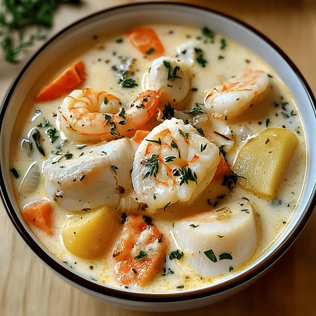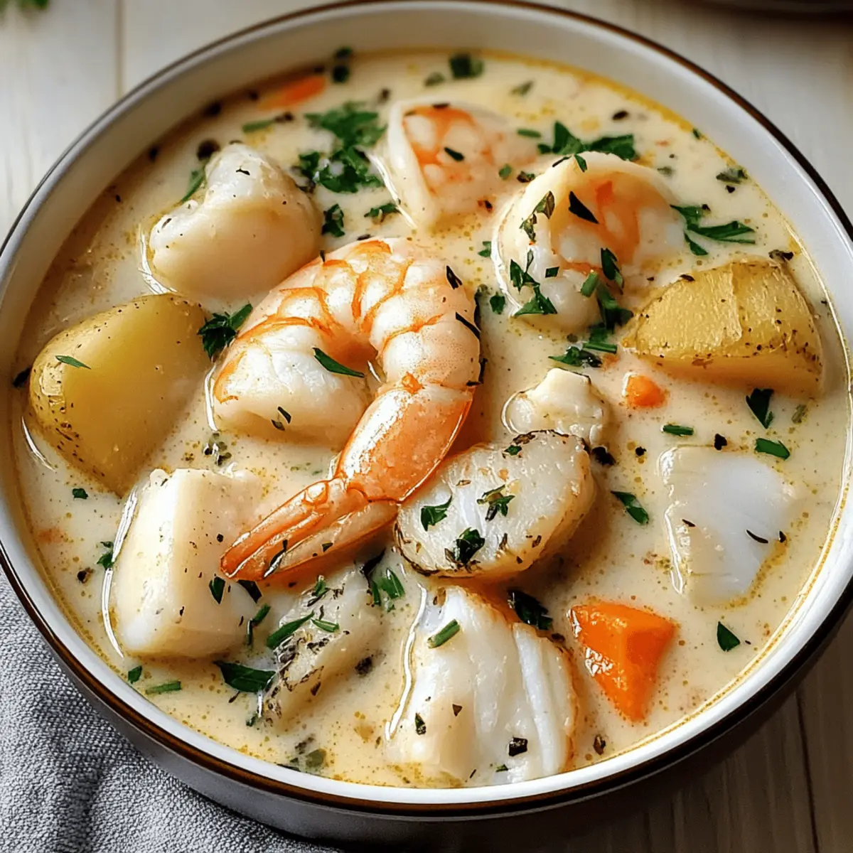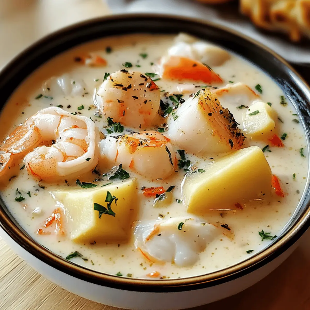 Es gibt kaum etwas Beruhigenderes, als an einem kalten Abend eine dampfende Schüssel voller Nova Scotia Seafood Chowder zu genießen. Diese köstliche maritime Suppe vereint eine Vielzahl von frischem Meeresfrüchte und bringt ein Stück der kanadischen Küstenküche direkt auf deinen Tisch. Die cremige Konsistenz und die zarten Stücke von Fisch, Muscheln und Garnelen machen diese chowder zu einem echten Wohlfühlessen, das nicht nur schnell zuzubereiten ist, sondern auch die ganze Familie begeistert. Stell dir vor, wie der warme Duft durch deine Küche zieht, während du diese Spezialität zubereitest – ein wahres Geschmackserlebnis, das zum Teilen einlädt. Bist du bereit, in die Welt dieser herzlichen Leckerei einzutauchen? Warum wirst du diese Chowder lieben? Einzigartige Aromen: Diese Nova Scotia Seafood Chowder kombiniert den frischen Geschmack des Meeres mit einer cremigen Konsistenz, die jeden Löffel zu einem Genuss macht. Einfache Zubereitung: Die Zutaten sind einfach zu beschaffen und die Zubereitung erfordert keine speziellen Kochkünste – perfekt für jeden Kochtalent! Herzhaft und wohltuend: Die Kombination aus zarten Meeresfrüchten und herzhaften Kartoffeln macht dieses Gericht zum idealen Komfortessen für kalte Tage. Vielfältige Anpassungsmöglichkeiten: Du kannst die Meeresfrüchte ganz nach deinem Geschmack variieren, sei es mit extra Garnelen oder einer anderen Fischsorte – die Möglichkeiten sind endlos! Ideal zum Teilen: Diese Chowder ist nicht nur ein Gericht für dich alleine, sondern ist perfekt für gesellige Abende mit Familie und Freunden, während du sie mit einer Beilage wie knusprigem Brot servierst. Zutaten für die Nova Scotia Seafood Chowder • Für die Meeresfrüchte Weißfisch (Kabeljau, Schellfisch oder Heilbutt) – Hauptquelle für zarte Proteine und ideale Textur; kann durch jeden festen weißen Fisch ersetzt werden. Garnelen – Fügen Süße und eine zarte Bissigkeit hinzu; Ersatz durch Imitationskrabben möglich für einen anderen Geschmack. Jakobsmuscheln – Sorgen für Reichtum und ein buttriges Finish; alternativ extra Garnelen verwenden oder ganz weglassen für eine budgetfreundliche Version. Miesmuscheln – Bringen einen salzigen Geschmack; entsorge alle, die nach dem Kochen nicht öffnen, um die Sicherheit zu gewährleisten. • Für die Basis Schwere Sahne – Sorgt für eine reichhaltige, samtige Konsistenz; halb und halb oder Kondensmilch sind leichtere Alternativen. Vollmilch – Balanciert die Cremigkeit und hilft bei der Textur; zusätzliches Brühe verwenden für eine kalorienärmere Version. Kartoffeln – Fügen Herzhaftigkeit hinzu und dicke die Chowder ein; jede wachsartige Kartoffel funktioniert, stärkehaltige Kartoffeln für eine dickere Konsistenz möglich. Knoblauch – Verstärkt das Geschmacksfundament mit aromatischen Noten; frische Zehen sind vorzuziehen, Knoblauchpulver als schnelle Alternative möglich. • Für die Gewürze Meeresfrüchtebrühe – Essentiell für einen tiefen Geschmack; kann bei Bedarf durch Gemüse- oder Hühnerbrühe ersetzt werden. Weißwein (optional) – Fügt Komplexität und Tiefe hinzu; Brühe stattdessen für eine alkoholfreie Version verwenden. Aromen (Zwiebeln, Sellerie, Karotten) – Sorgen für eine Geschmacksbasis und Süße; Lauch anstelle von Zwiebeln für einen milderen Geschmack möglich. Diese Nova Scotia Seafood Chowder bringt dir den Geschmack des Meeres direkt in deine Küche! Schritt-für-Schritt-Anleitung für die Nova Scotia Seafood Chowder Step 1: Basis vorbereiten Schneide Zwiebeln, Sellerie, Karotten und Knoblauch klein. Erhitze einen großen Topf bei mittlerer Hitze und füge etwas Öl hinzu. Sauté die aromatischen Zutaten für etwa 5 Minuten, bis sie weich und durchsichtig sind. Achte darauf, dass der Knoblauch nicht bräunt, um Bitterkeit zu vermeiden. Step 2: Kartoffeln und Brühe hinzufügen Gib die gewürfelten Kartoffeln zusammen mit der Meeresfrüchtebrühe in den Topf. Bringe die Mischung zum Kochen und reduziere die Hitze, um sie 10-15 Minuten lang sanft köcheln zu lassen, bis die Kartoffeln zart sind. Rühre gelegentlich, damit nichts am Boden kleben bleibt. Step 3: Milchprodukte einführen Reduziere die Hitze auf niedrig und gieße die schwere Sahne und die Vollmilch in den Topf. Rühre gut um, bis sich die Milchprodukte vollständig integriert haben. Die Chowder sollte jetzt eine cremige Konsistenz erhalten. Lass sie 2-3 Minuten sanft weiter erhitzen, ohne sie zum Kochen zu bringen. Step 4: Meeresfrüchte hinzufügen Füge die vorbereiteten Meeresfrüchte – Fisch, Garnelen, Jakobsmuscheln und Miesmuscheln – in die Chowder. Koche die Mischung für weitere 5-7 Minuten, bis die Meeresfrüchte gerade durchgegart und zart sind. Achte darauf, dass die Muscheln sich öffnen und verworfen werden, wenn sie dies nicht tun. Step 5: Fertigstellen und servieren Schmecke die Chowder ab und füge bei Bedarf Salz sowie Pfeffer hinzu. Optional kannst du einen Schuss Weißwein für zusätzlichen Geschmack hinzufügen. Serviere die warme Nova Scotia Seafood Chowder in Schalen und genieße sie sofort, idealerweise mit knusprigem Brot oder Crackern als Begleitung. Meal Prep für die Nova Scotia Seafood Chowder Diese Nova Scotia Seafood Chowder ist ideal, um Zeit zu sparen und Mahlzeiten im Voraus vorzubereiten! Du kannst die aromatische Basis, bestehend aus Zwiebeln, Sellerie, Karotten und Knoblauch, bis zu 24 Stunden im Voraus zubereiten und im Kühlschrank aufbewahren. Darüber hinaus kannst du die gewürfelten Kartoffeln separat vorbereiten und in Wasser lagern, um ein Verfärben zu verhindern. Am Tag der Zubereitung fügst du einfach die Brühe, Milchprodukte und die Meeresfrüchte hinzu und köchelst sie, bis alles gar ist (ca. 10-15 Minuten). Um die Qualität zu gewährleisten, achte darauf, die Chowder nur einmal aufzuwärmen und bereite sie frisch zu, wenn du sie servierst – so bleibt der cremige Geschmack unübertroffen! Tipps für die beste Chowder 