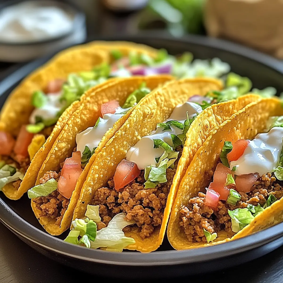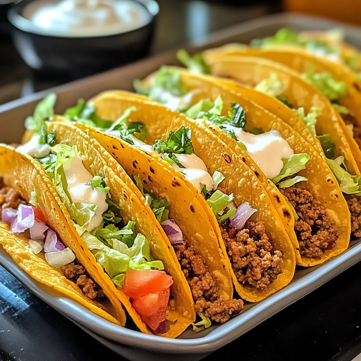 Eines der besten Dinge am Kochen ist, dass man oft mit einer einfachen Idee startet und dabei wunderbare Geschmackserlebnisse kreiert. So ging es mir, als ich über die ofen-gebackenen käsigen Tacos nachdachte – eine köstliche Kombination aus knusprigen Schalen und geschmolzenem Käse, die selbst den größten Feinschmecker begeistert. Diese schnelle und anpassbare Rezeptur eignet sich perfekt für Familienessen oder unbeschwerte Zusammenkünfte mit Freunden. Egal, ob Sie es klassisch mögen oder gerne mit verschiedenen Füllungen experimentieren, hier sind Ihrer Kreativität keine Grenzen gesetzt! Zudem sind sie mit nur wenigen Zutaten leicht zuzubereiten und lassen sich wunderbar nach Ihrem Geschmack variieren. Bereit, Ihre Liebsten mit einer herzhaften Taco-Überraschung zu verwöhnen? Lassen Sie uns gleich loslegen! Warum sind diese Tacos der Hit? Einfachheit beim Kochen: Mit nur wenigen Zutaten und einer unkomplizierten Zubereitung erfreuen sich sogar Kochneulinge an diesem Rezept für Ofen-gebackene käsige Tacos. Vielfalt ist der Schlüssel: Passen Sie die Füllungen nach Belieben an – von saftigen vegetarischen Optionen bis zu einem herzhaften Frühstücks-Taco. Kreativität ist gefragt: Kombinieren Sie verschiedene Käsesorten für aufregende Geschmackserlebnisse, die Ihre Gäste überraschen werden. Familienfreundlich und schnell: In weniger als 30 Minuten servieren Sie eine köstliche Mahlzeit, die alle begeistert. Perfekt für jede Gelegenheit: Ob Familienessen oder Party, diese Tacos sind immer ein Hit! Wenn Sie andere fantastische Rezepte ausprobieren möchten, empfehle ich Ihnen, unser Himmlische Himbeer Machen oder das Kaese Gefuellte Rezept zu entdecken! Ofen-gebackene käsige Taco-Zutaten Für die Taco-Schalen: • Taco Shells – Diese sind das Grundgerüst für die Füllung, alternativ können Sie auch Tortillas aus Mais verwenden. Für die Füllung: • Rinderhackfleisch – Der Hauptproteinlieferant, alternativ eignet sich auch Hähnchen, Pute oder pflanzliches Protein. • Taco-Gewürz – Verleiht dem Gericht den besonderen Geschmack; Sie können auch eine hausgemachte Mischung mit Chili, Kreuzkümmel, Knoblauch- und Zwiebelpulver sowie Paprika zubereiten. • Wasser – Hilft, die Gewürzmischung für das Fleisch zu hydratisieren. Für den leckeren Käse: • Cheddar-Käse – Gewährleistet eine käsige Perfektion; probieren Sie auch Pepper Jack oder Mozzarella für unterschiedliche Geschmacksrichtungen. Frische Zutaten für das Topping: • Geriebener Salat – Sorgt für Knusprigkeit und leuchtende Farben. • Tomaten – Sie verleihen Saftigkeit und Frische. • Sauerrahm – Eine optionale, cremige Garnierung. • Geschnittene Jalapeños – Für einen zusätzlichen Kick. • Frischer Koriander – Perfekt als Garnitur und Geschmacksteigerer. Mit diesen ofen-gebackenen käsigen Tacos können Sie eine köstliche Mahlzeit kreieren, die jeden am Tisch begeistert! Schritt-für-Schritt-Anleitung für Ofen-gebackene käsige Tacos Step 1: Ofen vorheizen Heizen Sie den Ofen auf 175 °C (350 °F) vor, während Sie die Füllung zubereiten. Dies gewährleistet eine gleichmäßige Backtemperatur, sodass Ihre ofen-gebackenen käsigen Tacos perfekt knusprig und geschmolzen herauskommen. Step 2: Fleisch anbraten Erhitzen Sie eine Pfanne bei mittlerer Hitze und braten Sie das Rinderhackfleisch an, bis es gleichmäßig braun ist. Drücken Sie das Fleisch mit einem Spatel auseinander und stellen Sie sicher, dass es gut gar ist. Lassen Sie überschüssiges Fett abtropfen, um die Tacos nicht zu schwer zu machen. Step 3: Gewürze hinzufügen Fügen Sie das Taco-Gewürz und das Wasser in die Pfanne mit dem Fleisch hinzu. Rühren Sie alles gut um und lassen Sie die Mischung bei niedriger Hitze etwa 5 Minuten köcheln. Dies gibt den Gewürzen Zeit, sich vollständig mit dem Fleisch zu verbinden und ein herrliches Aroma zu entwickeln. Step 4: Taco-Schalen anordnen Legen Sie die Taco-Schalen in eine Auflaufform, sodass sie stabil stehen können. Achten Sie darauf, dass die Schalen sich nicht überlappen, damit die Hitze gleichmäßig zirkulieren kann und jede Schale schön knusprig wird. Step 5: Schalen füllen Füllen Sie jede Taco-Schale großzügig mit der gewürzten Fleischmischung. Verteilen Sie das Fleisch gleichmäßig, um sicherzustellen, dass jede Portion ausreichend Geschmack hat und die Füllung nicht überläuft. Step 6: Käse hinzufügen Streuen Sie eine großzügige Menge geriebenen Cheddar-Käse über jede gefüllte Taco-Schale. Dies sorgt dafür, dass die ofen-gebackenen käsigen Tacos während des Backens eine köstliche, geschmolzene Käsedecke erhalten. Step 7: Backen Backen Sie die gefüllten Tacos im vorgeheizten Ofen für etwa 15-20 Minuten. Achten Sie darauf, dass der Käse geschmolzen und leicht goldbraun ist, was die perfekte Konsistenz für Ihre ofen-gebackenen käsigen Tacos anzeigt. Step 8: Toppings vorbereiten Bereiten Sie während des Backens die frischen Toppings vor. Schneiden Sie die Tomaten, waschen Sie den geriebenen Salat und stellen Sie Sauerrahm und Jalapeños bereit. Diese frischen Zutaten sorgen für einen schönen Kontrast zu den warmen Tacos. Step 9: Tacos abkühlen lassen Nehmen Sie die Tacos nach dem Backen aus dem Ofen und lassen Sie sie ein paar Minuten abkühlen. Dies hilft, die Füllung zu setzen, sodass sie beim Servieren nicht herausfällt und bietet etwas Zeit, sich auf die köstlichen ofen-gebackenen käsigen Tacos vorzubereiten. Step 10: Servieren und Garnieren Garnieren Sie die Tacos nach Belieben mit frischem Koriander, Sauerrahm oder weiteren Toppings. Servieren Sie sie auf einem großen Teller, damit jeder seine ofen-gebackenen käsigen Tacos nach Belieben anpassen kann. Ofen-gebackene käsige Tacos im Voraus zubereiten Die Ofen-gebackenen käsigen Tacos sind ideal für die Vorbereitung! Sie können die Taco-Schalen bis zu 24 Stunden im Voraus mit der gebratenen Füllung (Rinderhackfleisch, Taco-Gewürz und Wasser) vorber