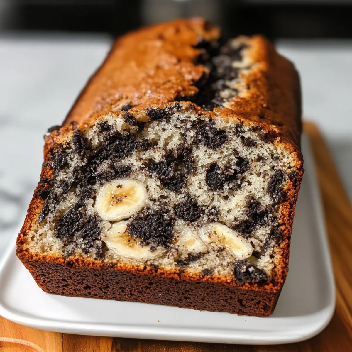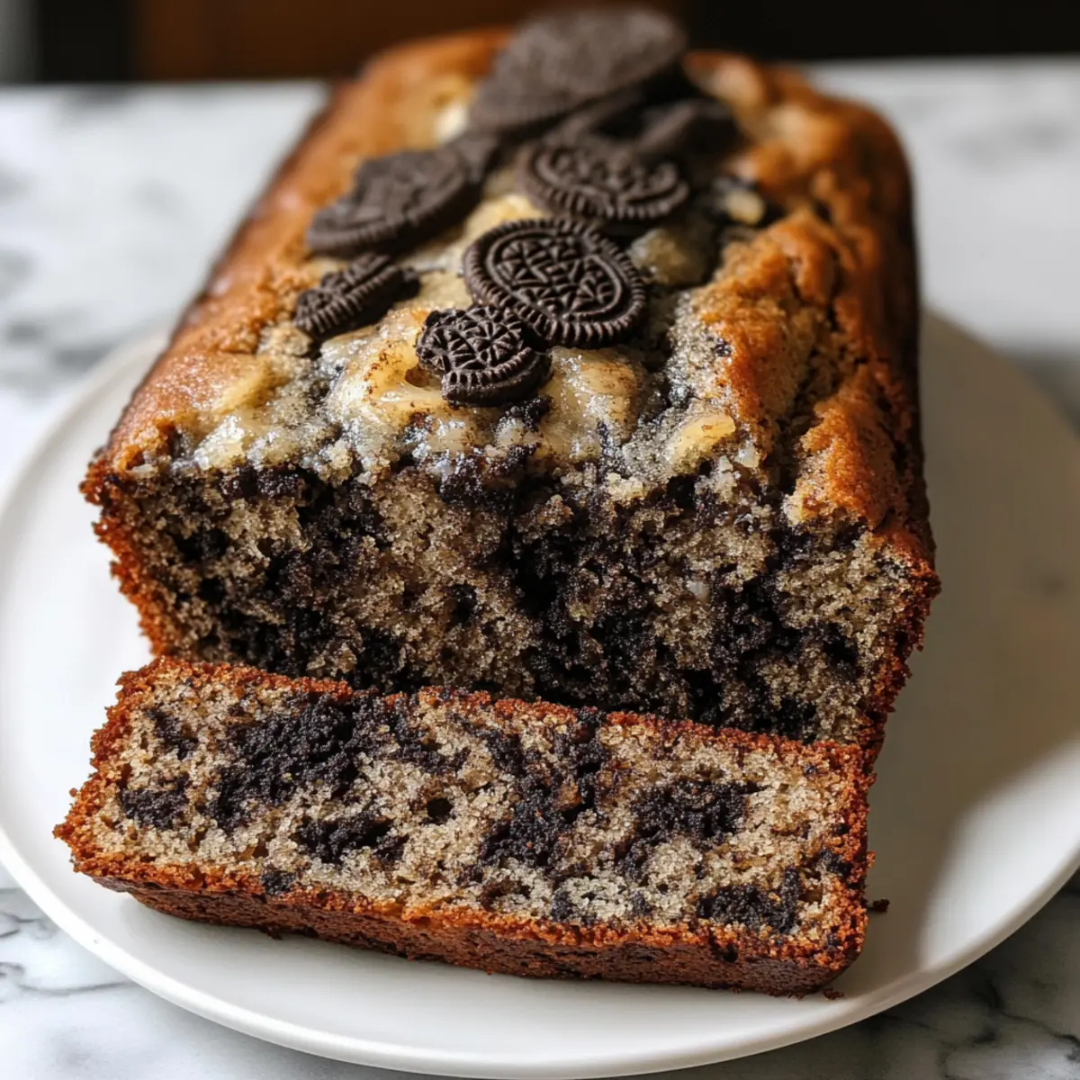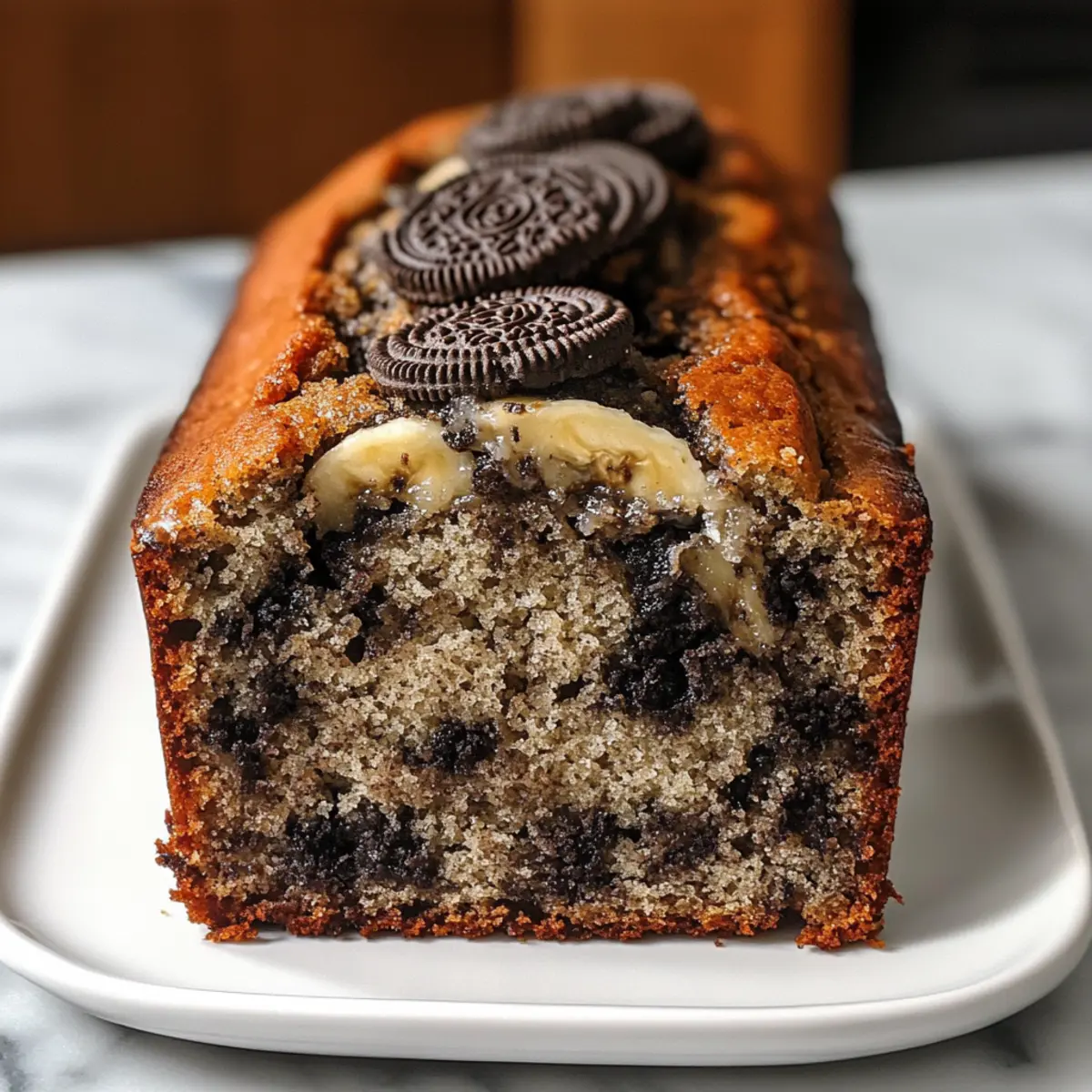 Hast du jemals darüber nachgedacht, dass dein Frühstück vielleicht eine aufregende Wendung verdienen könnte? Mit diesem Rezept für Oreo Bananenbrot wird jeder Bissen zum Erlebnis! Während die süßen, reifen Bananen eine samtige Basis bieten, sorgen die knusprigen Oreo-Kekse für den besonderen Crunch, der uns alle in Erinnerungen an unsere Kindheit eintauchen lässt. Dieses Oreo Bananenbrot ist nicht nur einfach zuzubereiten, sondern auch perfekt als Snack oder Dessert – ideal für jeden, der sich nach einer großzügigen Portion Komfortfood sehnt. Und das Beste daran? Du kannst es im Voraus zubereiten und bei Bedarf genießen! Neugierig, wie du dieses köstliche Brot nachbacken kannst? Lass uns gemeinsam loslegen! Warum wirst du dieses Rezept lieben? Einfachheit glänzt: Dieses Oreo Bananenbrot erfordert nur wenige Schritte, sodass auch Kochanfänger mit Leichtigkeit erfolgreich sein können. Traumhafte Aromen: Die süßen Bananen harmonieren perfekt mit dem Schokoladengeschmack der Oreos und lassen dein Geschmacksgefühl erblühen. Vielseitig für jeden Anlass: Ob zum Frühstück, als Snack oder als Dessert – dieses Brot passt zu jeder Gelegenheit und kann jederzeit genossen werden. Zeit sparen: Du kannst das Oreo Bananenbrot im Voraus zubereiten, um immer einen leckeren Snack zur Hand zu haben – perfekt für hektische Tage! Klassiker modern interpretiert: Diese spannende Kombination aus Bananenbrot und Oreo-Keksen sorgt für nostalgische Freude und neue Geschmackserlebnisse. Für weitere kreative Möglichkeiten kannst du auch unser Rezept für Zwiebel Rindfleisch Mit oder Cremige Gemuesepasta Rezept ausprobieren! Oreo Bananenbrot Zutaten • Beliebte und köstliche Zutaten für das beste Erlebnis. Für den Teig Reife Bananen – Für natürliche Süße und Feuchtigkeit; benutze am besten sehr reife Bananen mit braunen Stellen für das beste Aroma. Geschmolzene Butter – Sorgt für Reichtum und Feuchtigkeit im Brot; kann durch Kokosöl für eine milchfreie Option ersetzt werden. Zucker – Süßt das Brot und balanciert die Aromen von Bananen und Oreos; Kokoszucker ist eine gesündere Alternative. Ei – Dient als Bindemittel und trägt zur Struktur des Brotes bei; für eine vegane Option kann ein Flax-Ei verwendet werden. Vanilleextrakt – Verstärkt den Gesamteindruck der Aromen; verwende reinen Vanilleextrakt für die besten Ergebnisse. Backsoda – Als Treibmittel sorgt es dafür, dass das Brot aufgeht; achte darauf, dass es frisch ist für optimale Ergebnisse. Salz – Balanciert die Süße und verstärkt den Geschmack. Allzweckmehl – Gibt Struktur; kann durch Vollkornmehl für eine gesündere Variante ersetzt werden. Oreo-Kekse – Fügen einen reichhaltigen Schokoladengeschmack und knusprige Textur hinzu; probiere gerne verschiedene Geschmacksrichtungen von Oreos für neue Variationen. Mögliche Variationen Für die Füllung – Du kannst eine Marmeladenschicht oder Nüsse hinzufügen, um das Aroma zu variieren. Für die Garnitur – Ein Schokoladenguss oder Puderzucker obendrauf ergibt einen zusätzlichen süßen Kick. Für Mini-Versionen – Kleine Muffins oder Mini-Brote sind perfekt für Portionierung und einfache Snacks. Schritt-für-Schritt-Anleitung für Oreo Bananenbrot Step 1: Ofen vorheizen Heize deinen Ofen auf 175°C (350°F) vor und bereite eine 9×5-Zoll-Kastenform vor, indem du sie entweder einfettest oder mit Backpapier auslegst. So stellst du sicher, dass das Oreo Bananenbrot einfach aus der Form gleitet, wenn es fertig gebacken ist. Step 2: Bananen zerdrücken In einer großen Schüssel zerdrücke die reifen Bananen mit einer Gabel, bis sie schön glatt sind. Dies sollte etwa 2-3 Minuten dauern. Achte darauf, dass keine großen Stücke übrig bleiben, da dies die Textur des Brotes beeinträchtigen kann. Step 3: Butter hinzufügen Mische die geschmolzene Butter gründlich unter die zerdrückten Bananen, bis eine homogene Masse entsteht. Dies liefert die notwendige Feuchtigkeit und den reichen Geschmack, den unser Oreo Bananenbrot so unwiderstehlich macht. Step 4: Weitere Zutaten einrühren Füge nun den Zucker, das geschlagene Ei und den Vanilleextrakt hinzu und verrühre alles gut miteinander. Achte darauf, dass die Mischung gleichmäßig ist, um ein gleichmäßiges Backergebnis zu erzielen und die Aromen perfekt zu vereinen. Step 5: Backtriebmittel einarbeiten Gib das Backpulver und eine Prise Salz in die Schüssel und vermische alles gut. So sorgst du dafür, dass das Oreo Bananenbrot schön aufgeht und die süßen Aromen der Bananen und Oreos perfekt ergänzt werden. Step 6: Mehl unterheben Füge das Allzweckmehl oben auf und falte es vorsichtig unter die Mischung, bis es gerade so kombiniert ist. Vermeide es, zu stark zu rühren, damit das Brot nach dem Backen nicht zäh wird – eine lockere Konsistenz ist hier der Schlüssel zum Erfolg. Step 7: Oreos hinzufügen Zerbrich 10 Oreo-Kekse grob und hebe sie vorsichtig unter den Teig. Diese knusprigen Stückchen sorgen für den charakteristischen Schokoladengeschmack und die besondere Textur, die dein Oreo Bananenbrot so einzigartig machen. Step 8: Teig in die Form füllen Gieße den Teig in die vorbereitete Kastenform und glätte die Oberseite mit einem Spatel. Dies gibt ein gleichmäßiges Aussehen und hilft, dass das Brot gleichmäßig backt. Step 9: Oreos garnieren Streue die restlichen 4 zerbrochenen Oreo-Kekse gleichmäßig über die Oberseite des Teigs. Dadurch wird das Brot beim Backen schön knackig und der zusätzliche Schokoladengeschmack sorgt für einen leckeren Abschluss. Step 10: Backen Schiebe die Kastenform in den vorgeheizten Ofen und backe das Oreo Bananenbrot für 50-60 Minuten. Überprüfe mit einem Zahnstocher, ob es durchgebacken ist – er sollte sauber herauskommen, wenn das Brot fertig ist. Step 11: Abkühlen lassen Lasse das Brot 10 Minuten in der Form abkühlen, bevor du es vorsichtig auf ein Kuchengitter stürzt. Dies hilft, die perfekte Textur zu bewahren, während