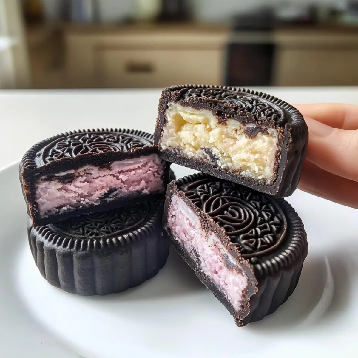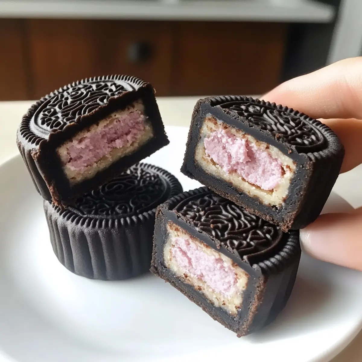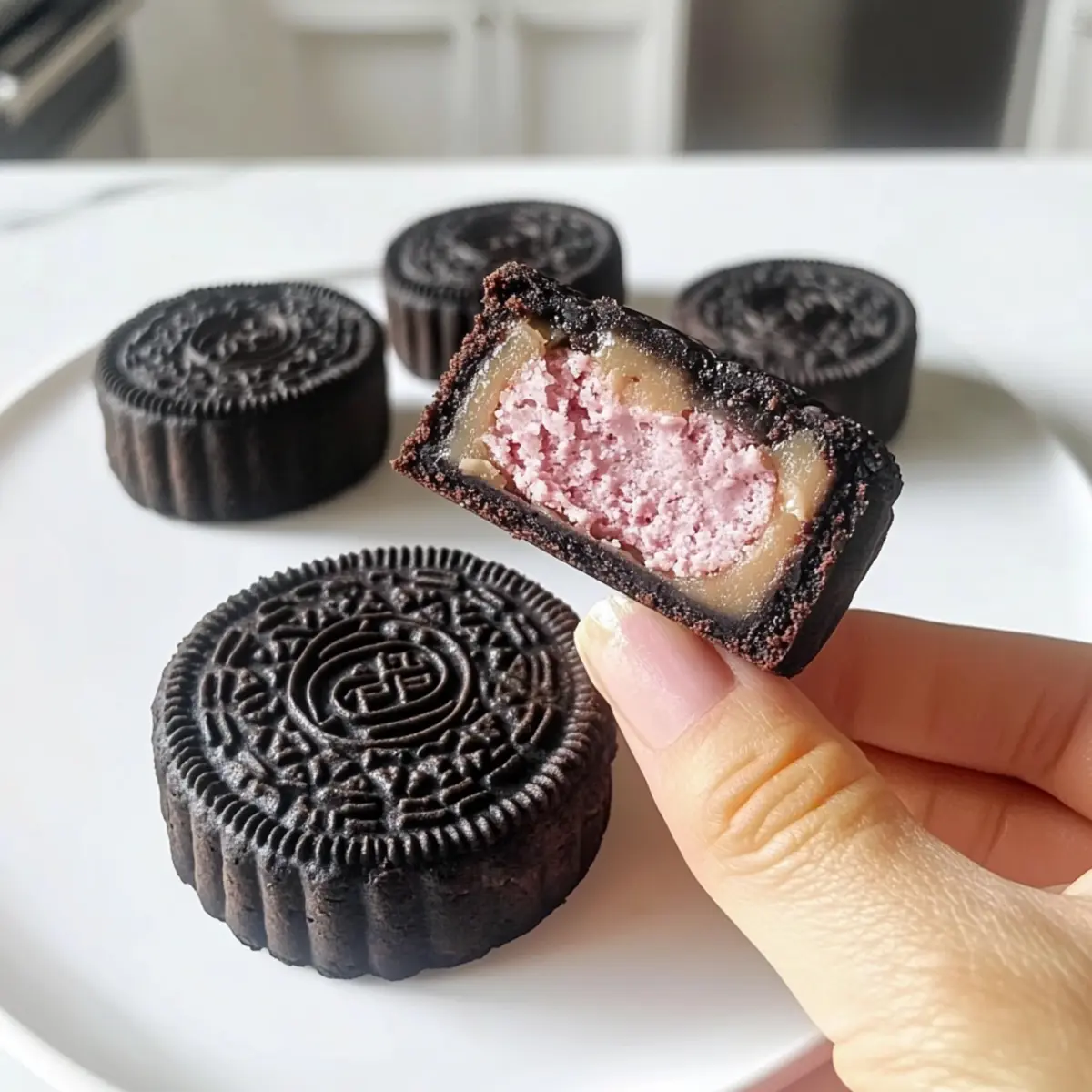 Hast du schon mal darüber nachgedacht, wie einfach es sein könnte, eine ganz besondere Leckerei selbst herzustellen? Mit diesen Sweet and Cool Oreo-Mondkuchen gelingt dir ein köstlicher Snack, der nicht nur schnell geht, sondern auch mit nur zwei Zutaten auskommt! Diese no-bake Mondkuchen sind der perfekte Genuss für alle, die sich nach etwas Einzigartigem sehnen, ohne in der Küche stundenlang aktiv sein zu müssen. Die harmonische Verbindung von zartem Keks und cremiger Füllung wird dich begeistern – ganz gleich, ob du ein Dessert für den Nachmittag oder eine süße Überraschung für deine Lieben zaubern möchtest. Bist du bereit, diese unwiderstehlichen kleinen Kunstwerke zu kreieren? Lass uns loslegen! Warum wirst du dieses Rezept lieben? Einfachheit pur: Mit nur zwei Zutaten gelingt dir dieser süße Snack im Handumdrehen. Keine komplizierten Schritte, ideal für Kochanfänger oder alle, die wenig Zeit haben. Einzigartiger Genuss: Die Kombination aus knusprigen Oreo-Keksen und cremiger Füllung bringt einen unverwechselbaren Geschmack auf den Tisch. Perfekt, um deine Gäste zu beeindrucken! Ideales Snack-Duo: Egal, ob als süßer Abschluss eines Essens oder als Snack zwischendurch – die Oreo-Mondkuchen passen immer und machen jeder Mahlzeit Freude. Erfrischend und lecker: Serviere die Mondkuchen kalt, um das volle Geschmackserlebnis zu genießen. Sie sind eine tolle Alternative zu herkömmlichen Snacks und schneiden dabei auch kalorienmäßig gut ab. Du wirst sie lieben! Wenn du nach einer weiteren schnellen Inspiration suchst, schau dir auch unsere zwei-ingredient Rezepte an, die einfach zubereitet werden können. Oreo-Mondkuchen Zutaten • Für den Teig Oreo-Kekse – Sie bringen den reichen Schokoladengeschmack und die einzigartige Textur, die den Kern der Mondkuchen bilden. Verwende am besten die klassischen Oreos. Milch – Bindet die zerdrückten Oreo-Kekse zu einem glatten Teig und sorgt für die notwendige Feuchtigkeit. 60 Gramm sind nötig. • Für die Füllung Kekscreme – Diese süße und cremige Füllung sorgt für einen köstlichen Kontrast zur Keksbasis und ist ein Highlight der Oreo-Mondkuchen. Verwende die Füllung der Oreo-Kekse, die du zuvor entfernt hast. Diese Oreo-Mondkuchen sind ein einfacher, erfrischender Snack, perfekt für alle, die nach etwas Einzigartigem suchen! Schritt-für-Schritt-Anleitung für Oreo-Mondkuchen Step 1: Oreo-Kekse vorbereiten Entferne vorsichtig die Cremefüllung von 20 Oreo-Keksen. Zerbrich die Kekshälften in einen Gefrierbeutel und verwende ein Nudelholz, um sie zu feinen Krümeln zu zerdrücken. Achte darauf, dass die Krümel gleichmäßig sind, damit der Teig später gut zusammenhält. Dies sollte etwa 3-5 Minuten dauern. Step 2: Zutaten mischen und Teig formen Gib die zerdrückten Oreo-Kekse in eine Schüssel und füge 60 Gramm Milch hinzu. Mische die Zutaten gut und knete den Teig mit den Händen, bis er glatt und nicht klebrig ist. Dieser Schritt dauert etwa 2-3 Minuten und sorgt dafür, dass die Oreo-Mondkuchen eine schöne Konsistenz haben. Step 3: Teig teilen Teile den geschmeidigen Teig in kleine Portionen von jeweils 25 Gramm. Forme die Portionen zu Kugeln, damit sie gleichmäßig sind. Leg die Teigkugeln beiseite, während du die letzte Zutat – die Kekscreme – vorbereitest. Step 4: Füllen und formen der Mondkuchen Nimm eine Teigkugel und forme sie flach. Platziere einen Löffel der Oreo-Cremefüllung in die Mitte der Fläche. Falte den Teig über die Füllung und drücke die Ränder gut zusammen, um die Creme zu versiegeln. Achte darauf, dass keine Füllung herausquillt. Step 5: Mondkuchen gestalten Nutze eine Mondkuchenform, um die gefüllten Teigstücke zu dekorieren. Lege das gefüllte Stück in die Form und drücke es vorsichtig an, um schöne Muster zu erzeugen. Lasse die Mondkuchen ein paar Minuten in der Form, damit sie die Form behalten. Step 6: Kühlen und Servieren Lass die Oreo-Mondkuchen im Kühlschrank für mindestens 30 Minuten abkühlen. Dies sorgt dafür, dass sie fest werden und sich leicht aus der Form lösen lassen. Danach sind deine Oreo-Mondkuchen bereit, serviert zu werden – ideal für einen erfrischenden Snack! Was passt gut zu Oreo-Mondkuchen? Erlebe, wie du mit diesen köstlichen Kreationen ein einzigartiges Geschmackserlebnis für deine Familie und Freunde schaffen kannst! Kalter Milchshake: Milder und cremiger Milkshake verstärkt das Schokoladenerlebnis der Oreo-Mondkuchen. Einfach ein perfekter Begleiter! Eisgekühlter grüner Tee: Der Herbheit und Frische des Tees wirken harmonisch und bieten einen tollen Kontrast zur Süße der Mondkuchen. Frische Früchte: Saucen aus Himbeeren oder Erdbeeren bringen Frische und eine fruchtige Note. Die perfekte Ergänzung zu den schokoladigen Leckereien. Kaffee oder Espresso: Der bittere Geschmack des Kaffees passt wunderbar zu den süßen Oreo-Mondkuchen und sorgt für einen interessanten Geschmacksaspekt. Nüsse: Eine Mischung aus gerösteten Mandeln oder Walnüssen kommt in Textur und Aromen gleichwertig zur Geltung. Schön knackig! Schokoladensauce: Ein extra Schuss, der die Süsse der Mondkuchen unterstreicht und gleichzeitig ihr Aussehen verzaubert. Zögere nicht, diese Kombinationen auszuprobieren, um das volle Potenzial deiner Oreo-Mondkuchen zu entfalten! Oreo-Mondkuchen Variationen & Alternativen Lass deiner Kreativität freien Lauf und entdecke, wie du die Oreo-Mondkuchen ganz nach deinem Geschmack anpassen kannst! Nussig: Füge gehackte Nüsse wie Mandeln oder Walnüsse in den Teig ein, um einen leckeren Crunch zu schaffen. Schokoladig: Streue Schokoladenstückchen in den Teig, um die Schokoladennote noch intensiver zu gestalten. Dies sorgt für extra Glücksmomente! Kokosnuss: Mische geraspelte Kokosnuss unter den Teig für eine exotische Geschmacksexplosion. Die Kombination aus Schokolade und Kokos wird dich verzaubern. Fruchtige Note: Experimentiere mit einem Hauch von Fruchtsirup oder pürierten Beeren in der Füllung. Da