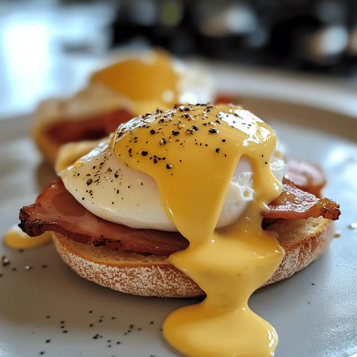 Eines Morgens, als ich in der Küche stand und die Sonne sanft durch das Fenster fiel, überkam mich die Vorfreude auf ein Frühstück, das alle Sinne erfreut. Perfekte selbstgemachte Eggs Benedict mit cremiger Hollandaise stehen ganz oben auf meiner Liste – eine wahre Gaumenfreude! In nur wenigen Schritten zauberst du ein Gericht, das nicht nur einfach zuzubereiten ist, sondern auch bei Familie und Freunden für Begeisterung sorgt. Die Kombination aus zart pochierten Eiern, herzhaftem kanadischen Speck und knackigen englischen Muffins macht dieses Rezept zur idealen Wahl für ein gemütliches Wochenende oder einen besonderen Anlass. Bist du bereit, deine Küchenkünste auf das nächste Level zu heben und deinen Gaumen zu verwöhnen? Lass uns gemeinsam in die Welt der perfekten Eggs Benedict eintauchen! Warum wirst du dieses Rezept lieben? Einfachheit, Der Prozess ist unkompliziert und erfordert nur grundlegende Kochkenntnisse. Reicher Geschmack, Die Kombination aus frisch pochierten Eiern und cremiger Hollandaise sorgt für ein unvergessliches Geschmackserlebnis. Vielseitigkeit, Ersetze den kanadischen Speck durch Pancetta oder prosciutto, um neue Aromen zu entdecken und deinen persönlichen Touch hinzuzufügen. Perfekte Präsentation, Jedes Gericht sieht wie ein Meisterwerk aus und beeindruckt Familie und Freunde bei jedem Brunch. Schnell gemacht, In weniger als 30 Minuten hast du ein elegantes Frühstück, das jeden Morgen verschönert. Genuss für jeden Anlass, Egal ob für ein gemütliches Frühstück zu zweit oder eine festliche Brunch-Feier, dieses Rezept überzeugt immer. Eier Benedict Zutaten • Für alle Frühstücksliebhaber! Für die Muffins Englische Muffins – Der perfekte, leicht chewy Boden für dein Gericht. Substitution: Brioche oder dicke Sauerteigscheiben sind ebenfalls köstlich. Für den Belag Kanadischer Speck – Liefert die essentielle salzige Komponente. Substitution: Dicke Schinken- oder gute Bacon-Scheiben können verwendet werden. Für die Eier Große Eier (4) – Die Stars des Gerichts, idealerweise pochiert für einen perfekten Lauf. Tipp: Verwende die frischesten Eier für die besten Ergebnisse. Eier-Eigelb (2) – Die Basis für die holländische Sauce; sorgt für Reichhaltigkeit. Hinweis: Frische Eier verbessern Geschmack und Textur. Für die holländische Sauce Zitronensaft (1 EL) – Gibt der Sauce einen frischen Kick. Substitution: Frischer Limettensaft kann ebenfalls verwendet werden. Ungesalzene Butter (0,5 Tassen) – Die Hauptzutat für ein cremiges Mundgefühl. Tipp: Langsam schmelzen, um Trennung zu vermeiden. Würze Salz & Weißer Pfeffer – Nach Geschmack, um die Aromen zu betonen. Dieses Rezept für Eier Benedict kombiniert die besten Zutaten für ein unvergessliches Frühstückserlebnis! Schritt-für-Schritt-Anleitung für Perfekte hausgemachte Eggs Benedict mit holländischer Sauce Step 1: Muffins rösten Schneide die englischen Muffins in der Mitte durch und toaste sie in einem Toaster oder in einer Pfanne, bis sie goldbraun und knusprig sind. Dies sollte etwa 3-5 Minuten dauern. Achte darauf, dass sie gleichmäßig geröstet werden, damit sie eine perfekte Grundlage für dein Gericht bieten. Step 2: Speck braten Erhitze eine große Pfanne bei mittlerer Hitze und lege die Scheiben des kanadischen Specks hinein. Brate sie für etwa 2-3 Minuten auf jeder Seite, bis sie leicht knusprig und durchgewärmt sind. Die goldbraune Farbe zeigt, dass der Speck bereit ist, in deinem Eggs Benedict serviert zu werden. Step 3: Eier pochieren Bringe in einem großen Topf Wasser zum leichten Köcheln. Füge einen Schuss Essig hinzu, um die Eiweiße zu stabilisieren. Schlage vorsichtig jedes Ei in eine kleine Schüssel und lasse es langsam ins Wasser gleiten. Poche die Eier für 3-4 Minuten, bis die Eiweiße fest und die Eigelbe noch leicht flüssig sind. Hebe sie mit einer Schaumkelle vorsichtig heraus und stelle sie kurz zur Seite. Step 4: Holländische Sauce zubereiten Richte ein Wasserbad ein, indem du einen Topf mit leicht köchelndem Wasser verwendest. In einer metallischen Schüssel die Eigelbe und den Zitronensaft verquirlen, bis die Mischung dick und cremig wird (ca. 2-3 Minuten). Füge langsam die geschmolzene Butter hinzu, während du ständig rührst, bis die holländische Sauce rein und glänzend ist. Mit Salz und weißem Pfeffer abschmecken. Step 5: Gericht anrichten Lege eine Scheibe kanadischen Speck auf jede Hälfte der gerösteten englischen Muffins. Setze darauf ein pochiertes Ei und löffele großzügig die cremige holländische Sauce darüber. Stelle sicher, dass jede Portion warm serviert wird. Dein perfektes hausgemachtes Eggs Benedict ist jetzt bereit, genossen zu werden! Expertentipps für Eggs Benedict Einfache Hollandaise: Achte darauf, die holländische Sauce über einem leicht köchelnden Wasserbad zuzubereiten, um ein Brechen zu verhindern. Eier perfekt pochieren: Füge einen Spritzer Essig ins Wasser hinzu; das hilft den Eiweißen, sich besser zu formen und das Resultat bleibt ansprechend. Butter langsam einrühren: Schmelze die Butter langsam und rühre sie vorsichtig in die Eigelbe, um eine seidige holländische Sauce zu erzielen. Frische Zutaten verwenden: Nutze die frischesten Eier für ein geschmacklich besseres und optisch ansprechendes Ergebnis beim Servieren. Hollandaise vor dem Servieren sieben: Überlege, die Sauce vor dem Servieren durch ein feines Sieb zu gießen, um eine glattere Konsistenz zu erreichen. Variationen & Substitutionen für Eggs Benedict Entfalte deine Kreativität in der Küche und passe das Rezept nach deinem Geschmack an! Dairy-Free: Ersetze die butterreiche holländische Sauce durch eine vegane Version aus Cashew-Creme. So bleibt das Gericht cremig und lecker. Glutenfrei: Nutze glutenfreie Brötchen oder einen frischen Salat als Basis für deine Eggs Benedict, sodass alle genießen können. Schärfer: Füge scharfen Senf oder einen Spritzer Tabasco zur holländischen Sauce hinzu, um einen wü