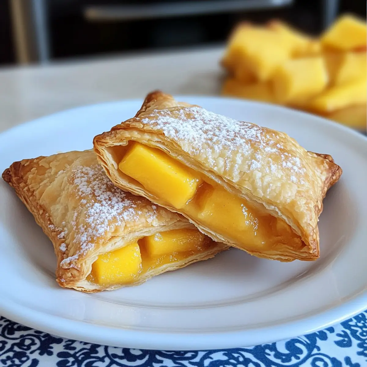 Wusstest du, dass die Kombination aus Pfirsich und Mango nicht nur deine Geschmacksknospen verzaubert, sondern auch Erinnerungen an tropische Strände weckt? Diese Pfirsich-Mango-Taschenkuchen sind eine köstliche Hommage an die beliebten Desserts von Jollibee und bringen mit jedem Bissen den karibischen Flair direkt in deine Küche. Mit ihrer knusprig-goldenen Hülle und der saftigen, fruchtigen Füllung sind sie der perfekte Snack für jede Gelegenheit – ob zum Frühstück, als süßer Snack oder als besonderes Dessert. Diese schnelle und unkomplizierte Rezeptidee macht das Zubereiten von hausgemachten Leckereien zum Vergnügen. Neugierig, wie du diese kleinen Köstlichkeiten in deiner eigenen Küche zaubern kannst? Lass uns gemeinsam in die Welt der Pfirsich-Mango-Taschenkuchen eintauchen! Warum sind Pfirsich-Mango-Taschenkuchen so beliebt? Einfachheit: Die Zubereitung dieser Taschenkuchen ist kinderleicht und erfordert nur grundlegende Backfähigkeiten, perfekt für alle Kochliebhaber. Fruchtige Fülle: Die Kombination von süßen Pfirsichen und saftigen Mangos bringt einen unvergleichlichen tropischen Geschmack in jeden Bissen. Vielseitig: Ob gebacken oder frittiert, die Zubereitungsvarianten bieten jedem Gaumen etwas. Du kannst sie auch mit anderen Früchten, wie Kirschen oder Äpfeln, variieren! Schnell: Mit minimalem Zeitaufwand hast du einen köstlichen Snack oder ein Dessert, das im Nu zubereitet ist – ideal für vielbeschäftigte Tage. Beliebtheit: Diese Pfirsich-Mango-Taschenkuchen sind nicht nur lecker, sondern auch ein echter Publikumsmagnet bei Partys oder Familienfeiern. Kulturelle Inspiration: Lassen Sie sich von dem beliebten Dessert aus den Philippinen inspirieren und bringen Sie einen Hauch von Jollibee in Ihre Küche, um mit jedem Bissen Freude zu verbreiten! Pfirsich-Mango-Taschenkuchen Zutaten • Du wirst begeistert sein, wie einfach du diese leckeren Taschenkuchen zubereiten kannst. Hier sind die Hauptzutaten für deinen perfekten Pfirsich-Mango-Taschenkuchen. Für die Füllung: Dose Pfirsiche – sorgt für Süße und Feuchtigkeit; frische Pfirsiche sind auch eine hervorragende Wahl! Reife Mango – bringt den unverwechselbaren tropischen Geschmack; du kannst frische oder gefrorene Mangos nehmen, je nach Verfügbarkeit. Maisstärke – verdickt die Füllung zu einer marmeladenartigen Konsistenz; arrowroot ist eine gute Alternative, falls du keine Maisstärke hast. Zucker – eine Prise Süße zur Balance der Fruchtsäure; passe die Menge an deinen Geschmack an. Salz (Prise) – hebt den Geschmack der Füllung hervor. Pfirsichsirup – verleiht der Füllung zusätzlichen Geschmack und Feuchtigkeit; kann bei Bedarf durch Wasser ersetzt werden. Für den Teig: Blätterteig – sorgt für eine knusprige, goldene Kruste; du kannst auch einen klassischen Kuchenteig oder Bisquit verwenden, wenn du möchtest. Zum Frittieren oder Backen: Öl (zum Frittieren) – notwendig, um eine goldbraune Kruste zu erzielen; für die gesündere Variante kannst du die Taschen im Ofen backen. Jeder Bissen dieser Pfirsich-Mango-Taschenkuchen bringt Freude und erinnert an die traditionelle süße Köstlichkeit, die du vielleicht von Jollibee kennst! Schritt-für-Schritt-Anleitung für Pfirsich-Mango-Taschenkuchen Step 1: Füllung vorbereiten In einer Schüssel vermische die Maisstärke und den Zucker und stelle die Mischung beiseite. In einem kleinen Topf füge die gewürfelten Pfirsiche, die reife Mango, die Zucker-Maisstärke-Mischung, eine Prise Salz und den Pfirsichsirup hinzu. Erhitze die Mischung bei mittlerer Hitze und lasse sie 3-5 Minuten köcheln, bis sie eindickt und eine marmeladenartige Konsistenz erreicht. Step 2: Füllung abkühlen lassen Sobald die Füllung die gewünschte Konsistenz erreicht hat, nimm den Topf vom Herd. Lasse die Mischung auf Raumtemperatur abkühlen, damit die Aromen sich setzen können. Dies ist auch wichtig, um den Blätterteig nicht zu schmelzen, wenn du die Füllung darauf gibst. Step 3: Blätterteig vorbereiten Rolle den Blätterteig auf einer bemehlten Arbeitsfläche vorsichtig aus, bis er etwa 3 mm dick ist. Schneide den Teig in gleich große Quadrate (ca. 10 cm x 10 cm). Diese Stücke werden die Taschen für die Pfirsich-Mango-Füllung bilden. Step 4: Füllen und Formen Platziere in der Mitte jedes Blätterteigquadrats einen Esslöffel der abgekühlten Pfirsich-Mango-Füllung. Klappe den Teig über die Füllung, um die Taschen zu formen. Drücke die Ränder mit einer Gabel gut zusammen, um sicherzustellen, dass die Füllung beim Frittieren nicht herausläuft. Step 5: Taschen einfrieren Lege die gefüllten Pfirsich-Mango-Taschenkuchen auf ein mit Backpapier belegtes Blech. Stelle das Blech in den Gefrierschrank und lasse die Taschen mindestens 6 Stunden oder über Nacht einfrieren. Das Einfrieren sorgt dafür, dass die Taschen beim Frittieren ihre Form behalten und knusprig werden. Step 6: Frittieren der Taschen Erhitze in einem großen Topf ausreichend Öl bei mittlerer Hitze. Sobald das Öl heiß ist, lege vorsichtig einige gefrorene Taschen hinein. Frittieren sie in Chargen für etwa 3-5 Minuten auf jeder Seite, bis sie goldbraun und knusprig sind. Achte darauf, die Pfirsich-Mango-Taschenkuchen nicht zu überfüllen, damit sie gleichmäßig garen. Step 7: Backen als Alternative Wenn du eine gesündere Variante bevorzugst, heize den Ofen auf 180 °C vor. Bestreiche die gefrorenen Taschen mit einem Ei (oder einer pflanzlichen Alternative) und lege sie in einer einzigen Schicht auf ein mit Backpapier belegtes Blech. Backe sie für 18-20 Minuten, bis sie goldbraun sind und eine knusprige Oberfläche haben. Aufbewahrungstipps für Pfirsich-Mango-Taschenkuchen Raumtemperatur: Bewahre gebackene oder frittierte Pfirsich-Mango-Taschenkuchen in einem luftdichten Behälter bei Raumtemperatur für bis zu 2 Tage auf, um ihre Knusprigkeit zu erhalten. Kühlschrank: Wenn du die Taschenkuchen länger aufbewahren möchtest, kannst du sie im Kühlschrank lage