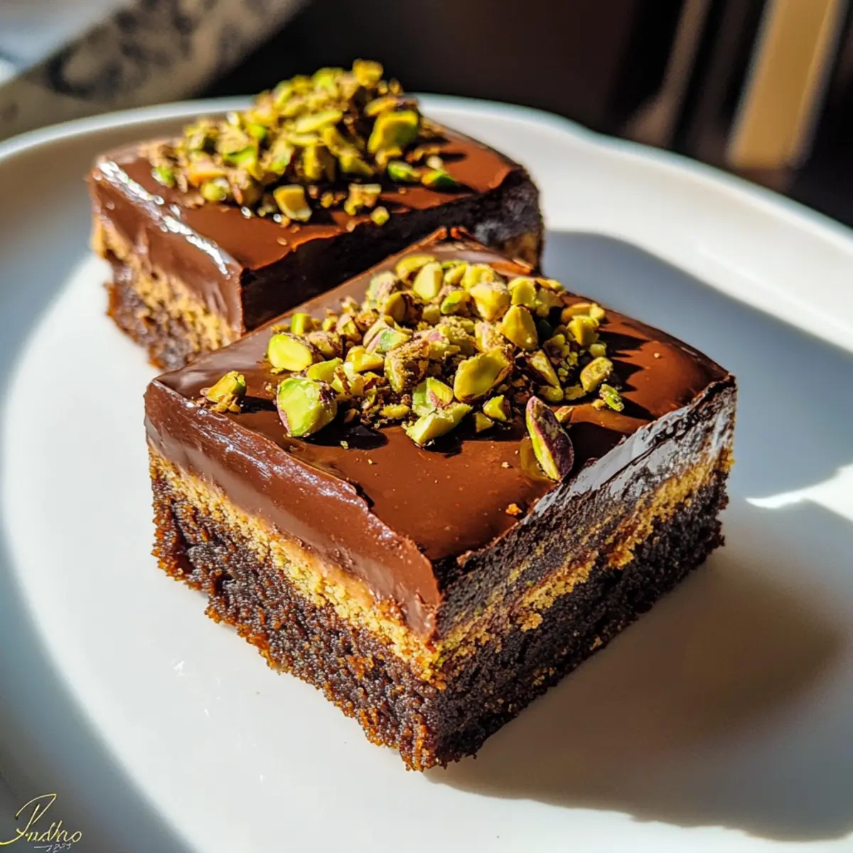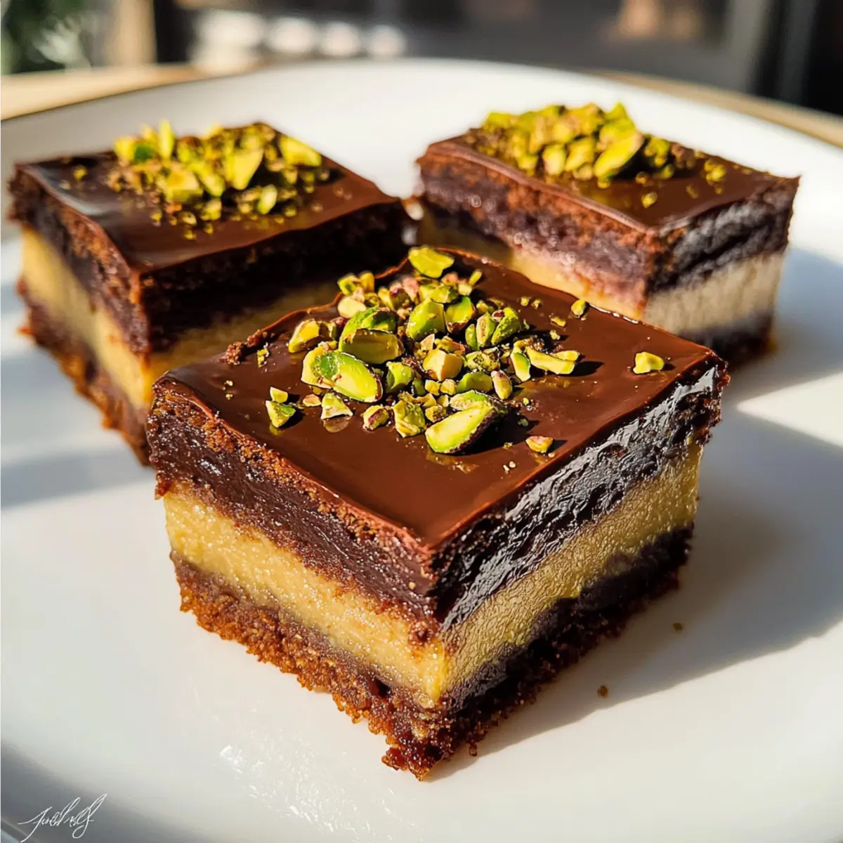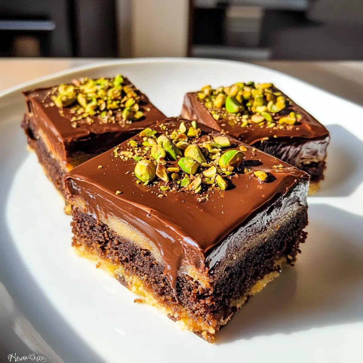 Als ich zum ersten Mal in eine Schüssel mit geschmolzenem Schokoladen-Mischung sah, wusste ich, dass etwas Besonderes entsteht – die Pistazien-Kunafa-Brownies. Diese einzigartige Dessert-Kreation kombiniert die saftige Fudgigkeit der klassischen Brownies mit dem knusprigen, goldenen Geschmack von Kunafa. Mit jedem Bissen erlebst du eine verführerische Harmonie aus süßer Schokolade und nussigen Pistazien, perfekt für Feierlichkeiten oder entspannten Nachmittagskaffee. Die Zubereitung ist schnell und unkompliziert, sodass du deine Freunde garantiert beeindrucken wirst, ohne stundenlang in der Küche zu stehen. Was könnte da noch besser sein? Hast du schon einmal über die köstlichen Möglichkeiten nachgedacht, die sich aus dieser innovativen Fusion ergeben? Warum sind Pistazien-Kunafa-Brownies unwiderstehlich? Einzigartig und lecker: Diese Pistazien-Kunafa-Brownies bieten eine aufregende Fusion aus zwei beliebten Desserts, die dir neue Geschmackserlebnisse bescheren. Einfache Zubereitung: Die Zutaten sind leicht zu finden und die Schritte sind schnell erklärt – perfekt für alle, die köstliche Desserts lieben, ohne viel Aufwand. Knusprige Köstlichkeit: Die Kombination aus knusprigem Kunafa und fudgy Brownies sorgt für einen unwiderstehlichen Biss. Vielseitig: Du kannst nach Belieben variieren, indem du z.B. andere Nüsse oder Aromen hinzufügst. Für jeden Anlass: Ob bei Feiern oder zum persönlichen Genuss, diese Brownies sind der perfekte Hingucker! Wenn du mehr über die wunderbare Kombination traditioneller und moderner Backkunst erfahren möchtest, schau dir diese köstlichen Dessert-Ideen an. Pistazien-Kunafa-Brownie-Zutaten • Ideal für dein nächstes Backabenteuer! Für den Brownieteig: Ungesalzene Butter – sorgt für Reichtum und Feuchtigkeit; du kannst auch Kokosöl für eine milchfreie Option verwenden. Dunkle Schokolade – verleiht Tiefe und intensiven Schokoladengeschmack; achte darauf, hochwertige Schokolade mit mindestens 60% Kakao zu verwenden. Heller Brauner Zucker – sorgt für Süße und Feuchtigkeit; weiße Zuckeranteile können für eine leichtere Konsistenz verwendet werden. Eier – binden die Zutaten und steigern die Reichhaltigkeit; verwende Eier in Zimmertemperatur für gleichmäßiges Mischen. Weißes Mehl – gibt Struktur; für eine glutenfreie Variante kannst du Mandelmehl oder ein glutenfreies Mehl verwenden. Kakaopulver – intensiviert den Schokoladengeschmack; nutze ungesüßtes Kakaopulver für ein gutes Gleichgewicht. Vanilleextrakt – hebt die Geschmacksvielfalt hervor; kannst stattdessen auch Mandelextrakt verwenden. Salz – balanciert die Süße und verstärkt die Aromen; dieses Ingredient ist unverzichtbar. Für die Kunafa-Schicht: Kataifi (oder zerrissenes Filoteig) – sorgt für die knusprige Schicht; achte darauf, es fein zu hacken für gleichmäßige Schichtung. Geröstete Pistazien – verleihen eine nussige Note und Crunch; Walnüsse oder Haselnüsse können als Alternativen verwendet werden. Neutrales Öl – hilft beim Erstellen einer glatten Pistazienbutter; Sonnenblumen- oder Rapsöl sind ebenfalls gute Optionen. Für die Schokoladenganache: Schlagsahne – kreiert eine üppige Schokoladenganache; für eine vegane Option kannst du eine pflanzliche Sahne verwenden. Zerhackte Pistazien (zum Garnieren) – verbessern die Präsentation und den Geschmack; jede andere Nuss kann ebenfalls ausprobiert werden. Diese Pistazien-Kunafa-Brownies sind ein wahrer Genuss! Perfekt für alle, die das Besondere im Dessert suchen. Schritt-für-Schritt-Anleitung für Pistazien-Kunafa-Brownies Schritt 1: Ofen vorheizen Heize deinen Ofen auf 175 °C vor und lege eine Backform mit Backpapier aus. Achte darauf, dass das Backpapier an den Kanten etwas übersteht, damit du die Brownies später leicht herausnehmen kannst. Dies ist entscheidend für eine gleichmäßige Backumgebung und damit die Pistazien-Kunafa-Brownies perfekt gelingen. Schritt 2: Brownieteig herstellen Schmelze die ungesalzene Butter und die dunkle Schokolade in einer Schüssel über einem heißen Wasserbad oder im Mikrowellenofen, bis sie vollständig geschmolzen sind und eine glatte Mischung bilden. In einer separaten Schüssel die Eier mit dem hellbraunen Zucker schaumig schlagen, bis die Farbkombination blass und cremig ist. Füge die geschmolzene Schokoladenmischung und den Vanilleextrakt hinzu und vermenge alles gut. Schritt 3: Trockene Zutaten unterheben Sichere dir eine weitere Schüssel und siebe das Mehl, Kakaopulver und Salz hinein. Mische die trockenen Zutaten sanft unter die Schokoladenmischung, bis alles gut kombiniert ist und eine glatte Teigkonsistenz entsteht. Vermeide es, zu lange zu rühren, um die Braune in ihren saftigen Zustand zu bewahren. Schritt 4: Brownies backen Gieße den Brownieteig gleichmäßig in die vorbereitete Backform und streiche die Oberfläche glatt. Backe die Brownies für etwa 30 Minuten im vorgeheizten Ofen. Sie sind fertig, wenn ein in die Mitte gesteckter Zahnstocher oder Schaschlikspiess sauber herauskommt – so gewinnst du die perfekte fudgy Textur der Pistazien-Kunafa-Brownies. Schritt 5: Schokoladenganache vorbereiten Während die Brownies backen, erhitze die Schlagsahne in einem kleinen Topf, bis sie zu köcheln beginnt. Nimm den Topf vom Herd und gib die Schokoladenstückchen hinzu. Rühre die Mischung gründlich, bis die Schokolade vollständig geschmolzen und die Ganache glatt ist. Lass sie etwas abkühlen, bevor du sie auf die Brownies gibst. Schritt 6: Kunafa-Schicht zubereiten In einer Pfanne die gehackte Kataifi mit etwas geschmolzener Butter bei mittlerer Hitze rösten, bis sie goldbraun und knusprig ist. In einer separaten Schüssel die gerösteten Pistazien und das neutrale Öl zu einer glatten Paste pürieren. Mische die pürierten Pistazien dann vorsichtig mit der gerösteten Kataifi und sorge für eine gleichmäßige Verteilung. Schritt 7: Zusammensetzen Nehme die gebackenen Brownies aus dem Ofen und lasse sie kur