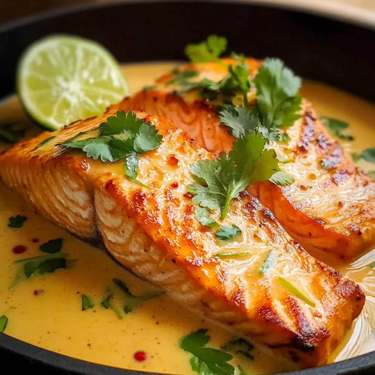 Pochierter Lachs in Kokos-Limetten-Sauce genießen