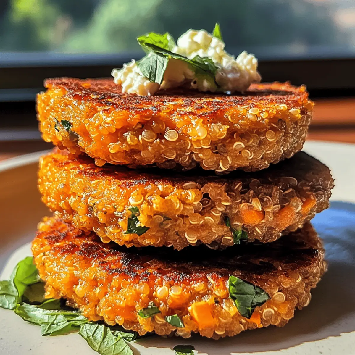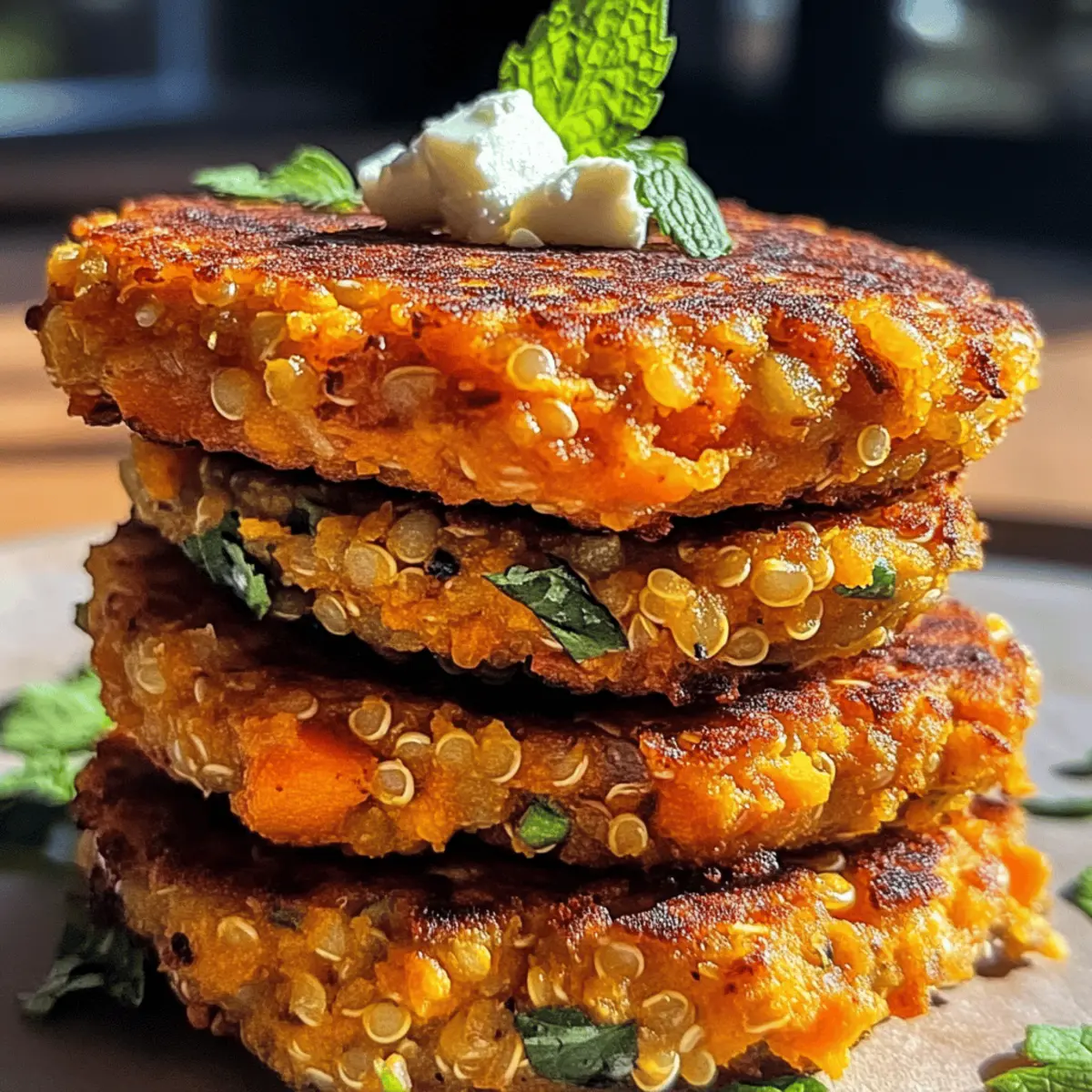 Der zarte Duft von frisch gebratenen Quinoa- und Süßkartoffelpatties mit Feta und Minze erfüllt meine Küche und beschert mir ein Lächeln. Diese vegetarischen Patties sind nicht nur eine gesunde Wahl, sondern auch unglaublich einfach zuzubereiten – perfekt für alle, die sich nach einer köstlichen und nahrhaften Alternative zu Fast Food sehnen. Durch die Kombination des nussigen Geschmacks von Quinoa und der natürlichen Süße der Süßkartoffeln wird jedes Bissen zu einem kleinen Genussmoment. Und das Beste daran? Sie lassen sich wunderbar auf Vorrat zubereiten und sind auch glutenfrei! Neugierig, wie du diese leckeren Patties selbst zaubern kannst? Lass uns gemeinsam in die Küche aufbrechen! Warum sind diese Patties so besonders? Gesundheit auf dem Teller: Diese Quinoa- und Süßkartoffelpatties sind nicht nur lecker, sondern auch reich an Proteinen und Ballaststoffen. Sie erfüllen die Anforderungen einer gesunden Ernährung ohne viel Aufwand. Einfachheit beim Kochen: Mit nur wenigen Zutaten und einfachen Schritten sind sie für Kochanfänger ebenso geeignet wie für erfahrene Köche. Vielseitigkeit entdecken: Die Patties können als Hauptgericht oder Snack serviert werden, ideal für jede Gelegenheit. Sie sind auch eine großartige Ergänzung zu einem geselligen Abendessen oder einem belebten Mittagessen. Zeitersparnis pur: Du kannst sie im Voraus zubereiten und im Gefrierfach aufbewahren – perfekt für gesunde Mahlzeiten in der Eile. Unvergesslicher Geschmack: Die Kombination aus Feta und frischer Minze macht jeden Bissen zu einem Geschmackserlebnis. Auch fertige Dips passen hervorragend dazu und bringen zusätzlichen Genuss. Zutaten für Quinoa-Süßkartoffelpatties • Diese Patties sind nicht nur gesund, sondern auch einfach zubereitet! Für die Patties Quinoa – sorgt für Struktur und enthält viel Protein; blondes oder schwarzes Quinoa bringt zusätzlichen Geschmack. Rote Linsen – verleihen eine angenehme Textur und zusätzliches Protein; vor der Verwendung gut abspülen. Süßkartoffeln – bringen Süße und Feuchtigkeit; sollten gebacken oder gedämpft zubereitet werden, bis sie weich sind. Frischer Spinat – fügt Farbe und Nährstoffe hinzu; andere grüne Blätter können ebenfalls verwendet werden. Feta-Käse – sorgt für eine cremige Konsistenz und salzigen Geschmack; kann durch Ziegenkäse ersetzt oder weggelassen werden, um eine milchfreie Variante zu erzielen. Minze – bringt einen frischen Geschmack ins Spiel; kann nach Wunsch durch Petersilie ersetzt werden. Schnittlauch – für ein mildes Zwiebelaroma; alternativ können Frühlingszwiebeln verwendet werden. Zitronensaft – verleiht den Patties eine frische, helle Note; frischer Saft ist am besten für den Geschmack. Panko oder Kichererbsenmehl – sorgt für eine knusprige Beschichtung; glutenfreie Semmelbrösel sind eine gute Option für Glutenempfindliche. Traubenkernöl – wird zum Braten verwendet; kann durch Olivenöl ersetzt werden, wenn gewünscht. Schritt-für-Schritt-Anleitung für Quinoa-Süßkartoffelpatties Step 1: Quinoa und Linsen kochen Kombiniere in einem Topf die Quinoa, roten Linsen, Wasser und eine Prise Salz. Bringe die Mischung zum Kochen und reduziere dann die Hitze. Decke den Topf ab und lasse die Zutaten 15-20 Minuten sanft köcheln, bis die Quinoa und Linsen gar sind. Gieße überschüssiges Wasser ab und lasse die Mischung eine Weile abkühlen. Step 2: Süßkartoffeln vorbereiten In der Zwischenzeit die Süßkartoffeln schälen, würfeln und dämpfen oder im Ofen backen, bis sie weich sind (ca. 20-25 Minuten). Wenn sie weich sind, nimm sie vom Herd und püriere sie in einer großen Schüssel. Vermische die pürierten Süßkartoffeln anschließend mit dem grob gehackten frischen Spinat, sodass eine farbenfrohe Basis entsteht. Step 3: Mischung anrühren Jetzt füge die abgekühlte Quinoa-Linsen-Mischung, zerbröckelten Feta, frische Minze, Schnittlauch, Zitronensaft, sowie Salz und Pfeffer in die große Schüssel hinzu. Verwende einen Holzlöffel oder deine Hände, um alles gut zu vermengen, bis eine gleichmäßige Masse entsteht. Achte darauf, dass alle Zutaten gut verteilt sind. Step 4: Patties formen und kühlen Nimm etwa ⅓ Tasse der Mischung und forme sie mit deinen Händen zu Patties. Rolle die Patties in Panko oder Kichererbsenmehl, um eine knusprige Beschichtung zu erhalten. Lege die Patties auf ein mit Backpapier belegtes Blech und stelle sie für mindestens 1 Stunde ungedeckt in den Kühlschrank – so halten sie beim Braten besser zusammen. Step 5: Patties braten Erhitze in einer großen Pfanne bei mittlerer Hitze etwas Traubenkernöl. Sobald das Öl heiß ist, lege vorsichtig die Patties in die Pfanne. Brate sie auf jeder Seite etwa 4 Minuten lang, bis sie goldbraun und knusprig sind. Halte die fertigen Patties im Ofen warm, während du den Rest brätst, um sie gleichmäßig warm zu servieren. Variationen und Alternativen Lass deiner Kreativität freien Lauf und passe die Patties nach deinem Geschmack an! Dairy-Free: Ersetze den Feta durch einen veganen Käse oder lasse ihn ganz weg, um die Patties milchfrei zu gestalten. Du kannst auch Nährhefe verwenden, um einen käsigen Geschmack zu erzielen. Scharf: Füge gehackte Chilischoten oder eine Prise Cayennepfeffer hinzu, um den Patties einen feurigen Kick zu verleihen. So wird jede Bissen spannend und aufregend. Geschmacksverstärkung: Experimentiere mit Gewürzen wie Kreuzkümmel oder geräuchertem Paprika für zusätzliche Tiefe und Geschmack. Diese kleinen Änderungen könnten deine neuen Lieblingsgeschmackskombinationen hervorbringen. Glutenfreie Option: Nutze glutenfreie Semmelbrösel anstelle von Panko, um die Patties für Glutenempfindliche geeignet zu machen. So entsteht ein gleichermaßen knuspriges Ergebnis ohne Kompromisse. Nussig: Füge geröstete Sonnenblumenkerne oder Mandeln zur Mischung hinzu, um eine nussige Textur und einen einzigartigen Geschmack zu erhalten. Dies bietet einen wunderbaren 