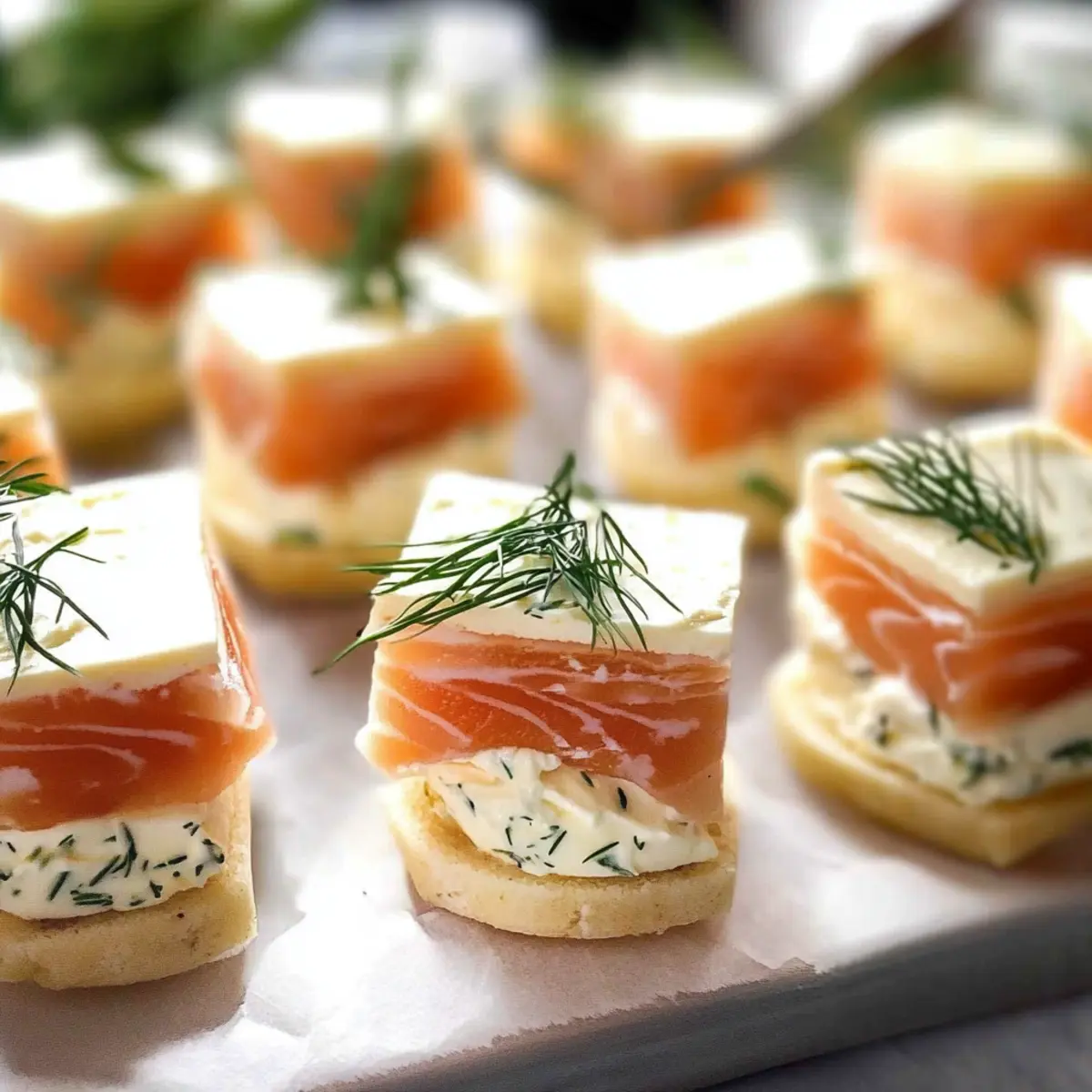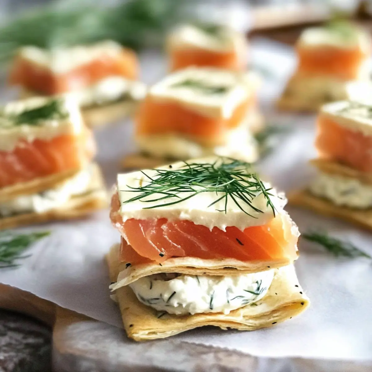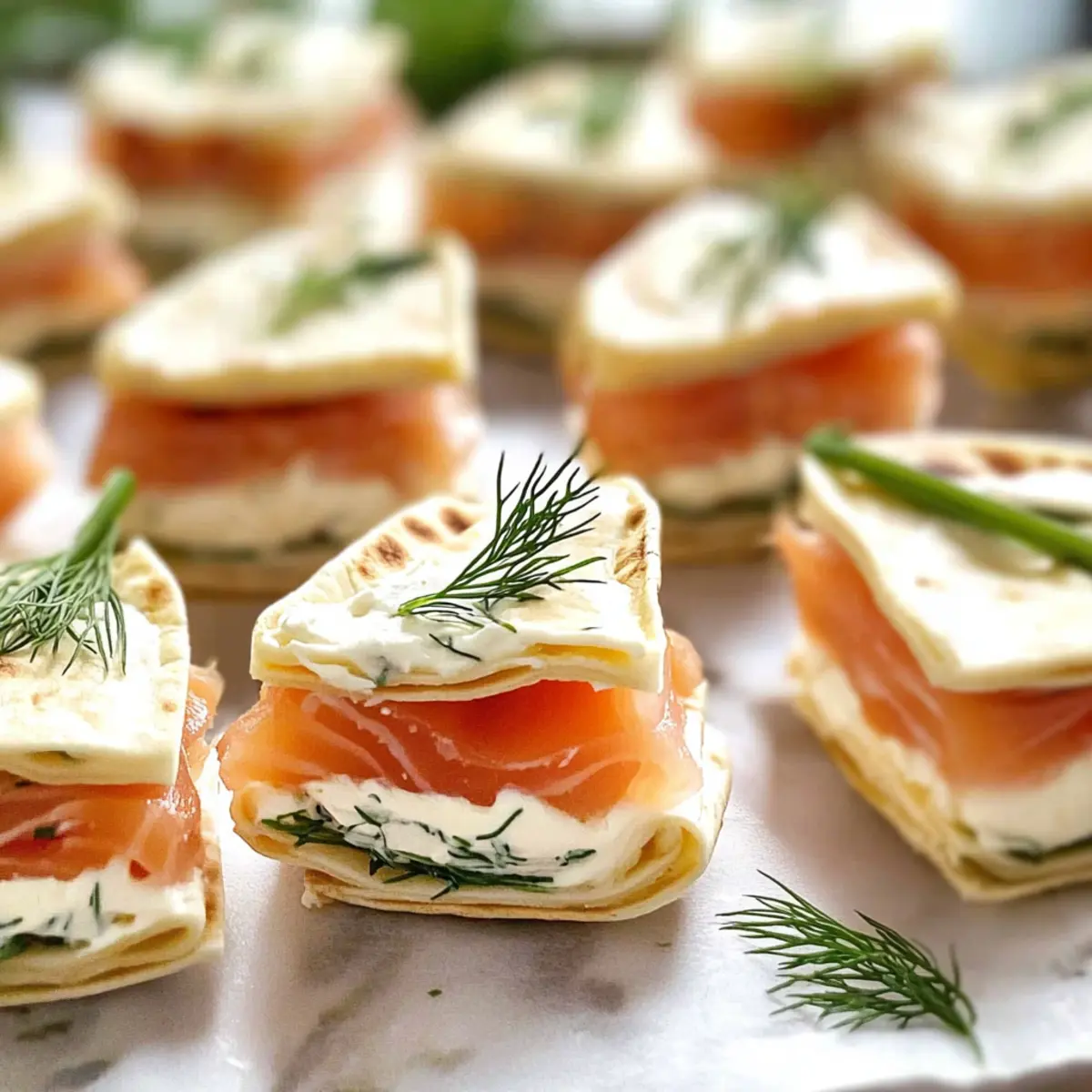 Der herzliche Duft von frischem Dill und geräuchertem Lachs erfüllt die Küche, und ich kann es kaum erwarten, meine Gäste mit einem köstlichen Snack zu überraschen: diesen einfachen Räucher-Lachs-Häppchen. Dieses Rezept zaubert eine elegante Vorspeise, die nicht nur den Gaumen verwöhnt, sondern auch einfach in der Zubereitung ist – in nur 15 Minuten kannst du sie fertigstellen und sie dann problemlos im Kühlschrank aufbewahren. Ideal für jedes Fest oder als gesunder Snack für zwischendurch, diese Häppchen sind ein wahrer Crowd-Pleaser. Ganz gleich, ob du ein entspanntes Abendessen mit Freunden planst oder ein großes Familienfest, diese kleinen Bissen sind immer ein Hit! Neugierig, wie du sie schnell zubereiten kannst? Lass uns gleich loslegen! Warum lieben alle dieses Rezept? Einfachheit: In nur 15 Minuten kannst du diese köstlichen Häppchen zubereiten und im Kühlschrank aufbewahren, perfekt für spontane Snack-Attacken! Vielfältiger Geschmack: Der harmonische Mix aus cremigem Frischkäse, rauchigem Lachs und frischem Dill macht jeden Bissen zu einem Genuss. Ideale Vorspeise: Egal, ob für Cocktails, Familienfeiern oder gemütliche Abende, sie sind stets ein Hit bei Gästen. Gesunde Wahl: Mit nur etwa 40 Kalorien pro Stück sind sie eine leichte und gesunde Option für jede Gelegenheit. Einfache Variationen: Du kannst das Rezept nach Belieben anpassen, z.B. mit gerösteten Gemüse-Scheiben für eine vegetarische Variante! Räucher-Lachs-Häppchen Zutaten • Die perfekten Zutaten für eine schmackhafte Vorspeise! Für die Füllung Frischkäse – sorgt für die cremige Basis; bitte ihn vorher weich werden lassen, um die Mischung zu erleichtern. Sauerrahm – fügt eine angenehme Säure hinzu, die den Frischkäse perfekt ausbalanciert. Knoblauchpulver – verstärkt den Geschmack; frischer Knoblauch kann für mehr Intensität verwendet werden. Zitronenschale – bringt einen frischen Zitrusgeschmack; je nach Vorliebe anpassen. Salz – hebt die Aromen hervor; nach Geschmack dosieren. Dill – frische Kräuter verleihen Geschmack und Farbe. Für die Häppchen Weiche große Wraps/Tortillas – dienen als Basis; weiche Fladenbrote sind hier ideal. Räucher-Lachs – das Herzstück der Häppchen; kaufe etwas mehr, um unterschiedliche Dicken abzudecken. Butter – hilft, den Lachs an der Wraps zu befestigen, um ein Zerfallen während des Schneidens zu vermeiden. Schritt-für-Schritt-Anleitung für Räucher-Lachs-Häppchen Step 1: Füllung zubereiten In einer Schüssel den Frischkäse, Sauerrahm, Knoblauchpulver, Zitronenschale, Salz und frischen Dill gut vermengen, bis eine cremige und gleichmäßige Mischung entsteht. Verwende einen Handmixer oder einen Löffel, um sicherzustellen, dass alle Zutaten gut integriert sind. Diese Füllung wird die Grundlage für deine köstlichen Räucher-Lachs-Häppchen. Step 2: Häppchen zusammenstellen Nimm eine weiche Wraps oder Tortilla und verteile die Hälfte der vorbereiteten Füllung gleichmäßig auf der Fläche. Lege darauf die Scheiben von Räucher-Lachs, sodass der gesamte Wrap bedeckt ist. Anschließend lege einen weiteren Wrap darauf und verteile die restliche Füllung sowie zusätzlich Räucher-Lachs darüber. Step 3: Pressen und Kühlen Für die letzte Schicht, bestreiche die oberste Wrap-Seite leicht mit Butter und lege sie mit der Butterseite nach unten auf die Füllung. Drücke sanft darauf, damit alles gut zusammengedrückt wird. Wickle die gesamte Konstruktion in Frischhaltefolie ein und stelle sie für 4 Stunden in den Kühlschrank, um die Füllung fest werden zu lassen. Step 4: Schneiden und Servieren Nach dem Kühlen nimm die eingewickelten Häppchen heraus und entferne die Frischhaltefolie. Schneide die Ränder ab, um eine schöne Form zu erhalten, und teile sie dann in gleichmäßige Quadrate oder Streifen. Serviere die Räucher-Lachs-Häppchen auf einem hübschen Teller mit Zahnstochern und garniere sie bei Wunsch mit zusätzlichem Dill und Zitronenscheiben. Tipps für die besten Räucher-Lachs-Häppchen Zutaten vorbereiten: Achte darauf, dass der Frischkäse gut weich ist, damit die Füllung schön cremig wird und sich leichter verteilen lässt. Frischhalten: Decke die Häppchen mit Frischhaltefolie ab, um ein Austrocknen zu verhindern. Das sorgt für zarte, saftige Häppchen. Schnittechnik: Verwende ein gezahntes Messer, um die Häppchen perfekt zu schneiden, ohne dass die Füllung herausquillt. Kühlzeit: Lass die Häppchen mindestens 4 Stunden im Kühlschrank, um die Aromen durchziehen zu lassen und die Füllung zu festigen. Servieren: Garnieren mit frischem Dill und Zitronenscheiben sorgt nicht nur für einen optischen Hingucker, sondern verstärkt auch den Geschmack dieser Räucher-Lachs-Häppchen. Variationen & Alternativen für Räucher-Lachs-Häppchen Lass deiner Kreativität freien Lauf und passe das Rezept einfach an deinen Geschmack und deine Vorlieben an! Gemüse-Option: Halbiere die Menge des Lachs und füge dünn geschnittenes, geröstetes Gemüse hinzu – eine leckere, vegetarische Variante. Diese Mischung bringt Farbe und Textur ins Spiel. Kräuterwechsel: Probiere frische Kräuter wie Schnittlauch oder Petersilie anstelle von Dill aus – das bringt eine neue Geschmacksnote! Experimentiere mit verschiedenen Kombinationen, um deinen Favoriten zu finden. Schärfe hinzufügen: Gib etwas Meerrettich zur Füllung hinzu, um einen pikanten Kick zu erzeugen – perfekt für alle, die es etwas würziger mögen. Es hebt die Aromen des Lachses zusätzlich hervor. Fruchtige Note: Ergänze die Mischung mit einem Hauch von Hüttenkäse und etwas geriebenem Apfel oder Birne für eine süße, fruchtige Komponente – ein wahrlich innovativer Twist! Nussige Struktur: Streue gehackte Walnüsse oder Mandeln in die Füllung – sie verleihen zusätzlichen Crunch und ein nussiges Aroma. Diese Variante sorgt für eine gesunde und herzhafte Note. Pikante Abwandlung: Füge einige Kapern oder eingelegte Pickles zur Füllu