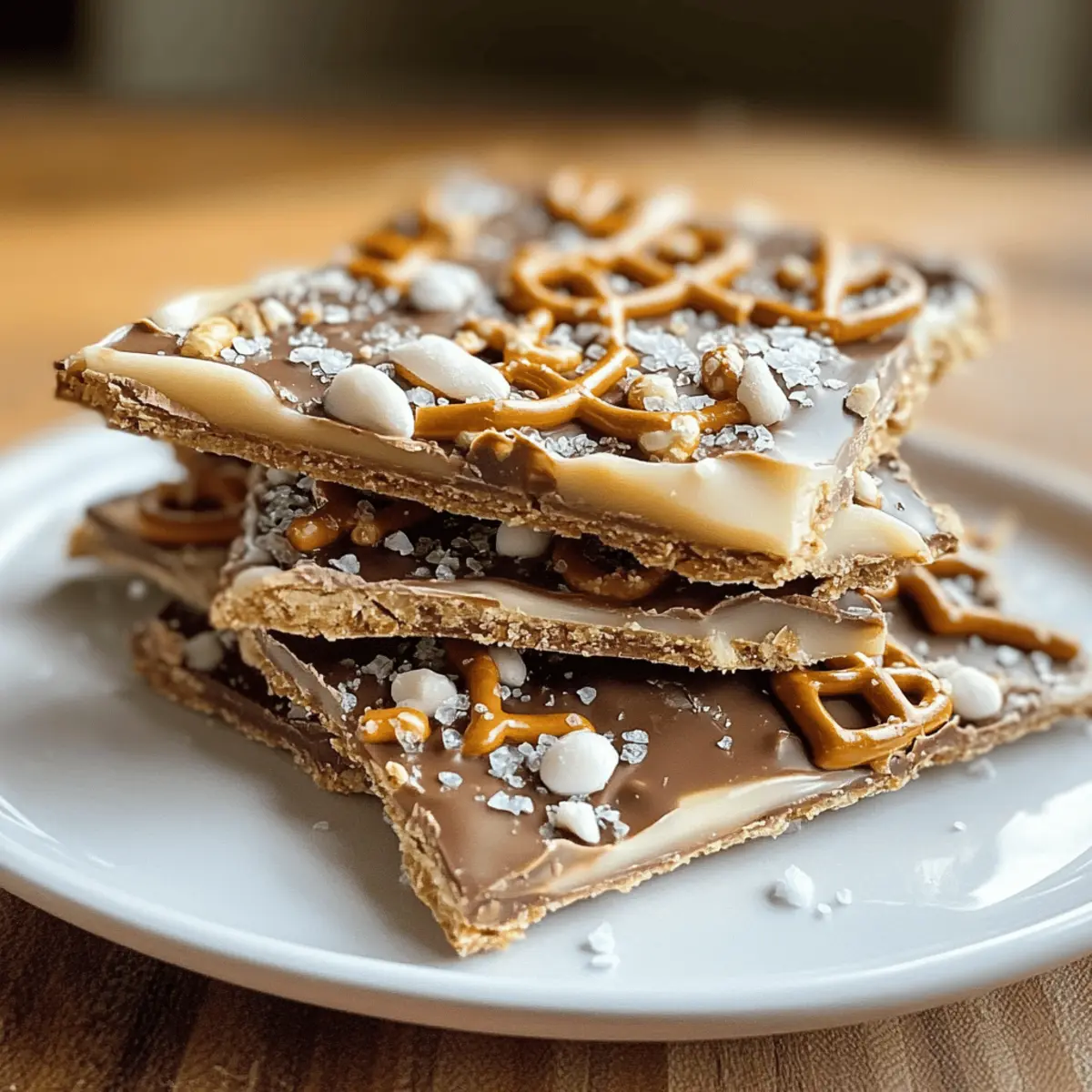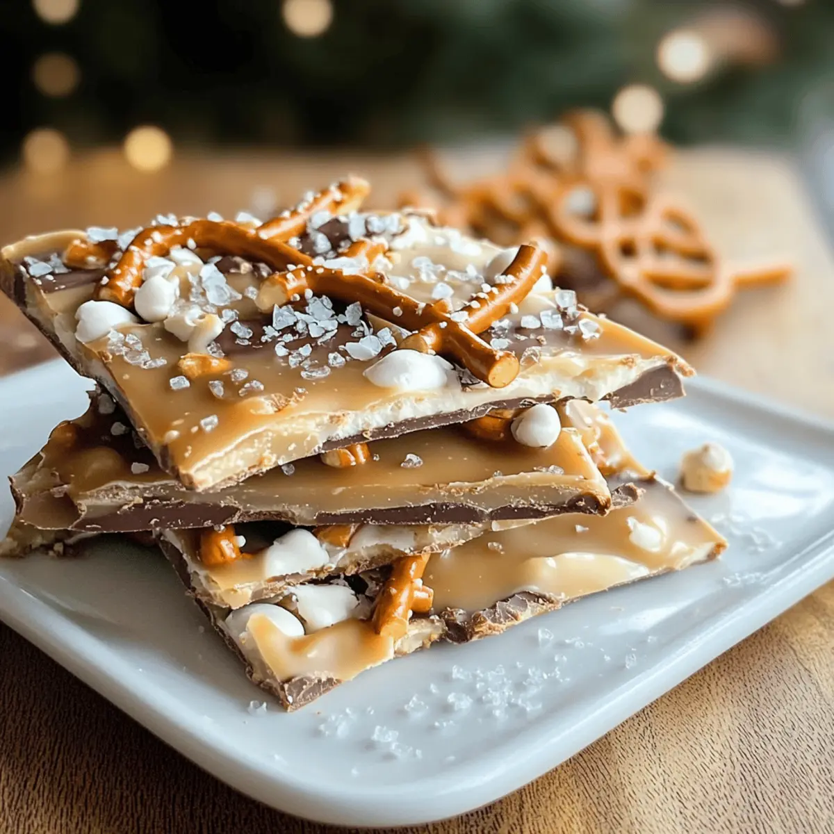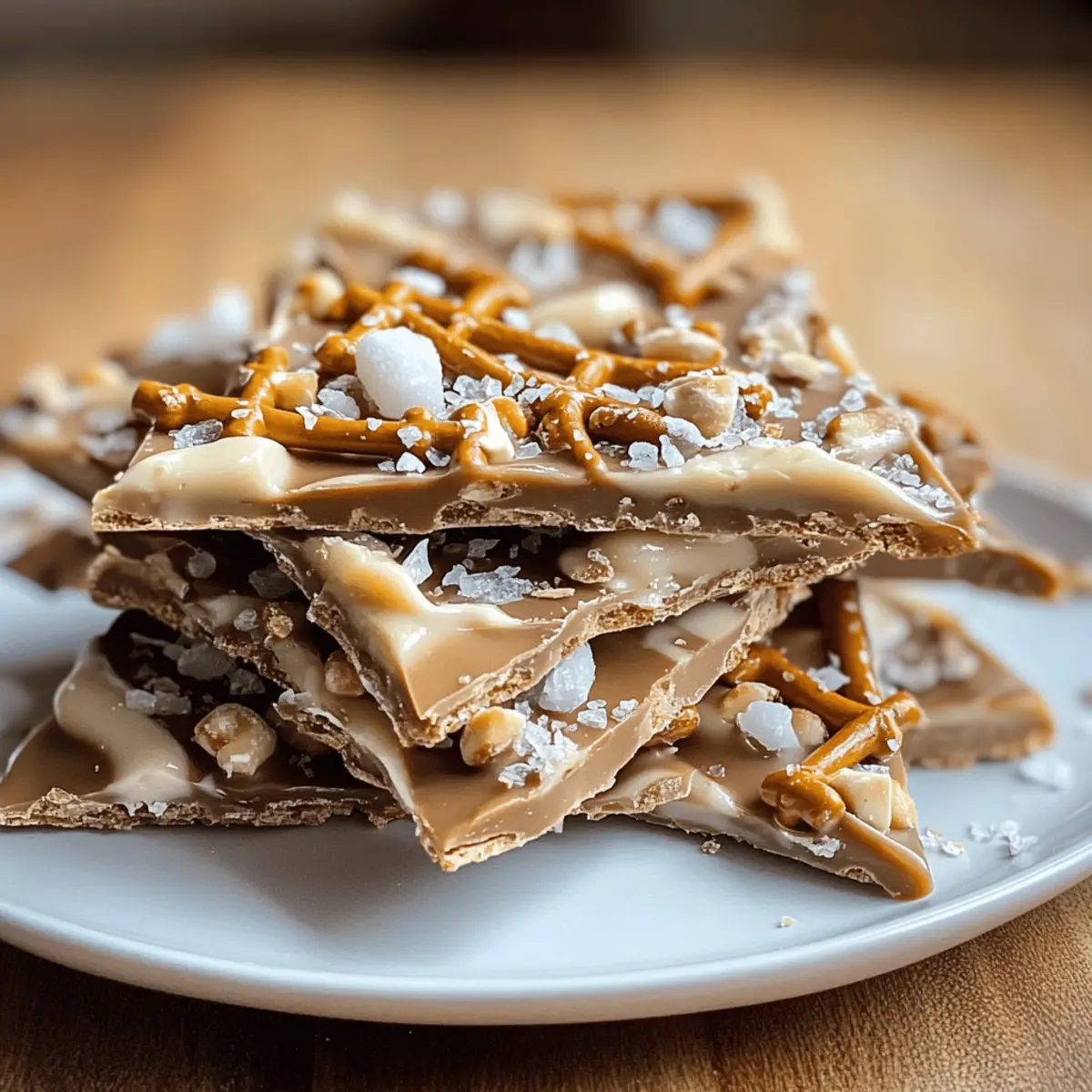 Entdecken Sie der Ausgang der Salted Caramel Bark, ein köstliches Dessert mit einer perfekten Synergie aus süß und salzig.