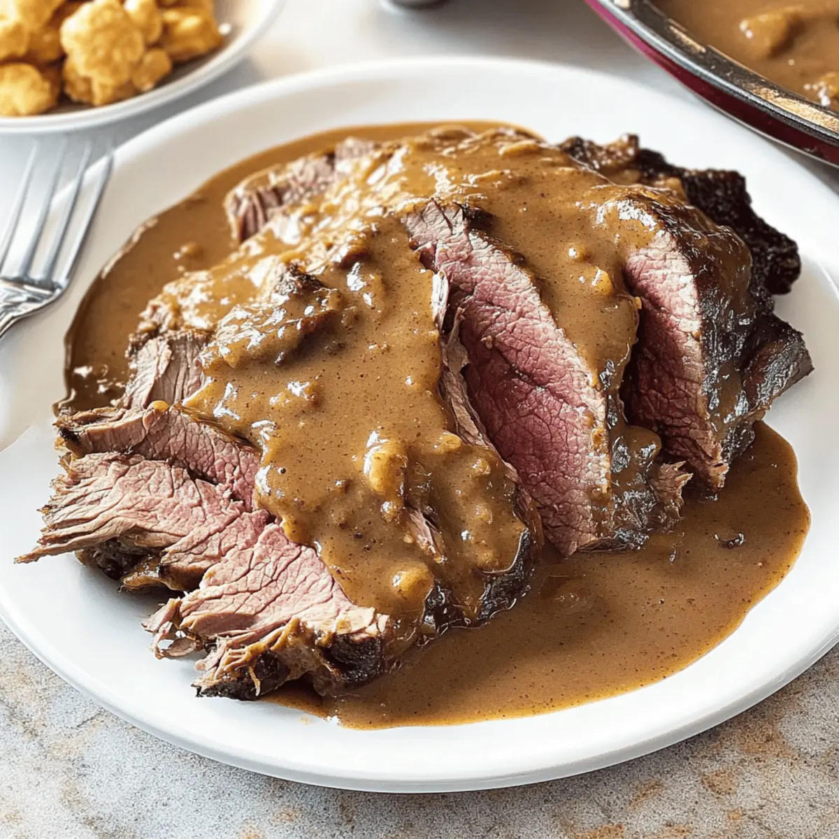 Wenn der Duft von mariniertem Rindfleisch die Räume füllt, spüren selbst die kältesten Winterabende einen Hauch von Gemütlichkeit. Heute lade ich euch ein, ein Stück deutsche Tradition in eurer Küche zu entdecken: Sauerbraten. Dieses Rezept zaubert nicht nur zarte und saftige Fleischstücke auf den Tisch, sondern begeistert auch mit einer herrlichen Gingersnap-Soße, die jedem Bissen einen süß-sauren Kick verleiht. Perfekt für Familienfeiern oder als Seelenwärmer an grauen Tagen, ist dieses Gericht ein wahres Comfort Food. Während wir die Marinade vorbereiten und das Fleisch in den perfekten Genuss verwandeln, stellt sich die Frage: Was serviert man dazu, um das Erlebnis abzurunden? Lasst uns gemeinsam eintauchen in die Welt des Sauerbratens! Warum ist Sauerbraten ein Klassiker? Traditonelles Rezept mit Geschichte: Sauerbraten ist nicht nur ein Gericht, sondern eine kulinarische Tradition, die Generationen verbindet. Zartes Rindfleisch, das mit einer perfekten Marinade gefüllt ist, steigt in seiner Zartheit und seinem Geschmack über den Durchschnitt hinaus. Vielseitig in der Zubereitung, ermöglicht die Verwendung verschiedener Fleischstücke und Marinadenanpassungen, dass jeder sein persönliches Lieblingsrezept kreiert. Leckere Gingersnap-Soße verleiht dem Gericht eine unerwartete Süße, die alle begeistert. Einfach vorzubereiten und ideal zum Vorbereiten – der Sauerbraten wird beim Aufwärmen sogar noch besser! Kombiniert mit Beilagen wie Rotkohl oder Kartoffelpuffern verwandelt sich jede Mahlzeit in ein festliches Erlebnis. Sauerbraten Zutaten • Um sicherzustellen, dass euer Sauerbraten perfekt gelingt, hier die wichtigsten Zutaten! Für die Marinade Rindfleisch (Top Round Roast, 1,8 kg) – Hauptproteinquelle, zart und geschmackvoll, wenn mariniert; bei Bedarf kann auch Tafelspitz oder Hüftsteak verwendet werden. Salz (2 Teelöffel) – Verstärkt den Geschmack und hilft, das Fleisch zu zartem Genuss zu machen. Gemahlener Ingwer (1 Teelöffel) – Fügt dem Gericht eine warme Note hinzu. Wasser (600 ml) – Wird benötigt, um die Marinade herzustellen. Apfelessig (480 ml) – Hauptsäure für das Marinieren, sorgt für eine angenehme Säure. Zucker (80 g) – Balanciert die Säure des Essigs aus. Zwiebeln (2 mittelgroß, in Scheiben) – Bringt Süße und Tiefe in die Marinade. Gemischte Einlegegewürze (2 Esslöffel) – Aromatische Mischung aus Gewürzen wie Senfsaat und Koriander. Schwarze Pfefferkörner (1 Teelöffel) – Fügt Gewürz und Tiefe hinzu. Gewürznelken (8 Stück) – Tragen zur aromatischen Wärme bei; können bei Bedarf weggelassen werden. Lorbeerblätter (2 Stück) – Bringt eine herzhafte Note. Für die Soße Rapsöl (2 Esslöffel) – Zum Anbraten des Fleisches. Gingersnaps (14 bis 16, zerbröselt) – Verdicken und würzen die Soße mit einem Hauch von Süße, unverzichtbar für den einzigartigen Geschmack. Schritt-für-Schritt-Anleitung für Sauerbraten Schritt 1: Marinade vorbereiten Reiben Sie das Rindfleisch gründlich mit Salz und Ingwer ein. Vermischen Sie in einer Schüssel Wasser, Apfelessig und Zucker. Erwärmen Sie die Hälfte der Mischung zusammen mit der Hälfte der Zwiebeln und den Gewürzen in einem Topf, bis sie kocht. Gießen Sie die heiße Marinade über das Fleisch und stellen Sie es für 2 Tage in den Kühlschrank, wobei Sie es regelmäßig wenden. Schritt 2: Abtropfen und Anbraten Nehmen Sie den Sauerbraten aus der Marinade, wobei Sie die Marinade wegwerfen. Tupfen Sie das Fleisch mit einem Küchentuch trocken und erhitzen Sie das Rapsöl in einem großen Schmortopf bei mittlerer bis hoher Hitze. Braten Sie den Sauerbraten rundum goldbraun an, etwa 3-4 Minuten pro Seite, bis er eine schöne Kruste hat. Schritt 3: Zutaten köcheln lassen Fügen Sie 1 Tasse der reservierten Marinade (einschließlich der Zwiebeln und Gewürze) in den Schmortopf hinzu. Bringen Sie alles zum Kochen und reduzieren Sie dann die Hitze, um das Fleisch zugedeckt bei niedriger Temperatur 3 Stunden lang sanft köcheln zu lassen. Überprüfen Sie gelegentlich, ob genug Flüssigkeit für eine gleichmäßige Zubereitung vorhanden ist. Schritt 4: Soße zubereiten Nach dem Kochen den Bratensaft in einen kleinen Topf abseihen und dabei die Feststoffe entfernen. Messen Sie genug von der reservierten Marinade ab, um insgesamt 3 Tassen Flüssigkeit zu erhalten, und bringen Sie diese zum Kochen. Rühren Sie die zerbröselten Gingersnaps ein, bis die Soße eindickt und eine sämige Konsistenz erreicht, etwa 5-7 Minuten. Schritt 5: Servieren Schneide den Sauerbraten in dünne Scheiben und serviere ihn auf einem Teller. Gießen Sie die reichhaltige Gingersnap-Soße großzügig über das Fleisch. Zusammen mit traditionellen Beilagen wie Rotkohl oder Kartoffelpuffern servieren, um ein vollständiges Geschmackserlebnis zu genießen. Tipps für den besten Sauerbraten Marinierzeit beachten: Der Sauerbraten braucht mindestens 2 Tage zum Marinieren, um die Aromen richtig aufzunehmen. Dies ist entscheidend für den Geschmack. Fleischwahl: Verwenden Sie hochwertiges Rindfleisch wie Top Round Roast. Für eine zartere Textur können Sie auch Tafelspitz oder Brisket ausprobieren, um den perfekten Sauerbraten zu erreichen. Gingersnaps nicht vergessen: Die zerbrochenen Gingersnaps sind für die Soße unerlässlich. Sie verleihen dem Gericht eine einzigartige Süße, die Sie nicht missen sollten. Vorsicht beim Würzen: Wenn Sie weniger Gewürzgeschmack mögen, können Sie die Nelken und Lorbeerblätter reduzieren oder weglassen. Dies hilft, die Balance im Sauerbraten zu wahren. Richtiges Anbraten: Stellen Sie sicher, dass das Öl heiß genug ist, bevor Sie den Sauerbraten anbraten. Eine gute Bräunung sorgt für einen köstlichen Geschmack und eine ansprechende Kruste. Soße vor dem Servieren abschmecken: Probieren Sie die Gingersnap-Soße vor dem Servieren, um sicherzustellen, dass die Aromen gut harmonieren und die Konsistenz perfekt ist. Sauerbraten im Voraus zubereiten S