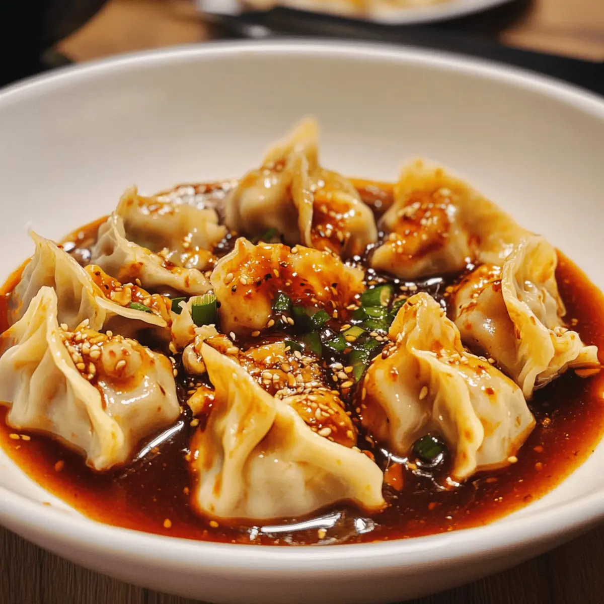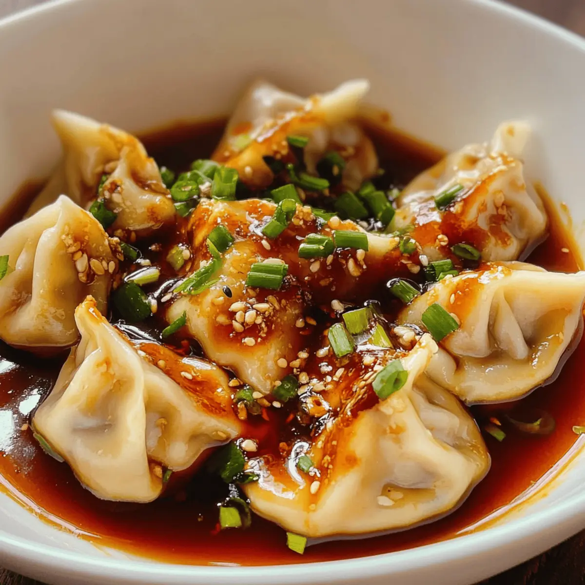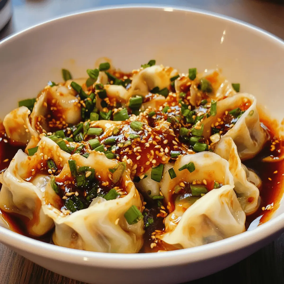 Die Küche ist ein Ort des Abenteuers, und manchmal bringt uns ein einzelner Bissen an den aufregendsten Ort der Welt – wie bei diesen Spicy Sichuan Wontons. In jedem kleinen Päckchen aus zartem Teig verbergen sich essbare Schätze: eine köstliche Füllung aus Schweinefleisch, frischen Frühlingszwiebeln und einem Hauch Ingwer, die es in sich hat. Diese selbstgemachten Teigtaschen sind nicht nur ein Hochgenuss, sondern auch ideal für die Vorratshaltung. Du kannst sie ganz einfach vorkochen und im Gefrierfach aufbewahren, um bei Bedarf ein schnelles und herzhaftes Essen zu zaubern. Einerseits bieten sie den perfekten Komfort für kalte Abende, andererseits verblüffen sie deine Gäste mit ihrer interessanten Aromenvielfalt. Neugierig, wie du diese Wontons im Handumdrehen zubereiten kannst? Lass uns gleich anfangen! Warum wirst du diese Wontons lieben? Einzigartiger Geschmack: Jeder Biss der scharfen Wontons ist ein Abenteuer für die Geschmacksknospen, voller Aroma und perfekt gewürzt. Einfache Zubereitung: Mit nur wenigen Zutaten und klaren Anweisungen kannst du diese leckeren Teigtaschen mühelos selbst zaubern. Vorratstauglich: Ideal für stressige Tage, denn sie lassen sich super einfrieren und sorgen für schnelle, herzhafte Mahlzeiten. Variationen möglich: Sei kreativ! Du kannst die Füllung anpassen, z.B. mit Garnelen oder Gemüse für eine nährstoffreiche Variante. Familienfreundlich: Diese köstlichen Wontons kommen bei Jung und Alt gut an – perfekt für Familienessen oder gesellige Abende. Scharfe Sichuan-Wontons Zutaten • Entdecke alles, was du für die Zubereitung dieser köstlichen Wontons benötigst. Für die Füllung • Schweinehackfleisch – Hauptzutat, die für herzhaften Geschmack sorgt, kann durch Hähnchen ersetzt werden. • Frühlingszwiebeln – Fügen Frische hinzu und mildern den Zwiebelgeschmack; ersetze sie durch Schnittlauch, wenn nötig. • Ingwer – Sorgt für eine warme, würzige Note; frischer Ingwer ist viel aromatischer als Pulver. • Gemahlener weißer Pfeffer – Verleiht eine subtile Schärfe; schwarzer Pfeffer kann als Ersatz dienen, aber der Geschmack variiert. • Hühnerbrühe – Befeuchtet die Füllung und verleiht zusätzlichen Geschmack; Gemüsebrühe ist eine vegetarische Alternative. • Maisstärke – Bindet die Füllung und hält sie saftig; kann durch Pfeilwurzelmehl ersetzt werden. • Ei – Dient als Bindemittel für die Füllung; ein Leinsamen-Ei kann eine vegane Option sein. • Meersalz – Verstärkt den Gesamtgeschmack; verwende koscheres Salz für eine milder schmeckende Alternative. • Wonton-Wrapper – Halten die Füllung zusammen; alternativ können Frühlingsrollen-Wrapper verwendet werden. • Sesamkörner (optional) – Für Garnierung und zusätzlichen Crunch; können für eine nussfreie Variante weggelassen werden. Für die scharfe Sauce • Chiliöl – Verleiht dem Gericht eine würzige Note; selbstgemacht kann eine tolle Alternative sein. • Sojasauce – Bringt eine salzige, umami-reiche Tiefe; achte auf eine glutenfreie Variante, wenn nötig. • Weiße Essig – Sorgt für die nötige Säure; kann durch Reisessig ersetzt werden. • Geriebener Knoblauch – Fügt aromatische Intensität hinzu; frischer Knoblauch nimmt dem Gericht die Schärfe. • Koriander – Ergänzt die Aromen im Dips; kann ans Ende der Zubereitung frisch dazugefügt werden. • Mehr Frühlingszwiebeln – Für zusätzliches Aroma und Garnitur; frisch gehackt, genau zum Servieren hinzufügen. Diese Scharfen Sichuan-Wontons sind nicht nur einfach zuzubereiten, sondern auch eine köstliche Option für jede Gelegenheit. Egal, ob du sie frisch kochst oder einfrierst, sie bieten ein unvergleichliches Geschmackserlebnis! Schritt-für-Schritt-Anleitung für Scharfe Sichuan-Wontons Step 1: Scharfe Sauce vorbereiten Mische in einer Schüssel das Chiliöl, die Sojasauce, den weißen Essig, den geriebenen Knoblauch, die Frühlingszwiebeln und den Koriander. Rühre alles gründlich um, bis die Zutaten gut vermischt sind. Diese scharfe Sauce wird den Wontons einen unverwechselbaren Geschmack verleihen. Stelle die Sauce beiseite, während du die Füllung zubereitest. Step 2: Wonton-Füllung herstellen In einer großen Schüssel kombinierst du das Schweinehackfleisch, die Frühlingszwiebeln, den Ingwer, den gemahlenen weißen Pfeffer, die Hühnerbrühe, die Maisstärke, das Ei und das Meersalz. Mische die Zutaten gründlich und kräftig, bis die Füllung gleichmäßig und gut gebunden ist. Die Füllung sollte klebrig und aromatisch sein, bereit zum Befüllen der Wontons. Step 3: Wontons füllen Halte einen Wonton-Wrapper mit einer Ecke zu dir gerichtet. Platziere einen halben Teelöffel der vorbereiteten Füllung in der unteren Ecke des Wrappers. Klappe die obere Ecke über die Füllung und rolle den Wrapper dann tightly auf, um die Füllung einzuschließen. Drücke die Enden fest zusammen, um sicherzustellen, dass sie gut versiegelt sind, damit die Füllung beim Kochen nicht ausläuft. Step 4: Wontons lagern Lege die geformten Wontons auf ein mit Maisstärke bestäubtes Tablett, damit sie nicht kleben bleiben. Wenn du die Wontons nicht sofort kochen willst, decke sie mit Frischhaltefolie ab und lege sie in den Gefrierschrank, um das Zusammenkleben zu verhindern. Diese Schritt ist besonders nützlich, wenn du eine größere Menge im Voraus zubereitest. Step 5: Wontons kochen Bringe in einem großen Topf Wasser zum Kochen. Wenn das Wasser sprudelt, koche die Wontons in kleinen Portionen für etwa 4-5 Minuten. Die Wontons sind fertig, wenn sie an der Oberfläche schwimmen und durchgegart sind. Nimm sie vorsichtig mit einem Schaumlöffel heraus und lasse sie abtropfen, bevor du sie servierst. Step 6: Servieren Platziere die warmen Wontons in Schalen und beträufle sie großzügig mit der vorbereiteten scharfen Sauce. Wenn gewünscht, garniere sie mit gerösteten Sesamkörnern für zusätzlichen Crunch und Geschmack. Diese scharfen Sichuan-Wont