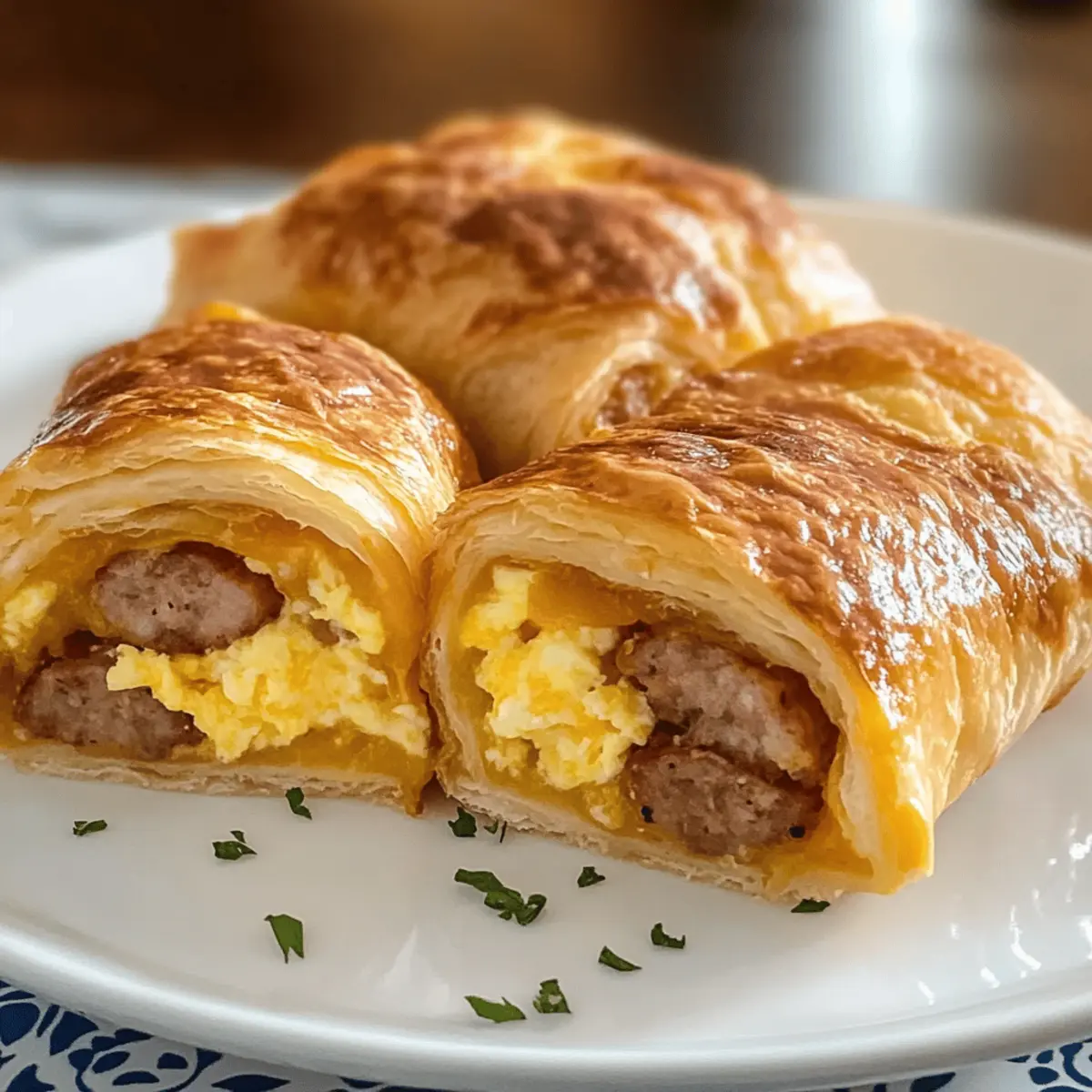 Während ich in meiner Küche die frischen Zutaten für die Sausage Egg Breakfast Roll-Ups vorbereite, erfüllt der leckere Geruch von gebratenem Wurst und geschmolzenem Käse den Raum. Diese schnellen Frühstücks-Roll-Ups sind nicht nur ein Fest für die Sinne, sondern auch der perfekte Begleiter für hektische Morgen oder entspannte Brunches mit der Familie. In nur 30 Minuten stehen sie auf dem Tisch und zaubern ein herzhaftes, handliches Mahl, das jeden glücklich macht. Ganz gleich, ob du sie mit verschiedenen Würstchen oder buntem Gemüse anreichern möchtest, diese Rezeptidee lässt sich nach Belieben anpassen. Bereit, dein Frühstück aufzupeppen? Lass uns gemeinsam in die Welt der köstlichen Möglichkeiten eintauchen! Warum sind diese Roll-Ups so besonders? Einfachheit: Die Zubereitung ist kinderleicht und erfordert nur grundlegende Kochkenntnisse. Vielseitigkeit: Du kannst die Füllungen anpassen, zum Beispiel mit verschiedenen Würstchen oder Gemüse deiner Wahl, was diese Roll-Ups besonders ansprechend macht. Schnell zubereitet: In nur 30 Minuten hast du ein köstliches Frühstück, das sowohl für unter der Woche als auch für entspannte Sonntage geeignet ist. Familienfreundlich: Die Roll-Ups sind nicht nur lecker, sondern auch für Kinder geeignet, sodass sie bei der ganzen Familie gut ankommen – perfekt für frühe Morgenstunden! Praktisch: Du kannst sie gut im Voraus zubereiten und bei Bedarf einfach aufwärmen. Ideal für vielbeschäftigte Menschen! Zutaten für die Frühstücks-Roll-Ups Hinweis: Diese schnell zubereiteten Frühstücks-Roll-Ups sind ein ideales Rezept für hektische Morgen. Für die Füllung • Frühstückswurst – sorgt für den herzhaften, fleischigen Geschmack; kannst du durch Putenwurst, Chorizo oder pflanzliche Wurst ersetzen. • Große Eier – bieten Struktur und Eiweiß; schlage sie hellgelb für fluffigere Eier. • Milch – sorgt für Cremigkeit bei den Rühreiern; du kannst auch pflanzliche Milch verwenden. • Salz und Pfeffer – verstärken den Geschmack; passe sie nach deinem Geschmack an. • Butter – verleiht den Eiern einen reichen Geschmack; optional für eine gesündere Variante. • Geriebener Cheddar-Käse – sorgt für eine geschmolzene, geschmackvolle Textur; du kannst auch Mozzarella oder Pepper Jack für einen Twist nutzen. Für den Teig • Kühlregale Croissant-Teig – gibt eine flauschige, buttrige Umhüllung um die Füllung; Alternativen sind Blätterteig oder selbstgemachter Keksteig. Schritt-für-Schritt-Anleitungen für Schnelle Frühstücksrolle mit Wurst und Ei Schritt 1: Wurst anbraten Erhitze eine große Pfanne bei mittlerer Hitze und füge die Frühstückswurst hinzu. Brate sie etwa 5-7 Minuten lang, bis sie schön gebräunt und durchgegart ist. Denke daran, überschüssiges Fett abzugießen, damit die Roll-Ups nicht zu fettig werden. Schritt 2: Eier verquirlen In einer Schüssel die großen Eier mit Milch, Salz und Pfeffer verquirlen, bis die Mischung leicht und schaumig ist. Schmelze in der gleichen Pfanne, in der du die Wurst gebraten hast, etwas Butter bei mittlerer Hitze und gieße die Eier hinein. Rühre sie vorsichtig 3-4 Minuten lang, bis sie fluffig und fest sind. Schritt 3: Roll-Ups zusammenstellen Lege den Kühlschrank-Croissant-Teig auf eine bemehlte Fläche und schneide ihn in Rechtecke. Platziere eine Portion der gewürzten Wurst und der Rühreier in der Mitte jedes Rechtecks, bestreue sie mit geriebenem Cheddar-Käse und rolle sie straff auf. Achte darauf, dass du die Enden gut verschließt. Schritt 4: Backen Heize den Ofen auf 190 °C (375 °F) vor. Lege die Roll-Ups auf ein mit Backpapier ausgelegtes Blech und backe sie etwa 12-15 Minuten lang, bis sie goldbraun und durchgebacken sind. Achte darauf, dass sie an den Rändern knusprig sind, um das perfekte Frühstückserlebnis zu gewährleisten. Lagerungstipps für Frühstücks-Roll-Ups Zimmertemperatur: Die Roll-Ups sollten nicht länger als 2 Stunden bei Zimmertemperatur aufbewahrt werden, um die Frische zu gewährleisten. Kühlschrank: Bewahre die übrig gebliebenen Roll-Ups in einem luftdichten Behälter im Kühlschrank auf; sie bleiben bis zu 3 Tage frisch. Gefrierschrank: Wickele die einzelnen Frühstücks-Roll-Ups fest in Frischhaltefolie ein und lagere sie im Gefrierbeutel; sie sind bis zu 3 Monate haltbar. Wiedererhitzen: Zum Aufwärmen die Roll-Ups leicht abdecken und im Ofen bei 175°C etwa 10 Minuten erhitzen, bis sie durch und durch warm sind. Was passt zu Schnellen Frühstücksrollen mit Wurst und Ei? Während du die köstlichen Roll-Ups genießt, gibt es viele Beilagen, die deine Mahlzeit perfekt ergänzen. Lass uns diese herrlichen Kombinationen entdecken! Frischer Obstsalat: Eine leichte und fruchtige Beilage, die den herzhaften Geschmack der Roll-Ups auflockert und für einen frischen Genuss sorgt. Ein bunter Obstsalat bringt nicht nur Farbe auf den Teller, sondern auch eine natürliche Süße, die perfekt zu den salzigen Aromen passt. Avocado-Scheiben: Butterige Avocados verleihen jedem Bissen eine cremige Textur. Die gesunden Fette in der Avocado kombinieren sich hervorragend mit dem herzhaften Geschmack der Wurst und dem Käse. Joghurt mit Honig: Ein cremiger Joghurt bietet eine süße, erfrischende Note, die die Geschmäcker ausgleicht. Mit einem Klecks Honig oder einigen Nüssen wird er zu einer köstlichen Ergänzung, die den Gaumen erfreut. Kaffee oder Tee: Ein warmes Getränk wie frisch gebrühter Kaffee oder ein beruhigender Tee rundet das Frühstück perfekt ab. Sie sorgen für einen belebenden Start in den Tag und harmonieren wunderbar mit den warmen Roll-Ups. Gebratene Tomaten: Diese sind eine köstliche und gesunde Beilage, die dem Frühstück einen dezenten Hauch von Süße und Säure verleiht. Die saftigen, warmen Tomaten ergänzen sich hervorragend mit dem herzhaften Geschmack der Wurst und den Eiern. Gegrillter Spargel: Knusprig und gesund, bringt dieser Gemüseklassiker Farbe und eine leicht nussige Note 