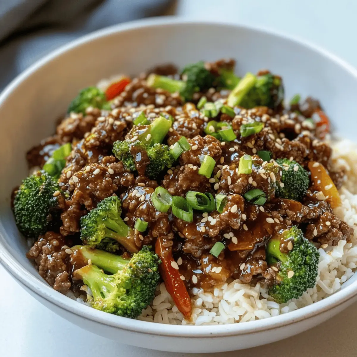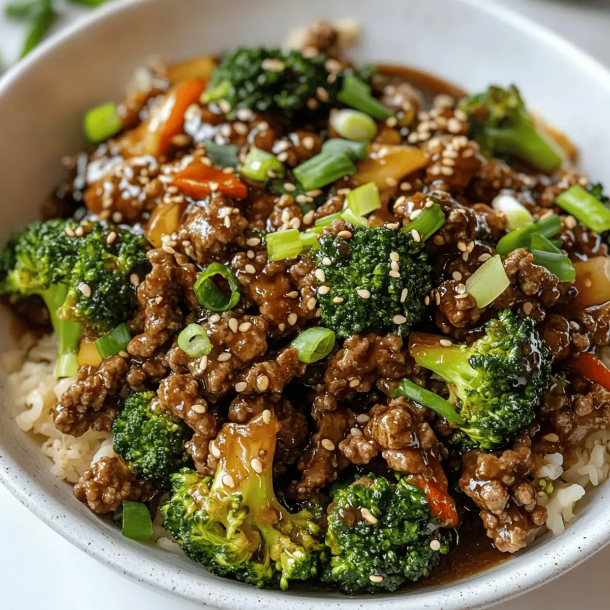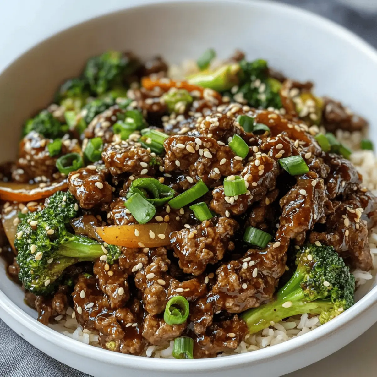 Wusstest du, dass du in nur 20 Minuten ein köstliches chinesisches Gericht zubereiten kannst, das nicht nur schnell ist, sondern auch gesund und lecker? Diese schnelle und einfache Variante von Rindfleisch und Brokkoli mit Hackfleisch wird dich und deine Lieben begeistern. Mit zartem Brokkoli und einer schmackhaften Sauce wird dieses Gericht zu deinem neuen Favoriten für stressige Wochentage. Es ist nicht nur ein Genuss für den Gaumen, sondern auch unglaublich einfach zuzubereiten, was dir wertvolle Zeit in der Küche spart. Neugierig darauf, wie das Rezept funktioniert und welche Überraschungen es bereithält? Lass uns gleich loslegen! Warum wirst du dieses Rezept lieben? Einfachheit: Die Zubereitung ist kinderleicht und benötigt nur grundlegende Kochkenntnisse. Schnell und Gesund: In nur 20 Minuten bereit, ideal für hektische Wochenabende. Vielfältige Variationen: Du kannst das Gericht leicht mit verschiedenen Gemüsearten oder Proteinen personalisieren, wie zum Beispiel bei einem Steak Avocado Bowl. Würzige Aromen: Die süß-saure Sauce kombiniert herrlich mit dem zarten Hackfleisch und dem knackigen Brokkoli. Crowd-Pleaser: Perfekt für die ganze Familie und Gäste, immer ein Hit am Esstisch! Zutaten für schnelles Rindfleisch und Brokkoli • Dieses Rezept für schnelles Rindfleisch und Brokkoli benötigt nur wenige Zutaten und ist kinderleicht zuzubereiten. Für die Sauce Sojasauce – Verleiht Salzgehalt und Umami; für eine glutenfreie Variante speziellen Tamari verwenden. Hoisinsauce – Sorgt für Süße und Tiefe; kann durch glutenfreie Hoisinsauce ersetzt werden. Brauner Zucker – Fügt Süße hinzu; Honig oder Ahornsirup sind auch Alternativen. Knoblauch (gerieben) – Bringt aromatischen Geschmack; vorgehackten Knoblauch verwenden, wenn gewünscht. Ingwer (gerieben) – Gibt Wärme und Würze; es kann auch gemahlener Ingwer verwendet werden. Maisstärke – Verdickt die Sauce; verwende Pfeilwurzelmehl als glutenfreie Alternative. Wasser oder Hühnerbrühe – Bildet die Basis der Sauce; Brühe verstärkt den Geschmack. Für das Hauptgericht Rinderhackfleisch – Hauptproteinquelle; kann durch Puten- oder Hähnchenhack ersetzt werden für eine leichtere Option. Brokkoli (in Röschen geschnitten) – Sorgt für Textur und Nährstoffe; auch Gemüse wie Paprika oder Zuckerschoten passen gut dazu. Frühlingszwiebeln (dünn geschnitten) – Bringt Frische als Garnitur; kann weggelassen werden. Sesamöl – Verleiht nussigen Geschmack; Olivenöl kann als Ersatz verwendet werden. Geröstete Sesamsamen – Optionale Garnitur für zusätzlichen Crunch; weglassen, wenn Allergien bestehen. Schritt-für-Schritt-Anleitungen für schnelles Rindfleisch und Brokkoli in 20 Minuten Step 1: Sauce vorbereiten In einer Schüssel Sojasauce, Hoisinsauce, braunen Zucker, geriebenen Knoblauch, Ingwer, Maisstärke und Wasser oder Hühnerbrühe gut vermischen, bis eine gleichmäßige Konsistenz erreicht ist. Diese schmackhafte Sauce wird die Grundlage für dein schnelles Rindfleisch und Brokkoli bilden, also achte darauf, dass alle Zutaten gut integriert sind. Step 2: Rinderhackfleisch anbraten Erhitze eine große Pfanne bei mittlerer bis hoher Hitze. Füge das Rinderhackfleisch hinzu und brate es etwa 5 Minuten lang an, bis es durchgegart und nicht mehr rosa ist. Vergiss nicht, das Fleisch während des Garens mit einem Pfannenwender zu zerkleinern, damit es gleichmäßig bräunt. Lass überschüssiges Fett abtropfen, um ein leichteres Gericht zu erhalten. Step 3: Sauce hinzufügen und köcheln Gieße die vorbereitete Sauce in die Pfanne über das gebratene Rinderhackfleisch. Rühre gut um, damit das Fleisch die Aromen aufnimmt. Lasse die Mischung 2-3 Minuten köcheln, bis die Sauce eindickt und die Aromen verschmelzen. Du wirst eine schöne, glänzende Sauce sehen, die die Grundlage für den Rest des Gerichts bildet. Step 4: Brokkoli einarbeiten Füge die Brokkoliröschen in die Pfanne hinzu und vermische alles gründlich. Lasse den Brokkoli etwa 5 Minuten lang garen, bis er zart, aber noch knackig ist. Achte darauf, dass der Brokkoli schön leuchtend grün bleibt, das gibt deinem Gericht nicht nur Farbe, sondern auch eine frische Textur. Step 5: Mit Frühlingszwiebeln und Öl abschließen Nimm die Pfanne vom Herd und rühre die dünn geschnittenen Frühlingszwiebeln sowie das Sesamöl unter. Diese Zutaten verleihen deinem schnellen Rindfleisch und Brokkoli eine aromatische Frische. Wenn gewünscht, kannst du das Gericht auch mit gerösteten Sesamsamen bestreuen, um zusätzlichen Crunch hinzuzufügen und das Gesamtbild zu verfeinern. Variationen und Alternativen für schnelles Rindfleisch und Brokkoli Lass deiner Kreativität freien Lauf und personalisiere dieses Rezept nach deinem Geschmack! Glutenfrei: Verwende glutenfreie Sojasauce und Hoisinsauce für eine allergiefreundliche Variante. Low-Carb: Tausche den Brokkoli gegen Blumenkohlröschen aus für eine kohlenhydratarme Option. Versuche auch, das Gericht mit Zoodles (Zucchini-Nudeln) zu servieren – das sorgt für tolle Texturen! Vegetarisch: Ersetze das Rinderhackfleisch durch pflanzliches Hackfleisch für eine köstliche, fleischlose Variante. Deine Familie wird diese gesunde Überraschung lieben. Scharf: Füge frische Chili oder Chilipaste hinzu, um dem Gericht eine feurige Note zu verleihen. Ein wenig scharfer Sesamöl kann ebenfalls für Extra-Wärme sorgen. Zusätzliche Gemüse: Experimentiere mit anderen Gemüsesorten wie Karotten, Zuckerschoten oder Paprika, um mehr Farbe und Nährstoffe in dein Gericht zu bringen. Diese Gemüsemischung bringt frische und Vielfalt auf den Tisch! Probiere es auch in einem Caesar Croissant Sandwich. Süß: Mische etwas Ananas oder Kirschen in die Sauce, um eine interessante süß-herzhafte Kombination zu erzielen. Diese Fusions-Aromen werden deine Geschmacksknospen überraschen. Röstgeschmack: Brate Sesamsamen oder Erdnüsse leicht an und streue sie über das fertige Gericht für zusätzlichen C