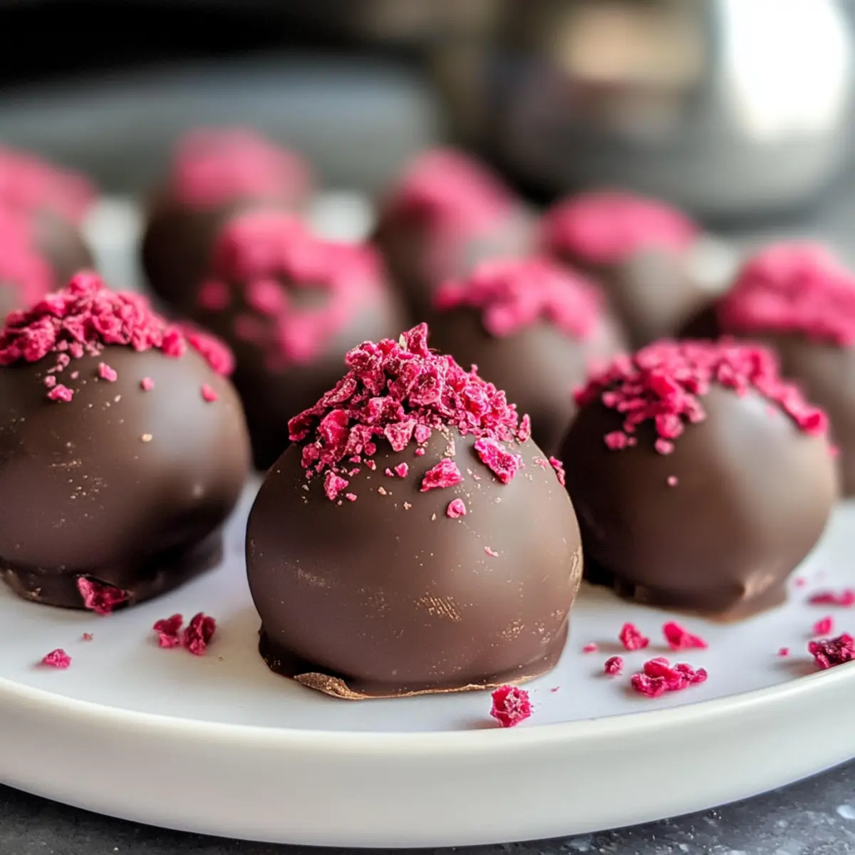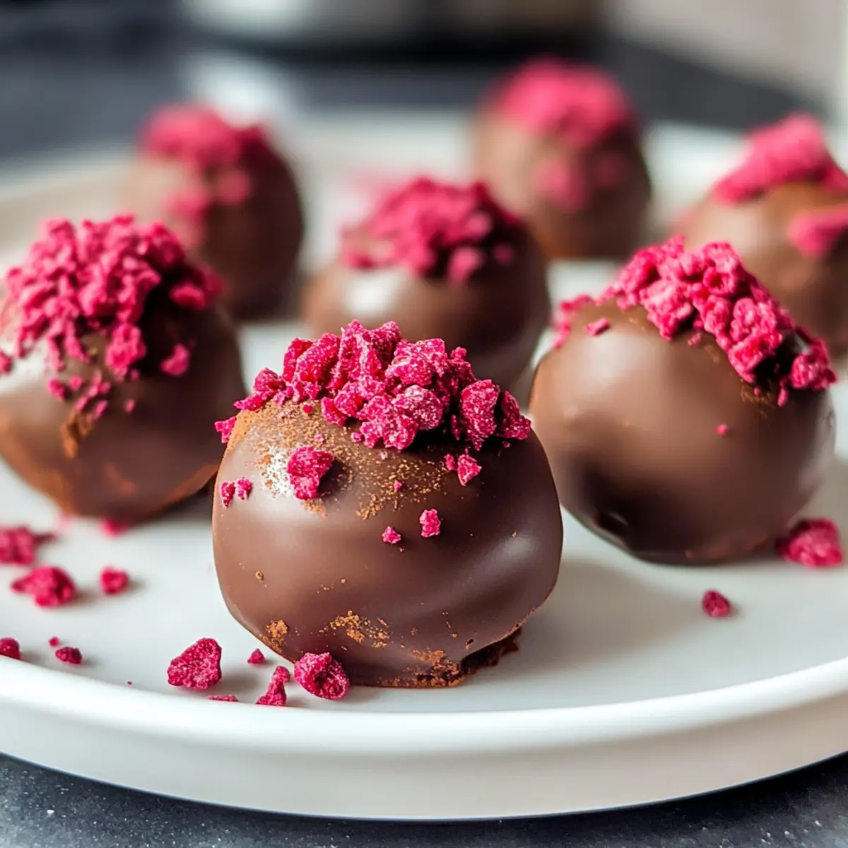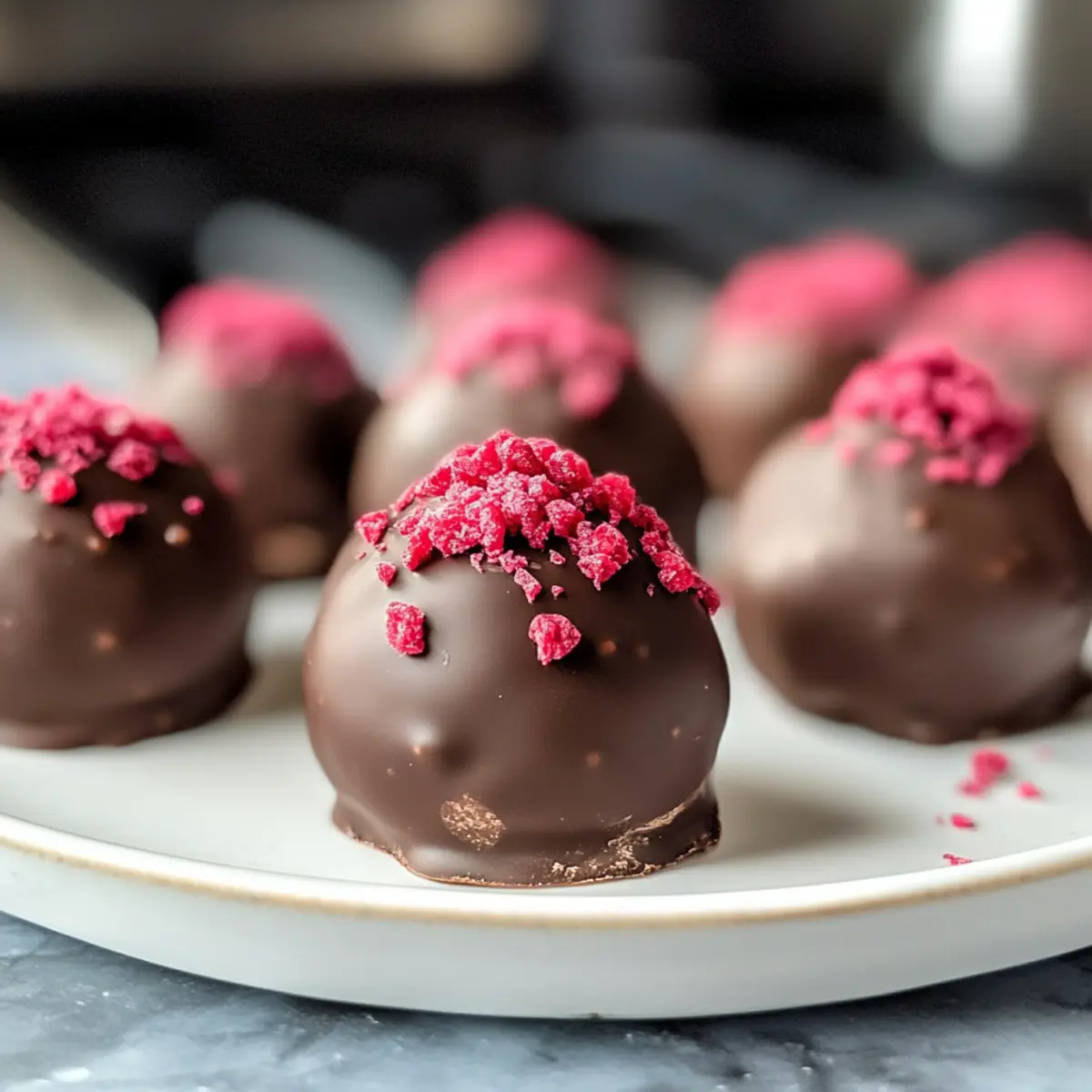 Eines Tages, als ich in der Küche stand und die schokoladigen Versuchungen um mich herum zählte, kam mir eine geniale Idee: wie wäre es mit Schokoladen-Himbeer-Trüffeln? Mit nur drei Zutaten sind diese no-bake Köstlichkeiten der schnelle Hit, den man sich für zwischendurch oder für einen romantischen Abend wünscht. Die Kombination aus cremiger Schokolade und der frischen, fruchtigen Note der gefriergetrockneten Himbeeren macht sie einfach unwiderstehlich. Diese Trüffel sind nicht nur ein Genuss für den Gaumen, sondern auch ein attraktives Geschenk zum Valentinstag. Wer könnte da widerstehen? Seid ihr bereit, eure Liebsten mit diesem einfachen, aber raffinierten Dessert zu überraschen? Warum sind diese Trüffel so besonders? Einfachheit, die überzeugt: Mit nur drei Zutaten zaubern Sie diese Leckerei im Handumdrehen. Kein kompliziertes Backen, nur pure Freude! Cremiger Genuss: Die Kombination aus Schokolade und Himbeeren sorgt für eine himmlische Geschmacksexplosion, die jeden Schokoladenliebhaber entzückt. Perfekt für besondere Anlässe: Ob Valentinstag oder Dinner-Party, diese Trüffel sind die ideale Überraschung für Ihre Liebsten. Vielfältige Variationen: Experimentieren Sie mit verschiedenen Schokoladensorten – von dunkel bis weiß – um Ihre persönliche Note hinzuzufügen. Schnell und praktisch: Diese no-bake Option ist der perfekte Retter in der Not, wenn der süße Zahn ruft! Ideal für alle, die schnelle und beeindruckende Desserts lieben. Schokoladen-Himbeer-Trüffel Zutaten • Die Himbeer-Trüffel sind eine köstliche Verführung, die mit nur drei Zutaten zubereitet werden können! Für die Trüffelmasse Vollmilch-Schokoladenstückchen – Diese geben der Trüffel die perfekte Konsistenz und den vollen Schokoladengeschmack; verwenden Sie hochwertige Schokolade für die besten Ergebnisse. Sahne – Sie sorgt für eine cremige Ganache, die den Trüffeln ihre zarte Textur verleiht; als Alternative kann Kokoscreme für eine vegane Variante verwendet werden. Gefriergetrocknete Himbeeren – Sie bringen eine fruchtige Säure und lebendige Farbe in die Trüffel; frische Himbeeren sollten vermieden werden, da sie zu viel Feuchtigkeit mitbringen. Für die Bedeckung Schokoladenstückchen (zum Eintauchen) – Diese verleihen den Trüffeln eine zusätzliche Schokoladenschicht; weiße Schokolade kann für eine süßere Variante verwendet werden. Für das Topping Zerkleinerte gefriergetrocknete Himbeeren – Eine optionale Garnitur für eine ansprechende Präsentation und zusätzlichen Fruchtgeschmack. Wenn Sie diese Schokoladen-Himbeer-Trüffel zubereiten, werden sie garantiert zum Hit bei jedem Anlass! Schritt-für-Schritt-Anleitung für Schokoladen-Himbeer-Trüffel Step 1: Zutaten vorbereiten Sammeln Sie alle notwendigen Zutaten: Vollmilch-Schokoladenstückchen, Sahne und gefriergetrocknete Himbeeren. Stellen Sie sicher, dass alles gut greifbar ist, und bereiten Sie eine mittelgroße Schüssel vor, um die Zutaten zu vermengen. Diese Trüffel benötigen keine umfangreiche Vorbereitung, lediglich das Zusammenstellen der Zutaten ist wichtig. Step 2: Ganache zubereiten Geben Sie die Vollmilch-Schokoladenstückchen und die Sahne in die vorbereitete Schüssel. Erwärmen Sie die Mischung in der Mikrowelle in 30-Sekunden-Intervallen, rühren Sie regelmäßig um, bis die Schokolade vollständig geschmolzen und die Mischung glatt ist. Achten Sie darauf, dass keine Klumpen entstehen – eine homogene Ganache ist der Schlüssel für perfekte Schokoladen-Himbeer-Trüffel. Step 3: Himbeeren einarbeiten Nehmen Sie die gefriergetrockneten Himbeeren und pürieren Sie sie zu feinem Pulver. Fügen Sie das Himbeerpulver zu der geschmolzenen Schokoladen-Ganache hinzu und verrühren Sie alles gut. Der intensive Himbeergeschmack verleiht den Trüffeln einen fruchtigen Kick und sorgt für eine hübsche Farbe in der Mischung. Lassen Sie die Ganache für etwa 10 Minuten abkühlen. Step 4: Trüffel formen Sobald die Ganache abgekühlt ist, verwenden Sie einen Esslöffel oder einen Eiskugelheber, um portionierte Stücke der Mischung herauszunehmen. Rollen Sie die Stücke mit den Händen in kleine Kugeln, ungefähr der Größe von Walnüssen. Die Textur sollte weich, aber formbar sein – das ist ein Zeichen dafür, dass die Schokoladen-Himbeer-Trüffel gut gelungen sind. Step 5: Trüffel überziehen Schmelzen Sie zusätzliches Schokoladenstückchen in der Mikrowelle. Tauchen Sie jede Kugel vorsichtig in die geschmolzene Schokolade, um sie gleichmäßig zu beschichten. Verwenden Sie eine Gabel, um die Trüffel zu heben und überschüssige Schokolade abtropfen zu lassen. Hierbei entwickelt sich die köstliche, knusprige Schokoladenschicht, die Ihr Dessert krönt. Step 6: Kühlen Legen Sie die überzogenen Trüffel auf ein mit Backpapier ausgelegtes Blech. Stellen Sie die Trüffel in den Kühlschrank und lassen Sie sie mindestens 30 Minuten festwerden. Dies sorgt dafür, dass die Schokolade fest wird und die Trüffel ihre Form behalten. Diese Zeit hilft auch, die Aromen zu intensivieren und die Schokoladen-Himbeer-Trüffel perfektionieren. Expertentipps für Schokoladen-Himbeer-Trüffel Qualität zählt: Verwenden Sie dringend hochwertige Vollmilch-Schokolade. Billige Schokoladenstücke können eine ölige Textur hinterlassen und den Geschmack beeinträchtigen. Pulverform der Himbeeren: Achten Sie darauf, die gefriergetrockneten Himbeeren gründlich zu pürieren, um Klumpen in der Ganache zu vermeiden und eine gleichmäßige Geschmackverteilung zu garantieren. Feuchtigkeit vermeiden: Frische oder gefrorene Himbeeren sind tabu! Sie verursachen zu viel Feuchtigkeit, die die Konsistenz Ihrer Schokoladen-Himbeer-Trüffel ruinieren könnte. Richtige Kühlung: Lassen Sie die Trüffel mindestens 30 Minuten im Kühlschrank ruhen, damit die Schokolade fest wird und die Trüffel ihre optimale Form behalten. Kreativ variieren: Denken Sie darüber nach, dunkle oder weiße Schokolade zu verwenden, um untersch