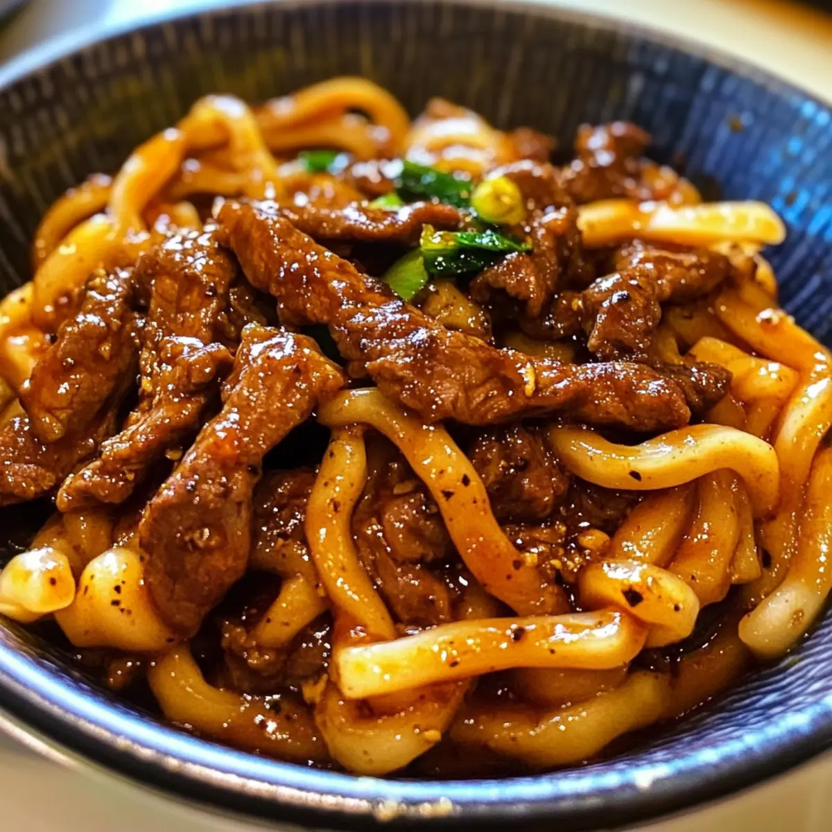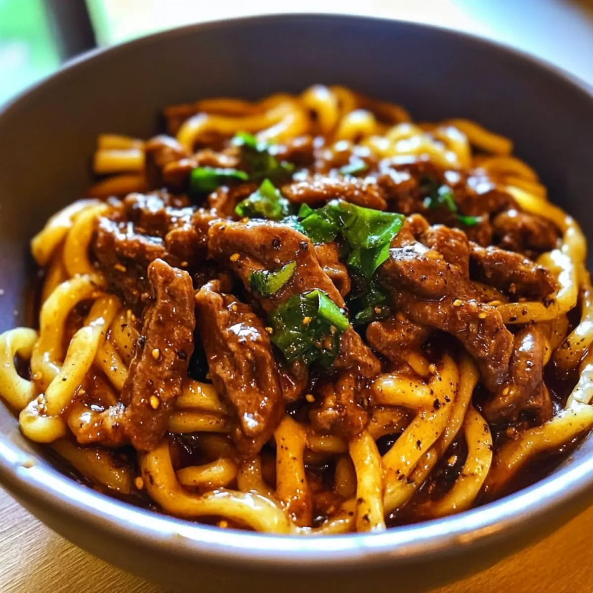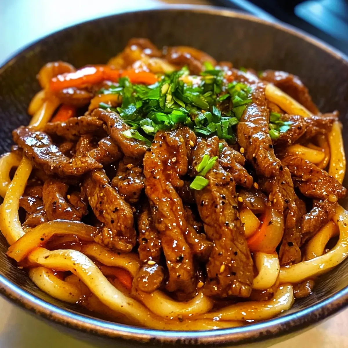 Die Küche kann manchmal wie ein schwebender Traum erscheinen, in dem spannende Aromen und Zutaten zu einem Fest der Sinne verschmelzen. Wenn ich an schnelle, aber beeindruckende Gerichte denke, kommt mir sofort das Rezept für Schwarzer Pfeffer Rindfleisch Udon in den Sinn. Dieses Gericht vereint zarte Rindfleischstreifen mit den unglaublich chewy Udon-Nudeln, alles in einer würzigen, schwarzen Pfeffersauce, die in nur 20 Minuten zubereitet ist. Es ist nicht nur eine tolle Möglichkeit, die Woche mit einem köstlichen Abendessen zu bereichern, sondern auch ein herzlicher Genuss, der all deine Gäste begeistern wird. Ein weiterer Vorteil: Du kannst es spielend anpassen, um es vegetarisch zu gestalten, falls dir der Sinn nach einer pflanzlichen Variante steht. Bist du bereit, das Kochen in ein genussvolles Erlebnis zu verwandeln? Lass uns gleich loslegen! Warum wirst du dieses Rezept lieben? Einfache Zubereitung: Mit nur wenigen Schritten und maximaler Wirkung ist dieses Rezept perfekt für jeden, der unter Zeitdruck steht. Herzhafter Geschmack: Die Kombination aus zartem Rindfleisch, Udon-Nudeln und einer würzigen schwarzen Pfeffersauce sorgt für ein Geschmackserlebnis, das dir das Wasser im Mund zusammenlaufen lässt. Vielseitigkeit: Ob mit Rindfleisch oder als vegetarische Option mit Tofu, hier kannst du kreativ werden! Hast du Lust auf einen herzhaften Geschmack? Probiere doch auch unseren Herzhafter Rindfleisch Nudel Eintopf. Schnelle Zubereitungszeit: In nur 20 Minuten auf dem Tisch – das macht es ideal für stressige Wochentage! Perfekt für Gäste: Dieses Gericht beeindruckt sowohl Freunde als auch Familie und eignet sich hervorragend für entspannte Abendessen. Schwarzer Pfeffer Rindfleisch Udon Zutaten Für die Udon-Nudeln: • Udon-Nudeln – Hauptbestandteil des Gerichts, die wunderbar chewy sind. Substitution: Reisnudeln, Soba oder Spaghetti können ebenfalls verwendet werden. Für das Gemüse: • Chinakohl – Fügt Geschmack und Nährstoffe hinzu. Substitution: Jedes Blattgemüse wie Pak Choi oder Spinat ist eine gute Alternative. • Knoblauch (gehackt) – Sorgt für aromatischen Geschmack. Frisch ist am besten, aber du kannst auch abgepackten verwenden, wenn es schnell gehen muss. • Zwiebel (in Scheiben) – Verleiht Süße und Tiefe. Substitution: Schalotten bieten einen milderen Geschmack. Für die Marinade: • Rindfleisch (dünn geschnitten) – Hauptquelle für Geschmack und Protein. Empfehlung: Ribeye, Roastbeef oder Flank Steak sorgen für Zartheit. • Knoblauch (gehackt) – Verstärkt den Geschmack. • Sesamöl – Baut einen nussigen Geschmack auf. • Sojasauce – Die Geschmacksgrundlage, die Umami hinzufügt. • Austernsauce – Macht das Gericht noch würziger. • Speisestärke oder Kartoffelstärke – Für die Textur der Marinade. • Weißer Reisessig – Fügt Säure hinzu und balanciert die Aromen. Für die schwarze Pfeffersauce: • Dunkle Sojasauce – Sorgt für Farbe und Tiefe. • Austernsauce – Für zusätzlichen Umami-Geschmack. • Frisch gemahlener schwarzer Pfeffer – Das Schlüsselelement des Geschmacks. • Wasser – Um die Konsistenz der Sauce zu regulieren. • Kartoffelstärke – Für eine dickere Sauce. Genieße das Kochen und entdecke das genussvolle Erlebnis, das diese Schwarzer Pfeffer Rindfleisch Udon-Kreation dir bietet! Schritt-für-Schritt-Anleitung für Schwarzer Pfeffer Rindfleisch Udon Schritt 1: Rindfleisch marinieren Mische in einer Schüssel den gehackten Knoblauch, Sesamöl, Sojasauce, Austernsauce, weißen Reisessig und die Speisestärke gut zusammen. Füge die dünn geschnittenen Rindfleischstücke hinzu und stelle sicher, dass sie vollständig mariniert sind. Lass das Ganze für 10 Minuten stehen, damit das Fleisch die Aromen aufnehmen kann und eine zarte Grundlage für deinen Schwarzer Pfeffer Rindfleisch Udon bildet. Schritt 2: Udon-Nudeln kochen Bringe in einem großen Topf ausreichend Wasser zum Kochen. Gib die Udon-Nudeln hinein und koche sie für 1-2 Minuten, bis sie leicht weich sind. Achte darauf, dass sie nicht zu lange kochen, da sie sonst matschig werden. Gieße die Nudeln danach in ein Sieb ab und lasse sie kurz abtropfen, bevor du sie beiseite stellst. Schritt 3: Gemüse anbraten Erhitze in einem Wok oder einer großen Pfanne etwas Pflanzenöl bei mittlerer Hitze. Füge den gehackten Knoblauch und die Zwiebel hinzu und brate sie an, bis sie duftend und leicht goldbraun sind, etwa 2 Minuten. Gib den Chinakohl dazu und brate ihn an, bis er verwelkt und zart ist. Würze das Gemüse leicht mit Salz und Zucker und stelle es anschließend beiseite. Schritt 4: Rindfleisch braten Verwende denselben Wok, um das marinierte Rindfleisch bei starker Hitze anzubraten. Brate es für etwa 2-3 Minuten, bis es gleichmäßig braun ist. Achte darauf, das Fleisch nicht zu lange zu garen, damit es zart bleibt. Entferne das gebratene Rindfleisch und lege es auf einen Teller, um es später wieder hinzuzufügen. Schritt 5: Sauce zubereiten In einer kleinen Schüssel vermische die Reste aus dem Wok mit dunkler Sojasauce, Austernsauce, frisch gemahlenem schwarzem Pfeffer und etwas Wasser. Gib einen Löffel Kartoffelstärke hinzu und rühre alles gut um, um eine gleichmäßige Konsistenz zu gewährleisten. Gieße die Mischung zurück in den Wok und lasse sie bei niedriger Hitze köcheln, bis die Sauce dickflüssig wird und die Aromen sich verbinden. Schritt 6: Alles kombinieren Füge die gekochten Udon-Nudeln und das angebratene Rindfleisch zur Sauce im Wok hinzu. Verwende eine Zange oder einen großen Löffel, um alles gut zu vermischen, sodass die Nudeln und das Fleisch gleichmäßig mit der Sauce überzogen sind. Mische auch das vorab gebratene Gemüse unter und serviere sofort den Geschmack von deinem Schwarzen Pfeffer Rindfleisch Udon! Variationen für Schwarzer Pfeffer Rindfleisch Udon Entdecke, wie du dieses köstliche Rezept nach deinem Geschmack anpassen kannst! Lass deiner Kreativität freien Lauf und experi