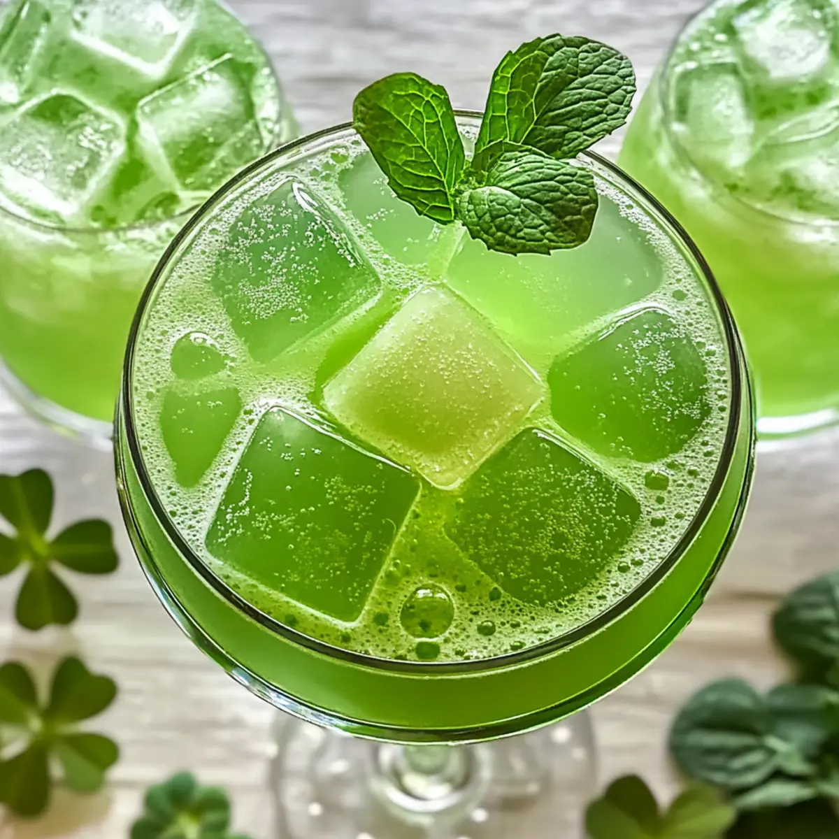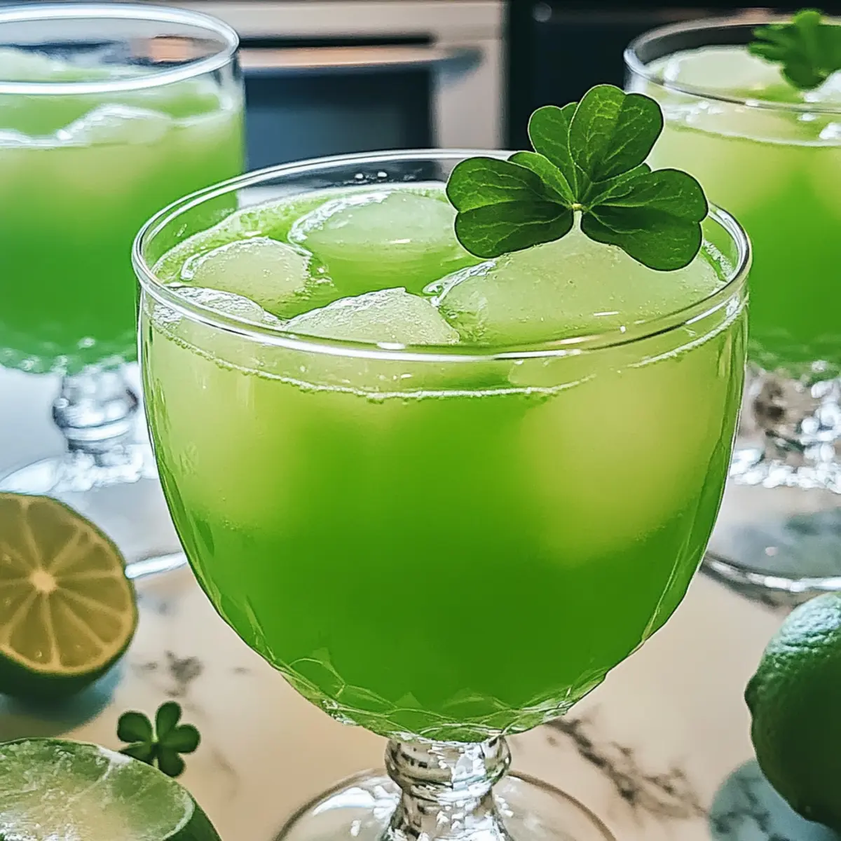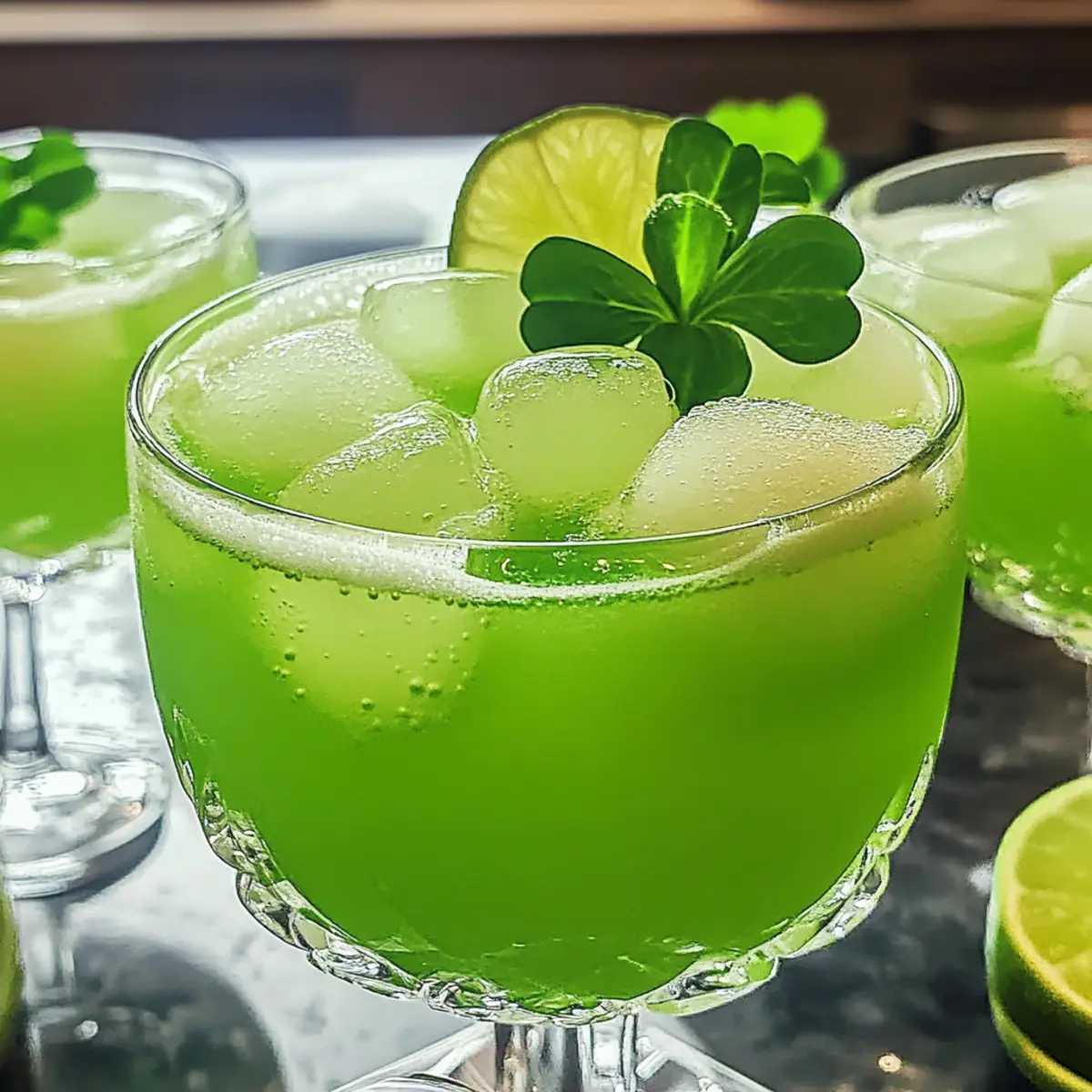 Wenn das fröhliche Treiben des St. Patrick’s Day vor der Tür steht, gibt es nichts Besseres als einen erfrischenden Shamrock Punch Cocktail. Diese festliche Mischung kombiniert cremiges Limetten-Sorbet mit spritziger Zitronenlimonade und optionalem irischem Whiskey, was sie zur perfekten Wahl für jede Feier macht. Was ich an diesem Rezept besonders liebe, ist die kinderleichte Zubereitung, die dir erlaubt, in kürzester Zeit eine beeindruckende Party-Getränk zu zaubern, und die Vielseitigkeit: Ob mit oder ohne Alkohol, jeder kann seinen eigenen Genuss finden. Mach dich bereit, deine Liebsten zu überraschen – möchtest du wissen, wie leicht es ist, diese grüne Köstlichkeit zu mixen? Warum ist dieser Cocktail besonders? Simplicity: Der Shamrock Punch Cocktail lässt sich mit minimalem Aufwand zubereiten und erfordert keine speziellen Fähigkeiten – perfekt für jede Feier! Festliche Aromen: Die Kombination aus frischem Limettengeschmack und cremigem Sorbet sorgt für ein Geschmackserlebnis, das alle begeistern wird. Vielseitig: Egal, ob du eine alkoholhaltige oder alkoholfreie Variante möchtest, diese Rezeptur bietet beiden Optionen viel Raum zur Anpassung – ideal für alle Gäste! Erfrischend und spritzig: Die Kombination aus Zitronenlimonade und Limettensorbet ergibt ein sprudelndes Getränk, das an warmen Tagen einfach wunderbar erfrischt. Optisch ansprechend: Ein Hauch von grün und die Verwendung von thematischen Eiswürfeln verleihen diesem Cocktail einen zusätzlichen festlichen Touch, der deine Gäste bei jeder Feier ins Staunen versetzt! Entdecke auch die Variation Ideen, um deine Kreation noch weiter zu personalisieren. Shamrock Punch Cocktail Zutaten • Ein festliches Getränk für deine St. Patrick’s Day Feier! Für die Basis Limettensorbet – sorgt für eine cremige Basis und strahlende Farbe; du kannst es auch mit Sorbet als nicht-milchhaltige Option ersetzen. Zitronenlimonade – verleiht Spritzigkeit und Süße; empfehlenswert sind Sprite oder 7-Up, jede Zitronenlimonade funktioniert. Für die alkoholische Variante Irischer Whiskey – verleiht einen traditionellen irischen Geschmack; optional je nach Vorliebe. Wodka – kann weggelassen oder durch zusätzliche Limonade ersetzt werden, um den Cocktail leichter zu machen. Für die Süße Einfacher Sirup – süßt den Punch; lasse die Menge nach Geschmack variieren und ziehe Honig oder Agavennektar als Alternativen in Betracht. Frischer Limettensaft – sorgt für einen pikanten Kick; frisch gepresster Limettensaft ist ideal, aber gekauft funktioniert auch. Für die festliche Note Grüne Lebensmittelfarbe – optional für visuelle Attraktivität; zwei Tropfen können einen Unterschied machen. Eiswürfel – nutze große Würfel oder thematische Eisformen, um den Punch kühl zu halten, ohne ihn zu verwässern. Schritt-für-Schritt-Anleitung für den Shamrock Punch Cocktail Step 1: Limettensorbet vorbereiten Scoop 1 Quart Limettensorbet in eine große Punch-Schüssel und lasse es 5–10 Minuten bei Raumtemperatur weicher werden. Das Sorbet sollte so weich sein, dass es sich leicht mit anderen Zutaten vermengen lässt, was den cremigen Charakter des Shamrock Punch Cocktails fördert und die strahlend grüne Farbe entfaltet. Step 2: Mit Zitronenlimonade mischen Gieße langsam 2 Liter Zitronenlimonade in die Schüssel, während du vorsichtig rührst. Achte darauf, dass das Sorbet gut mit der Limonade vermischt wird, bis sich ein fröhlicher, sprudelnder grüner Mix bildet, und du schon die Blasen aufsteigen siehst. Diese Mischung sorgt für die spritzige Basis deines Cocktails. Step 3: Alkohol hinzufügen Lasse nun 2 Tassen irischen Whiskey und 1/2 Tasse Wodka langsam in die Mischung einfließen. Rühre dabei sanft für etwa 1 Minute, um übermäßiges Sprudeln zu vermeiden. Dieser Schritt verleiht dem Shamrock Punch Cocktail den traditionellen irischen Geschmack, ohne die spritzige Textur zu beeinträchtigen. Step 4: Süße harmonisieren Mische 1/4 Tasse einfachen Sirup und 1/4 Tasse frischen Limettensaft in die Punch-Schüssel. Rühre für etwa 30 Sekunden, bis sich die Aromen gleichmäßig verteilt haben. Diese Zugabe sorgt für ein ausgewogenes Geschmacksprofil, das die Süße und Säure wunderbar kombiniert und den Punch noch erfrischender macht. Step 5: Festliche Farbe hinzufügen (Optional) Füge 1-2 Tropfen grüne Lebensmittelfarbe hinzu, um den Cocktail noch ansprechender zu machen. Rühre sanft, bis die Farbe gleichmäßig verteilt ist und die grüne Optik deines Shamrock Punch Cocktails intensiviert wird. So wird das Getränk besonders festlich und auffällig. Step 6: Servieren und genießen Gib große Eiswürfel oder thematische Eisformen in die Punch-Schüssel, um die Mischung kühl zu halten. Serviere den Shamrock Punch Cocktail sofort, damit die sprudelnde Frische und der cremige Geschmack voll zur Geltung kommen. Lass die Gäste bei diesem festlichen Getränk jubeln! Tipps für den besten Shamrock Punch Cocktail Frisch servieren: Der Shamrock Punch Cocktail schmeckt am besten, wenn du ihn sofort nach dem Mischen servierst, um die Spritzigkeit zu bewahren. Alkohol langsam hinzufügen: Gieße den Whiskey und Wodka langsam ein, während du rührst, um ein Überlaufen zu verhindern und die Blasen zu kontrollieren. Vor dem Süßen probieren: Kosten die Mischung, bevor du die Süße anpasst, um die Balance zu wahren; frischer Limettensaft kann helfen, das Aroma zu verbessern. Temperatur beachten: Lass das Limettensorbet kurz bei Raumtemperatur stehen, damit es leichter zu mischen ist und die cremige Textur gefördert wird. Kreative Eisformen: Verwende thematische Eiswürfelformen, um zusätzlichen Spaß und eine festliche Note hinzuzufügen, ohne das Getränk zu verwässern. Was passt zum Shamrock Punch Cocktail? Ob für eine fröhliche St. Patrick’s Day Feier oder einfach für einen sommerlichen Nachmittag, dieser Cocktail lässt sich wunderbar ergänzen! Mini-Burger: Diese zarten, saftigen Bisse
