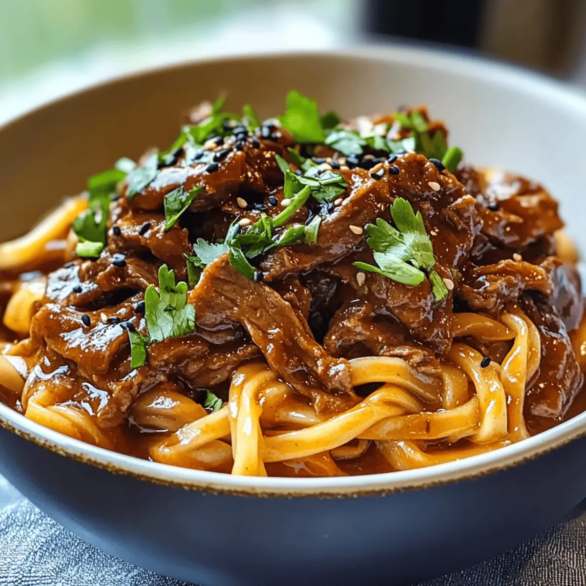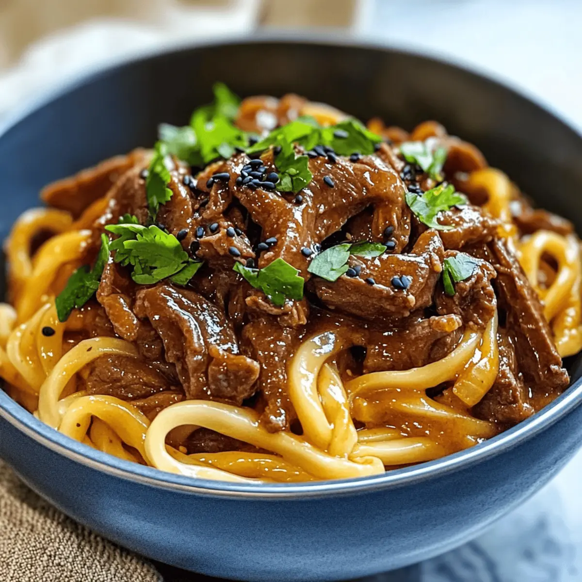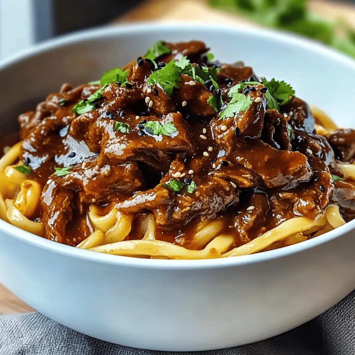 Wenn ich den Duft von langsam kochendem Fleisch in der Küche rieche, fühle ich mich sofort geborgen und glücklich. Heute teile ich mit euch mein Rezept für Slow Cooker Korean Beef Noodles, ein Gericht, das sowohl köstlich als auch einfach zuzubereiten ist. Die zarten Rindfleischstücke verschmelzen mit den chewy Udon-Nudeln und einer pikant-süßen Sauce zu einem Geschmackserlebnis, das alle begeistert – perfekt für stressige Wochentage! Und das Beste daran? Ihr könnt die Zutaten ganz nach eurem Lust und Laune anpassen! Egal, ob ihr ein herzhaftes Familienessen plant oder einfach nur eine köstliche Mahlzeit für euch selbst zaubern wollt, diese koreanische Fusion ist wie eine warme Umarmung auf dem Teller. Was sagt ihr, wollt ihr euch in die Welt der Aromen entführen lassen? Warum ist dieser Slow Cooker ein Muss? Einfachheit: Dieses Rezept benötigt keine kulinarischen Meisterleistungen – ihr könnt es mit minimalem Aufwand zubereiten. Köstlicher Geschmack: Die Kombination aus zartem Rindfleisch und würzigen Udon-Nudeln sorgt für ein Geschmackserlebnis, das eure Gäste beeindrucken wird. Vielseitigkeit: Ihr könnt die Zutaten nach Belieben anpassen, sei es mit verschiedenen Fleischsorten oder Nudeln; lasst eurer Kreativität freien Lauf! Zeitersparnis: Durch das langsame Kochen entfaltet sich der Geschmack, während ihr anderen Dingen nachgehen könnt – perfekt für geschäftige Wochentage. Und wenn ihr auf der Suche nach weiteren asiatischen Gerichten seid, probiert unbedingt auch unser Rezept für Koreanischer Chili Blumenkohl! Slow Cooker Korean Beef Noodles Zutaten • Diese köstliche Mischung aus Aromen wird eure Geschmacksknospen verwöhnen! Für die Sauce Diced Onion – sorgt für Süße und Tiefe; verwendet am besten gelbe oder weiße Zwiebeln. Gochujang – verleiht Hitze und Umami; passt die Menge je nach gewünschtem Schärfegrad an. Dark Soy Sauce – trägt zur tiefen Farbe und herzhaften Note bei; normale Sojasauce kann für einen leicht anderen Geschmack verwendet werden. Rice Vinegar – bietet Säure, um die Süße auszubalancieren; kann durch Apfelessig ersetzt werden. Packed Brown Sugar – süßt das Gericht und balanciert die Gewürze; weißer Zucker ist eine mögliche Alternative. Garlic-Ginger Paste – vermittelt traditionelle Aromen; frischer Knoblauch und Ingwer können ebenfalls verwendet werden. Tomato Paste – fügt Tiefe und Reichhaltigkeit hinzu; es gibt keinen direkten Ersatz, aber in der Not können zerdrückte Tomaten verwendet werden. Beef Stock – sorgt für Flüssigkeit und Geschmacksbasis; verwendet Gemüsebrühe für eine leichtere Variante. Für das Rindfleisch Ox Cheek (oder gewählter Fleischschnitt) – Hauptproteinquelle, die für ihren reichen Geschmack bekannt ist; Alternativen sind Chuck Roast oder Short Ribs für ähnliche Zartheit. Für die Nudeln und Garnitur Udon Noodles – Basis des Gerichts mit einer chewy Textur; Soba, Reisnudeln oder Ramen sind geeignete Alternativen. Chopped Coriander – sorgt für Frische und kann als Garnitur verwendet werden; optional je nach Vorliebe. Black Sesame Seeds – gibt einen nussigen Abschluss; kann durch geröstete Sesamsamen ersetzt werden. Sliced Green Onions – dient als Garnitur und verbessert das Aussehen sowie den Geschmack. Lasst euch von dieser köstlichen Kombination inspirieren und zaubert ein authentisches koreanisches Gericht in eurer eigenen Küche! Schritt-für-Schritt-Anleitung für Slow Cooker Korean Beef Noodles Step 1: Sauce vorbereiten Zuerst die gewürfelte Zwiebel, Gochujang, dunkle Sojasauce, Reisessig, braunen Zucker, Knoblauch-Ingwer-Paste, Tomatenmark und Rinderbrühe in den Slow Cooker geben. Gut umrühren, bis alle Zutaten miteinander vermischt sind. Diese aromatische Grundlage ist entscheidend für den Geschmack der Slow Cooker Korean Beef Noodles. Step 2: Rindfleisch hinzufügen Das Ox-Wangfleisch (oder den gewählten Fleischschnitt) auf die Sauce legen. Damit das Fleisch bestens in den köstlichen Aromen marinieren kann, sicherstellen, dass es rundum mit der Sauce bedeckt ist. Dies ist der erste Schritt, um das Fleisch zart und geschmackvoll zu machen. Step 3: Langsam garen Den Slow Cooker abdecken und auf niedriger Stufe für etwa 8 Stunden garen. Das langsame Kochen sorgt dafür, dass das Fleisch die Aromen aufnimmt und wunderbar zart wird. Nach einige Zeit sollte es anfangen, köstlich zu duften, was ein gutes Zeichen für den Fortschritt ist. Step 4: Rindfleisch zerteilen Nach dem Garen das Fleisch vorsichtig aus dem Slow Cooker nehmen und mit zwei Gabeln zerteilen. Das zarte Rindfleisch sollte leicht auseinanderfallen. Dann das zerrissene Fleisch zurück in den Slow Cooker geben, zusammen mit den Udon-Nudeln und dem frischen Koriander. Step 5: Nudeln kochen Die Hitze des Slow Cookers auf hoch erhöhen und die Udon-Nudeln hinzugeben. 25 Minuten kochen lassen, bis die Nudeln heiß und aromatisch sind. Während dieser Zeit die gesamte Mischung gut umrühren, um sicherzustellen, dass die Nudeln gleichmäßig mit der Sauce überzogen werden. Step 6: Würzen und garnieren Bevor ihr die Slow Cooker Korean Beef Noodles serviert, den Geschmack mit Salz und Pfeffer anpassen. Schließlich das Gericht mit gerösteten schwarzen Sesamsamen garnieren, um einen nussigen Abschluss zu bieten. Jetzt sind die Noodles bereit zum Genießen! Was passt gut zu Slow Cooker Korean Beef Noodles? Egal ob für ein Familienessen oder einen gemütlichen Abend mit Freunden, die perfekten Beilagen machen euer Gericht zu einem unvergesslichen Erlebnis. Cucumber Kimchi: Frisch und würzig, bringt es einen knackigen Kontrast zu den zarten Nudeln und dem tiefen Geschmack des Rindfleischs. Steamed Bok Choy: Diese zarte, leicht süßliche Beilage sorgt für eine wohltuende Frische und harmoniert wunderbar mit der würzigen Sauce. Asian Slaw: Knackiger, gesunder Salat aus Kohl und Karotten in einer leichten Dusche von Sesam-Dressing – erfrischt und balanciert das Gericht perfekt. 