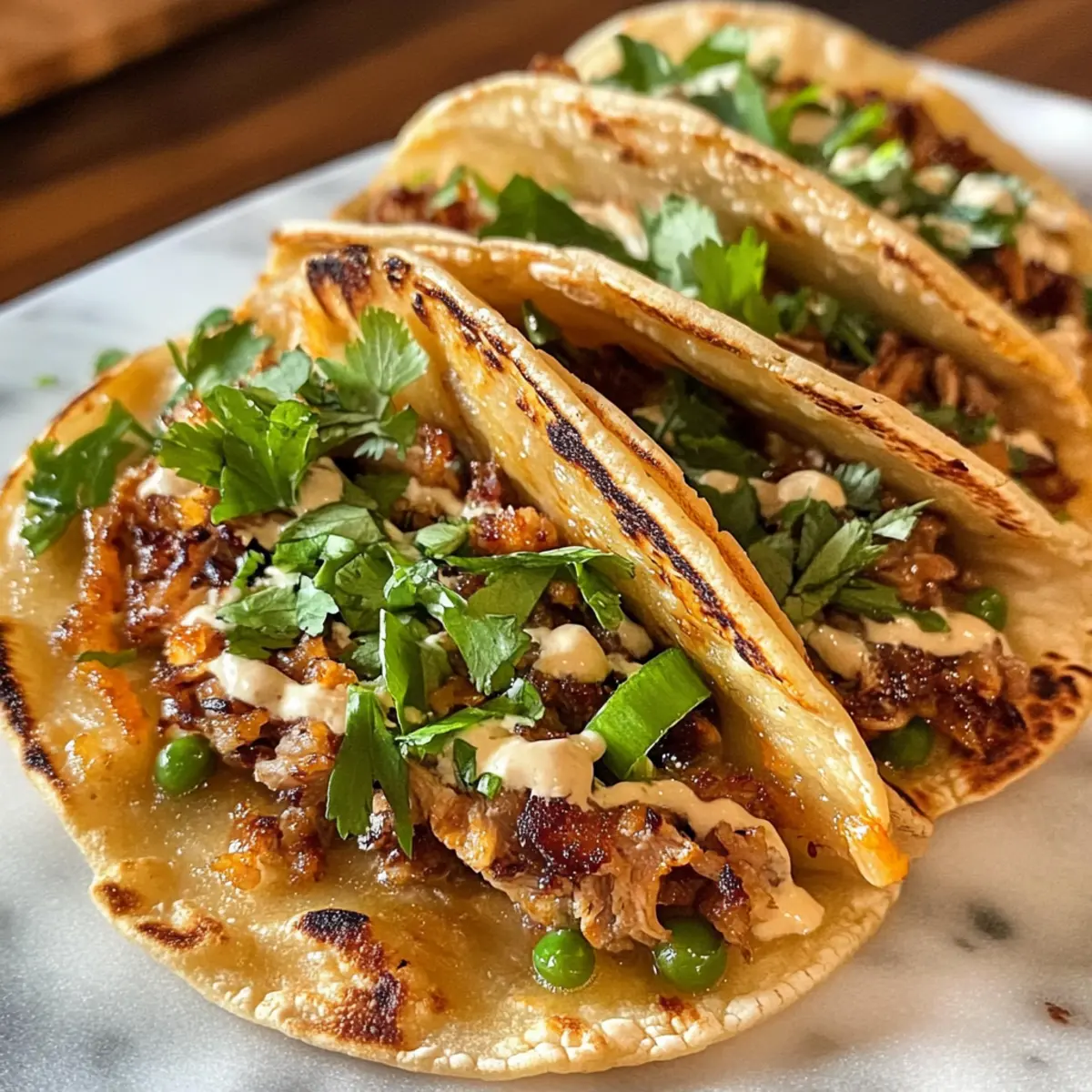 • Zusätzlicher Crunch: Bestreue die Tacos vor dem Servieren mit gerösteten Erdnüssen oder knusprigen Zwiebeln für einen extra Knusperspaß. Diese Texturvielfalt ist ein Genuss!