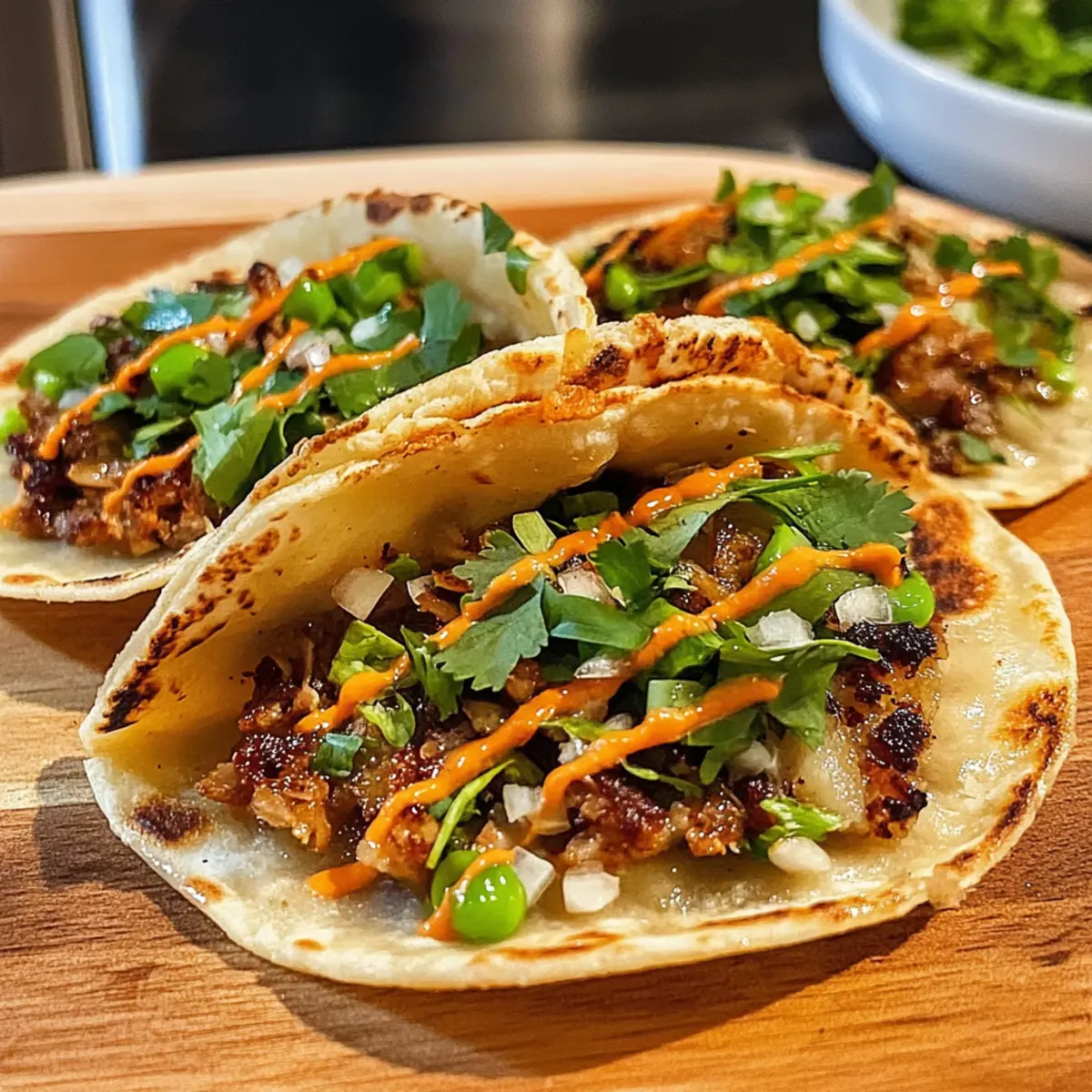 • Frische Kräuter: Ergänze die Füllung mit Sträußchen frischem Basilikum oder Vietnam-Koriander für einen unerwarteten Frischekick, der die Tacos auf das nächste Level hebt.