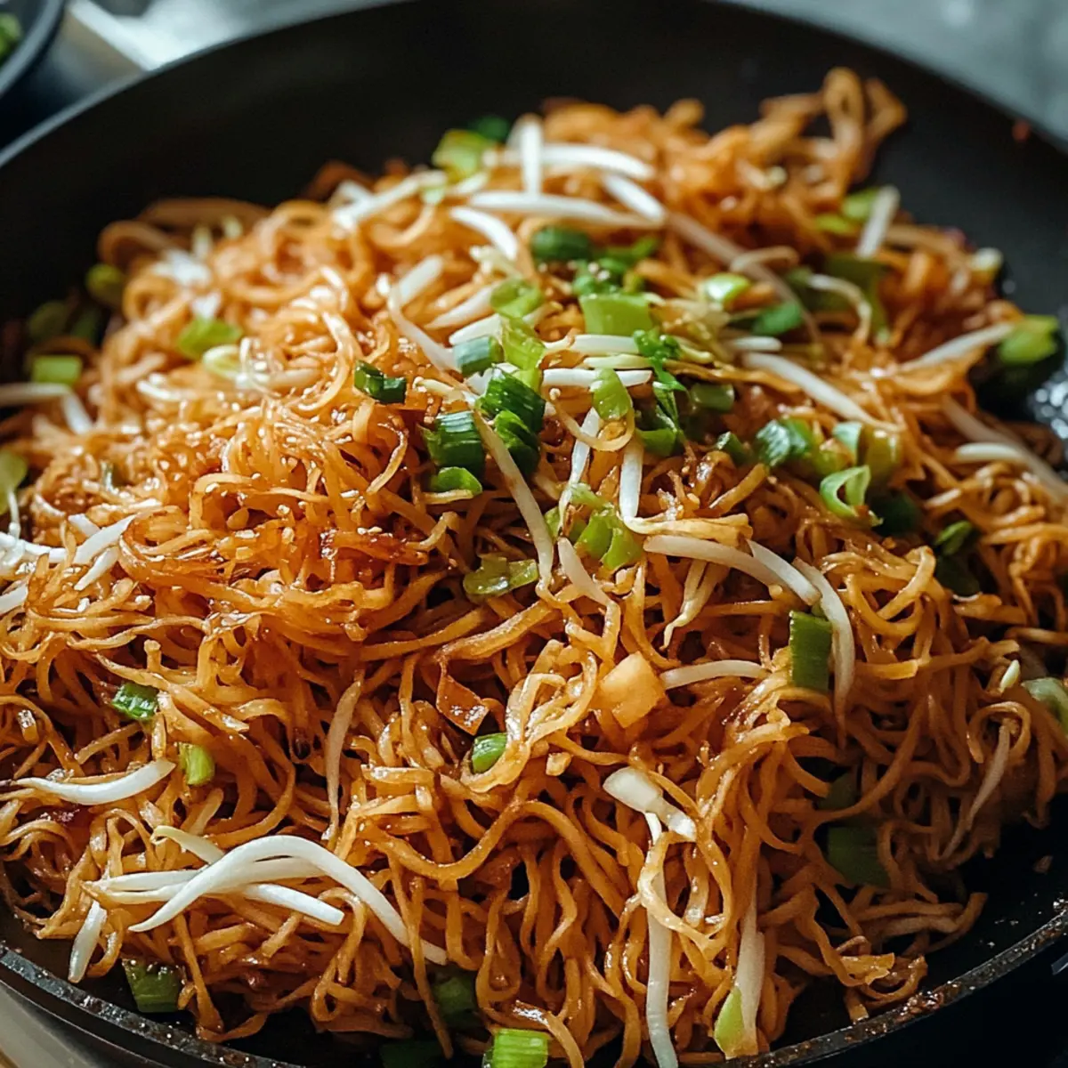 Heizt eine große Pfanne oder einen Wok auf mittelhohe Hitze und gebt 2 Esslöffel Öl hinzu. Wenn das Öl heiß ist, die vorbereiteten Nudeln gleichmäßig in der Pfanne verteilen und für 2-3 Minuten braten. Die Nudeln sollten goldbraun und leicht knusprig sein, was für den unverwechselbaren Charakter der Sojasoßen-Pfannengerührte Nudeln sorgt.