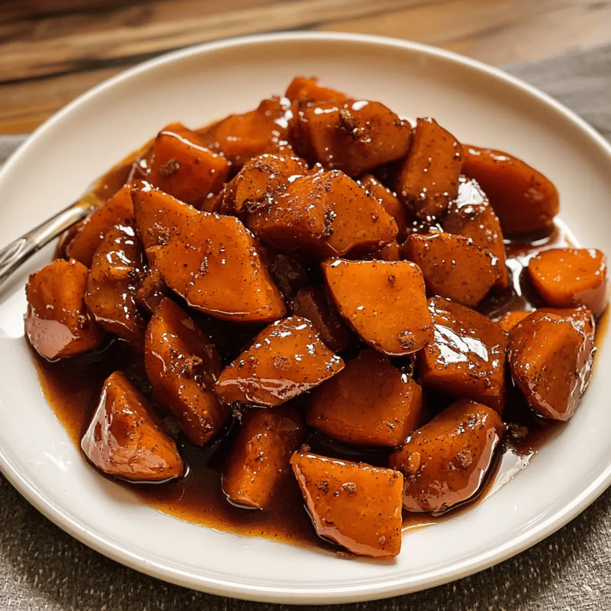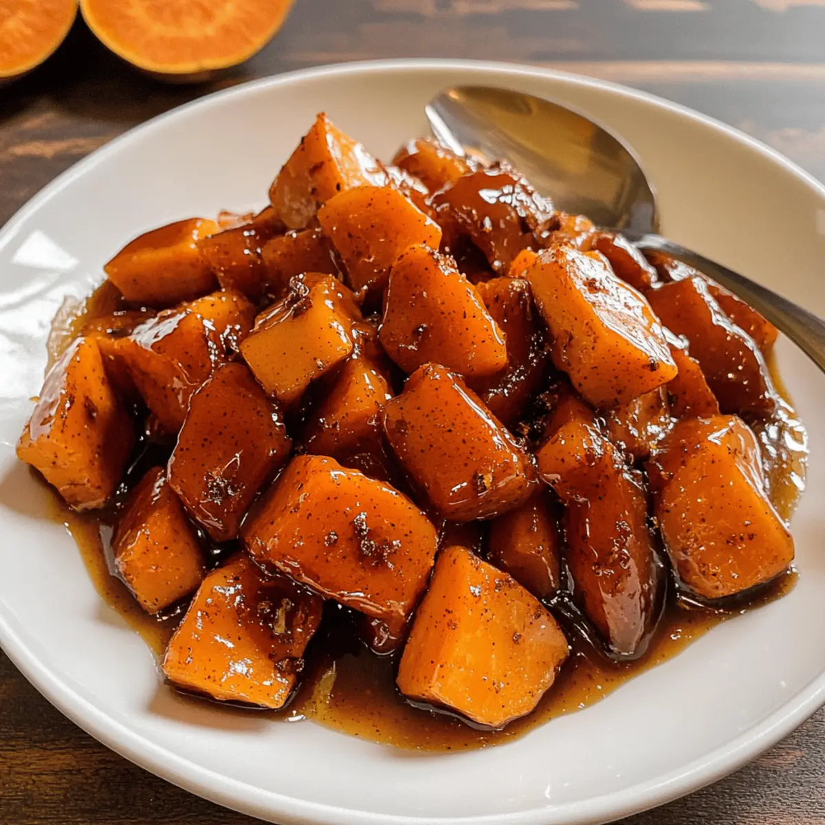 Als die ersten warmen Herbsttage anbrechen, nutze ich oft die Gelegenheit, um in der Küche ein Stück Südstaaten-Atmosphäre zu zaubern. Heute dreht sich alles um die köstlichen Southern Candied Yams – ein Rezept, das nicht nur für seine einfache Zubereitung bekannt ist, sondern auch als vegane Option daherkommt, die selbst eingefleischte Skeptiker überzeugen kann. Diese zarten Süßkartoffeln, eingelegt in einen reichhaltigen, sirupartigen Mix aus braunem Zucker und aromatischen Gewürzen, sind eine wahre Freude für den Gaumen. Sie sind nicht nur einfach vorzubereiten, sondern lassen sich auch hervorragend im Voraus zubereiten, sodass sie bei Feierlichkeiten oder gemütlichen Familienabenden immer gut ankommen. Neugierig, wie man dieses Gericht mit nur wenigen Zutaten zu einem unvergesslichen Erlebnis macht? Lasst uns gleich loslegen! Warum lieben alle dieses Rezept? Einfachheit: Die Zubereitung ist unkompliziert und benötigt nur grundlegende Kochfertigkeiten. In nur wenigen Schritten zaubern Sie ein köstliches Gericht. Vielseitigkeit: Diese Süßkartoffeln passen perfekt zu zahlreichen Gerichten – ob traditionell zu gebratenem Hühnchen oder modern zu veganen Beilagen, sie sind immer eine Bereicherung. Reichhaltiger Geschmack: Die Kombination aus braunem Zucker, Gewürzen und einem Hauch von Orange schafft ein verführerisches Geschmackserlebnis, das sich wunderbar ins Gedächtnis einprägt. Ideal zum Vorbereiten: Sie können diese Candied Yams bis zu drei Tage im Voraus zubereiten und somit Ihre Zeit bei Feierlichkeiten oder Abendessen sparen. Crowd-Pleaser: Egal, ob bei Familie oder Freunden, dieses Rezept wird garantiert Begeisterung hervorrufen und sagt jedem „das möchte ich auch probieren!“ Entdecken Sie auch unsere Ideen für eine vegane Variante oder andere köstliche Beilagen, um das perfekte Menü zu planen! Der Ausgang: Süßkartoffeln Zutaten • Hinweis: Hier sind die Zutaten für die köstlichen Southern Candied Yams, die einfach zuzubereiten sind und auch als vegane Option dienen. Für die Süßkartoffeln Echte Süßkartoffeln – Sie bilden die Basis des Gerichts und sorgen für natürliche Süße und eine angenehme Textur. Schälen und in ½-Zoll große Stücke schneiden für gleichmäßiges Garen. Brauner Zucker – Fügt einen reichhaltigen und karamellartigen Geschmack hinzu. Kann durch rohen Honig oder Agavendicksaft für ein anderes Geschmacksprofil ersetzt werden. Reiner Ahornsirup – Verstärkt die Süße und fügt Tiefe hinzu. Substituieren Sie mehr braunen Zucker oder rohen Honig, wenn gewünscht. Gemahlener Zimt – Bringt Wärme und Gewürz dazu. Wesentlich für den traditionellen Geschmack; unbedingt verwenden für aromatische Noten. Gemahlene Muskatnuss – Verleiht eine leicht süße und nussige Note. Kann durch Piment ersetzt werden, falls Muskatnuss nicht verfügbar ist. Gemahlener Piment – Ergänzt Zimt und Muskatnuss und sorgt für eine warme Würze. Kann weggelassen werden, wenn nicht verfügbar, aber verbessert den Geschmack. Meersalz – Balance zur Süße. Verwenden Sie koscheres oder normales Salz, wenn kein Meersalz zur Hand ist. Vanilleextrakt – Fügt eine süße, aromatische Schicht hinzu. Kann weggelassen werden, trägt jedoch erheblich zur Geschmacksvielfalt bei. Ungesalzene Butter – Schafft eine reichhaltige, cremige Textur. Vegane Butter kann als Alternativlösung verwendet werden. Frisch gepresster Orangensaft – Aufhellt das Gericht und verbessert die Geschmacksvielfalt. Kann durch Zitronensaft ersetzt oder weggelassen werden für einen einfacheren Geschmack. Genießen Sie diese Süßkartoffeln aus dem Süden, die nicht nur herrlich schmecken, sondern auch einfach zuzubereiten sind und ein wahres Fest der Aromen bieten! Schritt-für-Schritt-Anleitung für Southern Candied Yams Step 1: Süßkartoffeln vorbereiten In einem mittelgroßen Topf bei mittlerer bis hoher Hitze die geschälten und in ½-Zoll große Stücke geschnittenen Süßkartoffeln mit braunem Zucker, Ahornsirup, Vanilleextrakt, Butter, frisch gepresstem Orangensaft, Meersalz und den Gewürzen vermengen. Rühren Sie gut um, bis alle Stücke gleichmäßig mit der Mischung überzogen sind. Step 2: Simmer machen Bringen Sie die Mischung zum Kochen, decken Sie den Topf ab und reduzieren Sie die Hitze auf niedrig. Lassen Sie die Süßkartoffeln 40-45 Minuten lang köcheln. Rühren Sie gelegentlich um, bis die Süßkartoffeln zart sind und ein Messer leicht in sie eindringt. Achten Sie darauf, nicht zu lange zu köcheln, damit die Stücke nicht zerfallen. Step 3: Karamellisieren Entfernen Sie den Deckel und erhöhen Sie die Hitze auf mittlere Stufe. Lass die Mischung wieder zum Kochen kommen und rühren Sie gelegentlich für 5-10 Minuten, bis die Flüssigkeit reduziert und die Süßkartoffeln eine goldene, karamellisierte Farbe annehmen. Die Konsistenz sollte dick und sirupartig sein, was den perfekten Abschluss für Ihre Southern Candied Yams bedeutet. Step 4: Servieren Nehmen Sie den Topf vom Herd und lassen Sie die Süßkartoffeln einen Moment ruhen. Servieren Sie die Southern Candied Yams warm als aromatische Beilage zu Ihren Lieblingsgerichten. Die glänzende, sirupartige Beschichtung und die zarte Textur der Süßkartoffeln werden Ihre Gäste begeistern und sind ein Fest für den Gaumen. Southern Candied Yams im Voraus zubereiten Mit diesen Southern Candied Yams können Sie wertvolle Zeit sparen, indem Sie sie bis zu drei Tage im Voraus vorbereiten! Beginnen Sie, indem Sie die Süßkartoffeln schälen und in ½-Zoll große Stücke schneiden – eine Zubereitung, die sich wunderbar für die Lagerung eignet. Mischen Sie diese Stücke mit braunem Zucker, Ahornsirup, Vanilleextrakt, Butter, frisch gepresstem Orangensaft, Meersalz und den Gewürzen in einem luftdichten Behälter und stellen Sie ihn im Kühlschrank kühl. Am Tag des Servierens bringen Sie die Mischung in einen Topf, köcheln sie wie im Rezept beschrieben und karamellisieren sie, um denselben