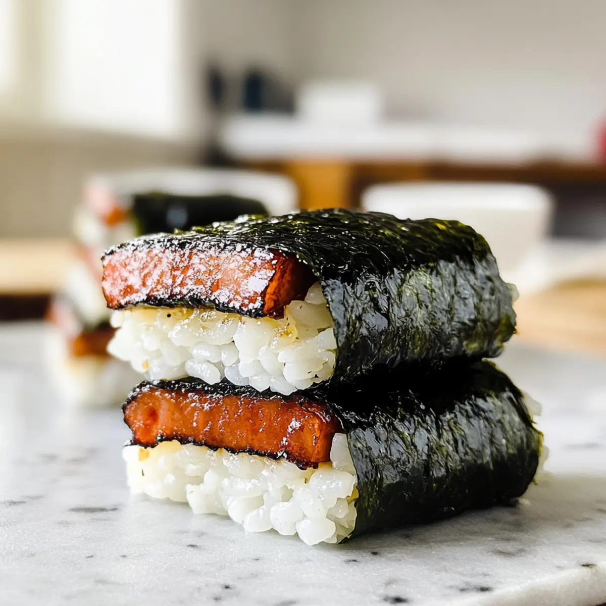 Hawaii auf dem Teller – das ist das Gefühl, das mich überkommt, wenn ich einen Biss in dieses Liebe-nswürdige Spam Musubi nehme. Dieses schnittige Häppchen vereint süße und salzige Aromen, perfekt für jeden, der sich nach einem schnellen, aber geschmackvollen Snack sehnt. Die Kombination aus teriyaki-glasiertem Spam, fluffigem Reis und knackiger Nori ist nicht nur ein Genuss, sondern auch einfach zuzubereiten. Egal, ob du ein erfahrener Koch oder gerade erst dabei bist, deine Vorliebe für heimisches Kochen zu entdecken, in diesem Rezept für Best-Ever Spam Musubi findest du die perfekte Anleitung. Der Clou? Du kannst dieses köstliche Gericht auch in der Woche für eine gesunde Mahlzeit zaubern oder es einfach für die kommenden Tage vorbereiten! Neugierig, wie ein paar einfache Zutaten ein so befriedigendes Gericht ergeben können? Lass uns gemeinsam in die Zubereitung eintauchen! Warum wirst du Spam Musubi lieben? Einfachheit in der Zubereitung: Mit nur wenigen Zutaten ist dieses Rezept ein Kinderspiel, selbst für Kochanfänger. Vielseitigkeit: Du kannst mit verschiedenen Füllungen wie Avocado oder eingelegtem Gemüse experimentieren, um deinem Musubi eine persönliche Note zu verleihen. Unvergleichlicher Geschmack: Die Kombination aus süßem Teriyaki-Glasur und salzigen Spam-Streifen sorgt für einen Geschmack, der süchtig macht. Perfekte Snackgröße: Diese handlichen Häppchen sind ideal zum Mitnehmen und ideal für ein schnelles Mittagessen oder einen Snack unterwegs. Geschmackserlebnis wie in Hawaii: Mit diesem Rezept genießt du das Flair der hawaiianischen Küche direkt bei dir zu Hause. Probiere auch unseren erfrischenden Gurken Blaubeer Salat dazu, um eine rundum köstliche Mahlzeit zu kreieren! Spam Musubi Zutaten • Der Schlüssel zu deinem eigenen köstlichen Spam Musubi. Für den Reis Calrose Reis – bietet die perfekte Basis für dein Musubi; gut abspülen, um überschüssige Stärke zu entfernen und eine fluffige Textur zu erzielen. Für den glasierten Spam Spam – der Star des Gerichts, bietet einen reichen, salzigen Geschmack; du kannst ihn durch natriumreduzierten Spam ersetzen. Dunkler Brauner Zucker – süßt die Teriyaki-Sauce und sorgt für ein ausgewogenes Geschmackserlebnis; light brown sugar funktioniert auch gut als Ersatz. Soja Sauce – verleiht der Glasur Tiefgang und herzhaften Geschmack; Tamari ist eine glutenfreie Option. Mirin – ein süßer Reiswein, der den Geschmack der Sauce verstärkt; ein Zuckermischung mit Wasser ist ein guter Ersatz, wenn du keinen Mirin hast. Sesamöl – fügt ein nussiges Aroma hinzu; kannst du gegen Pflanzenöl austauschen, wenn du einen leichteren Geschmack bevorzugst. Für die Umhüllung Sushi Nori – umwickelt das Musubi und sorgt für einen umami Geschmack; achte darauf, dass es frisch und trocken ist. Furikake – eine japanische Gewürzmischung, die Textur und Geschmack hinzufügt; ersetze sie durch Sesamkörner, falls nicht verfügbar. Mit diesen Zutaten bist du bereit, dein eigenes Spam Musubi zu zaubern – genießen war noch nie so einfach! Step-by-Step Instructions for Best-Ever Spam Musubi Step 1: Reis kochen Spüle 1 Tasse Calrose Reis gründlich, bis das Wasser klar ist, um überschüssige Stärke zu entfernen. Koche den Reis in einem Reiskocher gemäß den Anweisungen auf der Verpackung, normalerweise etwa 20 Minuten. Nach dem Kochen lasse den Reis für 10 Minuten im Reiskocher dämpfen, damit er schön fluffig wird. Step 2: Teriyaki-Sauce vorbereiten Vermische in einer Schüssel ¼ Tasse dunklen braunen Zucker, 3 Esslöffel Sojasauce, 1 Esslöffel Mirin und 1 Teelöffel Sesamöl. Schlage die Zutaten gut zusammen, bis der Zucker vollständig aufgelöst ist. Erwärme die Mischung für 30 Sekunden in der Mikrowelle, um den Zucker weiter aufzulösen, und stelle die Sauce dann beiseite. Step 3: Spam braten Erhitze eine beschichtete Pfanne bei mittlerer Hitze und gib etwas Öl hinzu. Schneide eine Dose Spam in Scheiben und brate sie 3–4 Minuten pro Seite, bis sie goldbraun und knusprig sind. Füge die vorbereitete Teriyaki-Sauce hinzu und koche weiter für weitere 2 Minuten, bis der Spam gut glasiert und die Sauce dickflüssig ist. Step 4: Musubi zusammenstellen Lege ein Blatt Sushi Nori auf eine große Fläche, wobei die raue Seite nach oben zeigt. Platziere einen Musubi-Mold in der Mitte des Nori-Bandes und fülle ihn mit einer Schicht gekochtem Reis. Drücke den Reis leicht an und streue 1 Esslöffel Furikake darüber, bevor du eine Schicht glasierter Spam-Scheiben hinzufügst. Step 5: Wickeln und formen Entferne den Musubi-Mold vorsichtig und falte das Nori über den Spam. Benutze deine Hände, um das Musubi fest zu rollen, achte darauf, dass die Enden sauber gefaltet sind. Befeuchte das Ende des Nori mit etwas Wasser, um es zu versiegeln, damit es während des Essens nicht auseinanderfällt. Step 6: Schneiden und servieren Verwende ein scharfes, nasses Messer, um das Spam Musubi in der Mitte zu schneiden. Serviere die Musubi-Hälften warm und genieße sie für einen schnellen Snack oder ein herzhaftes Mittagessen. Diese köstlichen Spam Musubi sind perfekt für unterwegs oder als Teil einer liebevollen Maiauswahl! Was passt gut zu Best-Ever Spam Musubi? Die Zubereitung eines köstlichen Spam Musubi ist der erste Schritt zu einem herrlich harmonischen Essen, das den Gaumen verwöhnt. Süß-saurer Gurkensalat: Ein frischer Salat aus knackigen Gurken und etwas Essig bringt eine erfrischende Note ins Spiel und harmoniert perfekt mit dem herzhaften Geschmack des Musubi. Miso-Suppe: Diese herzhafte Brühe mit Tofu und Algen ergänzt die Süße des Spam Musubi und sorgt für ein warmes, befriedigendes Gefühl. Gegrilltes Gemüse: Bunte Zucchini, Paprika und Auberginen, leicht gewürzt und gegrillt, bieten eine rauchige Note, die den salzigen Aromen im Musubi wunderbar entgegenwirkt. Tropischer Fruchtsalat: Erfrischende Stücke von Ananas, Mango und Papaya bringen einen süßen Sommergeist auf de