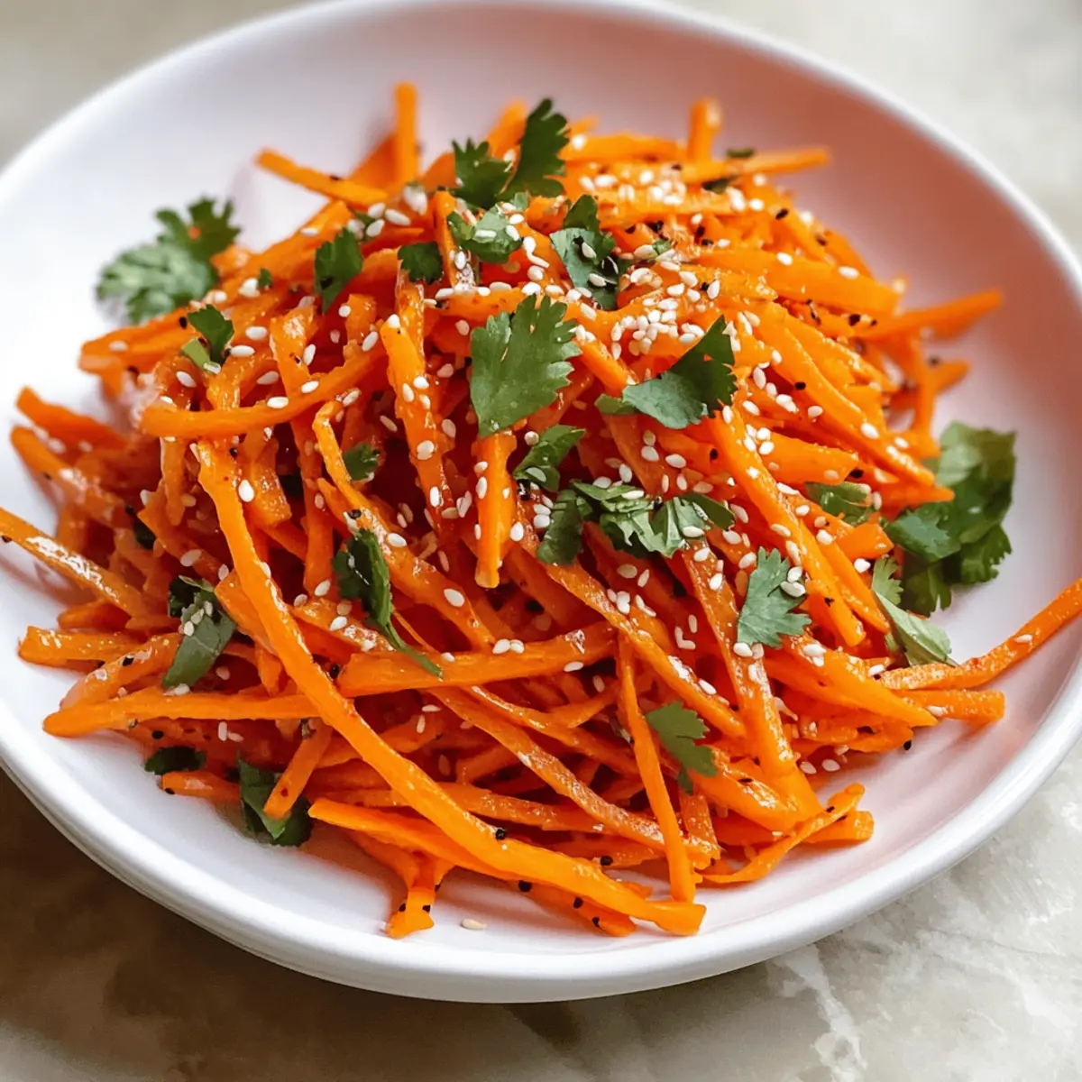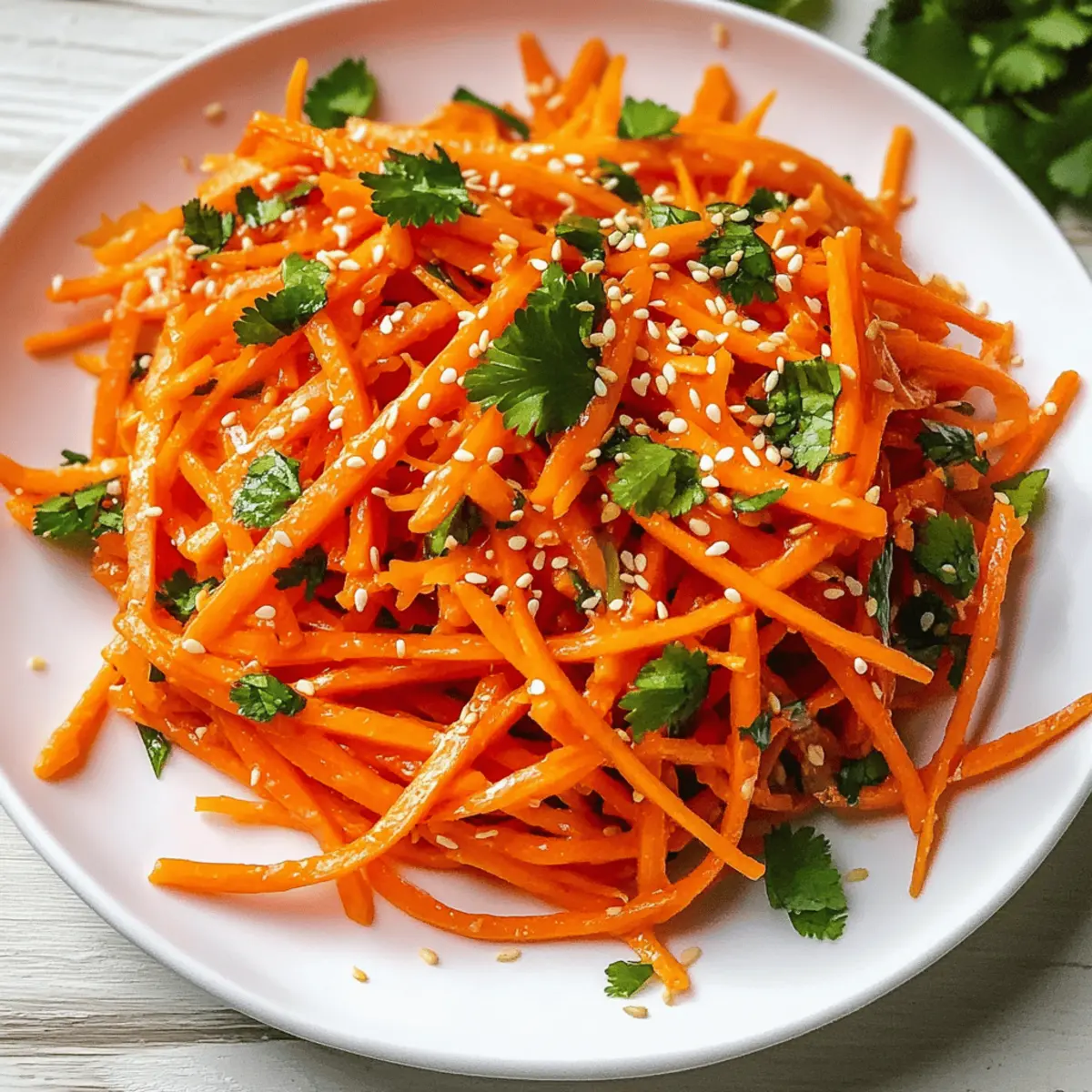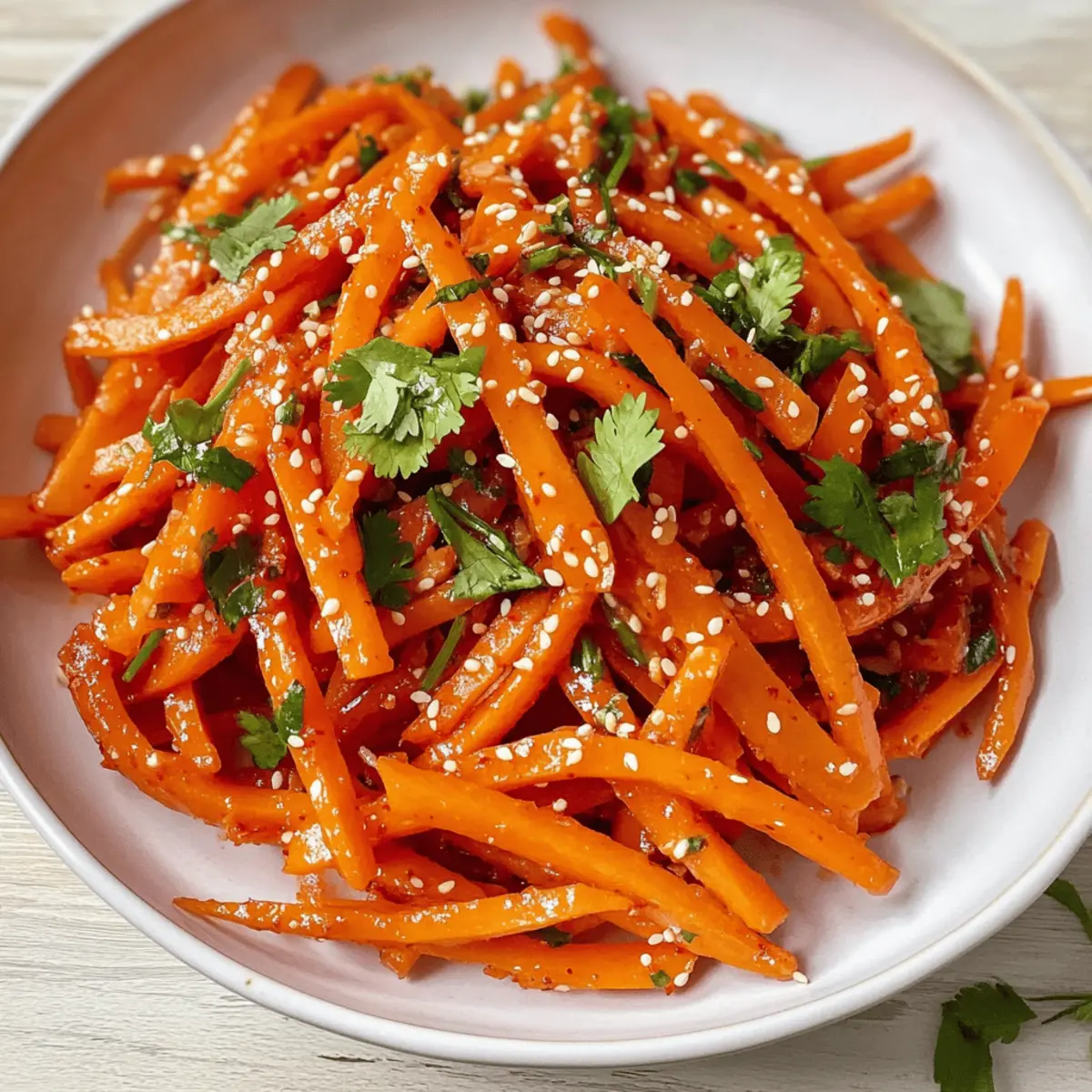 Als ich das erste Mal einen Bissen meines selbstgemachten Spicy Korean Carrots Salad (Morkovcha) nahm, war ich sofort begeistert von der knackigen Textur und dem aufregenden Spiel aus scharfen und süßen Aromen. Dieses schnelle, vegane Rezept ist nicht nur kinderleicht zuzubereiten, sondern es ist auch der perfekte Hingucker für jedes Potluck oder Picknick. Mit frischen Karotten und einer Vielfalt an würzigen Zutaten kreierst du eine erfrischende Beilage, die absolut jeder lieben wird. Die Kombination aus würziger Hitze und sanfter Süße macht diese Karottensalat zu einem wahren Genuss für vegetarische und vegane Feinschmecker. Bereit, deinem nächsten leckersten Begleiter einen neuen Lieblingsgeschmack zu verleihen? Lass uns die geheimen Zubereitungsschritte entdecken! Warum ist dieser Salat einzigartig? Vibrante Aromen: Der Spicy Korean Carrots Salad vereint eine aufregende Mischung aus scharfen und süßen Geschmäckern, die niemanden enttäuschen wird. Einfache Zubereitung: Mit nur wenigen Schritten und frischen Zutaten hast du im Handumdrehen einen gesunden Snack oder eine Beilage gezaubert. Vegan und Vielseitig: Dieses Rezept ist nicht nur vegan, sondern erlaubt auch Anpassungen, wie das Hinzufügen von Kräutern oder anderem Gemüse. Perfekt für jeden Anlass: Ob bei einem Potluck oder einem Familienessen, dieser Salat wird garantiert zum Gesprächsthema. Und wenn du mehr kreative Beilagen suchst, schau dir doch auch die Kirschen Schokoladen Brownies oder unsere Karamellisierte Rosenkohl Mit an! Zutaten für Spicy Korean Carrots Salad • Diese aufregenden Zutaten machen deinen Salat zu einem Hit! Für den Salat Karotten – Die Hauptzutat, die für den gewünschten Crunch und die Süße sorgt. Bio-Rohrzucker – Fügt Süße hinzu, um die Schärfe des Salats auszugleichen. Salz – Verstärkt den Gesamtgeschmack. Schwarzer Pfeffer – Bietet zusätzliche Wärme und Würze. Avocado-Öl – Ideal zum Sautieren des Knoblauchs und liefert gesunde Fette. Knoblauch – Gibt ein robustes Aroma und Geschmack, hervorragend in jedem bissen. Gemahlener Koriander – Fügt ein warmes, zitrisches Geschmacksprofil hinzu. Reisessig – Sorgt für die nötige Säure, um die Süße auszugleichen. Rohe Sesam-Samen – Bringen nussigen Geschmack und Crunch in den Salat. Koriander – Für frischen Geschmack und als Garnitur, wenn gewünscht. Für die Marinade Spritzer zusätzlicher Reisessig – Optional, um die Säure noch mehr zu betonen. Ein Hauch von zusätzlichem Salz – Für diejenigen, die es etwas salziger mögen. Mit diesen Zutaten zauberst du einen köstlichen Spicy Korean Carrots Salad, der nicht nur deine Gäste begeistert, sondern auch den Gaumen erfreut! Schritt-für-Schritt-Anleitung für Spicy Korean Carrots Salad Step 1: Karotten vorbereiten Die Karotten schälen und in feine Stifte schneiden, sodass sie gleichmäßig und knackig sind. Die geschnittenen Karotten in eine große Schüssel geben, um die Aromen gut aufnehmen zu können. Achte darauf, dass alle Stücke ungefähr die gleiche Größe haben, um ein gleichmäßiges Marinieren zu gewährleisten. Step 2: Sesam-Samen rösten In einer beschichteten Pfanne bei mittlerer Hitze die Sesam-Samen für 1-2 Minuten rösten, bis sie leicht goldbraun sind und aromatisch duften. Gelegentlich umrühren, damit sie nicht anbrennen. Nachdem sie fertig sind, die Pfanne vom Herd nehmen und die Samen beiseite stellen. Step 3: Knoblauch sautieren In derselben Pfanne das Avocado-Öl erhitzen, bis es leicht zu schimmern beginnt. Den fein gehackten Knoblauch hinzufügen und etwa 10 Sekunden unter Rühren sautieren, bis er duftet, aber nicht braun wird. Sofort die Pfanne vom Herd nehmen, um Bitterkeit zu vermeiden. Step 4: Zutaten kombinieren Das heiße Öl mit dem Knoblauch über die Karotten in der Schüssel gießen. Anschließend Koriander, den restlichen Knoblauch, Rohrzucker, gemahlenen Koriander, die gerösteten Sesam-Samen, Reisessig, Salz und schwarzen Pfeffer hinzufügen. Diese Mischung sorgt für die aufregenden Aromen des Spicy Korean Carrots Salad. Step 5: Salat vermengen Mit Salatbesteck gründlich alle Zutaten vermengen, sodass die Karotten gleichmäßig mit den Aromen geschichtet sind. Dabei darauf achten, die Karotten nicht zu zerdrücken, sondern sanft zu wenden, um eine schöne Balance zwischen Knackigkeit und Geschmack zu bewahren. Step 6: Marinieren Den Salat abdecken und mindestens 2 Stunden im Kühlschrank mariniert lassen, besser jedoch über Nacht. Dies gibt den Aromen die Möglichkeit, tief in die Karotten einzuziehen, was den Geschmack des Spicy Korean Carrots Salad intensiviert und verstärkt. Was passt gut zu Spicy Korean Carrots Salad? Der Spicy Korean Carrots Salad ist nicht nur ein Geschmackserlebnis für sich, sondern auch eine wunderbare Ergänzung zu vielen anderen Gerichten. **Reis: ** Basmatireis oder Jasminreis: Diese neutralen Beilagen fangen die würzigen Aromen des Salats wunderbar auf und sorgen für ein ausgewogenes Mahl. Gebackene Süßkartoffeln: Die Süße und die cremige Textur der Süßkartoffeln harmonieren perfekt mit der Schärfe des Karottensalats. Frisches Baguette: Ein knuspriges Baguette ist ideal, um die Aromen aufzusaugen und als leichte Beilage einen schönen Kontrast zu schaffen. Tofu-Scheiben: Gegrillter oder gebratener Tofu ergänzt den Salat mit einer proteinreichen, herzhafteren Komponente und bleibt dabei vegan! Spargel-Pfanne: Knusprig gebratener Spargel bringt frisches Gemüse und eine zarte Textur in dein Gericht, die sich wunderbar mit dem Karottensalat ergänzt. Obstsalat: Ein frischer Obstsalat mit Zitrusfrüchten bringt einen süßen, spritzigen Kontrast zu dem würzigen Karottensalat und sorgt für eine erfrischende Note. Kalte Kokosnuss-Limonade: Diese erfrischende, leichte Limonade rundet das Mahl perfekt ab und bietet einen angenehmen Ausgleich zur Würze der Karotten. Chili-Kekse: Diese knusprigen Snacks fügen eine zusätzliche scharfe Note hinzu, die das Geschmackserl