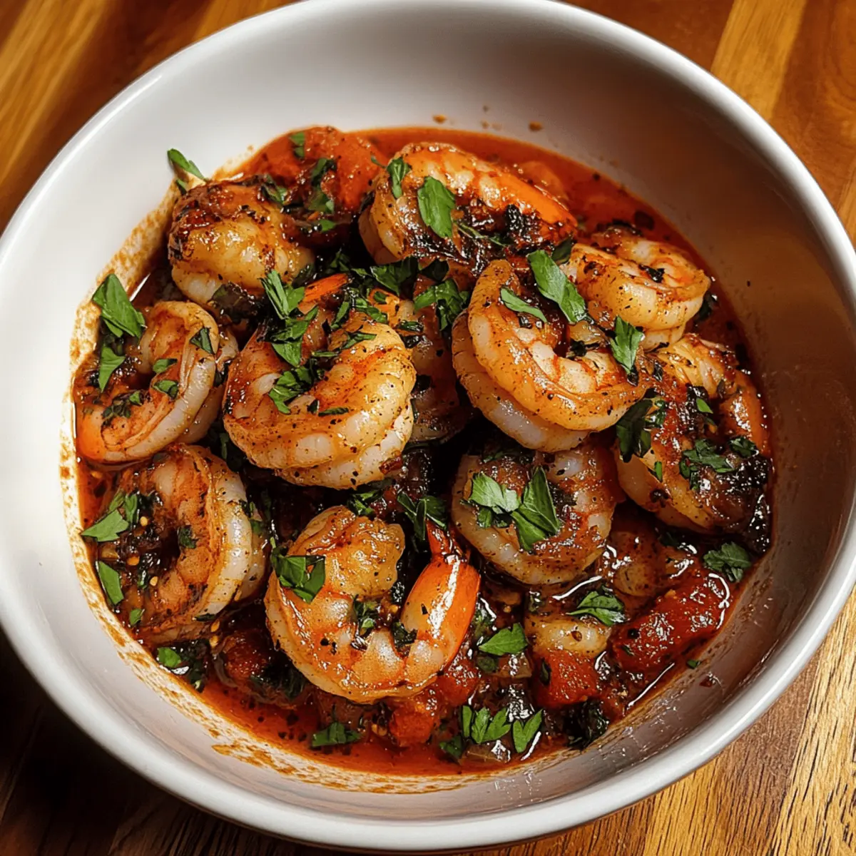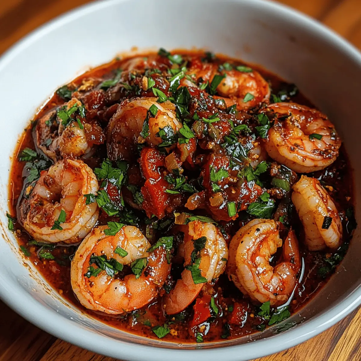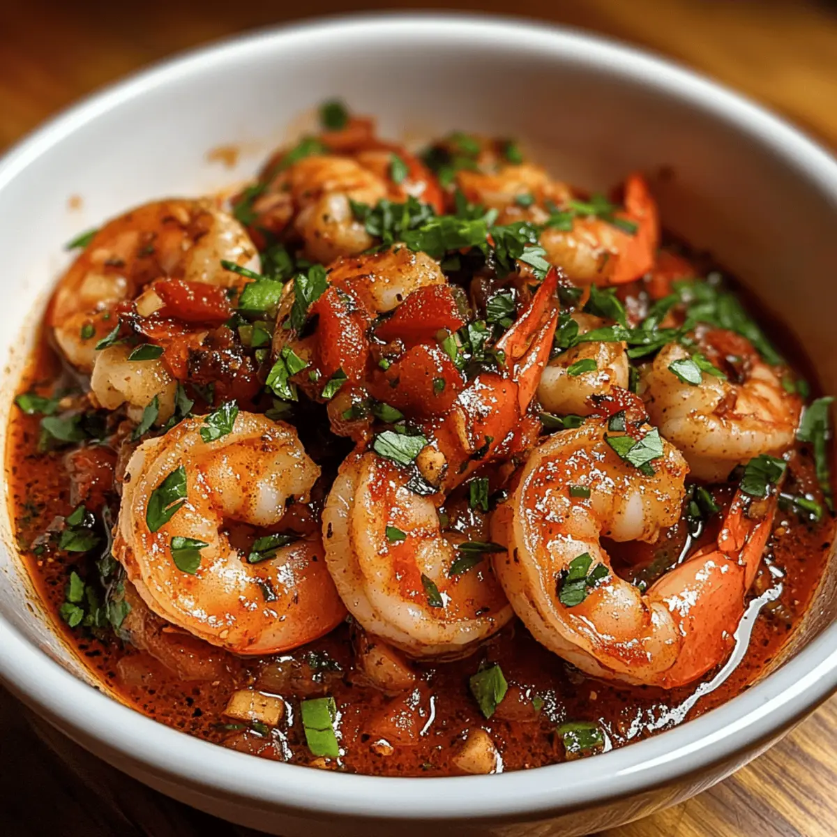 An einem verregneten Abend in meiner Küche, als ich etwas Schnelles und Würziges brauchte, entstand dieses Rezept für Spicy Voodoo Shrimp. Mit einer perfekten Mischung aus Cajun-Gewürzen und einem kleinen Hauch von Schärfe bringt dieses Gericht nicht nur Freude auf den Tisch, sondern lässt auch das Wasser im Mund zusammenlaufen. In nur 30 Minuten zubereitet, ist es die ideale Wahl für ein schnelles Abendessen unter der Woche oder ein schmackhaftes Highlight bei deiner nächsten Feier. Eine tolle Nachricht für alle Gesundheitsbewussten: Diese Mahlzeit ist nicht nur köstlich, sondern auch kohlenhydratarm! Wie wäre es, den Gaumen mit einem aufregenden Hauch von Louisiana zu verwöhnen? Warum werden Sie dieses Rezept lieben? Schnelligkeit: In nur 30 Minuten servieren Sie ein köstliches Gericht, das perfekt für hektische Abende ist. Würzige Aromen: Die Kombination aus Cajun-Gewürzen und frischen Zutaten sorgt für ein wahres Geschmackserlebnis, das das Wasser im Mund zusammenlaufen lässt. Vielseitigkeit: Ob über Reis, mit knusprigem Brot oder sogar als vegetarische Variante mit Kichererbsen, dieses Rezept lässt sich anpassen. Nährstoffreich: Die Verwendung von Garnelen liefert eine hervorragende Proteinquelle und bleibt dabei kohlenhydratarm – ideal für viele Diäten! Einfachheit: Mit grundlegenden Kochfähigkeiten und wenigen Zutaten gelingt dieses Gericht im Handumdrehen, und Sie müssen kein Kochprofi sein. Holen Sie sich die perfekten Begleiter mit diesen tollen Beilagen! Spicy Voodoo Shrimp Zutaten Für die Sauce: Olivenöl – sorgt für reichhaltigen Geschmack und hilft beim Sautieren von Gemüse. Zwiebel – bringt Süße und aromatische Tiefe. Paprika – fügt Farbe und Knackigkeit hinzu. Knoblauch – verstärkt den Geschmack mit seinen aromatischen Eigenschaften. Cajun-Gewürz – der Hauptgeschmacksträger mit würzigen und krautigen Noten. Räucherpaprika – sorgt für ein warmes, rauchiges Geschmackserlebnis. Cayennepfeffer – für zusätzliche Schärfe; nach Geschmack anpassen. Gewürfelte Tomaten (ung drainiert) – bildet eine schmackhafte Basis für die Sauce. Hühnchen- oder Gemüsebrühe – fügt Feuchtigkeit und Tiefe hinzu; Gemüsebrühe für die vegetarische Version. Worcestershire-Sauce – bringt umami Aromen ein. Scharfe Sauce – zusätzliche Schärfe und Würze; nach Belieben anpassen oder weglassen. Für die Garnitur: Garnelen (geschält und entdarmt) – die Hauptproteinquelle; schnell zuzubereiten und nimmt die Aromen auf. Frische Petersilie (zum Garnieren) – bringt Frische und visuelle Attraktivität. Genießen Sie die Zubereitung dieser Spicy Voodoo Shrimp, die nicht nur köstlich, sondern auch facettenreich sind! Schritt-für-Schritt-Anleitung für Spicy Voodoo Shrimp Step 1: Öl erhitzen Erhitze in einer großen Pfanne bei mittlerer Hitze 2 Esslöffel Olivenöl. Füge gehackte Zwiebeln und Paprika hinzu und brate sie 3-4 Minuten lang an, bis sie weich und leicht gebräunt sind. Achte darauf, dass das Gemüse nicht anbrennt und die Aromen gleichmäßig verteilt werden, bevor du mit dem nächsten Schritt fortfährst. Step 2: Knoblauch hinzufügen Gebe nun 2 gehackte Knoblauchzehen in die Pfanne und koche sie für 1 weitere Minute. Rühre gelegentlich um, damit der Knoblauch nicht verbrennt, sondern sein volles Aroma entfalten kann. Dieses Aroma verleiht deiner Sauce für die Spicy Voodoo Shrimp eine unverwechselbare Tiefe. Step 3: Gewürze einrühren Streue 1 Esslöffel Cajun-Gewürz, 1 Teelöffel geräucherte Paprika und ½ Teelöffel Cayennepfeffer in die Pfanne und rühre kräftig um. Lass die Gewürze 2 Minuten lang mit den anderen Zutaten kochen, damit sie ihre Aromen entfalten können. Achte darauf, dass alles gleichmäßig vermischt ist, bevor es zur nächsten Stufe übergeht. Step 4: Tomaten und Brühe hinzufügen Mische 1 Dose (ca. 400 g) gewürfelte Tomaten (ung drainiert), 1 Tasse Brühe (Hühnchen oder Gemüse), 1 Esslöffel Worcestershire-Sauce und nach Belieben scharfe Sauce unter. Lasse alles bei mittlerer Hitze 5 Minuten köcheln, bis die Sauce leicht eindickt und zu duften beginnt. Halte die Pfanne im Auge, um ein Anbrennen zu verhindern. Step 5: Garnelen kochen Füge 500 g geschälte und entdarmte Garnelen in die Pfanne hinzu und rühre vorsichtig um. Lasse die Garnelen 3-5 Minuten lang kochen, bis sie rosa und undurchsichtig sind. Achte darauf, dass du die Hitze nicht zu hoch stellst, damit die Garnelen nicht zäh werden, während sie all die würzigen Aromen aufnehmen. Step 6: Anrichten und servieren Nimm die Pfanne vom Herd und garniere die Spicy Voodoo Shrimp mit frischer, gehackter Petersilie. Serviere das Gericht heiß über Reis oder mit knusprigem Brot, um die köstliche Sauce aufzusaugen. Das Aroma und die Farben werden deine Gäste begeistern und den Abend unvergesslich machen. Tipps für die besten Spicy Voodoo Shrimp Richtige Garnelenwahl: Achte darauf, frische oder gut gefrorene Garnelen zu verwenden, um die beste Textur und Geschmack zu gewährleisten. Gewürze anpassen: Experimentiere mit der Menge des Cajun-Gewürzs und Cayennepfeffers, um die Schärfe deiner Spicy Voodoo Shrimp nach deinem persönlichen Geschmack zu gestalten. Aromen entfalten: Lass die Gewürze früh genug kochen, damit sie ihr volles Aroma entfalten können. Dies verleiht der Sauce eine schönere Tiefe. Kochzeit überwachen: Koch die Garnelen nur bis sie rosa und undurchsichtig sind. Zu langes Kochen kann dazu führen, dass sie gummiartig werden. Beilagen nicht vergessen: Serviere die Spicy Voodoo Shrimp idealerweise mit Reis oder frischem Brot, um die köstliche Sauce perfekt aufzusaugen. Was serviert man zu Spicy Voodoo Shrimp? Lass dich von einer Auswahl köstlicher Beilagen inspirieren, die dein Geschmackserlebnis mit diesem würzigen Gericht perfekt abrunden. Kochender Reis: Er bietet die perfekte Basis, um die reichhaltige Sauce aufzusaugen und den intensiven Geschmack der Garnelen zu ergänzen. Knuspriges Brot: Eine leckere