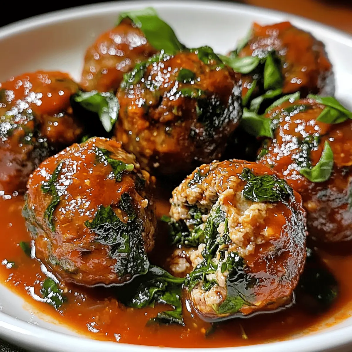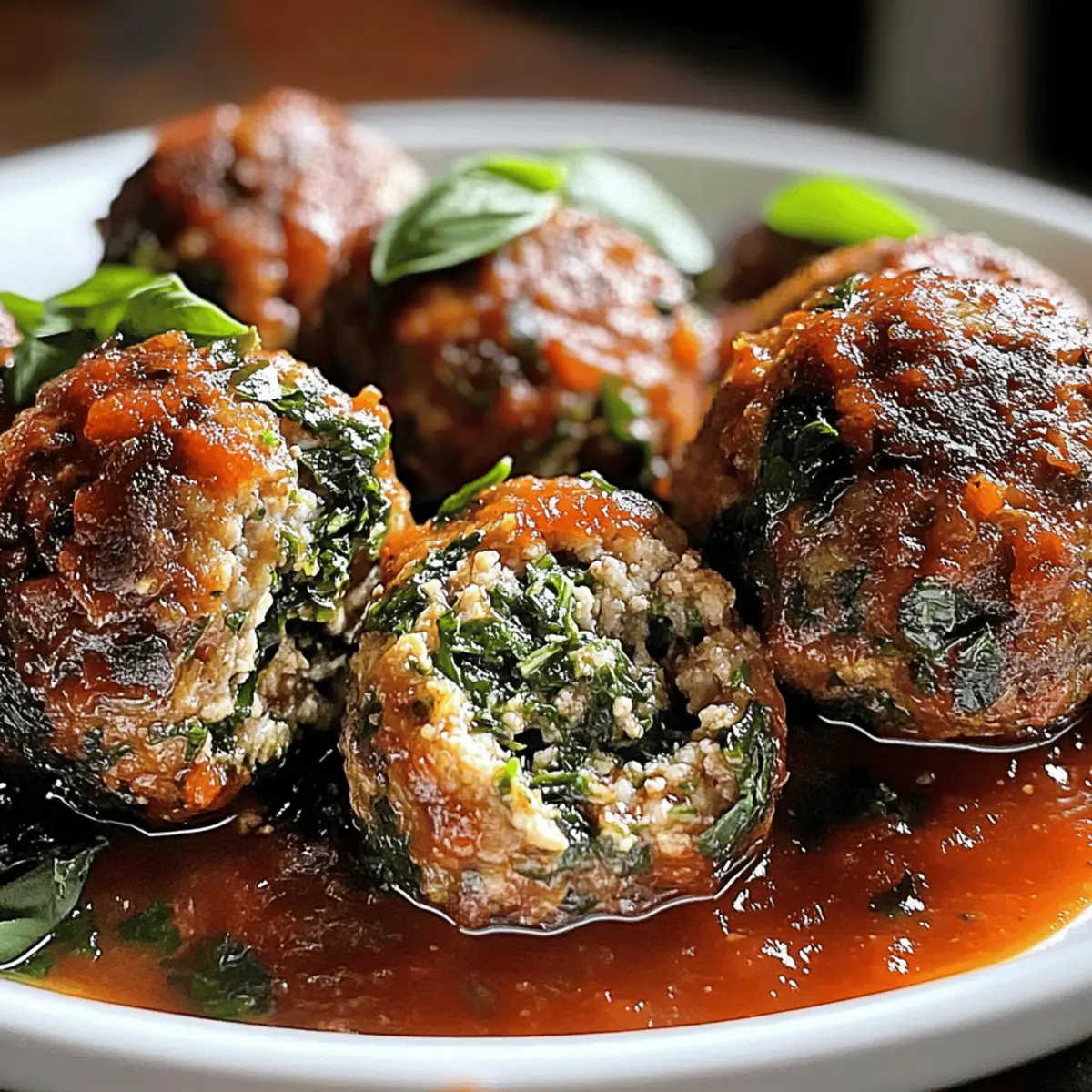 Wusstest du, dass Spinat nicht nur ein tolles Gemüse ist, sondern auch eine köstliche Basis für herzhaftes Essen? Diese Spinach Garlic Meatballs sind eine wunderbare Kombination aus frischem Spinat und aromatischem Knoblauch, die nicht nur Gaumenfreuden bereiten, sondern auch eine ausgezeichnete Proteinquelle bieten. Mit dieser einfachen und schnell zuzubereitenden Rezeptur bringst du nicht nur eine gesunde Mahlzeit auf den Tisch, sondern erfreust auch deine ganze Familie. Ob als schnelles Abendessen oder als nahrhafter Snack – diese Fleischbällchen sind vielseitig und lassen sich perfekt anpassen, sogar in einer vegetarischen Variante mit Linsen oder Kichererbsen. Bist du bereit, deiner Küche eine gesunde Note zu verleihen? Warum sind diese Fleischbällchen so besonders? Vielseitigkeit: Diese Fleischbällchen bieten unzählige Anpassungsmöglichkeiten! Du kannst sie mit gemahlenem Putenfleisch für eine leichtere Option oder mit Linsen und Kichererbsen für eine köstliche vegetarische Variante zubereiten. Nährstoffreich: Sie sind nicht nur lecker, sondern auch vollgepackt mit Nährstoffen, dank des frischen Spinats, der die Ernährung deiner Familie aufpeppt. Einfach zuzubereiten: Die Schritte sind einfach zu befolgen, was sie zu einem idealen Rezept für Einfleischkochen macht. Perfekt für Themenabende oder Familientreffen! Familienfreundlich: Die Kombination aus Aromen und Texturen sorgt dafür, dass diese Fleischbällchen bei Groß und Klein beliebt sind. Jeder wird um eine zweite Portion bitten! Wenn du noch mehr gesunde Rezepte ausprobieren möchtest, schau dir unsere anderen Beiträge an, um deine Mahlzeiten abwechslungsreich zu gestalten! Spinat Knoblauch Fleischbällchen Zutaten Für die Fleischbällchen: Gemahlenes Rind oder Pute – Hauptquelle für Protein; verwende Pute für eine leichtere Option. Frischer Spinat – Fügt Farbe und Nährstoffe hinzu; frischer Spinat sorgt für den besten Geschmack. Knoblauch (gehackt) – Liefert aromatischen Geschmack; mehr Knoblauch verstärkt das Aroma. Vollkornbrösel – Binden die Zutaten und fügen Textur hinzu; glutenfreie Brösel sind eine gute Alternative. Parmesan (gerieben) – Erhöht die Würze; für eine milchfreie Version kann Nährhefe verwendet werden. Ei – Bindet die Fleischbällchen; kann für eine vegane Option durch ein Flachsei ersetzt werden. Getrockneter Oregano & Basilikum – Geschmacksträger mit mediterranem Einfluss; frische Kräuter intensivieren den Geschmack. Rote Pfefferflocken (optional) – Fügen Schärfe hinzu; je nach Geschmack weglassen oder anpassen. Salz und Pfeffer – Essentielle Gewürze nach Geschmack. Olivenöl (zum Braten) – Verhindert das Ankleben und verleiht Geschmack; kann durch Kochspray ersetzt werden. Marinara-Soße – Bildet eine geschmackvolle Grundlage für die Fleischbällchen; sowohl selbstgemachte als auch gekaufte Soße sind möglich. Frisches Basilikum (zum Garnieren) – Fügt Frische und visuelle Anziehung hinzu. Bereite sich auf köstliche Spinat Knoblauch Fleischbällchen vor, die jedem Familienmitglied Freude bereiten! Step-by-Step Instructions for Spinat Knoblauch Fleischbällchen Step 1: Zutaten vermengen In einer großen Schüssel die gemahlenen Fleischsorten, den gehackten Spinat, den gehackten Knoblauch, die Vollkornbrösel, den geriebenen Parmesan und das Ei kombinieren. Alles gut mit einer Gabel durchmischen. Achte darauf, die Mischung nicht zu überarbeiten, da dies die Textur der Spinat Knoblauch Fleischbällchen beeinträchtigen könnte. Würze die Mischung mit getrocknetem Oregano, Basilikum, Salz und Pfeffer nach Geschmack. Step 2: Fleischbällchen formen Die Mischung aus dem ersten Schritt in gleichmäßige Portionen von etwa 2,5 bis 4 cm Durchmesser formen. Platziere die geformten Fleischbällchen auf ein mit Backpapier ausgelegtes Backblech. Achte darauf, genügend Platz zwischen den Bällchen zu lassen, damit sie gleichmäßig garen. Optisch sollten die Fleischbällchen gleichmäßig und rund aussehen. Step 3: Fleischbällchen anbraten Erhitze in einer großen Pfanne bei mittlerer Hitze etwas Olivenöl. Wenn das Öl heiß ist (es sollte leicht glänzen), füge die Fleischbällchen portionsweise hinzu. Brate sie für etwa 5-7 Minuten pro Seite, bis sie goldbraun und durchgegart sind; die Innentemperatur sollte 70 °C für Rind oder 74 °C für Pute erreichen. Step 4: Marinara-Soße hinzufügen Sobald die Fleischbällchen gleichmäßig gebräunt sind, nimm sie aus der Pfanne und lege sie auf einen Teller. In der gleichen Pfanne die Marinara-Soße hinzufügen und zum Köcheln bringen. Lass die Soße für einige Minuten sanft köcheln, um die Aromen zu intensivieren, während du die Pfanne von der Hitze nimmst. Step 5: Fleischbällchen in der Soße garen Die gebratenen Spinat Knoblauch Fleischbällchen zurück in die köchelnde Marinara-Soße legen. Stelle sicher, dass sie vollständig in der Soße eingetaucht sind. Lasse alles zusammen für zusätzliche 10 Minuten auf niedriger Hitze köcheln, damit die Fleischbällchen die Aromen der Soße aufnehmen können und schön saftig bleiben. Tipps für die besten Spinat Knoblauch Fleischbällchen Nicht überarbeiten: Achte darauf, die Mischung vorsichtig zu vermengen, um eine zarte Textur der Fleischbällchen zu gewährleisten. Ein Überarbeiten kann sie zäh machen. Richtige Temperatur: Verwende ein Fleischthermometer, um sicherzustellen, dass die Innentemperatur 70 °C für Rind oder 74 °C für Pute erreicht, damit die Fleischbällchen saftig bleiben. Platz lassen: Überfülle die Pfanne nicht mit Fleischbällchen; genügend Platz sorgt für eine gleichmäßige Bräunung und ein besseres Garergebnis. Frische Kräuter: Experimentiere mit frischen Kräutern anstelle von getrockneten für intensiveren Geschmack. Frische Kräuter bringen die Aromen der Spinat Knoblauch Fleischbällchen wirklich zur Geltung. Variation nutzen: Scheue dich nicht, das Rezept anzupassen, indem du Linsen oder Kichererbsen für