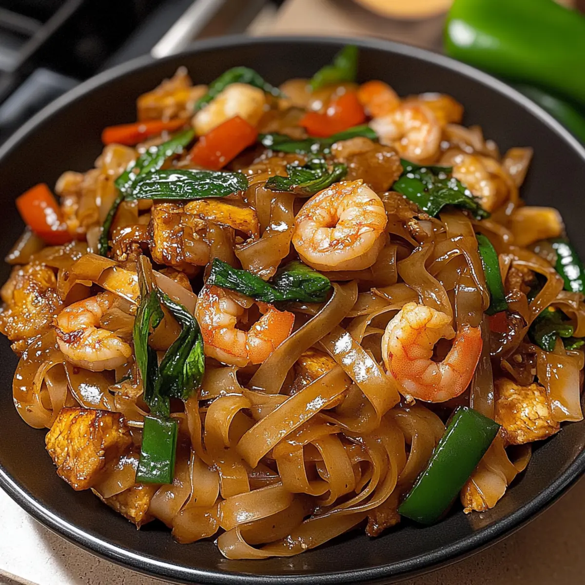 • Breite Reisnudeln – Diese sind der Hauptbestandteil und sorgen für die richtige Struktur; achte darauf, sie al dente zu kochen.