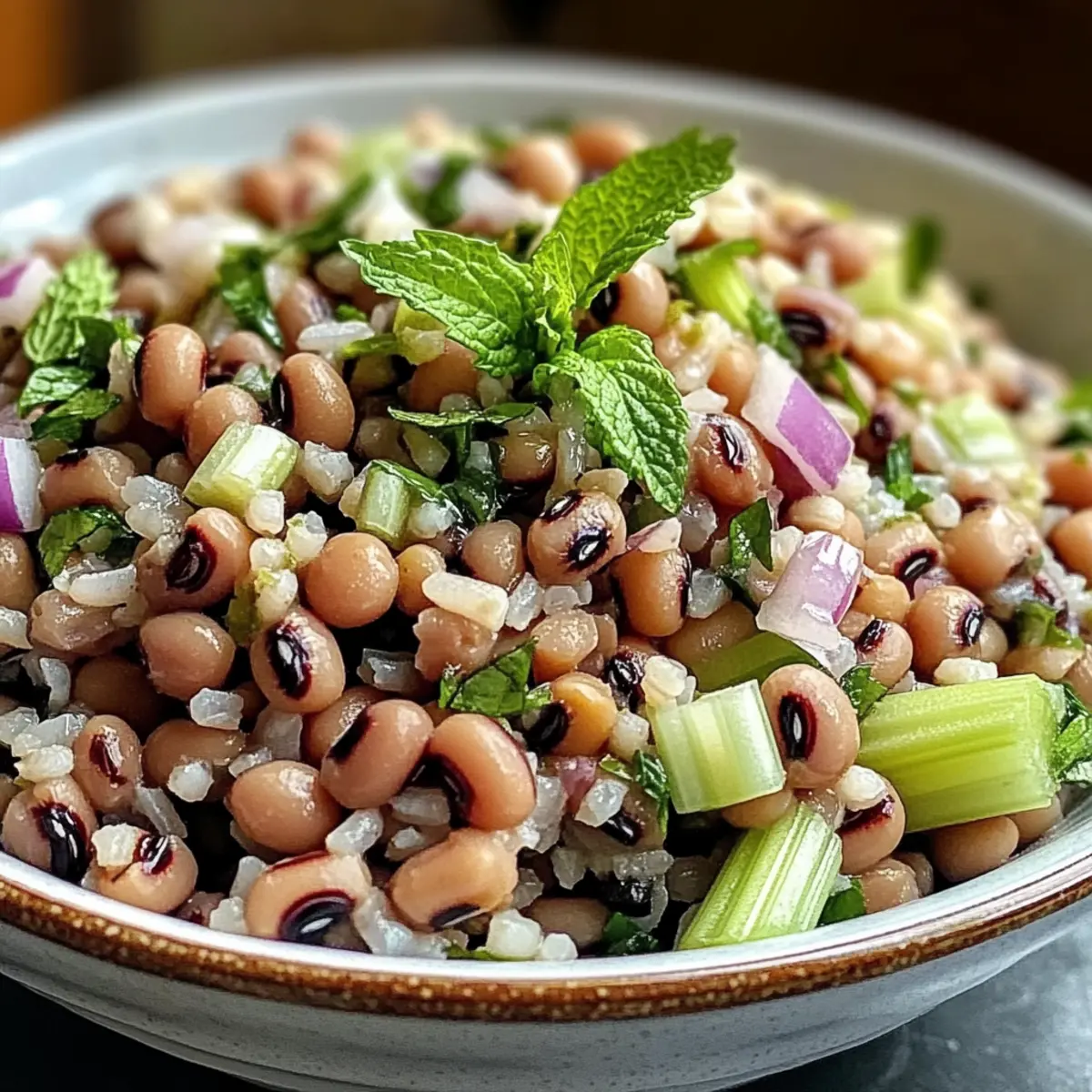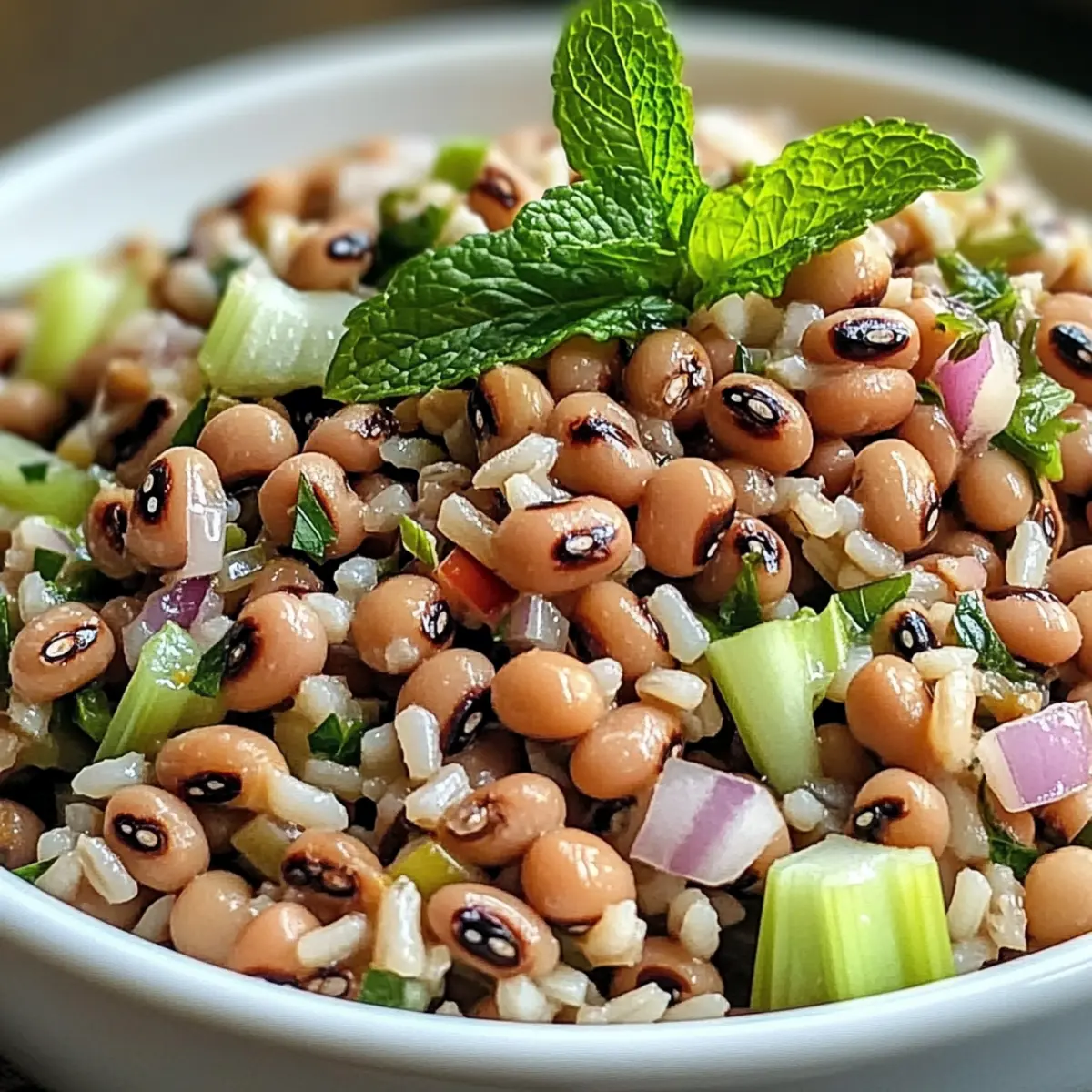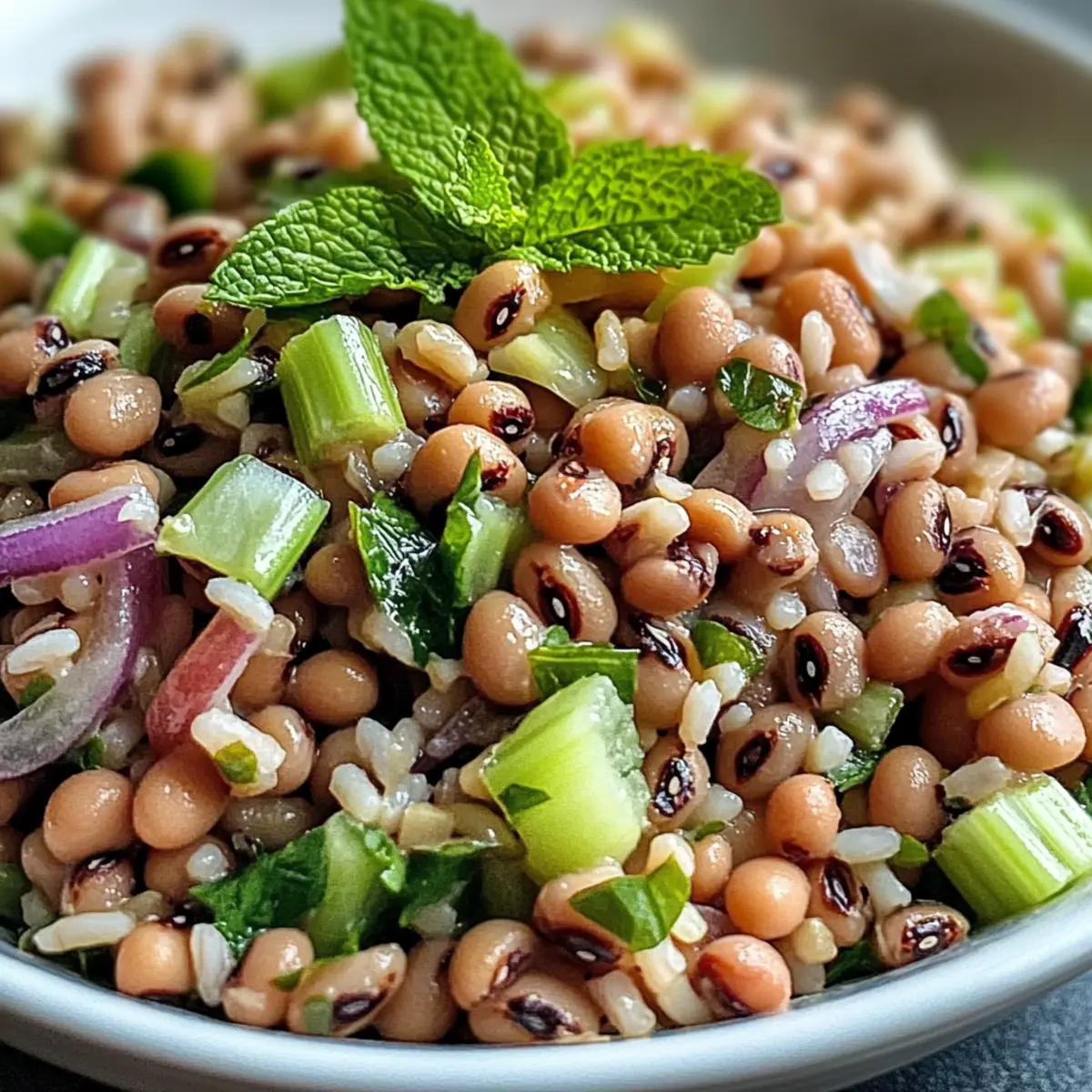Als ich neulich auf dem Markt war, konnte ich dem Anblick der leuchtenden, frischen Zutaten einfach nicht widerstehen. Die Idee für einen Südlichen Schwarzäugiger-Erbsen-Salat entstand sofort. Diese Kombination aus nahrhaften schwarzäugigen Erbsen, nussigem Naturreis und knackigem Gemüse ist nicht nur eine Augenweide, sondern auch eine perfekte Lösung für alle, die sich nach einer gesunden, schnellen Mahlzeit sehnen. Das zesty Zitronen-Minze-Dressing hebt die Aromen auf ein neues Level und macht diesen Salat ideal für das Meal Prep oder als erfrischende Beilage an warmen Sommertagen. Wer kann da schon widerstehen? Bist du bereit, dein nächstes Lieblingsgericht zu entdecken? Warum solltest du diesen Salat lieben? Frische Aromen: Mit dem zesty Zitronen-Minze-Dressing bringt dieser Salat eine belebende Frische auf deinen Tisch. Vielseitigkeit: Ob als Mittagessen oder Beilage zu BBQs, dieser Salat passt überall gut hin. Gesunde Zutaten: Die Kombination aus schwarzäugigen Erbsen und Vollkornreis liefert dir wichtige Nährstoffe und Ballaststoffe. Einfachheit: Mit nur wenigen Zutaten und einfachen Schritten ist dieser Salat schnell zubereitet – perfekt für dein Meal Prep! Ernährungsfreundlich: Vegetarisch, glutenfrei und sogar ohne Milchprodukte, sodass jeder ihn genießen kann. Werfen Sie auch einen Blick auf unsere anderen gesunden Rezeptideen, um Ihr Wochenmenü zu erweitern! Südlicher Schwarzäugiger-Erbsen-Salat Zutaten Zutaten für den Salat • Schwarzäugige Erbsen – bilden die Hauptproteinquelle und sind reich an Ballaststoffen; verwende getrocknete Erbsen für die beste Textur. • Naturreis – sorgt für eine nussige Basis; achte darauf, dass er vollständig ausgekühlt ist, bevor du ihn hinzufügst. • Rote Zwiebel – verleiht Schärfe und Crunch; kann durch Schalotten ersetzt werden, wenn du einen milderen Geschmack bevorzugst. • Sellerie – bringt Frische und Knackigkeit; gewürfelte Gurken oder Paprika sind ebenfalls gute Alternativen. • Frische Minzblätter – sorgen für helle, kräuterige Noten; du kannst sie mit Petersilie oder Koriander ersetzen. Zutaten für das Dressing • Nativ extra Olivenöl – dient als Basis für das Dressing und fügt Reichhaltigkeit hinzu. • Frischer Zitronensaft – sorgt für die notwendige Säure und balanciert die Aromen; frische Zitrone hat den besten Geschmack. • Zitronenschale – bringt ein lebhaftes Zitrusaroma mit sich; übertreibe es nicht, um Bitterkeit zu vermeiden. • Dijon-Senf – stabilisiert das Dressing und fügt eine angenehme Schärfe hinzu. • Honig oder Ahornsirup – bringt subtile Süße; Agavensirup ist eine vegane Alternative. • Salz und schwarzer Pfeffer – wichtige Gewürze zum Abschmecken; achte darauf, die perfekte Balance zu finden. Dieser Südliche Schwarzäugiger-Erbsen-Salat ist nicht nur köstlich, sondern auch ein unvergessliches Geschmackserlebnis! Schritt-für-Schritt-Anleitung für den Südlichen Schwarzäugiger-Erbsen-Salat Step 1: Erbsen kochen Koche 1 Tasse getrocknete schwarzäugige Erbsen gemäß der Packungsanweisung in einem großen Topf mit kochendem Wasser, bis sie zart sind – dies dauert etwa 30 bis 45 Minuten. Achte darauf, sie während des Kochens gelegentlich zu probieren. Sobald sie fertig sind, abgießen und beiseite stellen, damit sie vollständig abkühlen. Step 2: Zutaten kombinieren In einer großen Rührschüssel vermische die abgekühlten schwarzäugigen Erbsen, den bereits gekochten und abgekühlten Naturreis, die gewürfelte rote Zwiebel, den gewürfelten Sellerie und die gehackten Minzblätter. Rühre alles sorgfältig um, damit sich die Zutaten gleichmäßig verteilen und eine bunte Mischung entsteht. Step 3: Dressing zubereiten In einer separaten Schüssel oder einem Glas verrühre das nativ extra Olivenöl, den frischen Zitronensaft, die Zitronenschale, Dijon-Senf, Honig oder Ahornsirup, Salz und Pfeffer. Schlage alle Zutaten mit einem Schneebesen kräftig durch, bis eine emulgierte, cremige Vinaigrette entsteht, die glänzend und gut vermischt aussieht. Step 4: Vinaigrette hinzufügen Gieße die zesty Vinaigrette über die Salatmischung in der großen Schüssel. Benutze eine große Gabel oder einen Löffel, um alles vorsichtig umzurühren, bis der gesamte Salat gleichmäßig mit dem Dressing überzogen ist. Achte darauf, die Zutaten sanft zu behandeln, um die Knackigkeit nicht zu verlieren. Step 5: Abschmecken und anpassen Schmecke den Südlichen Schwarzäugiger-Erbsen-Salat ab und passe die Gewürze an, indem du bei Bedarf zusätzliches Salz, Pfeffer oder Zitronensaft hinzufügst. Diese Schritte sind entscheidend, um den Geschmack des Salats perfekt abzustimmen und alle Aromen harmonisch zusammenzubringen. Step 6: Kühlen und servieren Decke die Schüssel mit Frischhaltefolie ab und stelle den Salat für mindestens 30 Minuten in den Kühlschrank. Dadurch können sich die Aromen entfalten und verstärken sich. Serviere den Salat kalt oder bei Zimmertemperatur – ideal für ein erfrischendes Mittagessen oder als Beilage zu deinen Lieblingsgerichten. Tipps für den besten Südlichen Schwarzäugiger-Erbsen-Salat • Optimal kühl: Lass die schwarzäugigen Erbsen vollständig abkühlen, bevor du sie mit anderen Zutaten mischst, um eine matschige Textur zu vermeiden. • Frische Zutaten: Verwende frische Kräuter wie Minze für den besten Geschmack. Bei Bedarf kannst du sie durch Petersilie oder Koriander ersetzen. • Dressing zeitlich anpassen: Füge die Vinaigrette erst 1-2 Stunden vor dem Servieren hinzu, um die Knackigkeit des Gemüses zu bewahren. • Vorbereitung im Voraus: Dieser Südliche Schwarzäugiger-Erbsen-Salat kann 24 Stunden im Voraus zubereitet werden. Lagere ihn ohne Vinaigrette für intensivere Aromen. • Geschmack abgleichen: Schmecke den Salat vor dem Servieren ab und passe die Gewürze nach Bedarf an, um die Aromen perfekt zu harmonisieren. Variationen des Südlichen Schwarzäugigen-Erbsen-Salats Lass deiner Kreativität f