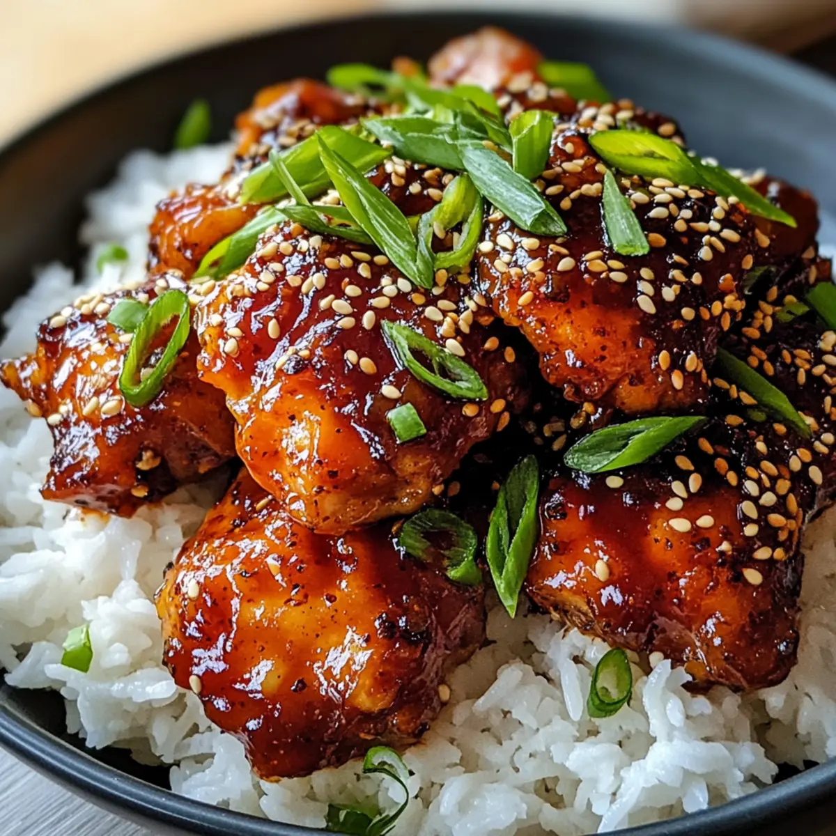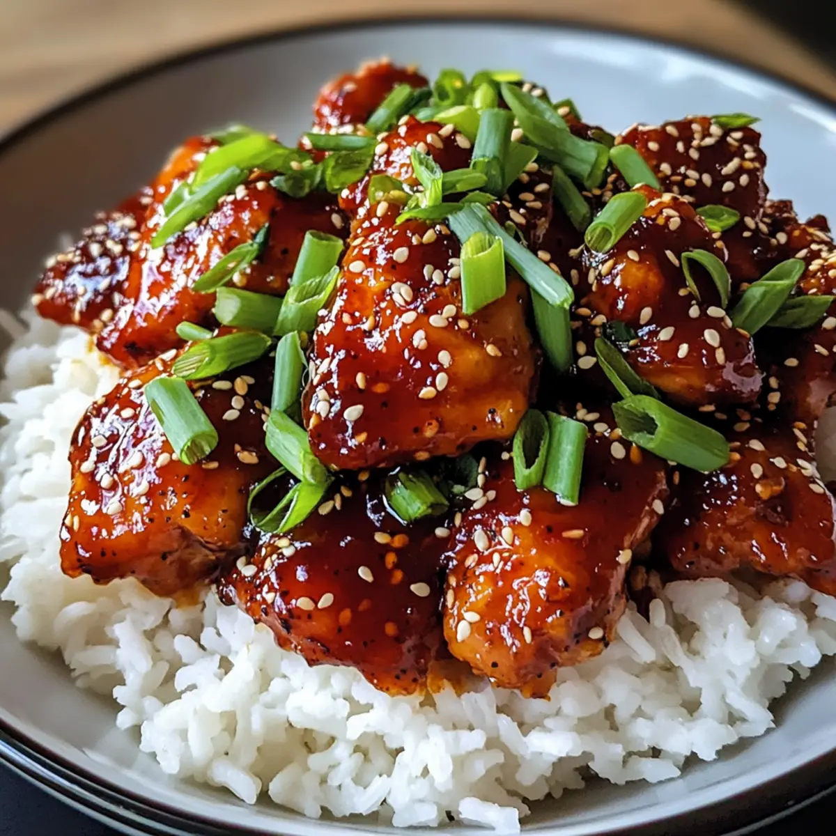 Wenn ich an einen gemütlichen Abend mit Freunden denke, fällt mir oft ein Gericht ein, das nicht nur sättigt, sondern auch alle begeistert: Süß-scharfes koreanisches Gochujang-Hühnchen. In diesem Rezept vereinen sich saftige Hühnchenstücke mit einer lebhaften, klebrigen Gochujang-Glasur, die den perfekten Mix aus herzhaftem Umami und einer Prise Chili-Wärme bietet. Die Zubereitung geht schnell, sodass du im Handumdrehen ein leckeres Abendessen auf den Tisch zaubern kannst – ideal für stressige Wochentage. Und wenn du auf der Suche nach einem Gericht bist, das sich wunderbar für gesellige Abende eignet und deine Gäste beeindruckt, dann ist dieses Rezept genau das Richtige für dich! Neugierig, wie einfach es funktioniert? Lass uns gemeinsam in die Zubereitung eintauchen! Warum ist dieses Rezept so besonders? Einfachheit: Die Zubereitung ist kinderleicht und erfordert lediglich grundlegende Kochkenntnisse. Intensiver Geschmack: Die Kombination aus Gochujang, Honig und Sojasauce sorgt für ein aufregendes Geschmackserlebnis, das jede Gaumenfreude übertrifft. Vielseitigkeit: Ob als Hauptgericht oder im Bun – dieses Hühnchen kann auf verschiedenste Arten serviert werden! Schnell zubereitet: In weniger als 30 Minuten hast du ein herzhaftes Abendessen auf dem Tisch, das perfekt für hektische Wochentage ist. Befriedigendes Gefühl: Die saftigen Stücke mit ihrer klebrigen Glasur zaubern jedem ein Lächeln ins Gesicht. Das süß-scharfe Aroma passt auch hervorragend zu einem erfrischenden Kimchi-Salat oder einem Caesar Croissant Sandwich. Entdecke, wie einfach du mit diesem Rezept deinen Dinner-Tisch zum Leben erwecken kannst! Zutaten für Süßes und würziges Koreanisches Gochujang-Hähnchen Für das Hühnchen Hühnchenschenkel ohne Knochen und Haut – Saftiger und geschmackvoller als Hähnchenbrust; für weniger Trockenheit bei Verwendung von Hähnchenbrust, die Kochzeit reduzieren. Für die Marinade Gochujang (Koreanische Chilipaste) – Fügt Wärme und Tiefe hinzu; unverzichtbar für den Geschmack. Weniger verwenden für eine mildere Schärfe. Sojasauce – Sorgen für Umami und Salzigkeit, die die Süße ausgleicht; kann mit natriumreduzierter Sojasauce ersetzt werden. Sesamöl – Verleiht ein nussiges Aroma und Reichhaltigkeit; sparsam verwenden, da nur wenig benötigt wird. Honig – Sorgt für Süße und hilft bei der Karamellisierung; wesentlich für die Glasur. Kann durch Ahornsirup ersetzt werden. Brauner Zucker – Verstärkt die dicke Glasur und fügt molasses-artige Tiefe hinzu; kann durch Kokoszucker ersetzt werden. Knoblauch (gehackt) – Bringt aromatische Wärme und Schärfe; frisch ist ideal, aber Knoblauchpulver kann ebenfalls verwendet werden. Ingwer (gerieben) – Fügt einen hellen, pfeffrigen Kick hinzu; steigert das gesamte Geschmacksprofil. Kann weggelassen werden, wenn nicht verfügbar. Reisessig – Gewährt eine subtile Säure, die die Reichhaltigkeit und Süße ausgleicht; kann durch Apfelessig ersetzt werden. Pflanzenöl – Zum Braten; sorgt für die richtige Karamellisierung des Hühnchens; jedes neutrale Öl funktioniert. Für die Garnitur Frühlingszwiebeln – Bringt frischen, knackigen Geschmack und Farbe; kann durch Schnittlauch ersetzt werden. Sesamsamen – Fügt Crunch und optische Attraktivität hinzu; optional, aber verbessert die Präsentation. Für die Beilage Gekochter Reis – Ergänzt das Gericht, indem er die geschmackvolle Glasur aufnimmt. Dieses Rezept für das süß-scharfe Koreanische Gochujang-Hühnchen wird dich und deine Gäste garantiert begeistern! Schritt-für-Schritt-Anleitung für Süßes und würziges Koreanisches Gochujang Hähnchen Schritt 1: Marinade vorbereiten Vermische in einer Schüssel die Gochujang-Paste, Sojasauce, Sesamöl, Honig, braunen Zucker, gehackten Knoblauch, geriebenen Ingwer und Reisessig mit einem Schneebesen, bis eine glatte Marinade entsteht. Diese aromatische Mischung wird das Hühnchen hervorragend würzen und ihm eine köstliche Süße verleihen. Schritt 2: Hühnchen vorbereiten Schneide die Hühnchenschenkel in mundgerechte Stücke und lege sie in einen wiederverschließbaren Beutel oder eine flache Schale. Stelle sicher, dass die Stücke gleichmäßig geschnitten sind, damit sie gleichmäßig garen. Dies wird helfen, eine schöne Karamellisierung während des Kochens zu erreichen. Schritt 3: Hühnchen marinieren Gieße die vorbereitete Marinade über das Hähnchen und achte darauf, dass jedes Stück gut bedeckt ist. Versiegle den Beutel oder decke die Schale ab und lasse das Hühnchen für 30 Minuten bis 4 Stunden im Kühlschrank marinieren. Je länger es mariniert, desto intensiver wird der Geschmack des süß-würzigen Gochujang-Hühnchens. Schritt 4: Öl erhitzen Erhitze in einer großen Pfanne bei mittlerer bis hoher Hitze etwas Pflanzenöl, bis es zu schimmern beginnt. Diese Temperatur sorgt dafür, dass das Hühnchen eine goldene, karamellisierte Außenseite bekommt. Das richtige Öl ist entscheidend für ein gelungenes Ergebnis und sollte kein überwältigendes Aroma haben. Schritt 5: Hühnchen braten Lege das marinierte Hühnchen in einer einzelnen Schicht in die heiße Pfanne. Gar das Hühnchen für etwa 5–7 Minuten auf jeder Seite, bis es außen goldbraun und karamelisiert ist. Vergewissere dich, dass das innere Hühnchen eine Temperatur von 75°C erreicht hat, um sicherzustellen, dass es durchgegart ist. Schritt 6: Ruhen lassen Nimm das Hähnchen nach dem Braten von der Hitze und lasse es für ein paar Minuten auf einem Teller ruhen. Dieses Ruhen hilft, die Säfte im Hühnchen zu halten, wodurch jedes Stück saftiger wird. Diese Zeit ist ideal, um die Beilagen vorzubereiten oder den Tisch zu decken. Schritt 7: Servieren Serviere das Süß-scharfe koreanische Gochujang-Hühnchen über frisch gekochtem Reis und garniere das Gericht mit gehackten Frühlingszwiebeln und gerösteten Sesamsamen. Diese Garnierungen verleihen zusätzliche Frische und Crunch, wodurch das Gericht n