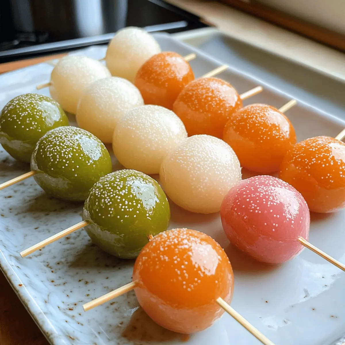 Während ich durch einen kleinen japanischen Straßenmarkt schlenderte, wurde ich von einem verführerischen Duft angezogen. Hier entdeckte ich Dango, diese kleinen, süßen und zähen Reisküchlein, die perfekt bei jeder Gelegenheit sind. Die Zubereitung von Dango ist nicht nur einfach, sondern auch ein echter Crowd-Pleaser, der kleinen und großen Festen eine besondere Note verleiht. Diese glutenfreie Leckerei aus Klebreismehl hat eine unverwechselbare, zarte Konsistenz und wird oft mit einer süßen Glasur und köstlichen Toppings serviert. Perfekt, um sich selbst oder seine Lieben zu verwöhnen! Bist du bereit, diesen zauberhaften Snack selbst auszuprobieren? Lass uns gemeinsam die Welt des Dango entdecken! Warum wirst du Dango lieben? Einfachheit: Die Zubereitung von Dango ist denkbar einfach und benötigt nur wenige Zutaten. Geschmacksexplosion: Die Kombination aus Süße und zäher Textur macht jeden Bissen zu einem Erlebnis. Vielseitigkeit: Du kannst ihn nach Belieben mit verschiedenen Toppings wie süßer Sojasauce oder Kinako verfeinern. Geselligkeit: Dango ist ideal für Feiern und bringt Freude in jedes Zusammenkommen. Glutenfrei: Diese Leckerei ist perfekt für diejenigen, die glutenfreie Optionen suchen. Probiere auch das Caesar Croissant Sandwich oder die Steak Avocado Bowl für mehr Geschmackserlebnisse! Dango Zutaten Zutaten für den Teig • Klebreismehl – liefert die Hauptstruktur und die einzigartige zähe Textur; mochiko kann für eine glutenfreie Variante verwendet werden. • Zucker – fügt Süße hinzu und verbessert das Geschmacksprofil; alternative Süßstoffe können bei Bedarf verwendet werden. • Wasser – notwendig, um das Reismehl zu hydratisieren und einen glatten Teig zu bilden. • Lebensmittelfarbe (optional) – für ästhetische Variation; völlig optional zur Verschönerung der Präsentation. Zutaten für Toppings • Süße Sojasauce oder Kinako (optional) – bieten zusätzlichen Geschmack; Kinako ergänzt mit nussigem Aroma, während süße Sojasauce eine herzhaft-süße Note hinzufügt. Step-by-Step Instructions for Süßes und zähe Dango Step 1: Teig vorbereiten Mische in einer Schüssel das Klebreismehl und den Zucker gut zusammen. Füge nach und nach das Wasser hinzu, bis der Teig nicht mehr klebrig ist und eine glatte Konsistenz erreicht. Wenn du möchtest, kannst du auch Lebensmittelfarbe einrühren, um dem Dango eine ansprechende Farbe zu verleihen. Step 2: Dango formen Teile den fertigen Teig in Portionen von etwa 2,5 cm und forme kleine Bälle aus jeder Portion. Lege die Dango-Bälle auf Backpapier oder eine nicht haftende Oberfläche, damit sie nicht zusammenkleben. Achte darauf, dass die Bälle gleichmäßig geformt sind, um eine gleichmäßige Garzeit zu gewährleisten. Step 3: Dango kochen Bringe einen Topf mit Wasser zum Kochen. Wenn das Wasser sprudelt, lasse vorsichtig die Dango-Bälle hinein gleiten. Die Bälle werden zunächst sinken und sollten nach etwa 5 Minuten an die Oberfläche steigen, was anzeigt, dass sie durchgegart sind und die zähe Konsistenz erreicht haben. Step 4: Abkühlen lassen Entferne die gekochten Dango-Bälle mit einem Schaumlöffel aus dem Wasser und lege sie sofort in ein Eisbad. Dies stoppt den Kochprozess und sorgt dafür, dass die Dango ihre zähe Textur behalten. Lasse die Dango einige Minuten im Eisbad, bevor du sie herausnimmst. Step 5: Toppings hinzufügen Nachdem die Dango abgekühlt sind, kannst du sie nach Belieben mit süßer Sojasauce beträufeln oder mit Kinako bestäuben. Diese Toppings verleihen dem Dango zusätzliche Geschmacksnuancen und verbessern die Präsentation. Achte darauf, dass der Dango gleichmäßig mit den Toppings bedeckt ist für ein ansprechendes Aussehen. Step 6: Servieren und genießen Präsentiere die Dango auf einem schönen Teller, entweder warm oder gekühlt, um das beste Geschmackserlebnis zu bieten. Du kannst sie auch auf Bambus-Spieße stecken für eine gesellige Note. Genieße dieses köstliche und zähe Dango als perfekte süße Leckerei! Was passt gut zu Süßem und zähen Dango? Frisch zubereitete Dango sind nicht nur ein Genuss für den Gaumen, sondern auch hervorragend kombinierbar mit verschiedenen Beilagen und Getränken! Matcha Tee: Der erdige Geschmack von Matcha ergänzt perfekt die Süße der Dango und sorgt für ein harmonisches Geschmackserlebnis. Eine Tasse warmen Matcha schafft eine entspannte Atmosphäre. Frische Früchte: Eine Auswahl an saisonalen Früchten wie Erdbeeren oder Mandarinen bietet einen frischen Kontrast zu den zähen Küchlein und bringt zusätzliche Farben auf den Tisch. Diese knusprigen Elemente beleben jedes Dessert. Süße Sojasauce: Ein paar Tropfen süße Sojasauce über den Dango können die Aromen intensivieren und eine spannende Kombination aus süß und herzhaft bieten. Diese klassische Ergänzung ist ein Muss! Kinako: Dieses geröstete Sojamehl verleiht den Dango eine nussige Note und fügt eine weitere Textur hinzu, die jede Biss zu einem neuen Erlebnis macht. Genieße die Kombination von Geschmäckern! Dessertwein: Ein Glas süßer Reiswein rundet das Erlebnis ab und harmoniert wunderbar mit dem weichen, süßen Dango. Der sanfte Alkoholgeschmack bietet einen perfekten Ausgleich zur Süße. Ohnsen Eier: Diese zarten, perfekt gekochten Eier sind ein herzhaftes Gegenstück zu den süßen Dango und schaffen einen außergewöhnlichen Gaumenschmaus in deinem Menü. Ein Hauch von Salz ergänzt die Dekadenz der Dango wunderbar. Rote Bohnenpaste: Ein Füllung oder Dip aus süßer roter Bohnenpaste bietet eine köstliche, zusätzliche Schicht an Geschmack und passt thematisch perfekt zu Dango. Dieses Duo ist in der japanischen Küche sehr beliebt! Dango-Spieße: Um die Portionen zu genießen, stecke die Dango auf Bambusspieße – so wird das Naschen nicht nur einfacher, sondern auch optisch ansprechend. Ideal für Feiern oder einen geselligen Nachmittag! Expert Tips für Süßes und zähe Dango Teigkonsistenz überprüfen: