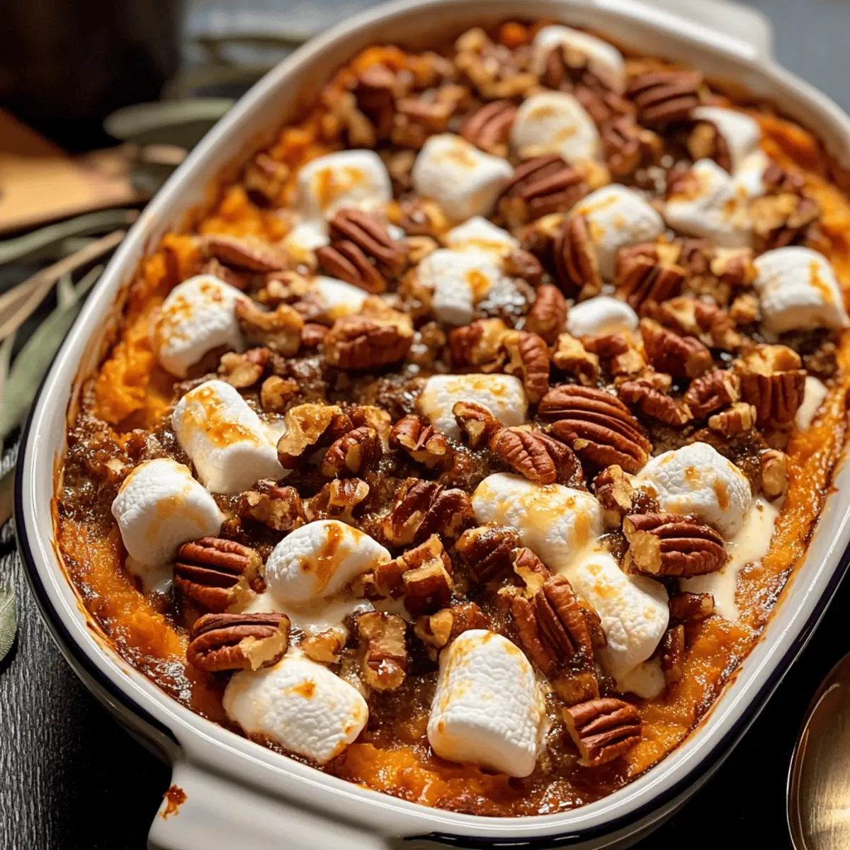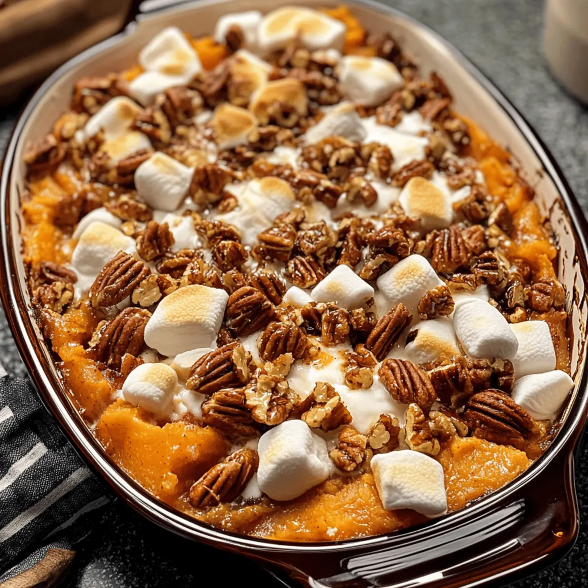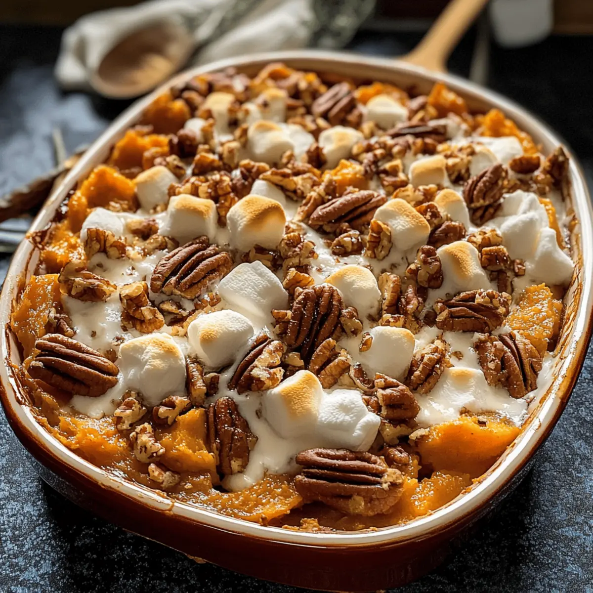 Als ich neulich in die herbstliche Küche eintauchte, überkam mich der verführerische Duft von frisch gerösteten Süßkartoffeln, der Erinnerungen an Familienfeiern und gemeinsame Abende weckte. Es gibt einfach nichts Besseres als eine samtige Southern Maple Sweet Potato Casserole, die jeden Tisch in ein Fest verwandelt! Diese köstliche Mischung aus weich gerösteten Süßkartoffeln, wärmenden Gewürzen und einem Hauch von Ahornsirup verleiht jedem Bissen eine süße Tiefe, die jeden um den Tisch versammelt. Und das Beste? Sie bietet nicht nur eine vegane Option, sondern lässt sich auch wunderbar im Voraus zubereiten, sodass Sie mehr Zeit mit Ihren Lieben verbringen können. Wer kann da widerstehen? Lassen Sie uns gemeinsam in diese Geschmacksexplosion eintauchen! Warum werden Sie dieses Rezept lieben? Einfachheit: Die Zubereitung ist kinderleicht und erfordert keine speziellen Kochkünste, sodass auch Anfänger mühelos mitmachen können. Vielfältige Varianten: Mit veganen Optionen und kreativen Abwandlungen wie köstlichem Ananas- oder Cranberryzusatz lässt sich der Auflauf nach jedem Geschmack anpassen. Aromatischer Duft: Während das Gericht im Ofen brutzelt, wird Ihre Küche von einem wunderbaren, warmen Aroma erfüllt, das alle anzieht. Perfekt für Feiern: Ideal für Thanksgiving oder Familientreffen, wird dieser Auflauf zum Star des Buffets und sorgt für begeisterte Gesichter. Zeitersparnis: Bereiten Sie die Süßkartoffeln im Voraus zu, sodass Sie mehr Zeit haben, um mit Ihren Lieben zu plaudern und das Fest zu genießen. Zutaten für den Süßkartoffel-Auflauf • Der beliebte Süßkartoffel Auflauf mit Ahornsirup ist einfach zubereitet und lässt sich vielseitig anpassen. Für die Süßkartoffeln 4 große Bio-Süßkartoffeln – Die Hauptzutat, die Textur und Geschmack liefert. Substitution: Kann im Notfall mit Yams ersetzt werden. 2-3 EL extra natives Olivenöl – Für das Rösten der Süßkartoffeln, fügt Reichtum hinzu. Hinweis: Kann durch geschmolzenes Kokosöl ersetzt werden. Für die Füllung 1 Teelöffel gemahlener Zimt – Fügt einen warmen Gewürzgeschmack hinzu. Kein direkter Ersatz, aber Muskatnuss kann es ergänzen. ½ Teelöffel gemahlene Muskatnuss – Verbessert das aromatische Profil. Ersetzen mit Piment bei Bedarf. ½ Tasse Mandelmilch – Wirkt als cremige Flüssigkeit für die Füllung. Substitution: Verwenden Sie Vollmilch oder eine beliebige Pflanzenmilch. 2 TL Vanilleextrakt – Fügt Tiefe und Süße im Geschmack hinzu. Kein Ersatz empfohlen. 4 EL ungesalzene Butter – Verleiht Reichtum und Feuchtigkeit. Substitution: Verwenden Sie Kokosöl für eine milchfreie Version. ⅓ Tasse organischer brauner Zucker – Süßt die Füllung und fügt Feuchtigkeit hinzu. Substitution: Ahornsirup oder Kokoszucker. ¼ Tasse reiner Ahornsirup – Fügt deutliches Aroma und Süße hinzu. Hinweis: Kann durch Agavensirup als Alternative verwendet werden. 1 Teelöffel gemahlener Zimt – Zusätzlicher Geschmack in der Füllung. Kann mit mehr Muskatnuss oder Piment ersetzt werden. ⅛ Teelöffel gemahlene Muskatnuss – Ergänzt den Zimt. Kein direkter Ersatz empfohlen. Prise gemahlener Piment – Verbessert die Geschmacksvielfalt. Ersetzen mit gemischten Gewürzen, wenn nicht verfügbar. 1 Tasse Bio-Rosinen, eingeweicht und abgetropft – Fügt Kaubarkeit und Süße hinzu. Das Einweichen kann die Rosinen aufplustern. 2 Tassen Marshmallows – Fügt Süße und Textur im Auflauf hinzu. Optional für eine vegane Version: Verwenden Sie vegane Marshmallows. Für das Topping 1 ½ Tassen rohe Pekannüsse – Knuspriges Topping für zusätzliche Textur. Substitution: Walnüsse oder weglassen für eine nussfreie Version. ¼ Tasse reiner Ahornsirup (für das Topping) – Süßt das Pekannuss-Topping. Ersetzbar mit Honig oder Agave. Schritt-für-Schritt-Anleitung für den köstlichen Süßkartoffel-Auflauf mit Ahornsirup Schritt 1: Süßkartoffeln rösten Heizen Sie den Ofen auf 200 °C vor. Schneiden Sie die großen Bio-Süßkartoffeln in Würfel und geben Sie sie in eine Schüssel. Mischen Sie die Süßkartoffeln mit 2-3 Esslöffeln extra nativem Olivenöl, 1 Teelöffel gemahlenem Zimt und ½ Teelöffel Muskatnuss. Verteilen Sie die gewürzten Stücke gleichmäßig auf einem Backblech und rösten Sie sie 50-60 Minuten lang, bis sie zart und leicht karamellisiert sind. Schritt 2: Füllung zubereiten Sobald die Süßkartoffeln geröstet sind, reduzieren Sie die Ofentemperatur auf 190 °C. In einer großen Schüssel kombinieren Sie die warmen Süßkartoffeln mit ½ Tasse Mandelmilch, 2 Teelöffeln Vanilleextrakt, ⅓ Tasse braunem Zucker, ¼ Tasse Ahornsirup, 1 Teelöffel Zimt, ⅛ Teelöffel Muskatnuss, einer Prise Piment, 1 Tasse eingeweichten Rosinen und 2 Tassen Marshmallows. Mischen Sie alles gut, sodass die Mischung cremig ist und einige Süßkartoffeln leicht zerdrückt werden. Schritt 3: Backform vorbereiten Fetten Sie eine 9×13 Zoll große Auflaufform großzügig ein. Löffeln Sie die Süßkartoffel-Füllung gleichmäßig in die vorbereitete Form und verteilen Sie sie glatt. Setzen Sie einige kleine Butterstückchen auf die Mischung und fügen Sie nach Wunsch zusätzliche Marshmallows hinzu. Dies wird später für eine köstliche, schmelzende Textur sorgen. Schritt 4: Topping zubereiten In einer separaten Schüssel vermengen Sie 1 ½ Tassen rohe Pekannüsse mit ¼ Tasse Ahornsirup. Vermischen Sie die Nüsse gründlich, sodass sie gleichmäßig beschichtet sind. Streuen Sie die Pekannuss-Mischung gleichmäßig über die Süßkartoffel-Füllung in der Auflaufform, um einen knusprigen und süßen Belag zu schaffen. Schritt 5: Backen Decken Sie die Auflaufform mit Folie ab und backen Sie den Auflauf für 15 Minuten. Nehmen Sie die Folie ab und backen Sie den Auflauf weitere 15 Minuten, bis das Topping goldbraun ist und die Marshmallows schmelzen. Lassen Sie den köstlichen Süßkartoffel-Auflauf mit Ahornsirup kurz abkühlen, bevor Sie ihn servieren, damit sich die 