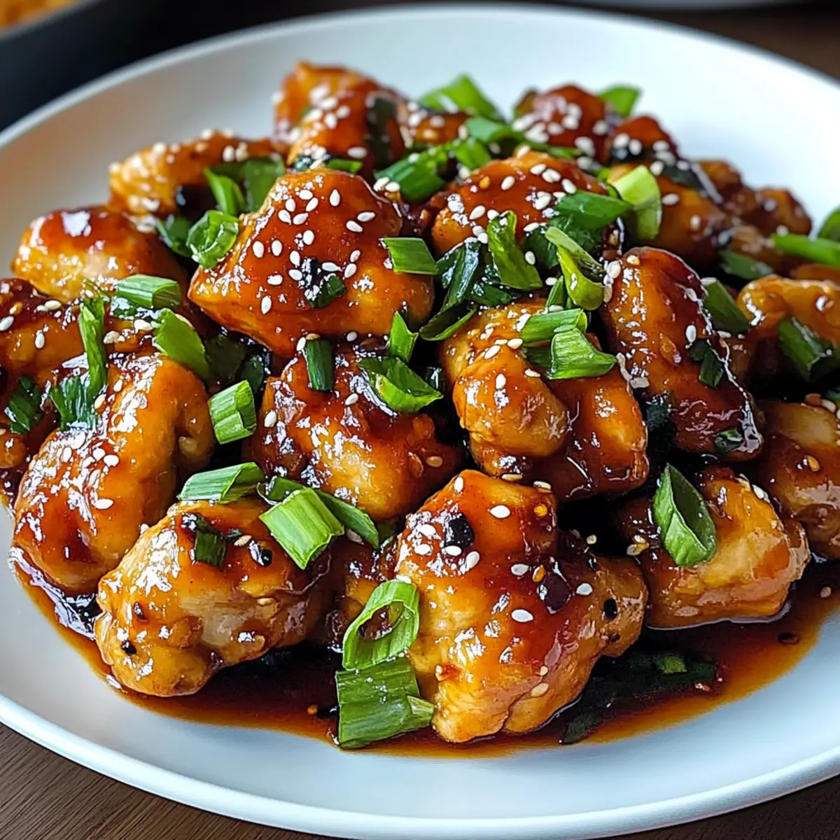 Eines Abends, während ich in meiner Küche war, fiel mein Blick auf die schillernden Farben frischer Zutaten, und da wusste ich: Es ist Zeit für etwas Besonderes! Das Rezept für Süßes und würziges thailändisches Hähnchen bietet nicht nur eine köstliche Mischung aus honigsüßen und scharfen Aromen, sondern ist auch in nur 30 Minuten zubereitet – perfekt für hektische Wochentage oder ein ungezwungenes Abendessen mit Freunden. Ob du nun ein erfahrener Koch bist oder gerade erst anfängst, es ist ein wahrer Genuss, der deinem Gaumen Freude bereiten wird. Diese schmackhafte Speise ist darüber hinaus extrem vielseitig und lässt sich wunderbar mit Tofu, Garnelen oder Rindfleisch anpassen, sodass jeder Essensvorliebe Rechnung getragen wird. Bist du bereit, deine Geschmacksnerven auf eine Reise nach Thailand zu schicken? Lass uns gemeinsam in die Zubereitung eintauchen! Warum wirst du dieses Rezept lieben? Einfachheit: Die Zubereitung ist kinderleicht und erfordert nur grundlegende Kochfähigkeiten, sodass du in kürzester Zeit mit einem köstlichen Gericht auf den Tisch zaubern kannst. Aromen: Die harmonische Kombination aus süßem Honig und scharfen Chili-Paprika bietet ein einzigartiges Geschmackserlebnis, das deine Geschmacksknospen zum Tanzen bringt. Vielseitigkeit: Ob mit Hähnchen, Tofu oder Garnelen – dieses Rezept kann nach Belieben angepasst werden. So ist für jeden etwas dabei! Schnelligkeit: In nur 30 Minuten bist du bereit, ein beeindruckendes Dinner zu genießen. Perfekt für stressige Abende! Beilagen: Das Gericht harmoniert hervorragend mit japanischem Reis oder einer schönen Salatbeilage, die die Aromen perfekt ergänzt. Mach dich bereit, deine Freunde und Familie mit diesem außergewöhnlichen Gericht zu beeindrucken! Zutaten für Süßes und würziges thailändisches Hähnchen • Entdecke die köstlichen Zutaten, die dieses Gericht zu einem wahren Highlight machen! Für das Hähnchen Hähnchen – Verwende zarte, entbeinte Ober- oder Bruststücke für ein saftiges Ergebnis. Honig – Sorgt für natürliche Süße; ersetze ihn durch Ahornsirup für eine vegane Variante. Chili-Paprika – Gibt dem Gericht die nötige Schärfe; passe die Menge nach deinem Geschmack an und nutze bei Bedarf Paprika für weniger Schärfe. Für die Sauce Sojasauce – Verleiht Tiefe und Umami; benutze Tamari als glutenfreie Alternative. Knoblauch – Verbessert Geschmack und Aroma; frischer, gehackter Knoblauch ist bevorzugt, kann aber im Notfall durch Knoblauchpulver ersetzt werden. Ingwer – Frischer Ingwer bringt Wärme und einen angenehmen Aroma-Kick; du kannst auch gemahlenen Ingwer verwenden, die Menge jedoch anpassen. Maisstärke – Dicker macht die Sauce; ersetze sie durch Pfeilwurzpulver für eine andere Verdickungsoption. Bereit, dieses köstliche Süßes und würziges thailändisches Hähnchen zuzubereiten? Lass uns loslegen! Schritt-für-Schritt-Anleitung für Süßes und würziges thailändisches Hähnchen Step 1: Hähnchen vorbereiten Schneide das Hähnchen in mundgerechte Stücke und würze es leicht mit Salz und Pfeffer. Lege die Stücke in eine große Schüssel und sorge dafür, dass sie gleichmäßig verteilt sind. Dies sorgt für eine bessere Bräunung während des Kochens. Die Vorbereitung sollte etwa 5 Minuten in Anspruch nehmen. Step 2: Sauce mischen In einer separaten Schüssel kombinierst du den Honig, die Sojasauce, den gehackten Knoblauch, den frisch geriebenen Ingwer und die Chili-Paprika. Rühre die Zutaten gut um, bis sie sich vollständig verbunden haben. Die Mischung sollte eine glänzende, homogene Konsistenz haben und unbeeindruckend süß, aber auch würzig duften. Diese Zubereitung sollte etwa 5 Minuten dauern. Step 3: Hähnchen garen Erhitze etwas Öl in einer großen Pfanne oder beschichteten Bratpfanne bei mittlerer Hitze. Gib die Hähnchenteile hinzu und brate sie für etwa 5-7 Minuten an, bis sie goldbraun und durchgegart sind. Achte darauf, das Hähnchen regelmäßig zu wenden, damit es gleichmäßig gegart wird. Es sollte eine schöne, goldene Kruste entwickeln. Step 4: Sauce hinzufügen Gieße die vorbereitete Sauce über das gebratene Hähnchen in der Pfanne. Rühre gut um, damit jedes Stück gut mit der Sauce bedeckt ist. Lasse die Mischung weitere 5 Minuten köcheln, bis die Sauce eindickt und das Hähnchen vollständig glasiert ist. Achte darauf, dass die Sauce sprudelt und eine sirupartige Konsistenz erreicht. Step 5: Anrichten und Servieren Nimm die Pfanne vom Herd und lasse das Süßes und würziges thailändisches Hähnchen einen Moment ruhen. Richte das Gericht auf einem großen Servierteller an und garniere es nach Belieben, beispielsweise mit gehacktem Koriander oder Frühlingszwiebeln. Serviere es sofort heiß, idealerweise zusammen mit japanischem Reis oder gedämpftem Gemüse. Süßes und würziges thailändisches Hähnchen Variationen Lass deiner Kreativität freien Lauf und passe dieses Rezept nach deinem Geschmack an – es gibt so viele Möglichkeiten, es zu genießen! Tofu: Ersetze das Hähnchen durch feste Tofuwürfel für eine köstliche vegane Variante. Brate den Tofu goldbraun, bevor du die Sauce hinzufügst. Garnelen: Verwende frische oder gefrorene Garnelen, die in der Pfanne nur kurz gegart werden müssen, bis sie rosa und zart sind. Mit Meeresfrüchten wird das Gericht leicht und erfrischend. Rindfleisch: Probiere zarte Rindfleischstreifen für eine herzhafte und proteinreiche Option. Achte darauf, das Fleisch nicht zu lange zu garen, damit es saftig bleibt. Gemüse: Füge während des Kochens etwas Brokkoli oder Zuckerschoten hinzu, um den Nährstoffgehalt zu erhöhen und mehr Farbe auf den Teller zu bringen. Scharf: Für die Mutigen unter uns: Erhöhe die Anzahl der Chili-Paprika oder füge frische Chilis hinzu, um deinem Gericht extra Schärfe zu verleihen und einen würzigen Kick zu genießen. Honig-Alternative: Verwende Agavendicksaft oder Kokosblütenzucker anstelle von Honig, um eine interessante Geschm
