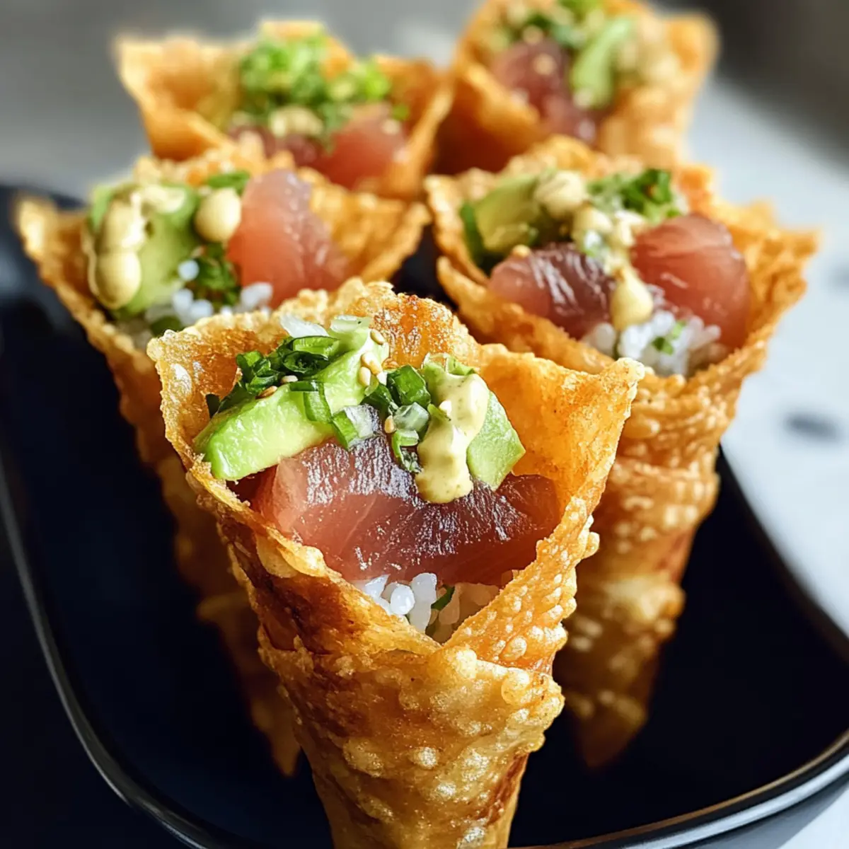 Kürzlich war ich auf einer Feier, als ich den verführerischen Duft von frisch frittierten Wontons verspürte. Die Sushi Wonton Tüten, die meine Freunde zubereitet hatten, waren nicht nur der Mittelpunkt der Gespräche, sondern auch ein wahres Geschmackserlebnis. Diese handgefertigten Snacks kombinieren die zarten Aromen von Sushi mit der Knusprigkeit von Wonton-Hüllen und sind damit perfekt für gesellige Runden oder als Appetitanreger bei Partys. Die Möglichkeit, die Füllungen nach eigenem Wunsch zu gestalten, macht sie zu einem interaktiven Erlebnis für Groß und Klein. Egal, ob du ein eingefleischter Sushi-Fan oder Neuling bist, wirst du sich in diese kreative und köstliche Version des klassischen Sushi verlieben. Bist du bereit, diese Geschmacksexplosion selbst auszuprobieren? Warum sind Sushi Wonton Tüten die beste Wahl? Handheld Genuss: Sushi Wonton Tüten sind die ideale Kombination aus leckerem Sushi und knusprigen Wontons, perfekt zum Snacken. Interaktive Erfahrung: Jeder kann seine Tüte nach Belieben füllen, was für viel Spaß bei geselligen Anlässen sorgt. Vielfalt der Füllungen: Ob mit frischem Thunfisch, cremiger Avocado oder sogar vegetarischen Optionen, diese Tüten sind anpassbar für jeden Geschmack. Schnell und Einfach: Mit nur wenigen Zutaten lassen sich diese Snacks schnell zubereiten und bringen frischen Wind in deine Snack-Routine. Perfekte Partykost: Reiße Blicke und Gaumen an – diese Tüten sind nicht nur geschmacklich, sondern auch optisch ein Highlight. Sushi Wonton Tüten Zutaten Für die Wonton-Hüllen • Wonton-Wrapper – Achte darauf, dass die Wrapper gut um die Form gewickelt und fest verschlossen sind. • Kokosöl – Ideal zum Frittieren; sorgt für eine knackige Textur und ist eine gesunde Fettquelle. Für den Sushi-Reis • Sushi-Reis (kurzkörnig, klebrig) – Bietet eine zarte, klebrige Basis, die die Zutaten bindet. • Reisessig – Verbessert den Geschmack des Sushi-Reis, ohne viele Kalorien hinzuzufügen. • Zucker – Balanciert die Säure aus und intensiviert den Geschmack des Reises. • Salz – Essentiell für die Würze des Reises und der Thunfischmischung. Für die Füllung • Avocado – Fügt eine cremige Textur und gesunde Fette hinzu. • Thunfischsteak (Sushi-Qualität) – Hauptproteinquelle; halte ihn gut gekühlt für beste Qualität. • Kewpie-Mayonnaise – Sorgt für eine cremige Konsistenz und verleiht der Thunfischmischung Umami-Flavor. • Tomatenketchup oder -sauce – Fügt eine süß-säuerliche Geschmacksnote hinzu; nach Geschmack anpassen. • Sriracha (optional) – Für die, die es gerne schärfer mögen; nach Belieben verwenden. • Limettenschale – Bringt Frische und aromatische Tiefe in die Mischung. • Furikake oder schwarze Sesamsamen – Garnitur für zusätzlichen Geschmack und visuelle Attraktivität. Mit diesen Zutaten kannst du deine eigenen Sushi Wonton Tüten kreieren und deinen nächsten Snack-Spaß beginnen! Schritt-für-Schritt-Anleitung für Sushi Wonton Tüten Step 1: Wonton-Hüllen vorbereiten Erhitze das Kokosöl in einer tiefen Pfanne auf 175 °C. Während das Öl heiß wird, wickle jeden Wonton-Wrapper um eine spezielle Form für die Tüten und achte darauf, dass die Kanten gut versiegelt sind, damit sie beim Frittieren nicht aufgehen. Step 2: Wontons frittieren Lass die vorbereiteten Wonton-Hüllen vorsichtig ins heiße Kokosöl gleiten und frittiere sie etwa 3-4 Minuten lang, bis sie goldbraun und knusprig sind. Mit einer Schaumkelle herausnehmen und auf Küchenpapier abtropfen lassen, um überschüssiges Öl zu entfernen, und lasse sie abkühlen. Step 3: Sushi-Reis zubereiten Wärme den Sushi-Reis leicht auf, um ihn warm zu halten, und mische ihn dann mit Reisessig, Zucker und Salz. Rühre die Zutaten gut durch, bis sie gleichmäßig verteilt sind. Lass den gewürzten Reis anschließend auf Zimmertemperatur abkühlen. Step 4: Thunfischmischung herstellen Würfle den Sushi-Qualitäts-Thunfisch in kleine Stücke und vermische ihn in einer Schüssel mit Kewpie-Mayonnaise, Tomatensauce, einem Spritzer Sriracha und der Limettenschale nach Geschmack. Diese Mischung wird der Hauptgenuss in deiner Sushi Wonton Tüte. Step 5: Tüten befüllen Nimm eine abgekühlte Wonton-Tüte und fülle sie mit einer Schicht des Sushi-Reises. Füge einige Scheiben Avocado hinzu und kröne die Tüte anschließend mit der herzhaften Thunfischmischung. Bestreue die gefüllte Tüte mit Furikake oder schwarzen Sesamsamen für zusätzlichen Geschmack und visuelle Attraktivität. Sushi Wonton Tüten Variationen und Alternativen Lass deiner Kreativität freien Lauf und gestalte die Sushi Wonton Tüten ganz nach deinem Geschmack! Vegetarisch: Ersetze Thunfisch durch Tofu oder frisches Gemüse wie Gurken und Karotten für eine leichte, pflanzliche Option. Diese Variation bringt eine erfrischende Note und ist perfekt, wenn du eine fleischfreie Mahlzeit genießen möchtest. Würzige Variante: Füge mehr Sriracha oder einen spritzigen Wasabi-Dip hinzu, um dem Snack eine aufregende Schärfe zu verleihen. Ideal für alle, die es gerne etwas feuriger mögen! Fruchtige Note: Experimentiere mit einigen Ananasstücken oder Mango in den Füllungen, um eine süße, fruchtige Komponente hinzuzufügen. Diese Mischung aus süß und herzhaft schafft ein harmonisches Geschmackserlebnis. Alternative Fische: Probiere Lachs oder Garnelen statt Thunfisch, um verschiedene Meeresaromen zu erkunden. Jeder Fisch hat seinen eigenen Charakter, der die Sushi Wonton Tüten spannend macht. Hausgemachte Dips: Bereite verschiedene Dips wie Erdnuss- oder Avocadocreme vor, um den Geschmack zu intensiveren. Diese kleinen Extras verwandeln jeden Bissen in ein echtes Geschmackserlebnis. Knusprige Kanten: Füge gebratene Zwiebeln oder Schalen von verschiedenen Nüssen zu der Füllung hinzu, um einen zusätzlichen Crunch zu erzielen. Dieser knackige Kontrast wird deine Wontons unvergesslich machen. Saisonale Kräuter: Verwende frische Kräute