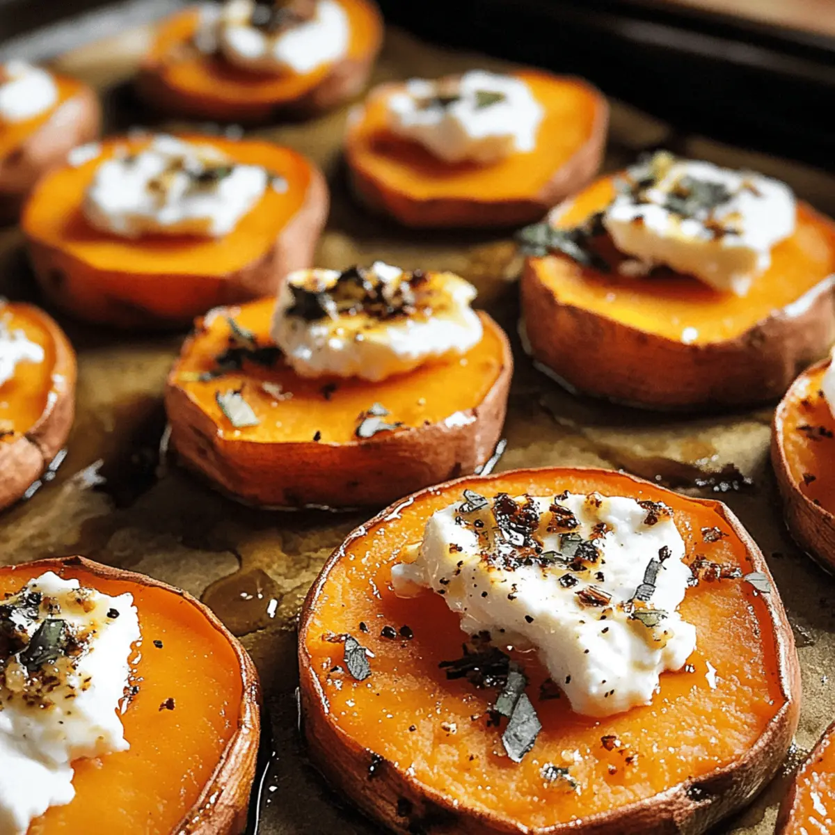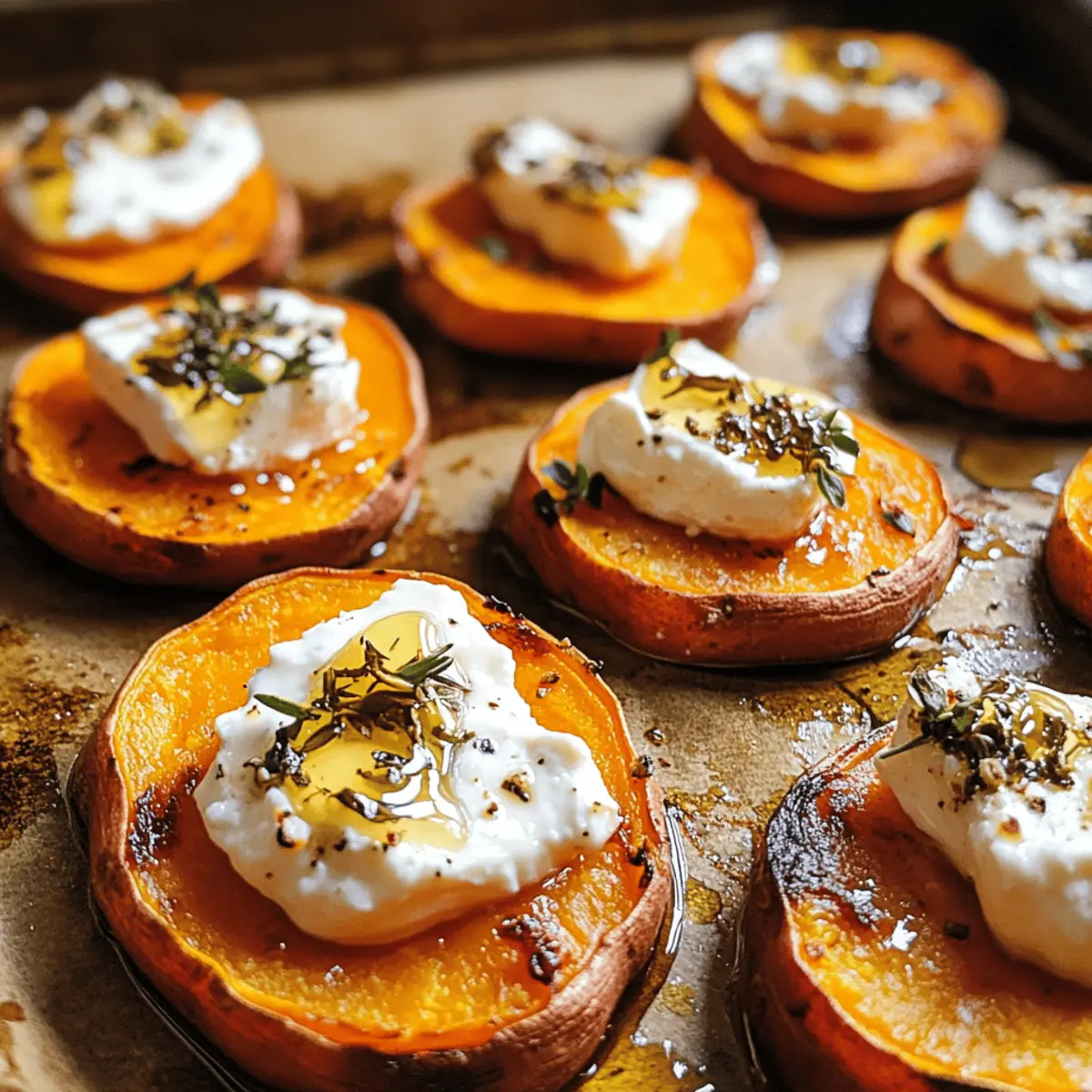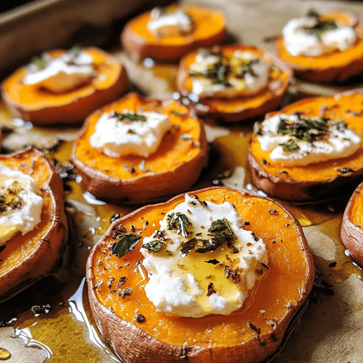 Jedes Mal, wenn ich die Küche betrete, gibt es diesen magischen Moment, in dem die Inspiration zuschlägt. Heute sind es die köstlichen Süßkartoffelrunden mit Ziegenkäse, die meine Sinne anregen. Diese vegetarischen Häppchen vereinen die süße Note gerösteter Süßkartoffeln mit dem herben Geschmack von Ziegenkäse und ergeben ein elegantes Appetizer, das sowohl für festliche Anlässe als auch für lockere Zusammenkünfte perfekt ist. Die Zubereitung könnte nicht einfacher sein, und die Aromen sind so ausgewogen, dass sie selbst die anspruchsvollsten Gaumen erfreuen. Mit nur wenigen frischen Zutaten und der Option, einen Hauch Honig oder balsamischen Essig hinzuzufügen, zaubern Sie im Handumdrehen eine schöne Präsentation auf den Tisch. Bereiten Sie sich darauf vor, in die Welt der Geschmackskombinationen einzutauchen – was würden Sie als erstes darüber ausprobieren? Warum lieben alle dieses Rezept? Einfachheit: Die Zubereitung ist mühelos und schnell, ideal für Küchenanfänger oder vielbeschäftigte Profis. Vielseitigkeit: Ob mit Honig oder balsamischem Essig – spielen Sie mit den Toppings und Variationen! Elegante Präsentation: Diese schönen Häppchen sind ein Highlight auf jedem Tisch, perfekt für Feiern und Gäste. Nährstoffreich: Süßkartoffeln bieten wertvolle Vitamine, während Ziegenkäse für eine cremige Note sorgt. Crowd-Pleaser: Sie sind nicht nur lecker, sondern auch glutenfrei und vegetarisch – ideal für jede Veranstaltung. Entdecken Sie auch unser Rezept für Käse Gefüllte Rezept, um Ihre Gäste noch mehr zu begeistern! Süßkartoffel-Runden Zutaten • Diese Süßkartoffel-Runden sind nicht nur lecker, sondern auch einfach zuzubereiten! Für die Runden Süßkartoffeln – sorgen für die natürliche Süße und eine stabile Basis; versuchen Sie stattdessen Butternusskürbis für ähnlichen Geschmack. Olivenöl – hilft beim Rösten und verleiht Reichtum; kann durch Avocadoöl ersetzt werden. Für den Belag Ziegenkäse – fügt eine cremige Textur und würzigen Geschmack hinzu; Feta kann eine köstliche Alternative sein. Frische Kräuter (z.B. Thymian, Rosmarin) – verbessern den Geschmack und die Frische; Basilikum ist ein guter Ersatz für eine andere Kräuternote. Für die Süße Honig oder Balsamico-Glasur – bietet eine zusätzliche Süße; optional, aber empfehlenswert für einen interessanten Kontrast; verwenden Sie Ahornsirup als vegane Option. Schritt-für-Schritt-Anleitung für Süßkartoffel-Runden mit Ziegenkäse Schritt 1: Ofen vorheizen Heizen Sie den Ofen auf 200°C vor. Diese Temperatur ist ideal, um die Süßkartoffel-Runden gleichmäßig zu rösten, sodass sie außen knusprig und innen zart werden. Haben Sie ein Backblech und Backpapier bereit. Diese Vorbereitung sorgt dafür, dass Ihre Runden gleichmäßig und ohne Anhaften garen. Schritt 2: Süßkartoffeln schneiden und würzen Schneiden Sie die Süßkartoffeln in dünne Runden, etwa 1 cm dick. Legen Sie die Runden in eine große Schüssel und träufeln Sie Olivenöl darüber. Streuen Sie großzügig Salz und Pfeffer ein. Mischen Sie alles gut durch, bis jede Runde gleichmäßig mit Öl und Gewürzen bedeckt ist. Dieser Schritt ist wichtig, um einen vollen Geschmack zu gewährleisten. Schritt 3: Runden anordnen und rösten Legen Sie die gewürzten Süßkartoffel-Runden in einer einzigen Schicht auf das Backblech. Achten Sie darauf, dass die Runden sich nicht überlappen, um eine gleichmäßige Röstdauer zu gewährleisten. Rösten Sie sie für 20-25 Minuten im vorgeheizten Ofen, bis die Runden zart sind und die Ränder leicht knusprig. Nach etwa 15 Minuten können Sie einen Blick darauf werfen. Schritt 4: Abkühlen lassen Nehmen Sie das Backblech vorsichtig aus dem Ofen und lassen Sie die Süßkartoffel-Runden für etwa 5 Minuten abkühlen. Dies hilft, die Textur zu setzen und macht das Anbringen des Ziegenkäses einfacher. Die Runden sollten einen goldbraunen Farbton annehmen, was auf die perfekte Röstung hinweist. Schritt 5: Ziegenkäse hinzufügen Geben Sie auf jede abgekühlte Runde einen Klecks Ziegenkäse. Um die Cremigkeit zu maximieren, lassen Sie den Ziegenkäse vorher bei Raumtemperatur stehen, damit er weicher wird. Achten Sie darauf, dass jeder Bissen einen Hauch des köstlichen Käses enthält – das ist der Schlüssel zu diesem Rezept für Süßkartoffel-Runden. Schritt 6: Garnieren und servieren Bestreuen Sie die Runden nach Belieben mit frischen Kräutern wie Thymian oder Rosmarin. Um den Geschmack zu verstärken, träufeln Sie etwas Honig oder Balsamico-Glasur über die Runden. Diese zusätzlichen Aromen sorgen für einen schönen, süßen Kontrast zur herben Note des Ziegenkäses. Servieren Sie die Süßkartoffel-Runden direkt warm – sie sind das perfekte Appetizer! Tipps für die besten Süßkartoffel-Runden Gleichmäßiges Schneiden: Achten Sie darauf, die Süßkartoffeln in gleichmäßige Runden zu schneiden, um eine gleichmäßige Garzeit zu gewährleisten. Backblech nicht überladen: Überladen Sie das Backblech nicht, damit die Runden gleichmäßig rösten und schön knusprig werden können. Ziegenkäse vorbereiten: Lassen Sie den Ziegenkäse vor dem Auftragen auf Raumtemperatur kommen. So wird er cremiger und lässt sich besser verteilen. Optionale Süße: Experimentieren Sie mit verschiedenen Toppings wie Honig oder balsamischer Glasur, um das Rezept für Süßkartoffel-Runden noch spannender zu gestalten. Lagerungstipps für Süßkartoffel-Runden Zimmertemperatur: Süßkartoffel-Runden sollten nicht länger als 2 Stunden bei Zimmertemperatur aufbewahrt werden, um ihre Frische zu bewahren. Kühlschrank: Im Kühlschrank können die Runden bis zu 3 Tage aufbewahrt werden. Lagern Sie sie in einem luftdichten Behälter, um Austrocknen zu vermeiden. Tiefkühler: Für längere Haltbarkeit können die Süßkartoffel-Runden bis zu 2 Monate im Tiefkühler aufbewahrt werden. Verpacken Sie sie gut in einem gefriergeeigneten Behälter oder einer Gefri