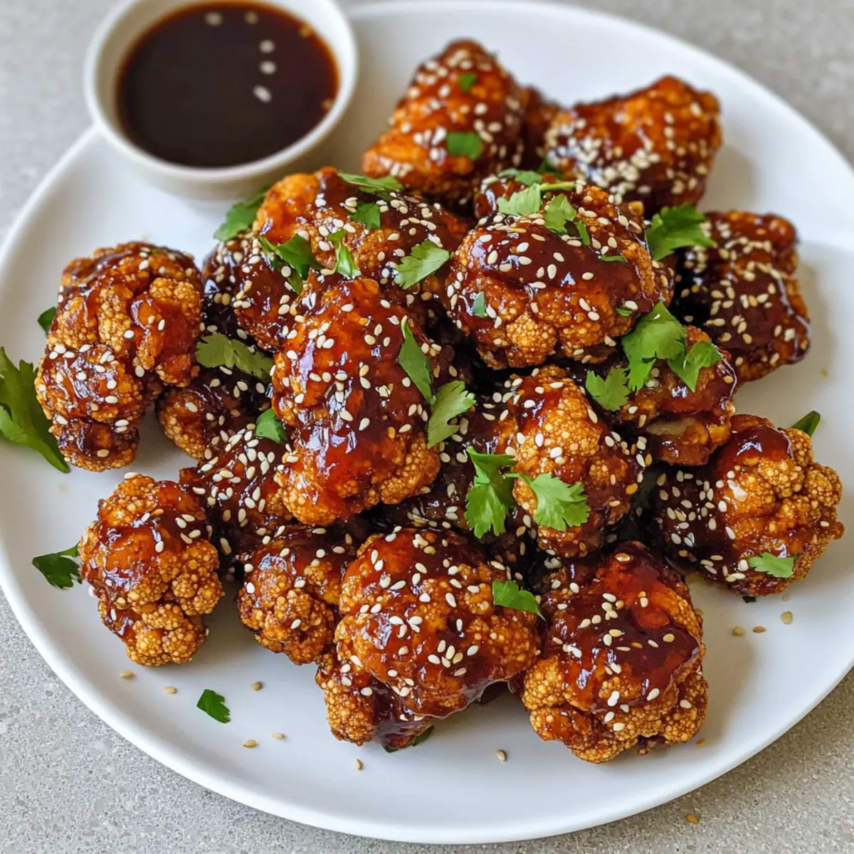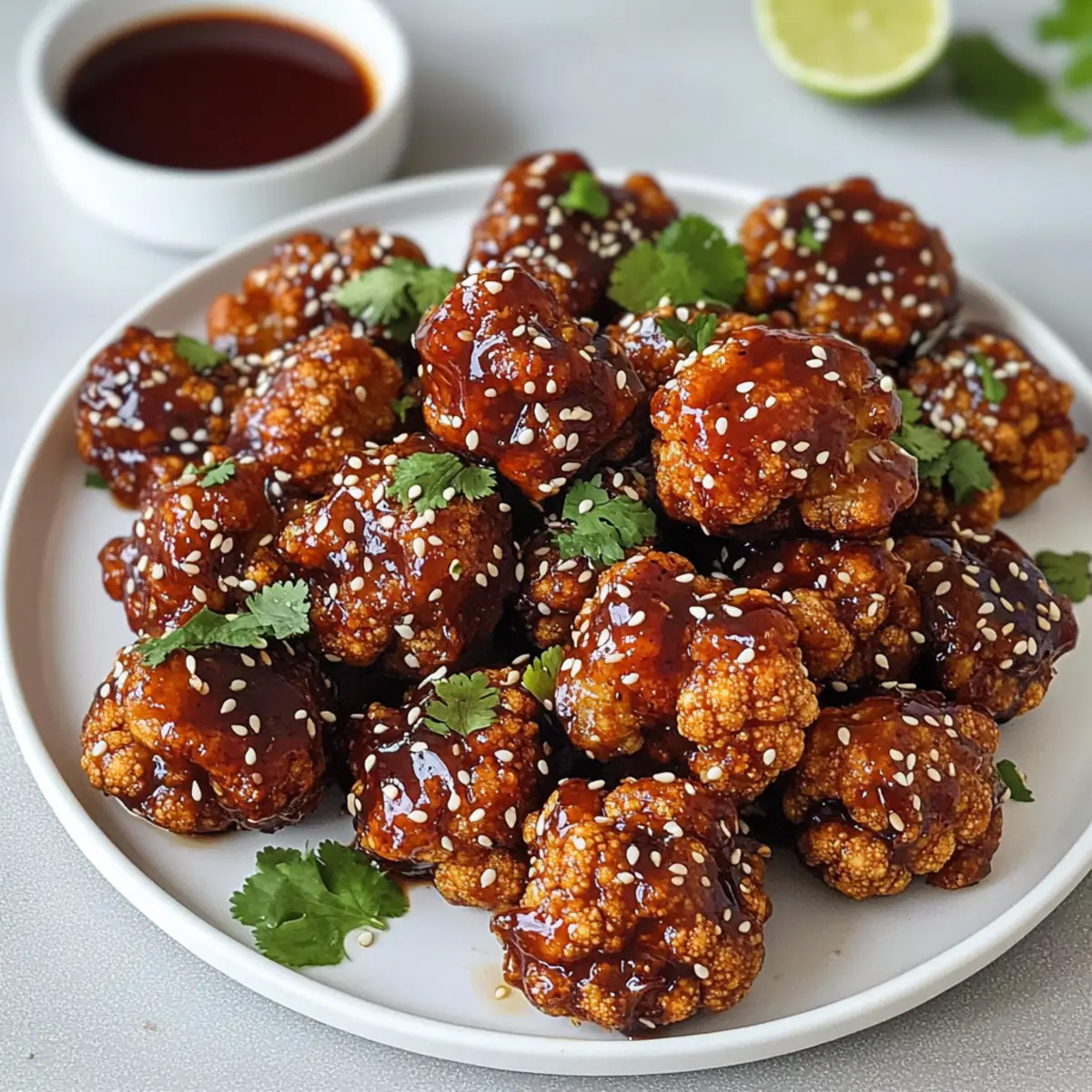 Hast du schon einmal an eine spannende Geschmacksexplosion gedacht, die nur aus einem einzigen Gemüse entsteht? Diese Teriyaki Blumenkohlflügel sind nicht nur eine aufregende vegane Variante, sondern auch unglaublich einfach zuzubereiten. Mit nur sieben Zutaten sind sie perfekt für einen schnellen Snack oder als Appetizer bei deiner nächsten Feier. Jeder Biss verführt mit einer harmonischen Balance aus süßen und herzhaften Aromen, die selbst die überzeugtesten Fleischliebhaber umhauen werden. Und das Beste daran? Sie sind glutenfrei und zaubern einen knusprigen Genuss, der dir das Gefühl gibt, etwas richtig Gutes für dich zu tun. Bereit, diesen köstlichen Veggie-Hit zu entdecken? Lass uns loslegen! Warum sind diese Blumenkohlflügel ein Muss? Einfachheit: Die Zubereitung dieser Teriyaki Blumenkohlflügel ist ein Kinderspiel! Mit nur sieben Zutaten zauberst du im Handumdrehen einen köstlichen Snack. Vegan und Glutenfrei: Diese Flügel sind nicht nur pflanzlich, sondern auch für glutenfreie Ernährung geeignet – ideal für alle! Vielseitig: Variiere die Aromen mit verschiedenen Saucen oder Gewürzen. Probiere sie mit einer Wuerzigen Tortilla Suppe für ein unvergessliches Geschmackserlebnis. Perfekte Textur: Der knusprige Außenbereich und das zarte Innere sorgen für ein aufregendes Mundgefühl. Crowd-Pleaser: Egal ob auf Partys oder als Snack zwischendurch, diese Blumenkohlflügel kommen immer gut an und beeindrucken sogar Skeptiker! Teriyaki Blumenkohlflügel Zutaten Für den Teig: Blumenkohlröschen – Hauptzutat, die für die Füllung und Textur sorgt. Mehl (Allzweck oder glutenfrei) – Gibt der Panade die Konsistenz und hilft der Sauce, zu haften. Pflanzliche Milch (z. B. Mandelmilch) – Spendet Feuchtigkeit und bindet den Teig. Pfeffer – Fügt Würze hinzu und verstärkt den Geschmack. Salz – Verbessert den Geschmack; nach Bedarf anpassen. Knoblauchpulver – Bringt Tiefe und Aroma in das Gericht. Zwiebelpulver – Verstärkt den herzhaften Geschmack. Für die Beschichtung: Haferflocken (zum Panieren) – Sorgt für eine knusprige Textur der Flügel. Für die Sauce: Teriyakisauce – Die Hauptzutat, die für den Namen und den Geschmack des Gerichts sorgt; je nach Dicke mit Wasser verdünnen. Sesamkörner – Garnierung und verleihen einen nussigen Geschmack; optional oder durch gehackte Frühlingszwiebeln ersetzen. Diese Teriyaki Blumenkohlflügel werden nicht nur mit ihren intensiven Aromen überzeugen, sondern sind auch einfach in der Zubereitung! Step-by-Step Instructions für Teriyaki Blumenkohlflügel Step 1: Ofen vorheizen Heize deinen Ofen auf 220ºC (425ºF) vor und lege ein Backblech mit Backpapier aus. Diese Vorbereitung sorgt dafür, dass die Teriyaki Blumenkohlflügel gleichmäßig und knusprig gebacken werden. Step 2: Blumenkohl vorbereiten Schneide den Blumenkohl in kleine, gleichmäßige Röschen, um eine konsistente Garzeit zu gewährleisten. Achte darauf, dass die Stücke nicht zu groß sind, damit sie beim Backen die perfekte Textur entwickeln. Step 3: Feuchte Zutaten mischen Vermische in einer Schüssel das Mehl, die pflanzliche Milch, Salz, Pfeffer, Knoblauchpulver und Zwiebelpulver. Rühre alles gut um, bis eine glatte Mischung entsteht, die die Blumenkohlröschen gleichmäßig umhüllen kann. Step 4: Blumenkohl beschichten Gib die vorbereiteten Blumenkohlröschen in die Schüssel mit dem Teig und toss sie sorgfältig, bis sie gleichmäßig mit der Mischung bedeckt sind. Diese Teighülle sorgt dafür, dass die Teriyaki-Sauce später gut haftet. Step 5: Haferflocken-Coating anwenden Überführe die beschichteten Röschen in eine Schüssel mit Haferflocken und wälze sie gründlich, bis sie vollständig ummantelt sind. Platziere die Haferflocken-beschichteten Blumenkohlflügel anschließend auf dem Backblech. Step 6: Erster Backvorgang Backe die Blumenkohlflügel im vorgeheizten Ofen für 22-25 Minuten, bis sie goldbraun und knusprig sind. Ein gutes Zeichen ist, wenn sie leicht rösch werden und einen angenehmen Duft verströmen. Step 7: Sauce vorbereiten Gieße die Teriyakisauce in eine flache Schüssel und verdünne sie bei Bedarf mit etwas Wasser, falls sie zu dick sein sollte. Diese Sauce wird die Teriyaki Blumenkohlflügel perfekt abrunden und das Gericht geschmacklich aufwerten. Step 8: Sauce auftragen Nimm die gebackenen Blumenkohlflügel aus dem Ofen und tauche sie direkt in die Teriyakisauce oder bestreiche sie großzügig mit einem Pinsel. Achte darauf, dass jedes Stück gut mit Sauce bedeckt ist. Step 9: Finalen Backvorgang Lege die saucenbedeckten Blumenkohlflügel zurück auf das Backblech und backe sie für weitere 5-10 Minuten, bis sie durchgehärtet und leicht karamellisiert sind. Diese kurze zusätzliche Backzeit verstärkt den Geschmack und die Textur. Step 10: Garnieren und servieren Bestreue die fertigen Teriyaki Blumenkohlflügel mit Sesamkörnern für einen zusätzlichen Crunch und eine nussige Note. Serviere sie heiß als köstlichen Snack oder Appetizer, der alle begeistern wird. Expert Tips für Teriyaki Blumenkohlflügel Einheitliche Stücke: Stelle sicher, dass die Blumenkohlröschen gleichmäßig geschnitten sind, um eine gleichmäßige Garung und Knusprigkeit zu gewährleisten. Krusten-Kick: Für extra Crunch kannst du die Haferflocken durch Panko-Brösel ersetzen. So wird das Ergebnis noch knuspriger! Sauce clever anwenden: Tauche die Blumenkohlflügel nur kurz in die Teriyakisauce, damit sie knusprig bleiben. Zu viel Sauce kann sie durchweichen. Perfekte Aufbewahrung: Lagere Reste in einem luftdichten Behälter und verwende den Ofen zum Aufwärmen – das bewahrt die Knusprigkeit der Teriyaki Blumenkohlflügel. Anpassbare Aromen: Experimentiere mit unterschiedlichen Gewürzen wie Chili-Flocken für eine scharfe Note oder probiere verschiedene Saucen für Abwechslung! Lagerungstipps für Teriyaki Blumenkohlflügel Zimmertemperatur: Die Blumenkohlflügel sollten nicht länger als 2 Stunden bei Zimmertemperatur gel