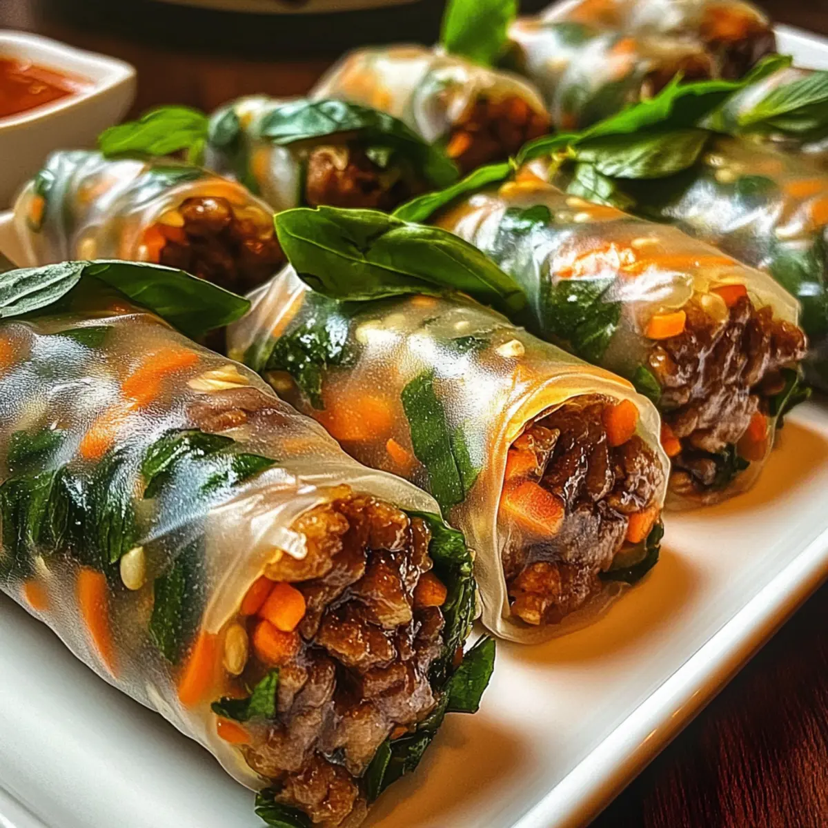 Als ich das erste Mal in einem kleinen thailändischen Restaurant saß, wurde ich von dem frischen Aroma der Thai-Basilikum-Rindfleisch-Rollen angezogen. Die Kombination aus zartem, gewürzt mariniertem Rindfleisch und knackigem Gemüse, eingewickelt in zartes Reisblatt, ist einfach unwiderstehlich. Diese schnelle und gesunde Mahlzeit ist perfekt für einen leichten Lunch oder als köstliches Fingerfood für Partys – und das Beste: Du kannst sie in weniger als 30 Minuten zubereiten! Mit nur etwa 180 Kalorien pro Rolle sind sie nicht nur eine gesunde Wahl, sondern auch extrem anpassbar. Ob Du frische Avocado hinzufügst oder die Füllung mit knusprigen Garnelen variierst, hier sind Deiner Kreativität keine Grenzen gesetzt. Neugierig, wie Du diese köstlichen Rollen selbst zubereiten kannst? Warum sind Thai-Basilikum-Rindfleisch-Rollen so empfehlenswert? Frische Aromen: Die Kombination aus würzigem Rindfleisch, knackigem Gemüse und frisch duftendem Basilikum sorgt für einen unvergleichlichen Geschmack. Schnelle Zubereitung: In weniger als 30 Minuten kannst Du diese leckeren Rollen zaubern – perfekt für hektische Tage! Anpassbar: Ob mit Garnelen, Avocado oder Nudeln — Du kannst die Füllung ganz nach Deinem Geschmack variieren. Gesund und Lecker: Mit nur etwa 180 Kalorien pro Rolle sind sie ein leichtes, nährstoffreiches Gericht. Perfekt für Gesellschaft: Diese Rollen sind sowohl als Snack bei Partys als auch als gesundes Mittagessen ein Hit. Wenn Du mehr über das Erstellen von Variationen erfahren möchtest, schau Dir meine Tipps zur Anpassung an. Zutaten für Thai-Basilikum-Rindfleisch-Rollen • Entdecke die köstlichen Zutaten für diese frischen Rollen! Für die Füllung Mageres Rinderhackfleisch – Diese proteinreiche Basis nimmt die Aromen hervorragend auf. Sojasauce – Sorgt für einen salzigen Umami-Geschmack, der die Füllung abrundet. Hoisinsauce – Ergänzt die Salzigkeit mit einer subtilen Süße und verbessert den Gesamtgeschmack. Geriebene Karotten – Bringen Knackigkeit und leuchtende Farbe in die Rollen. Gehackte Paprika – Bietet Frische und einen Hauch von Süße für mehr Textur. Frische Basilikumblätter – Der Hauptakteur, der ein unverwechselbares Aroma und Geschmack in die Rollen bringt. Für die Hülle Reisblätter – Diese zarten, dünnen Blätter halten die Füllung und bleiben gleichzeitig weich und lecker. Komm und entdecke, wie diese Zutaten in deinen Thai-Basilikum-Rindfleisch-Rollen zum Leben erweckt werden! Step-by-Step Instructions für Thai-Basilikum-Rindfleisch-Rollen Step 1: Rindfleisch anbraten Erhitze eine große Pfanne bei mittlerer Hitze und füge das magere Rinderhackfleisch hinzu. Koche es unter häufigem Rühren für etwa 5-7 Minuten, bis es vollständig durchgegart und schön gebräunt ist. Füge während des Bratens die Sojasauce und die Hoisinsauce hinzu, um dem Fleisch Geschmack zu verleihen. Achte darauf, das Fleisch gut zu zerkleinern, sodass es gleichmäßig gewürzt wird. Step 2: Gemüse hinzufügen Sobald das Rindfleisch gar ist, füge die geriebenen Karotten und gehackten Paprika direkt in die Pfanne. Mische alles gut und brate die Mischung für weitere 2 Minuten an, nur um das Gemüse leicht zu erwärmen. Es ist wichtig, dass die Karotten und Paprika ihre Knackigkeit behalten, sodass sie einen frischen Biss in den Thai-Basilikum-Rindfleisch-Rollen bieten. Step 3: Reisblätter vorbereiten Tauche ein Reisblatt für etwa 10-15 Sekunden in warmes Wasser, bis es weich und flexibel wird. Achte darauf, nicht zu lange zu warten, da das Blatt sonst zu fragil wird. Lege das aufgeweichte Blatt vorsichtig auf ein sauberes, feuchtes Küchentuch, um eine saubere Arbeitsfläche zu schaffen. Step 4: Füllung arrangieren Platziere ein paar frische Basilikumblätter in der Mitte des Reisblattes. Darauf gib eine Portion der Rindfleisch-Gemüse-Mischung. Achte darauf, das Blatt nicht zu überfüllen, um ein einfaches Rollen zu gewährleisten. Diese crunchy und würzige Füllung sorgt für den charakteristischen Geschmack der Thai-Basilikum-Rindfleisch-Rollen. Step 5: Rollen formen Falte die Seiten des Reisblattes über die Füllung und beginne, die Rolle von unten nach oben vorsichtig zu rollen. Drücke leicht, um die Füllung gut zu fixieren, während du die Seiten einschlägst. Achte darauf, dass die Rolle schön straff, aber nicht zu fest ist, sodass die Füllung beim Biss gut zur Geltung kommt. Step 6: Servieren Platziere die gefüllten Thai-Basilikum-Rindfleisch-Rollen auf einem Servierteller und serviere sie sofort. Du kannst sie mit einer Auswahl an Dips wie Erdnusssauce oder süßer Chilisauce garnieren, um den Geschmack zu verstärken. Diese Rollen sind ideal für einen schnellen Snack oder als köstliches Fingerfood für Partys – frisch schmecken sie am besten! Was passt zu Thai-Basilikum-Rindfleisch-Rollen? Lass dich von diesen köstlichen Kombinationen inspirieren, um eine vollwertige, geschmackvolle Mahlzeit zu kreieren. Erdnuss-Dip: Dieser cremige Dip bringt eine nussige Tiefe in jede Biss. Perfekt für die Kombination mit den frischen und würzigen Aromen der Rollen. Süße Chilisauce: Ein Hauch von Süße und Schärfe ergänzt die herzhaften Rindfleisch-Rollen und verleiht dem Ganzen das gewisse Etwas. Frischer Salat: Ein knackiger Gemüsesalat mit Limetten-Dressing sorgt für zusätzliche Frische und rundet das gesamte Geschmacksprofil ab. Kokosreis: Diese leicht süßliche Beilage harmoniert wunderbar mit den würzigen Aromen der Thai-Basilikum-Rindfleisch-Rollen und macht das Gericht noch gehaltvoller. Vietnamesische Frühlingsrollen: Ähnlich in der Zubereitung, bringen diese die Vielfalt der asiatischen Küche auf deinen Tisch. Ihre frischen Zutaten und Geschmäcker ergänzen die Rindfleisch-Rollen optimal. Ingwer-Limonade: Ein spritziges Getränk, das die Aromen der Rollen ergänzt und erfrischt. Ideal für warme Tage und gesellige Abende. Mango-Sorbet: Als Dessert sorgt dieses fruchtige Sorbet für einen süße